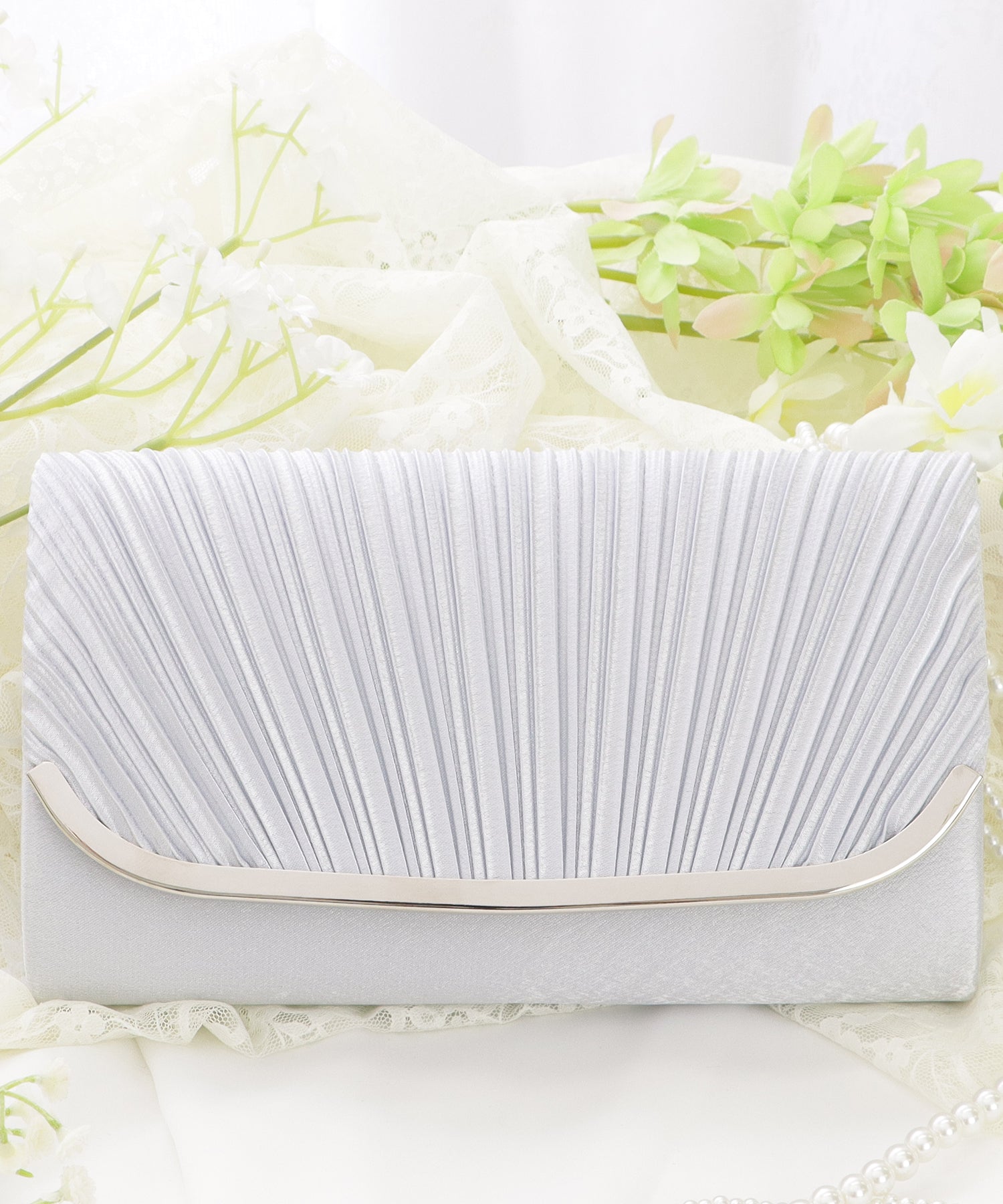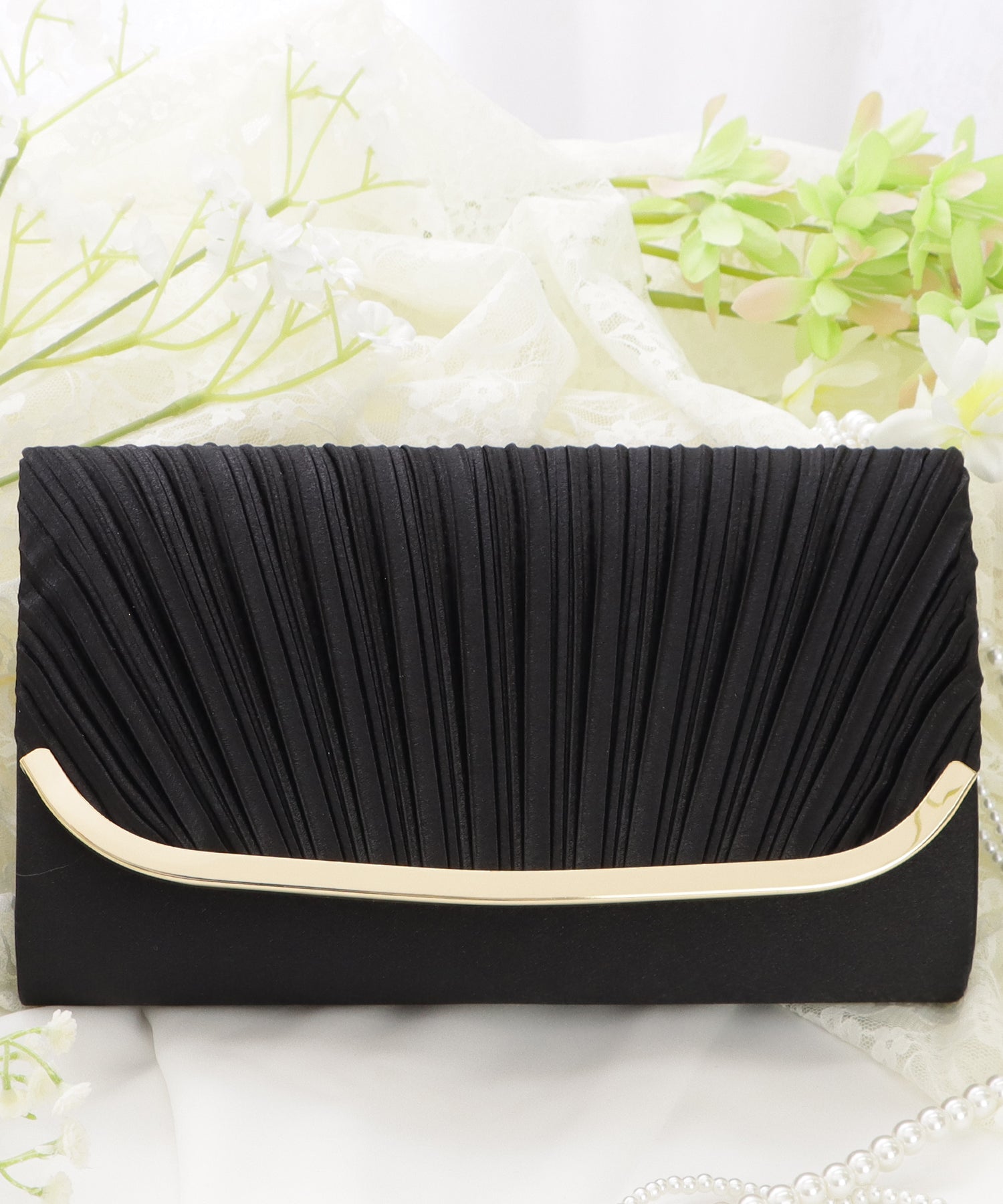 上品なサテンプリーツをメタルフレームで引き締めたおしゃれなパーティーバッグ