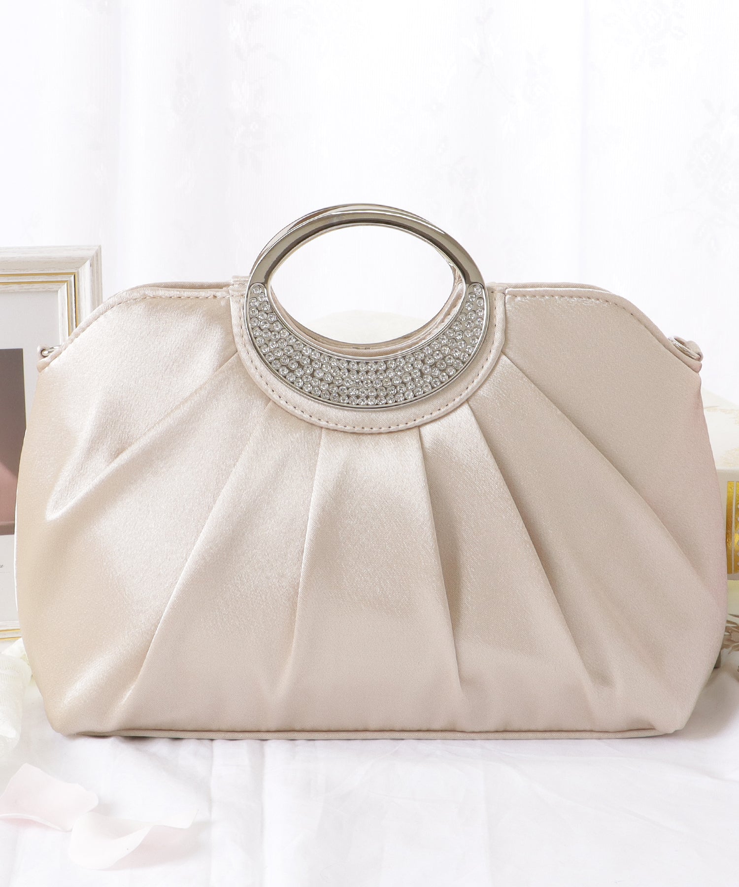 結婚式やセレモニーなど、華やかなシーンにお使いいただける、光沢が華やかなサテン生地のパーティーバッグ。