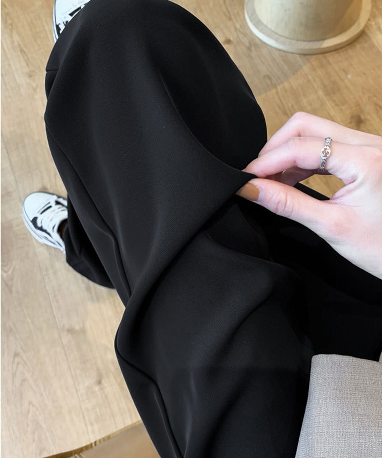 ゆったりとしたシルエットで、脚のラインをカバーしてくれるワイドスラックス。