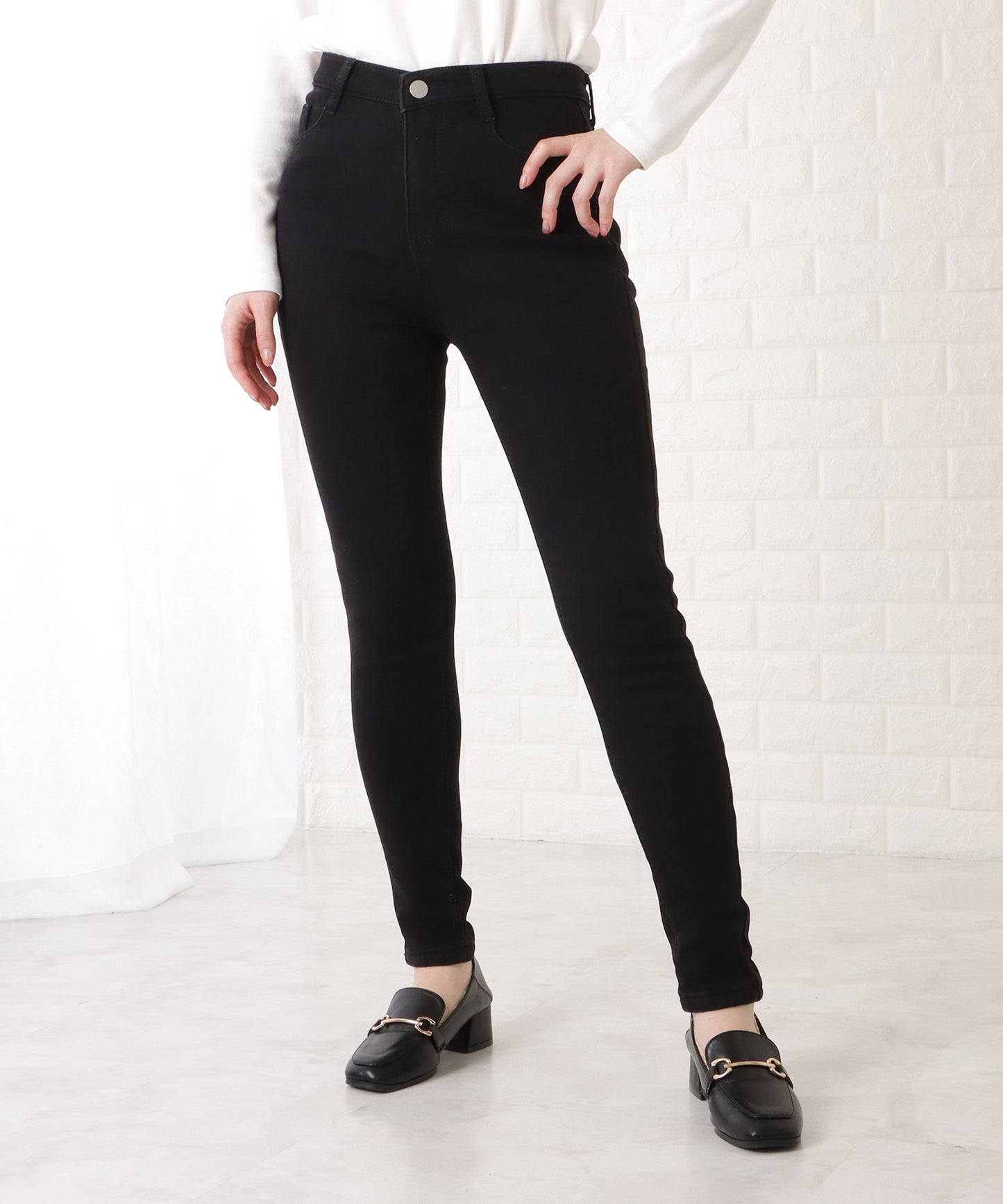 裏起毛ハイウエストストレッチスキニーデニムパンツ