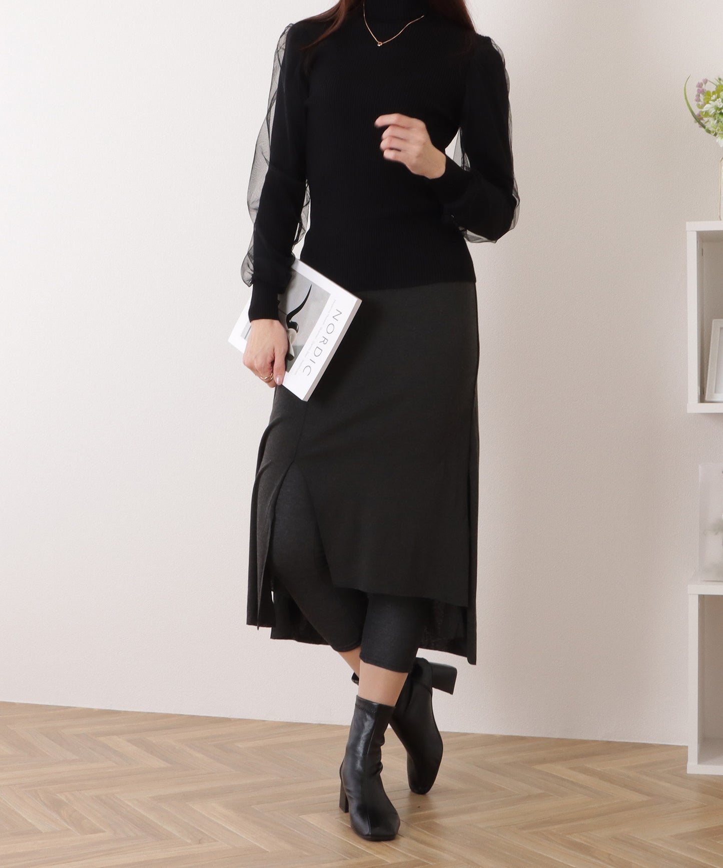 選べる2タイプ レギンス付きイレギュラーヘムスリットフレアスカート