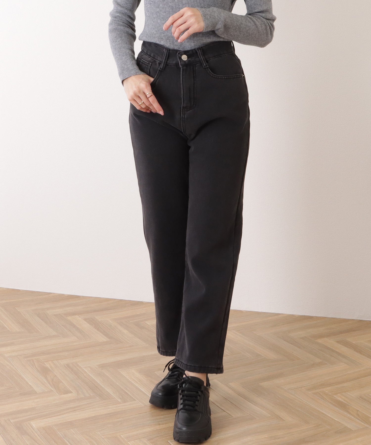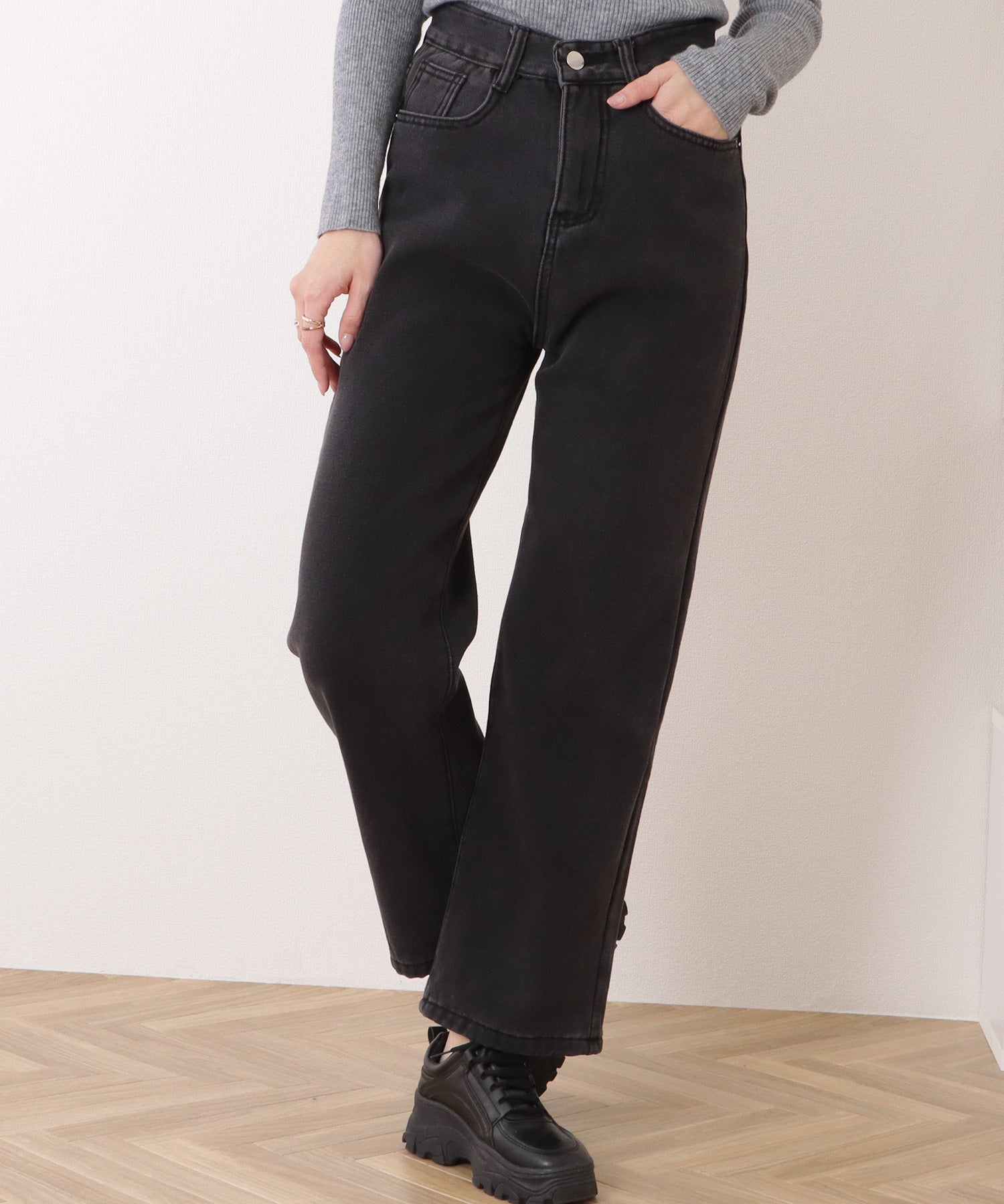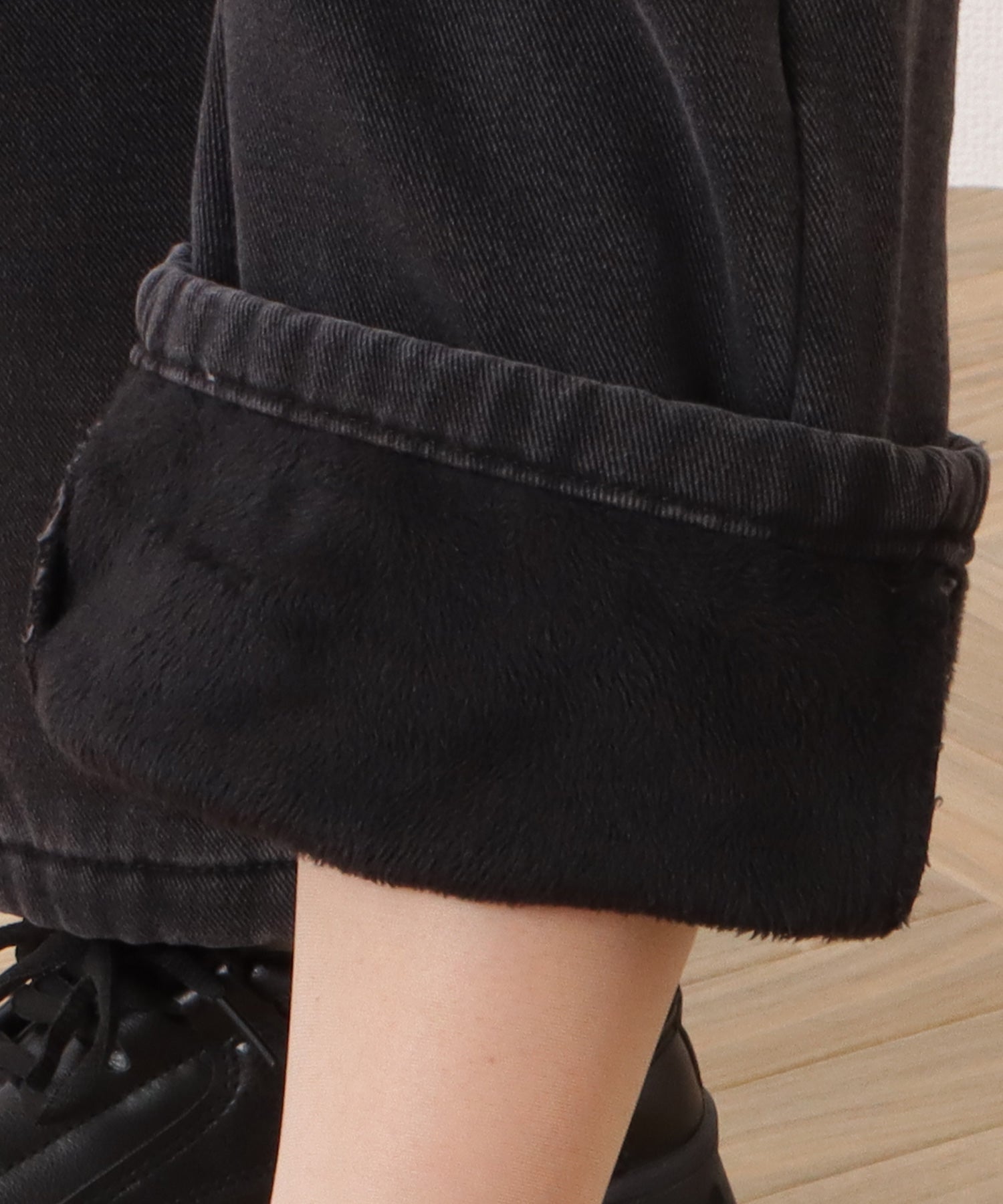 肌側にあたたかな裏シャギー素材を採用したデニムパンツ。