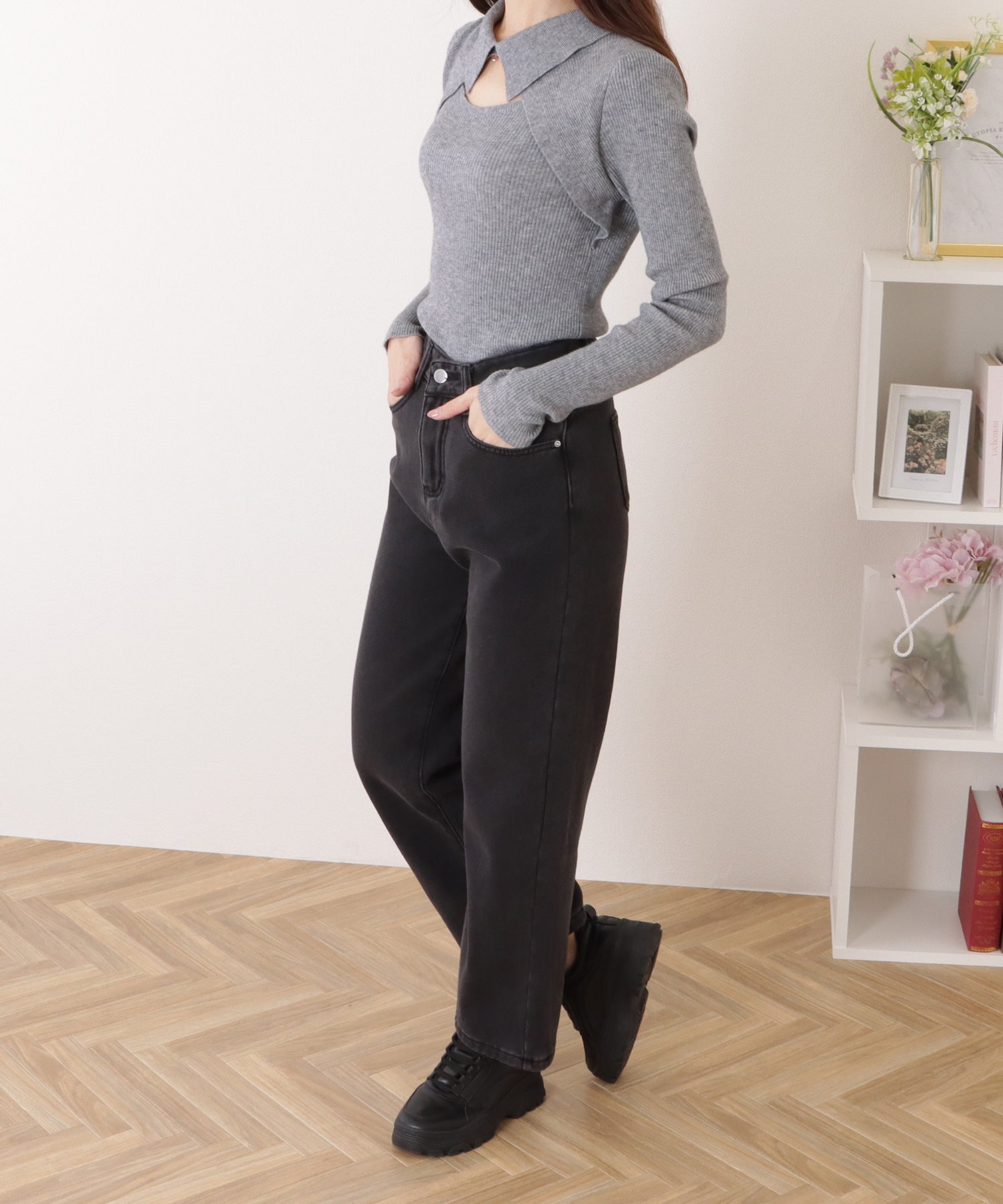 脚のラインをすらりと見せてくれるストレートラインやハイウエスト設計で、トレンド感にもしっかりとこだわりました。