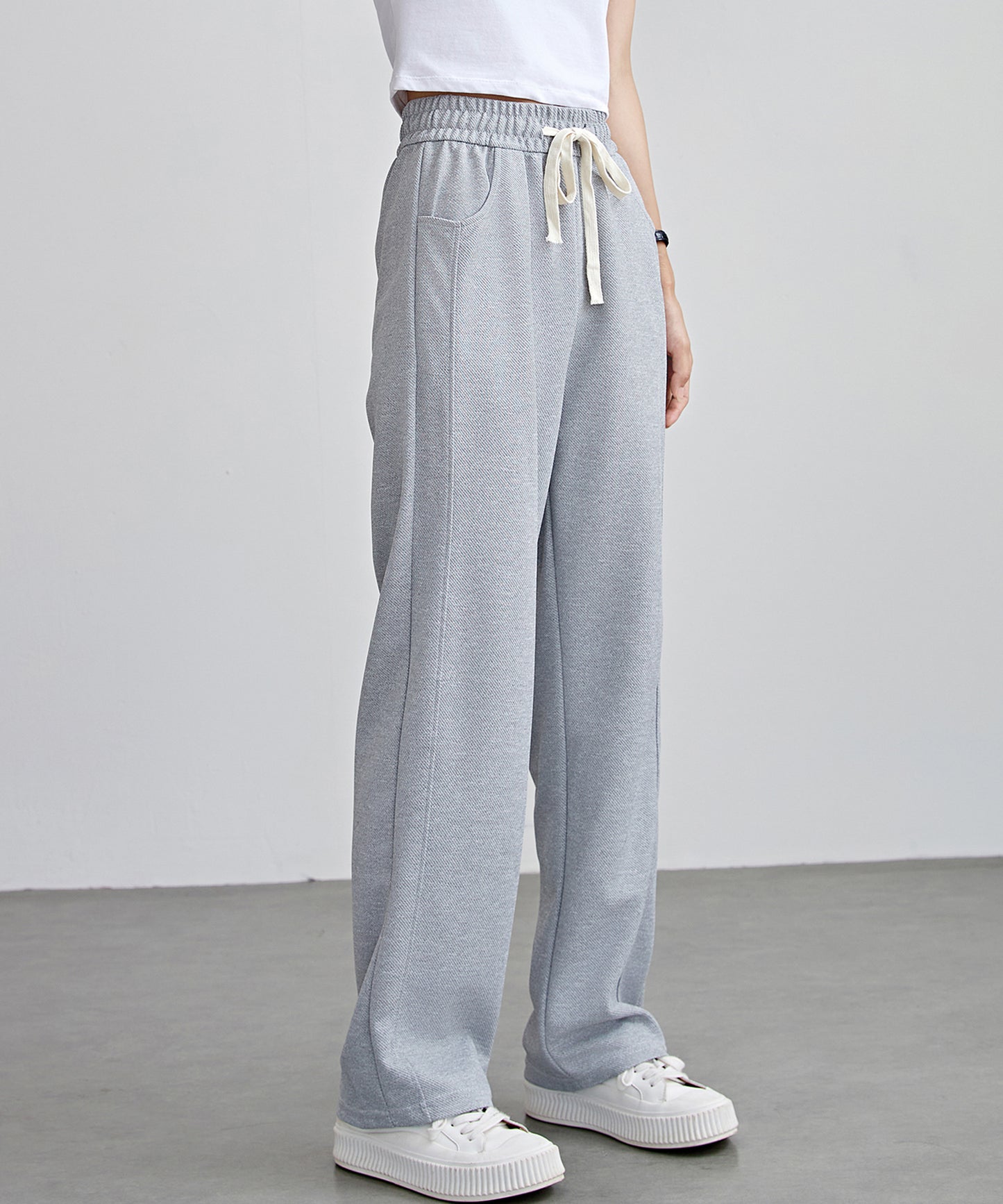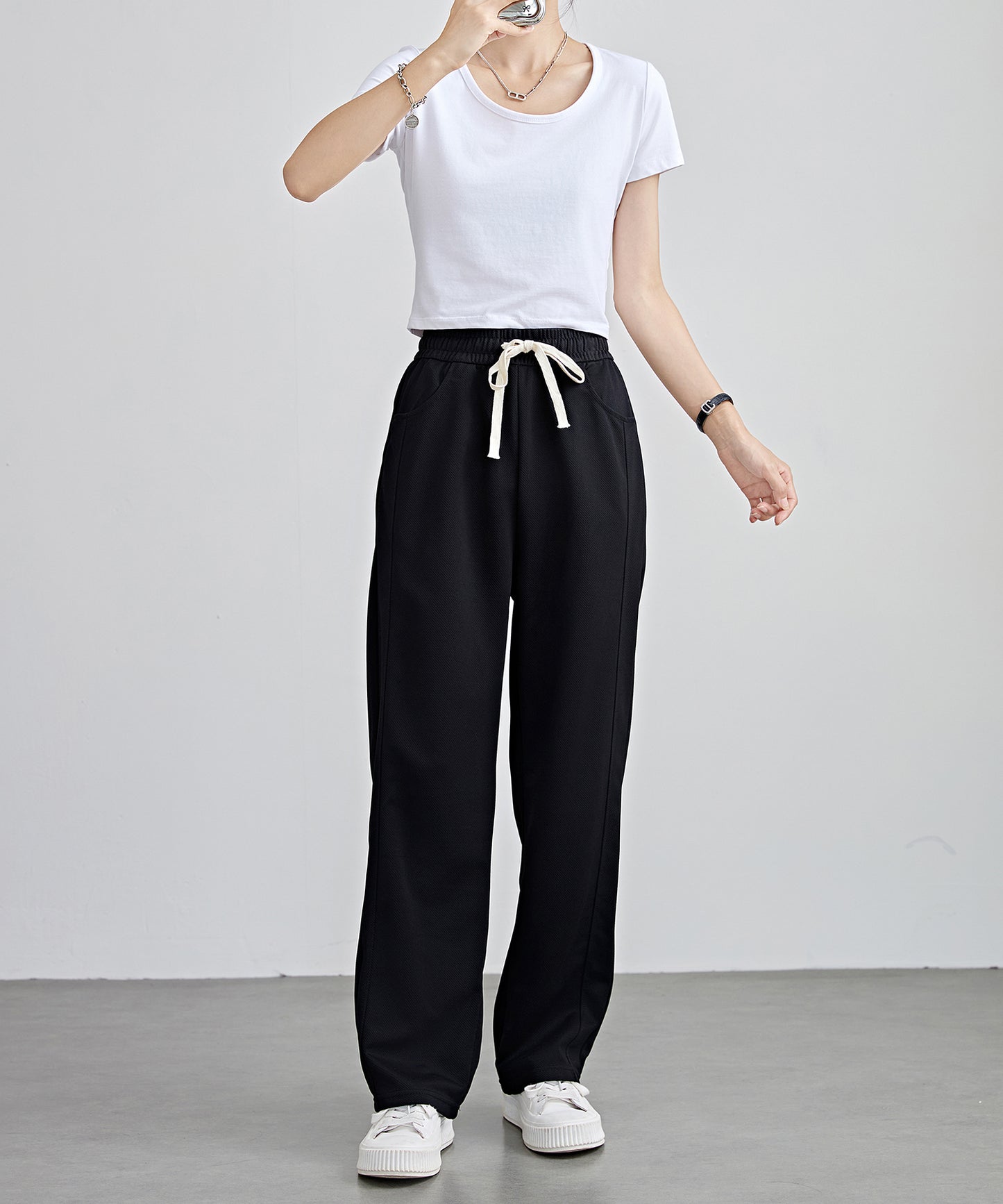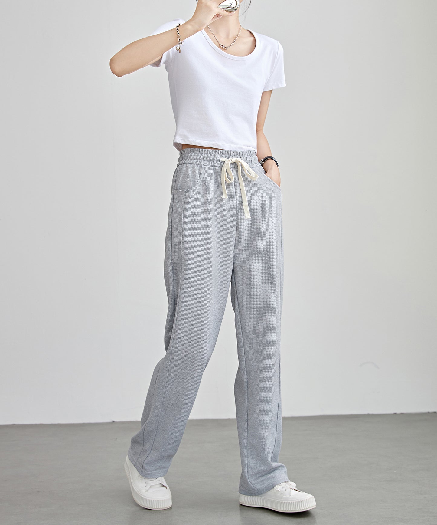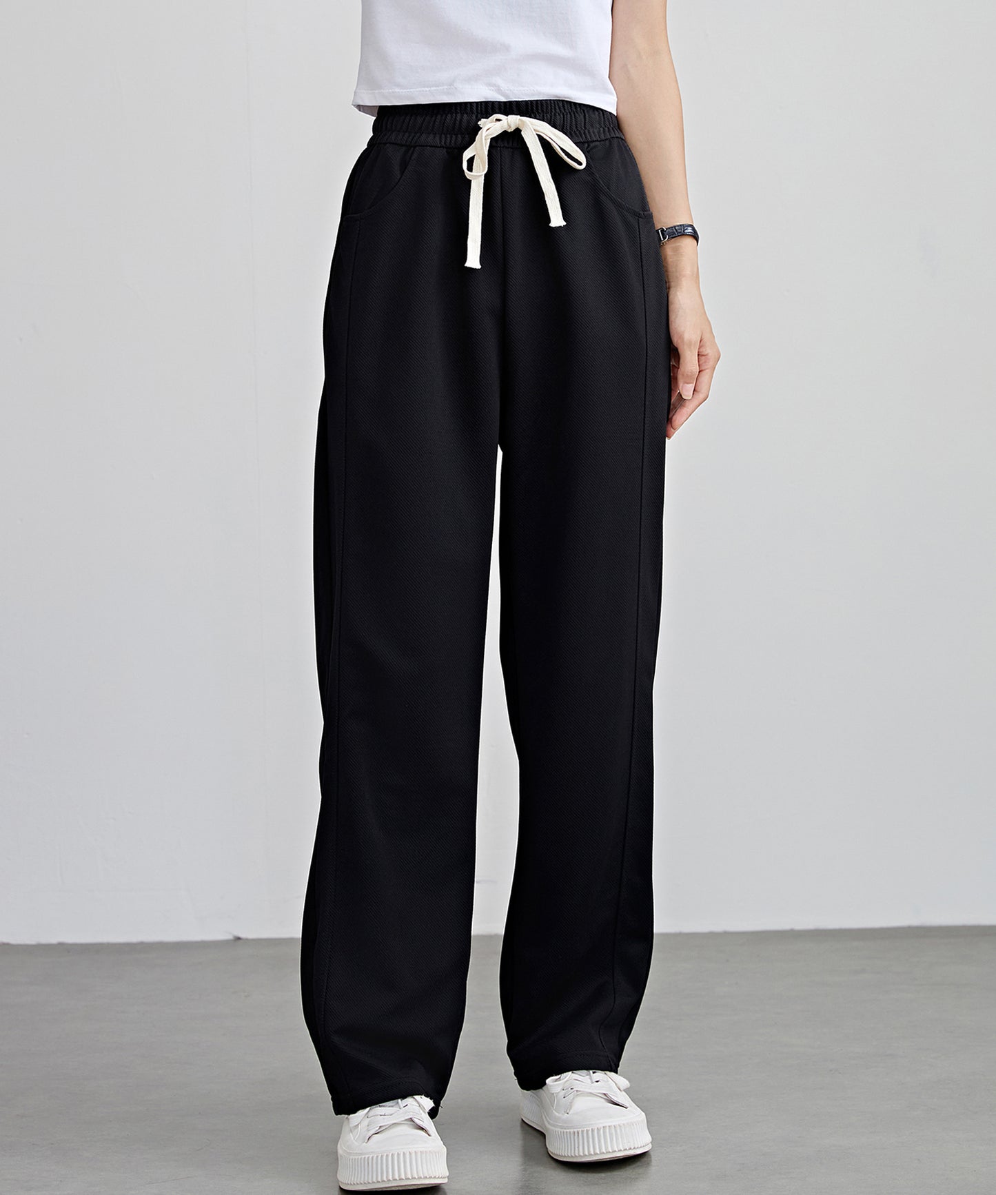 ソリッドカラー サイドライン ハイウエスト イージー スウェット パンツ