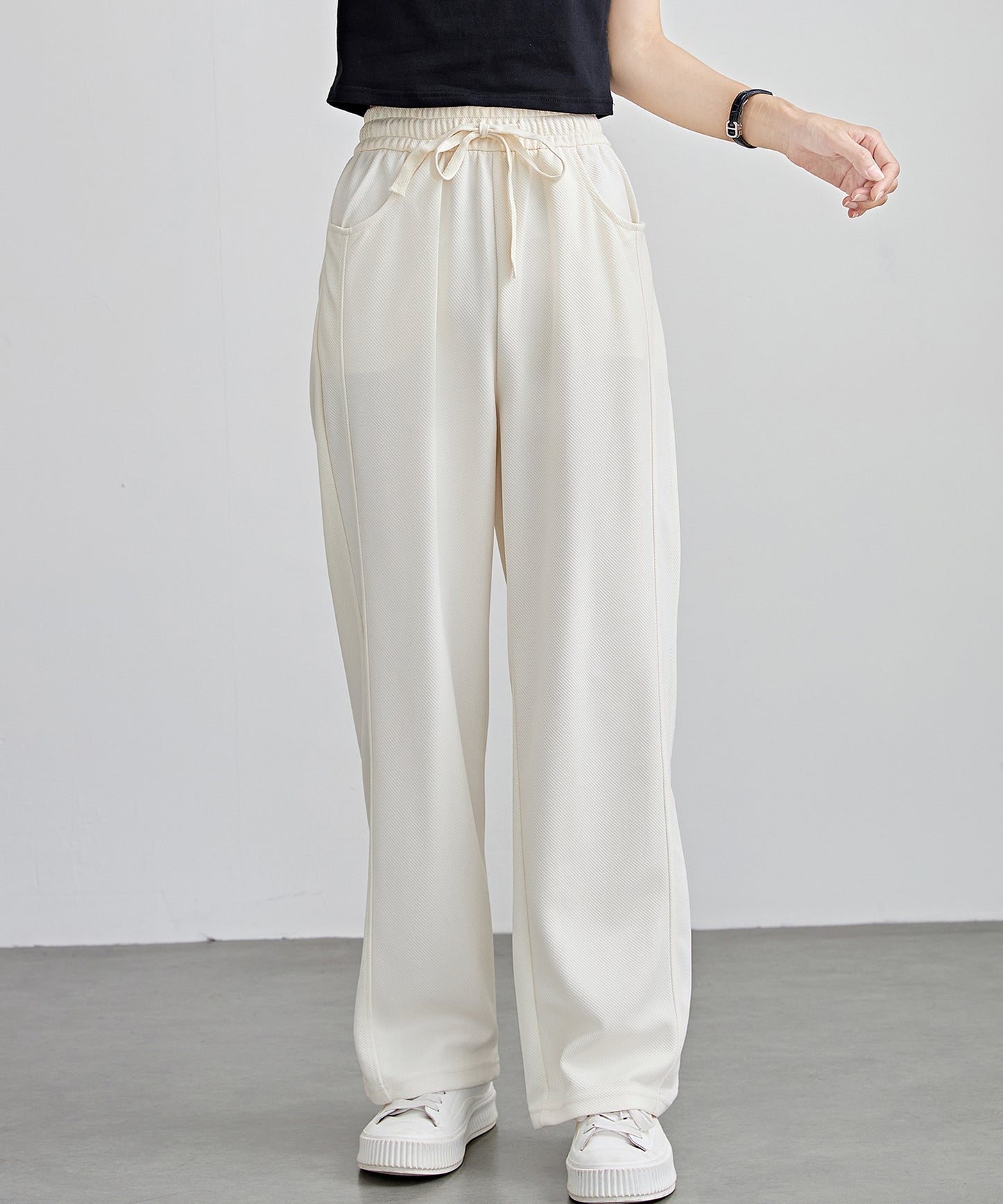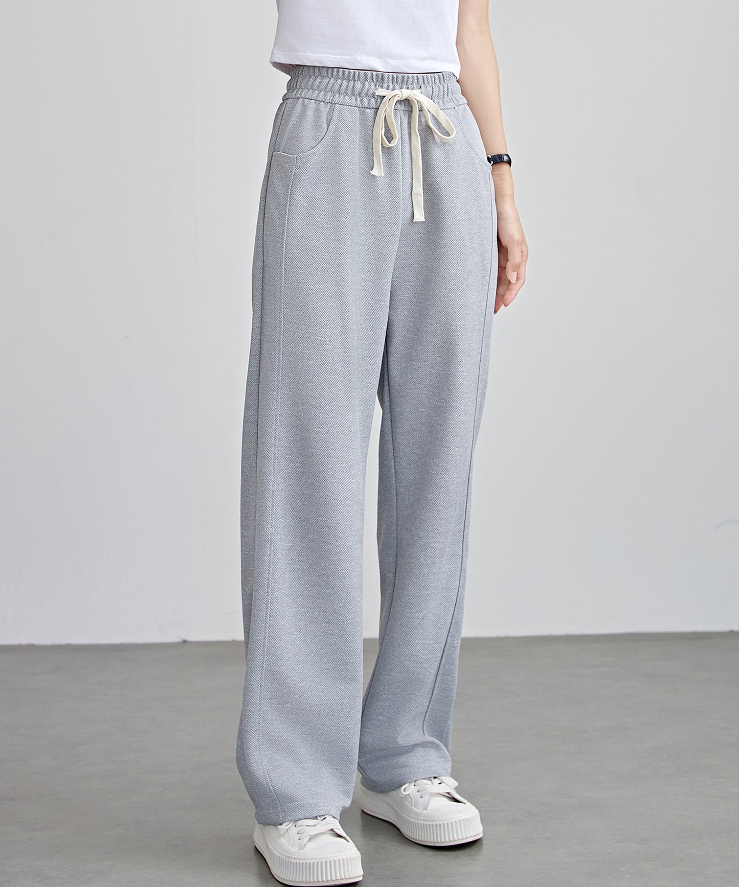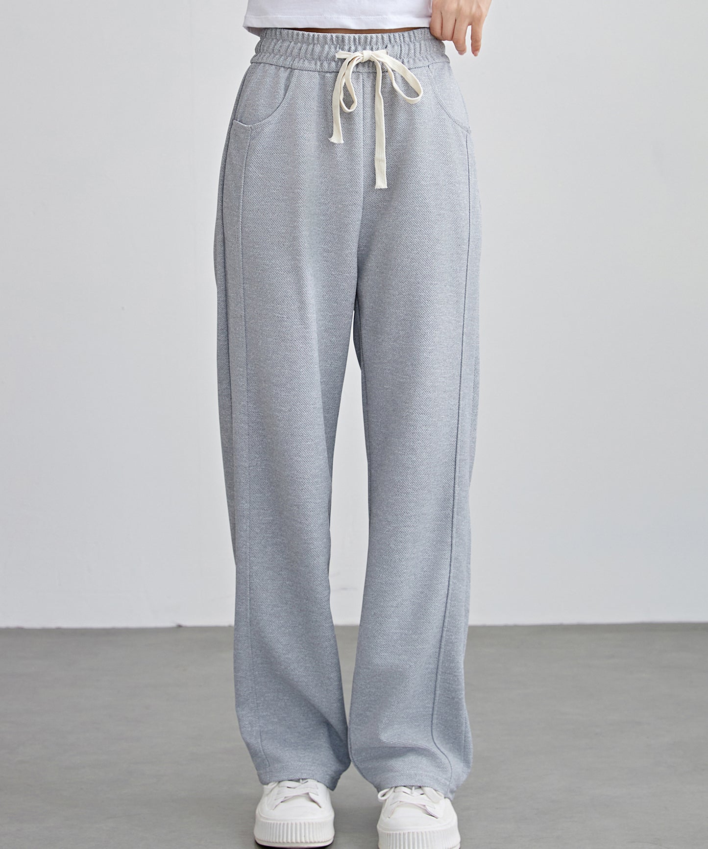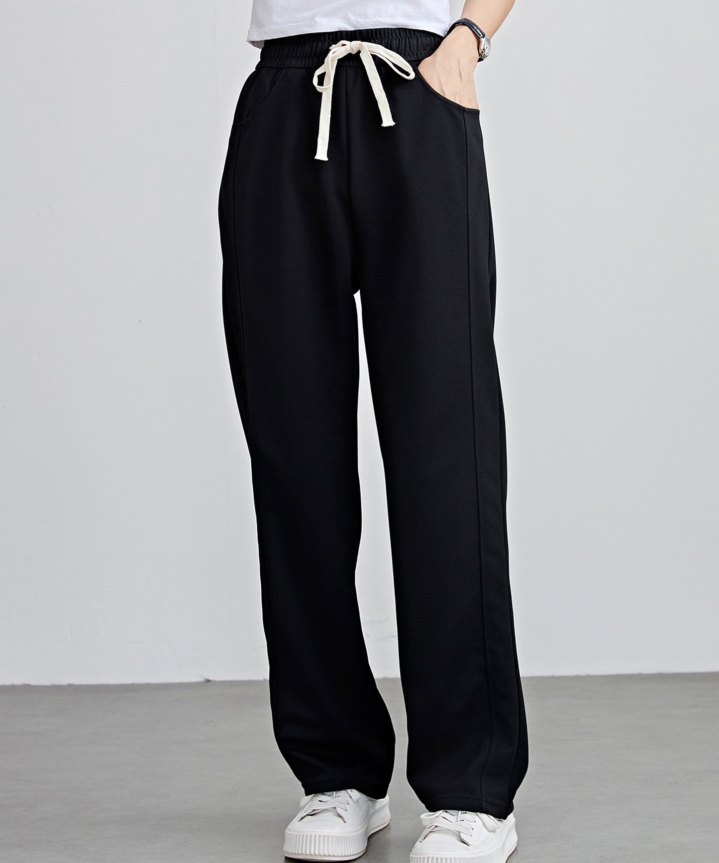 ソリッドカラー サイドライン ハイウエスト イージー スウェット パンツ