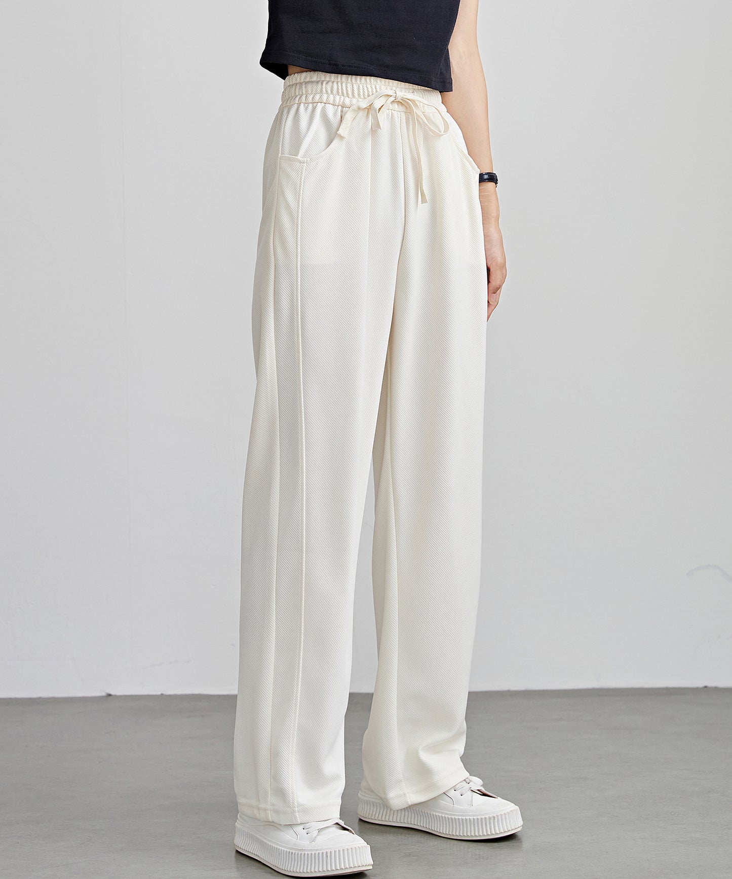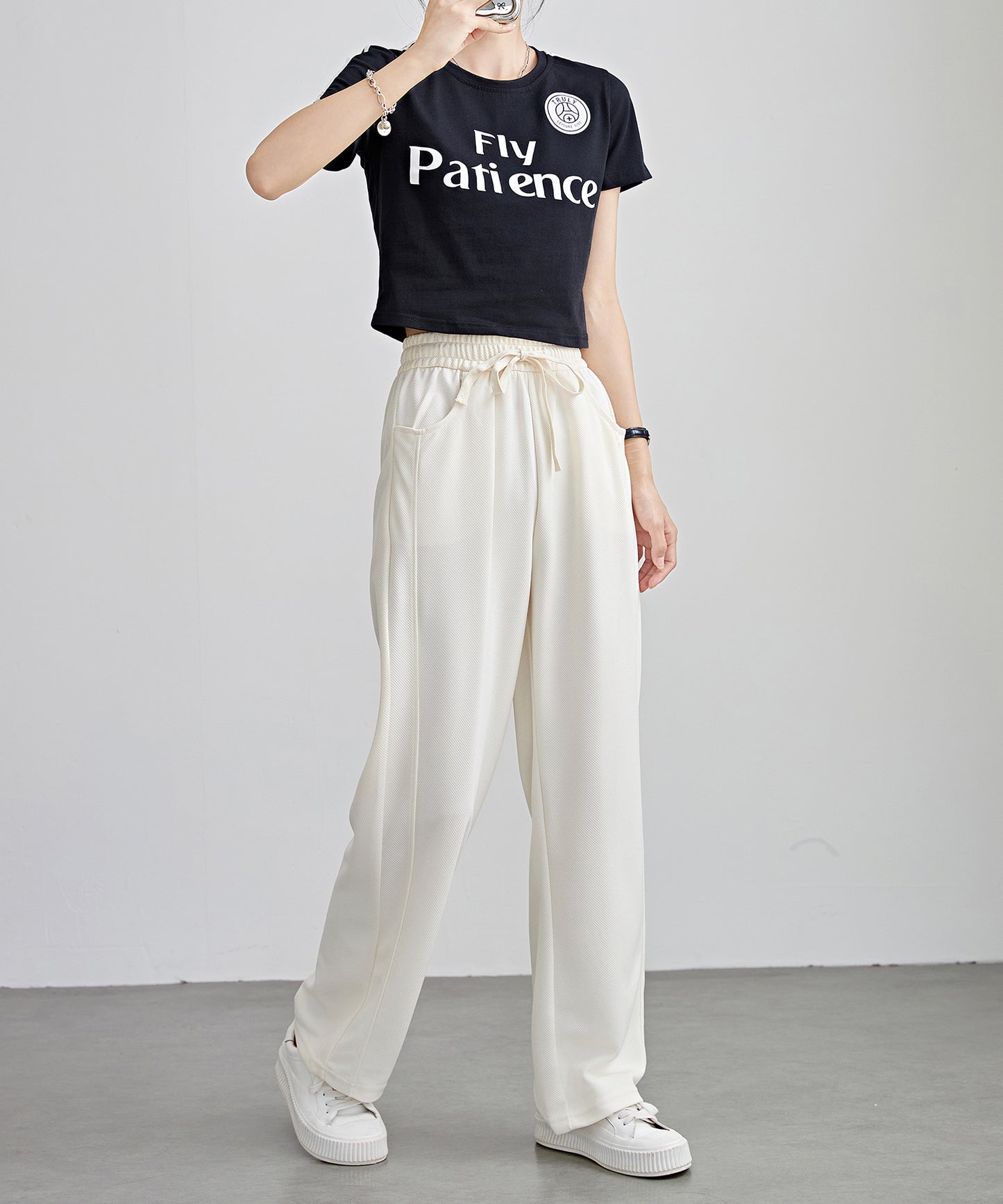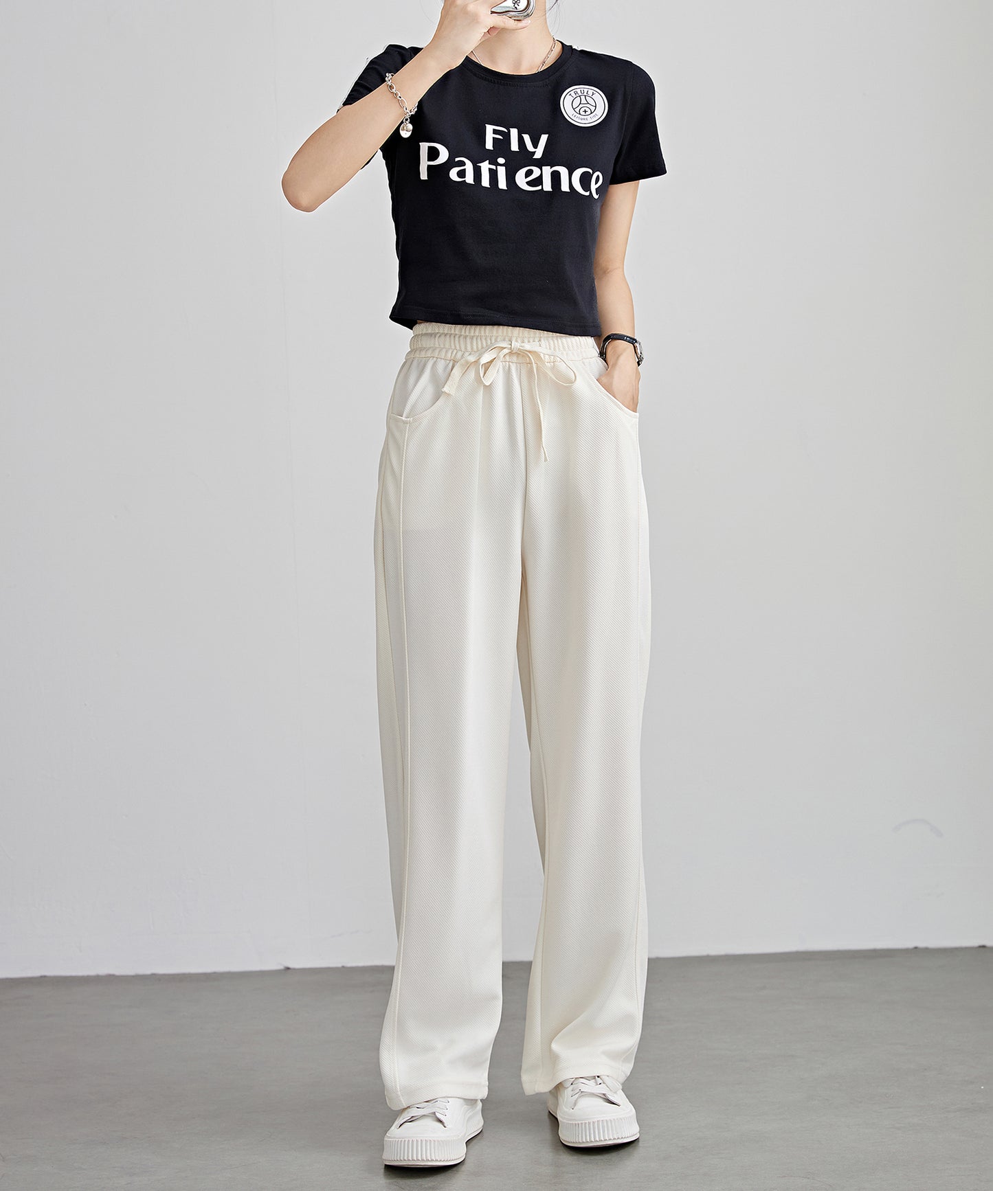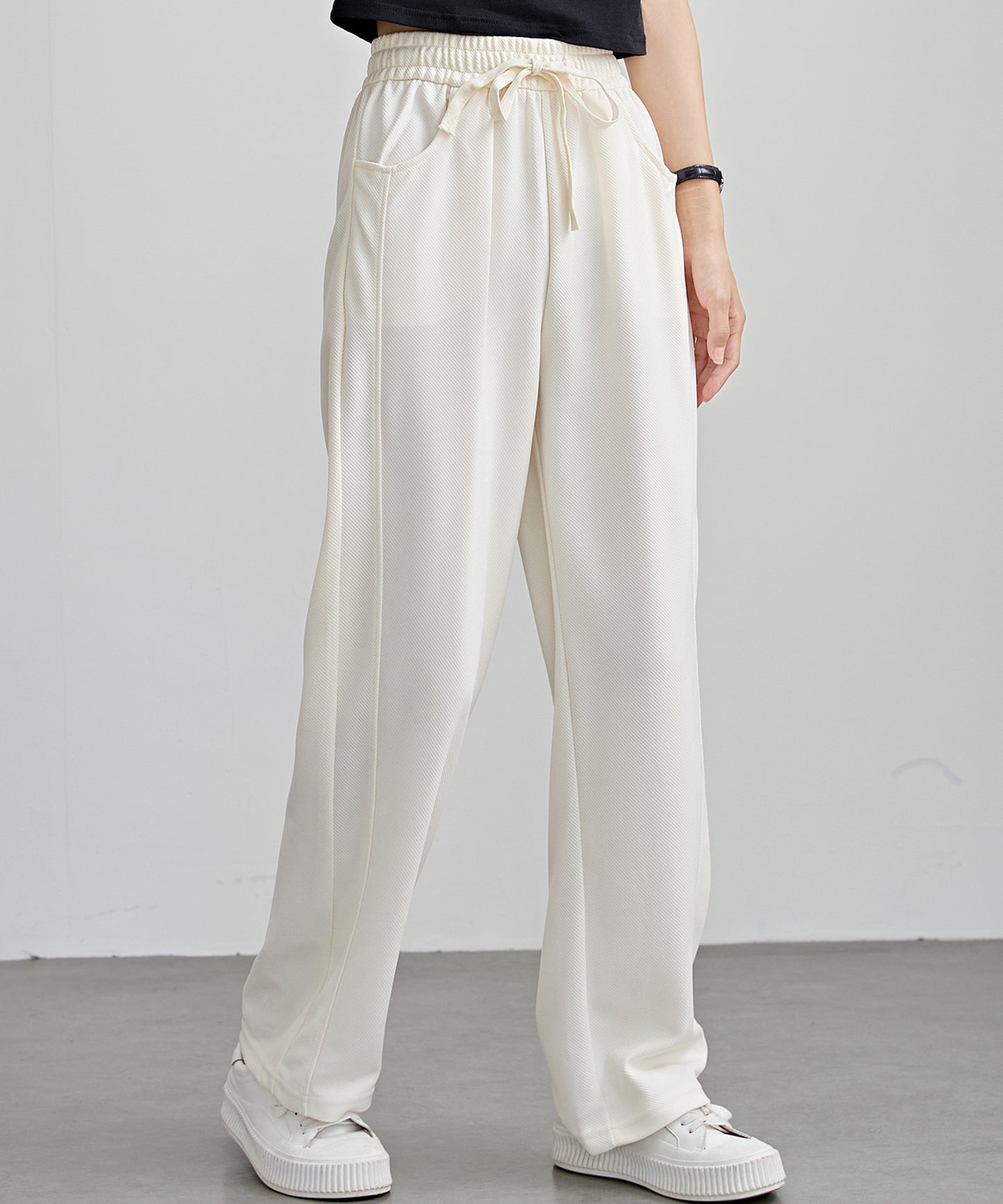 ソリッドカラー サイドライン ハイウエスト イージー スウェット パンツ