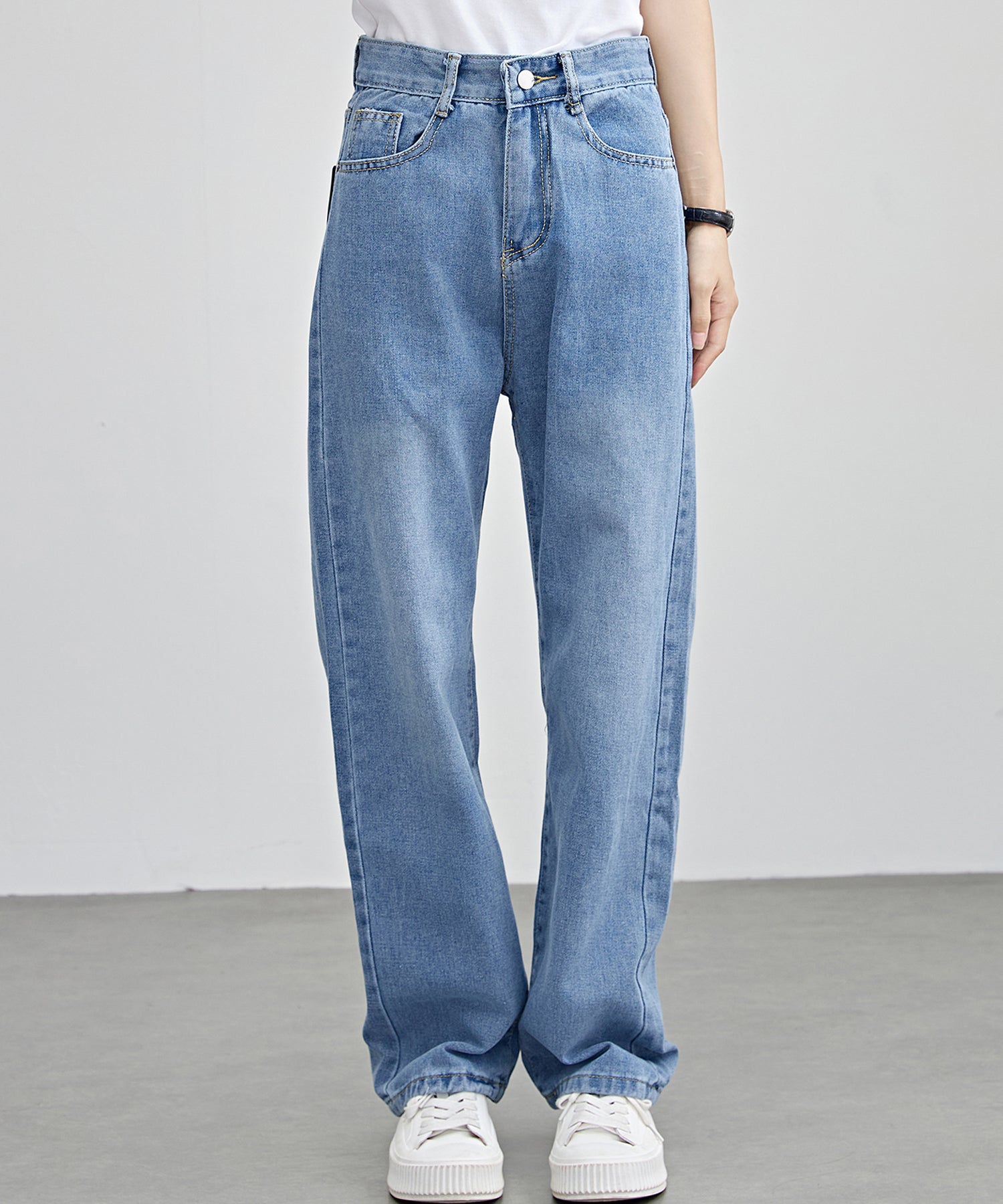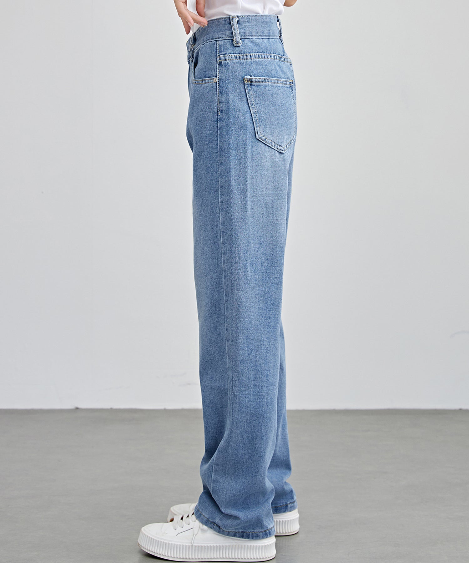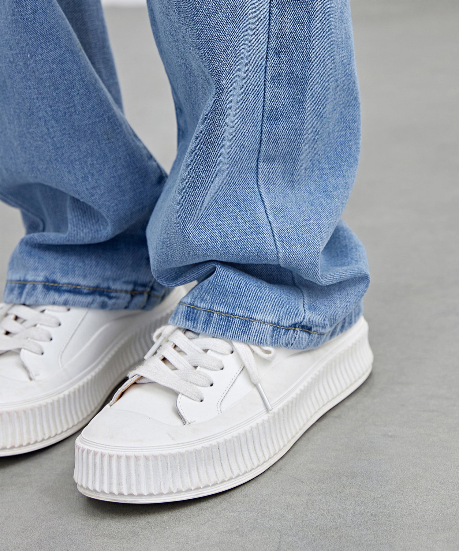 脚のラインを拾わないゆるめのセミワイドシルエットで、ラフな着こなしが叶うデニムパンツ。