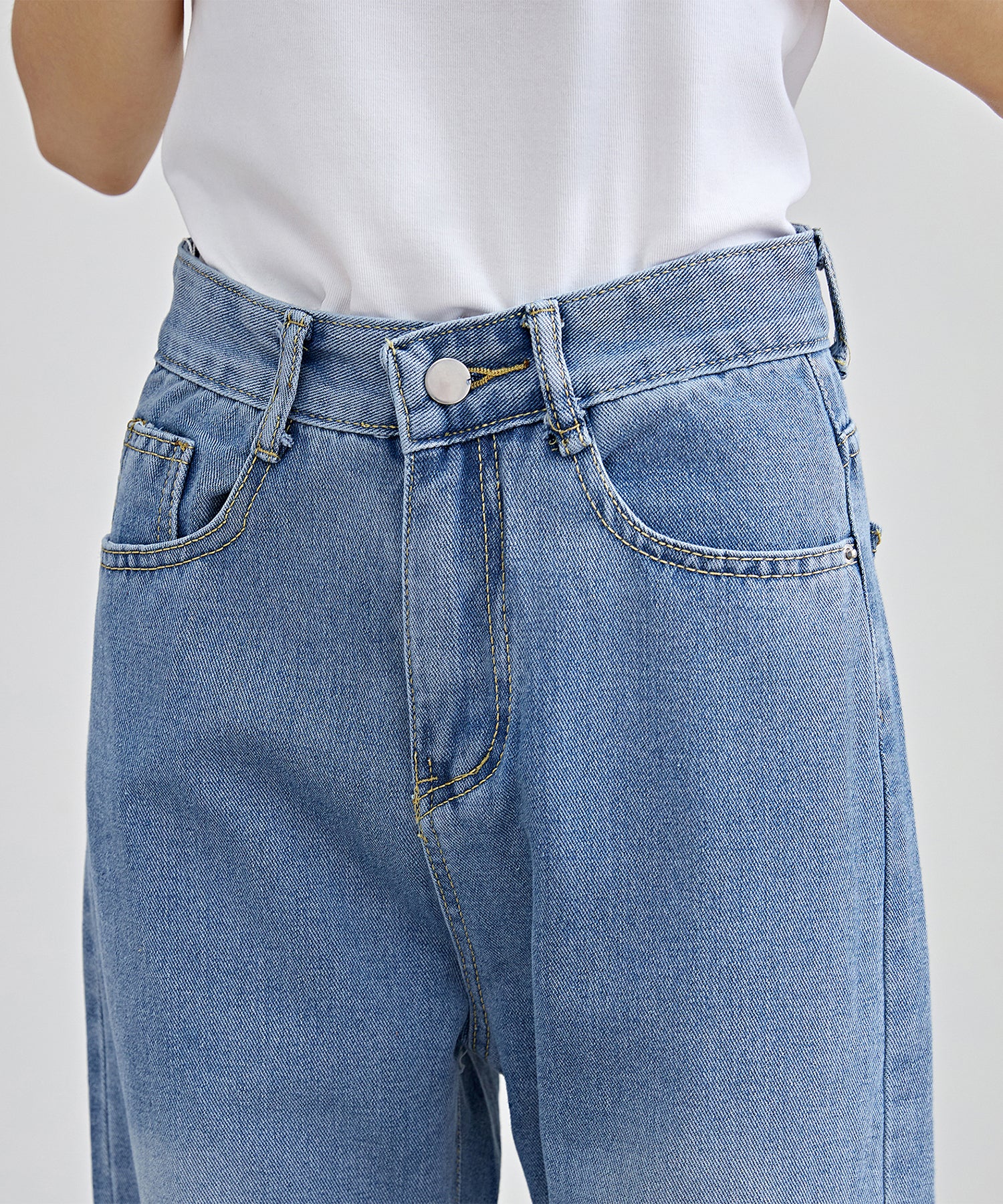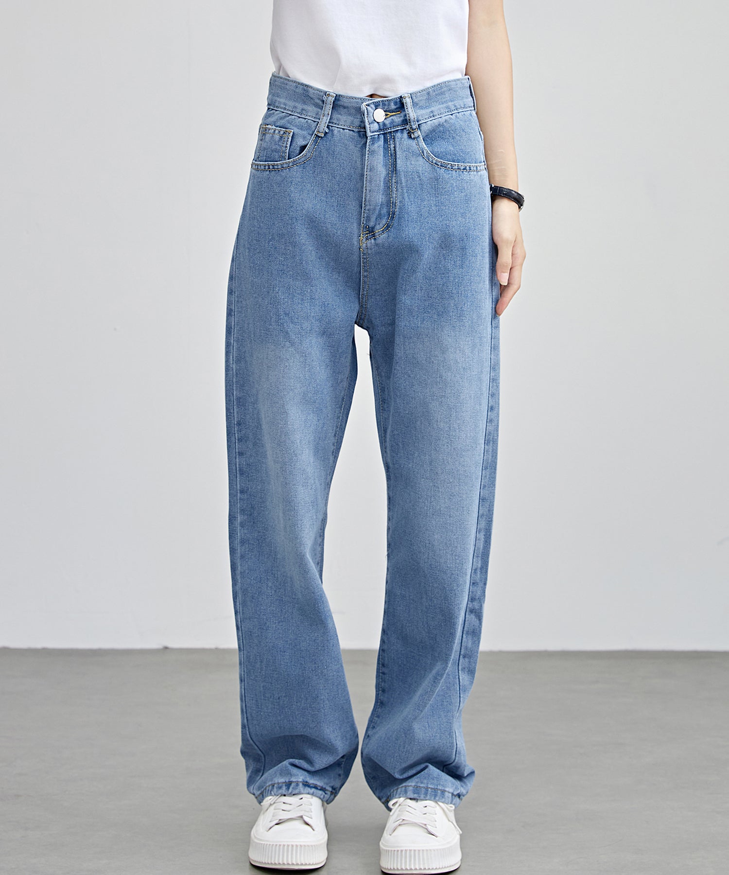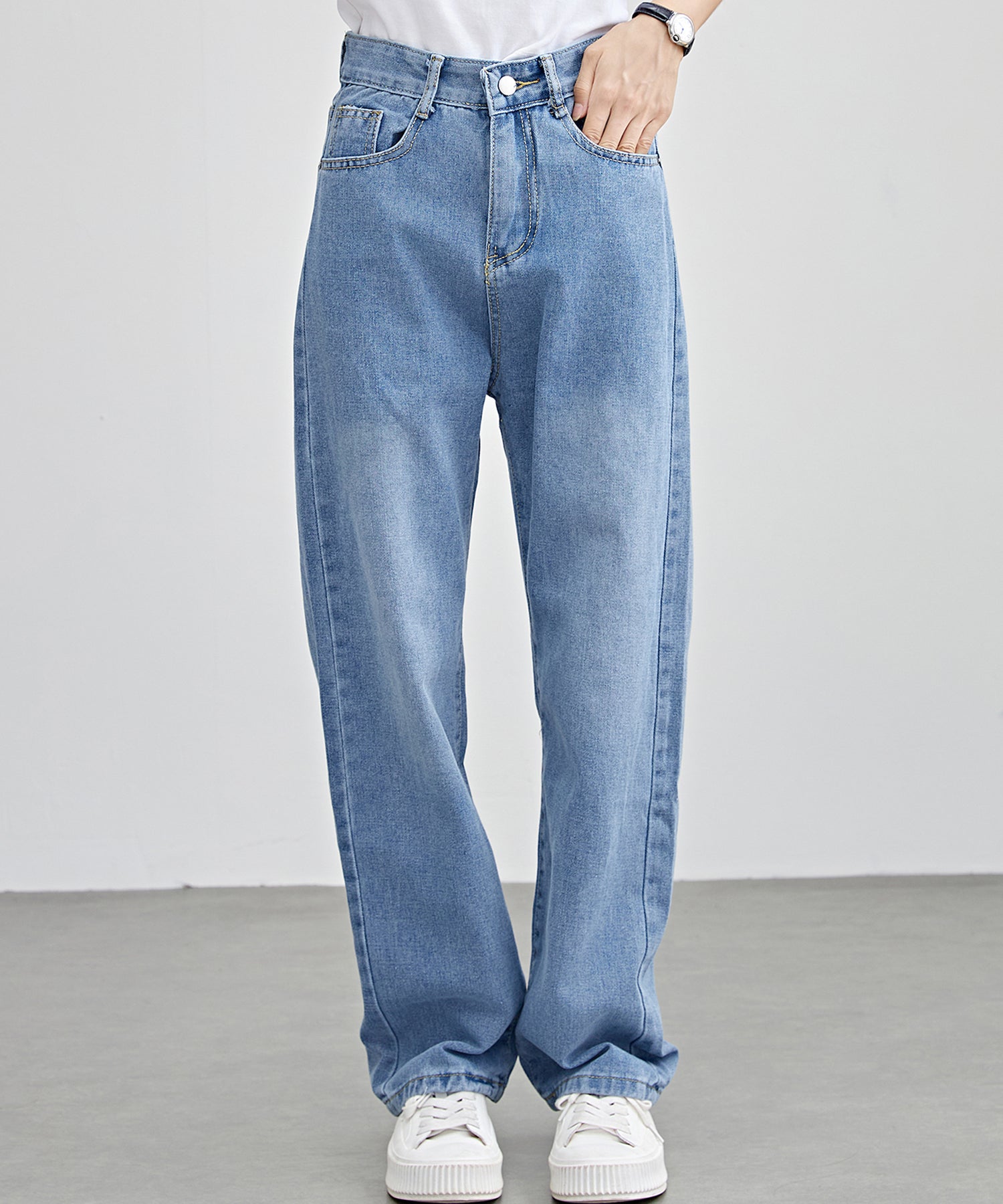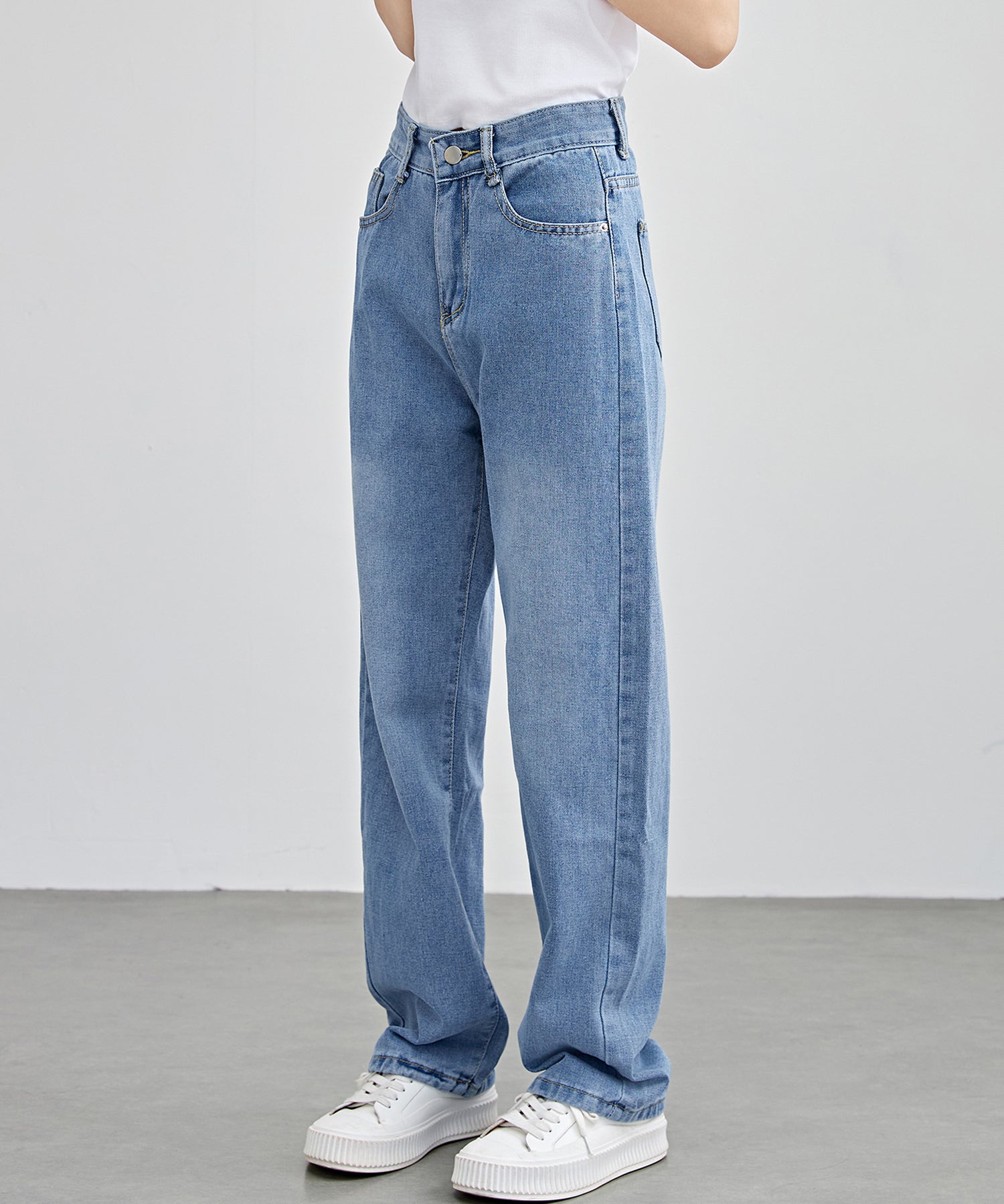 脚のラインを拾わないゆるめのセミワイドシルエットで、ラフな着こなしが叶うデニムパンツ。