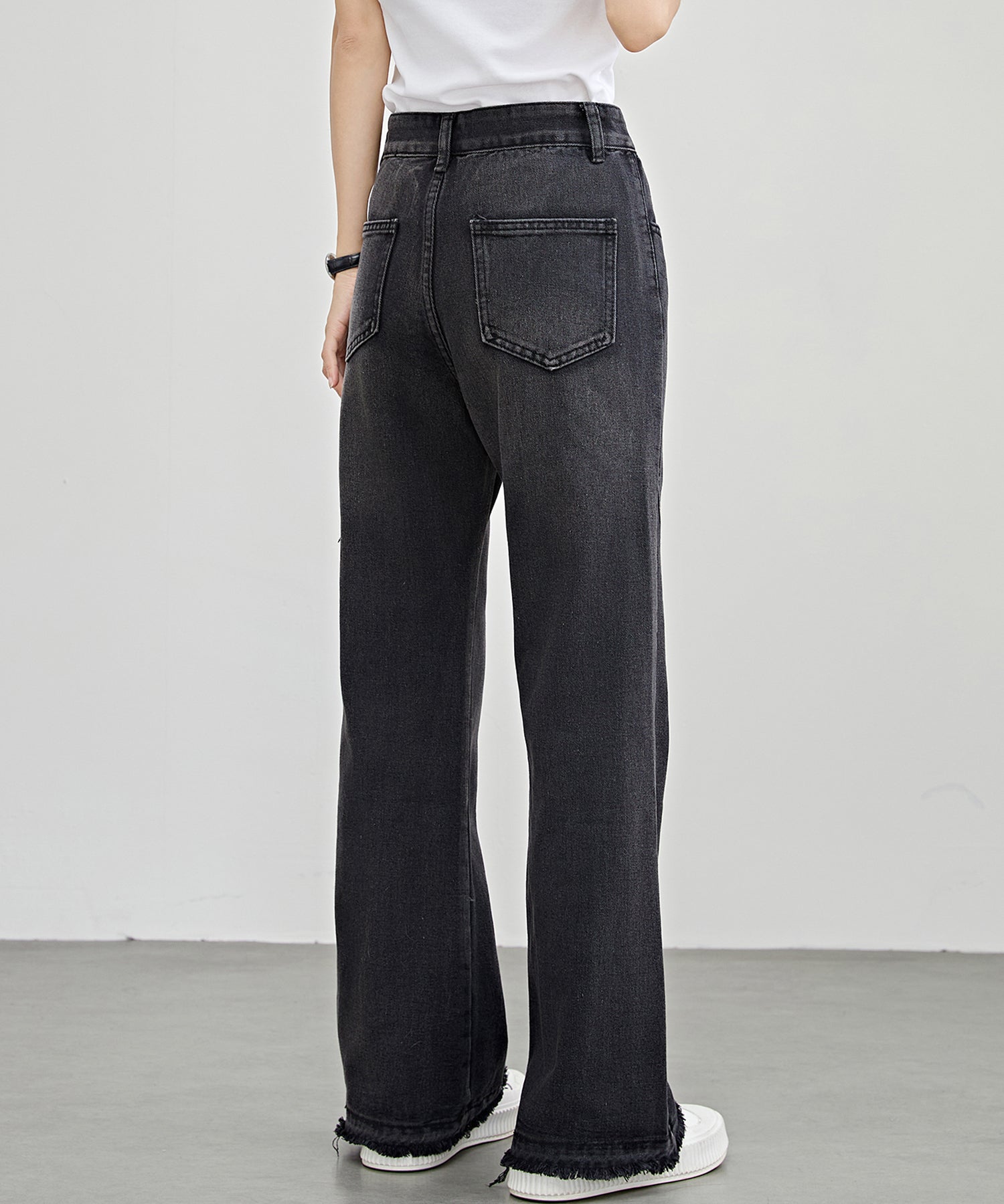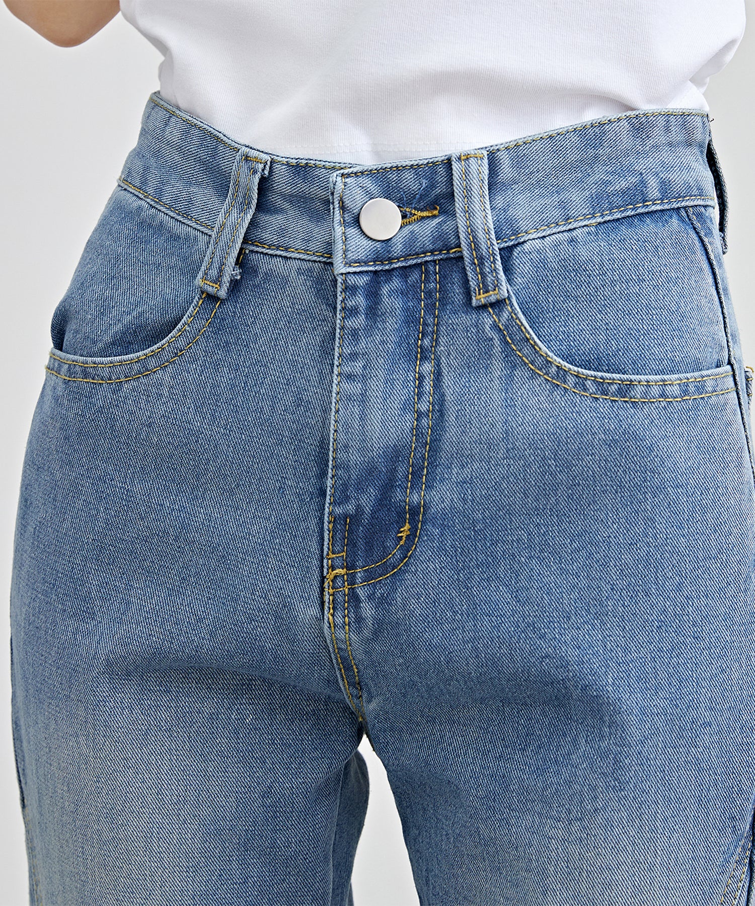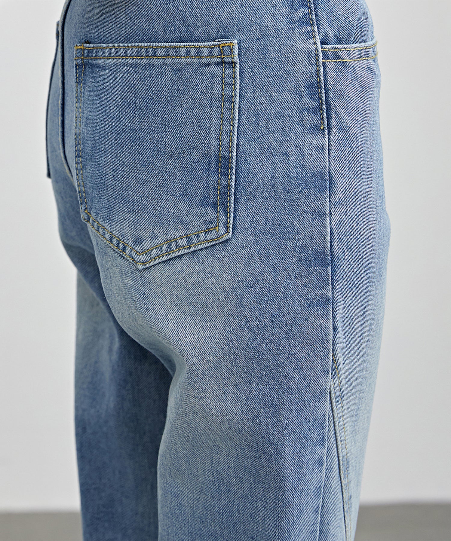 安心感のある穿き心地と脚長の視覚効果がうれしい、ハイウエストデニムパンツ。