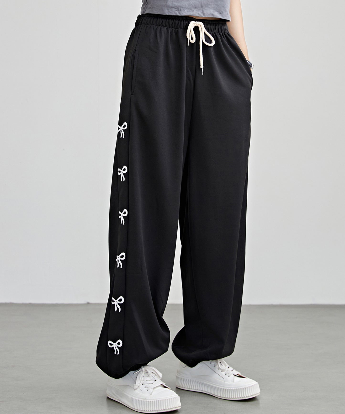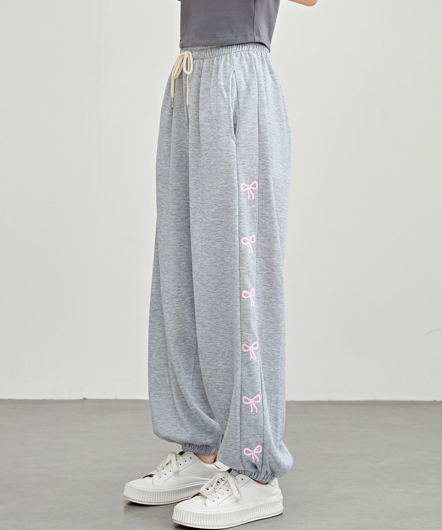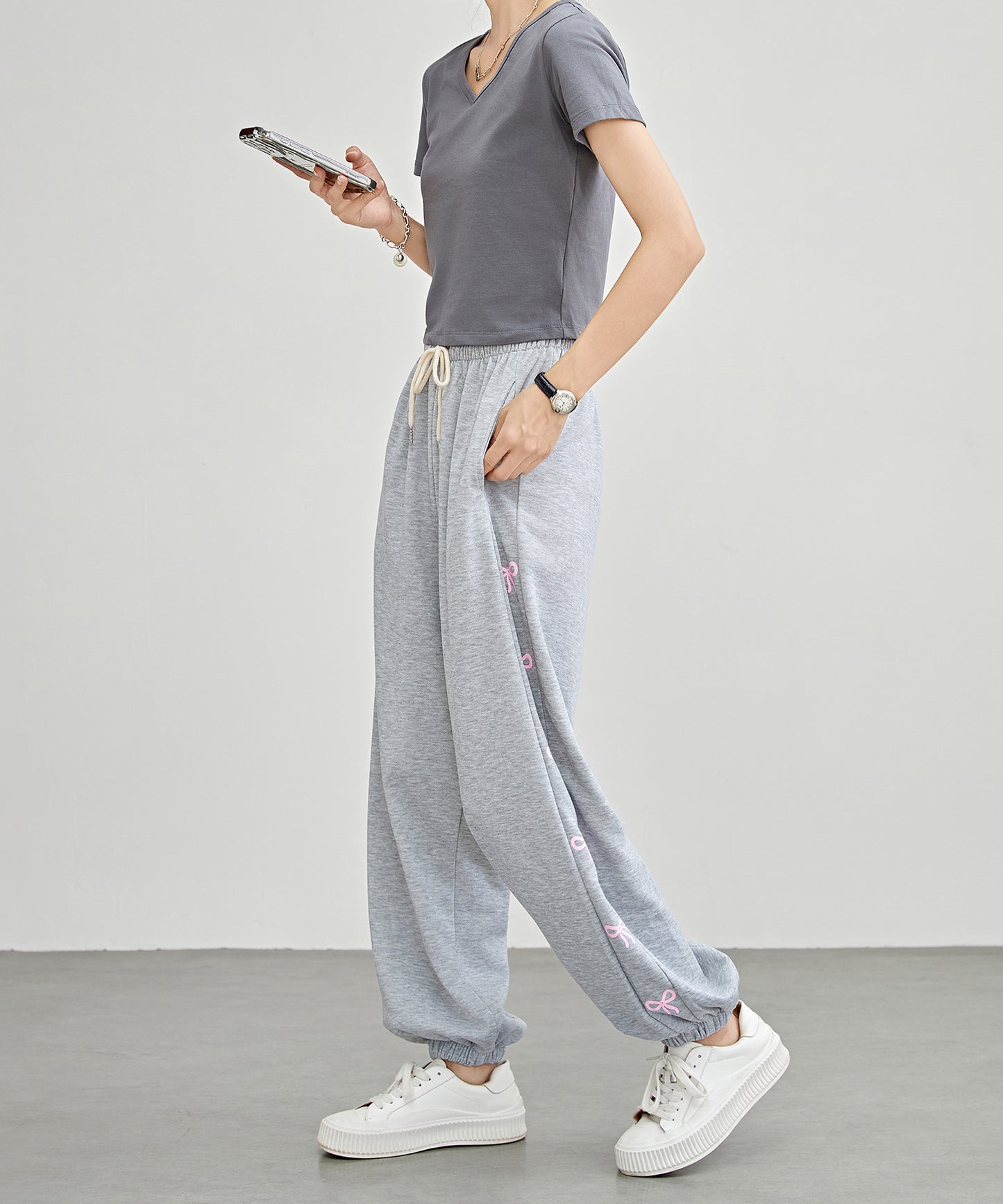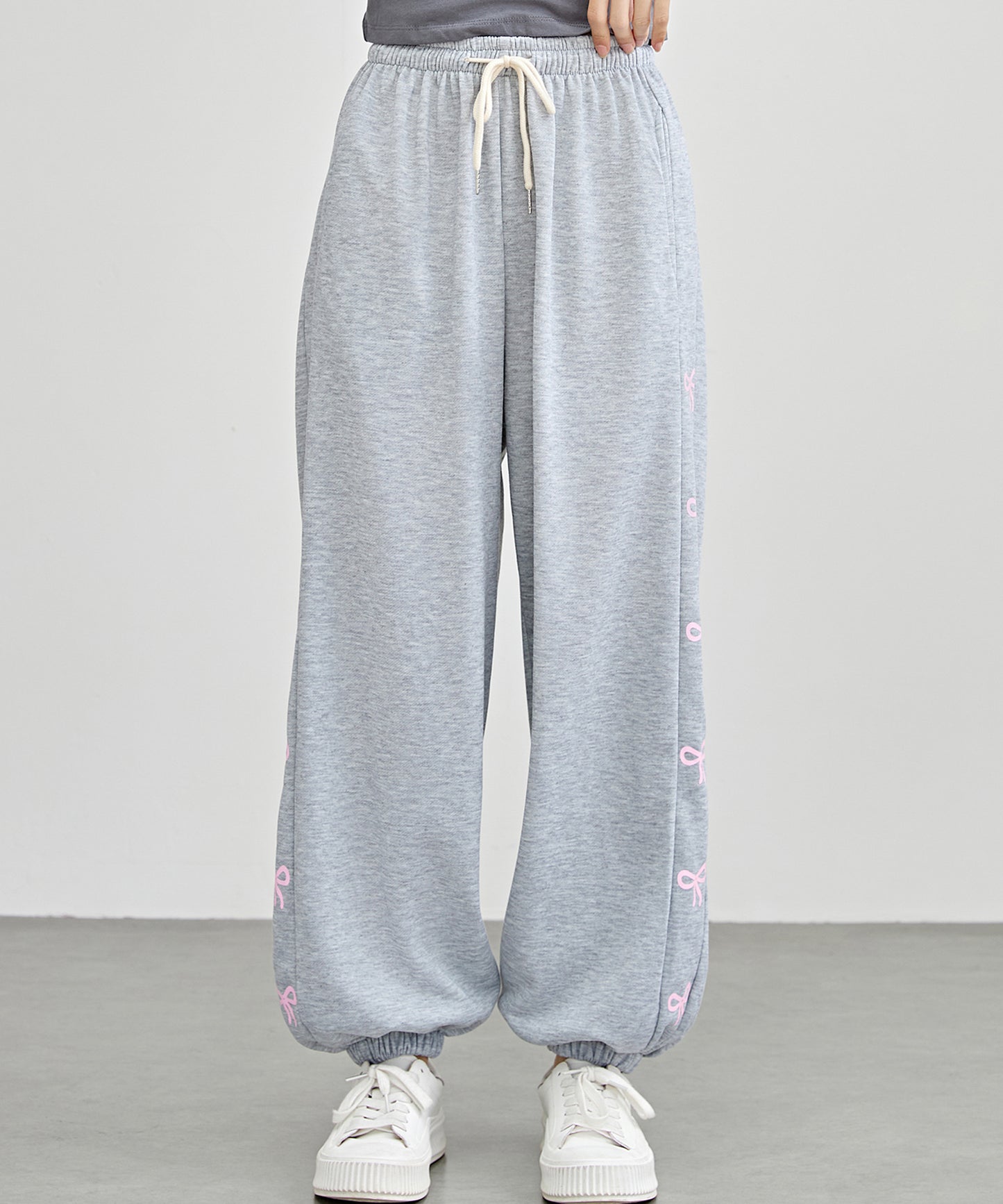 ウエストゴムのリラクシーな着用感が心地良い、スウェットパンツ。