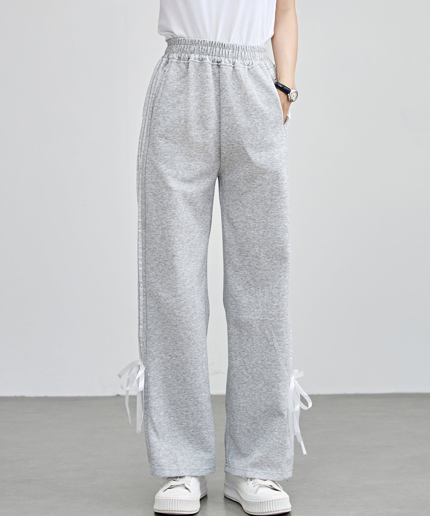 脚のラインを拾わないゆったりとしたシルエットが心地よく、休日のリラックスウエアにもおすすめの1枚です。