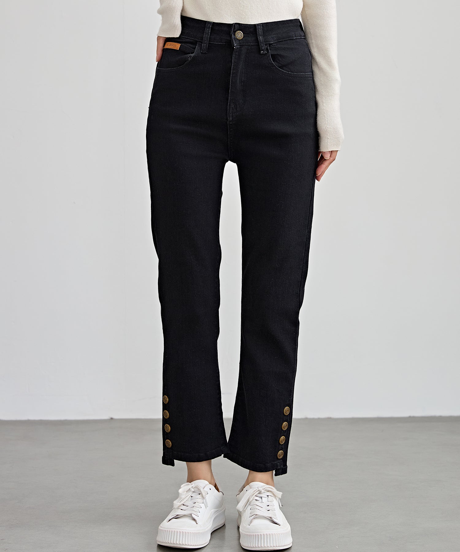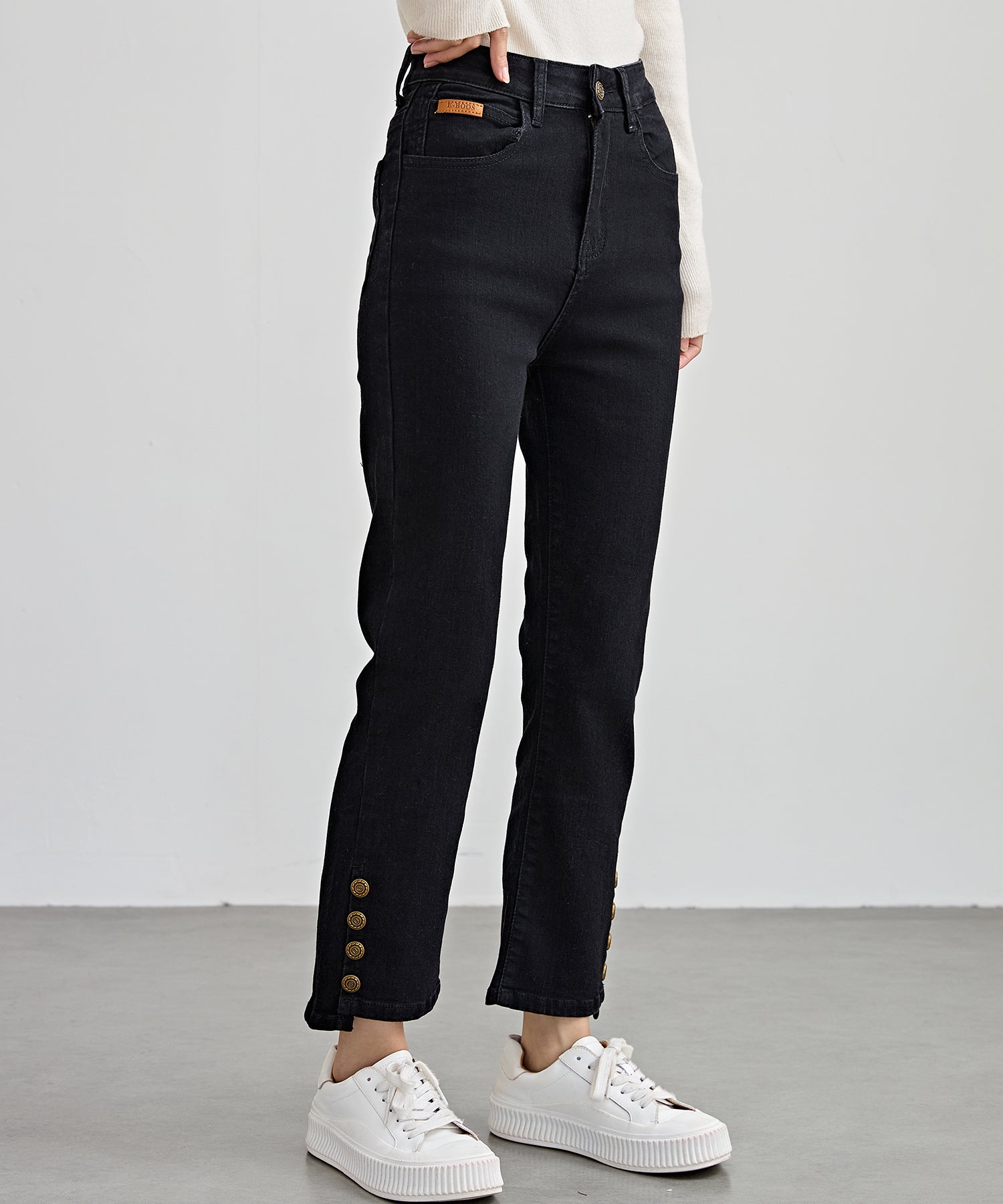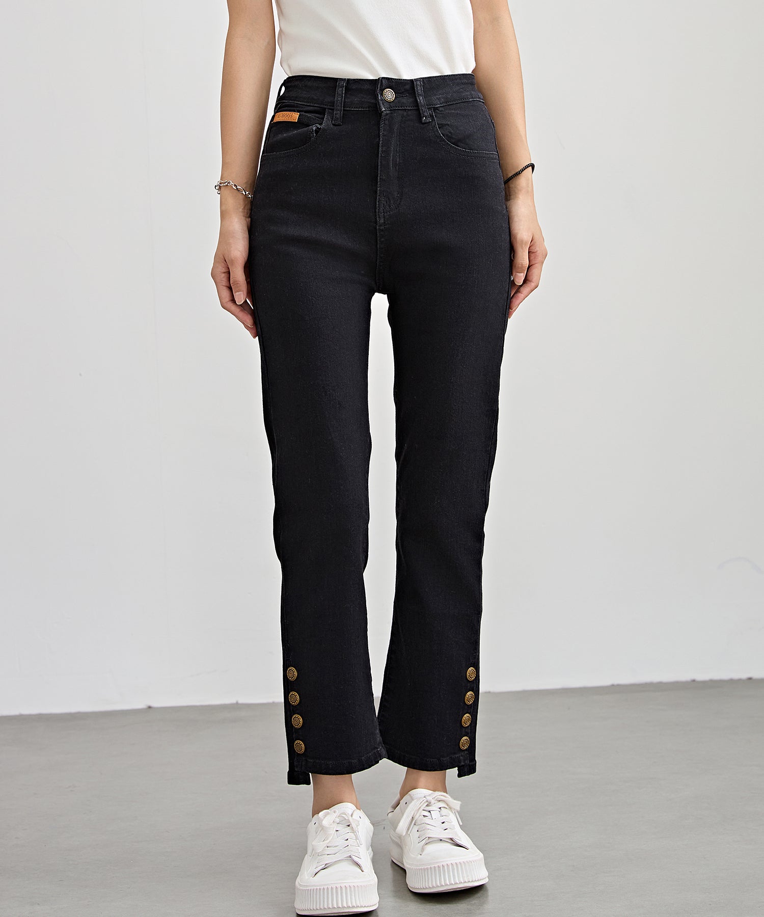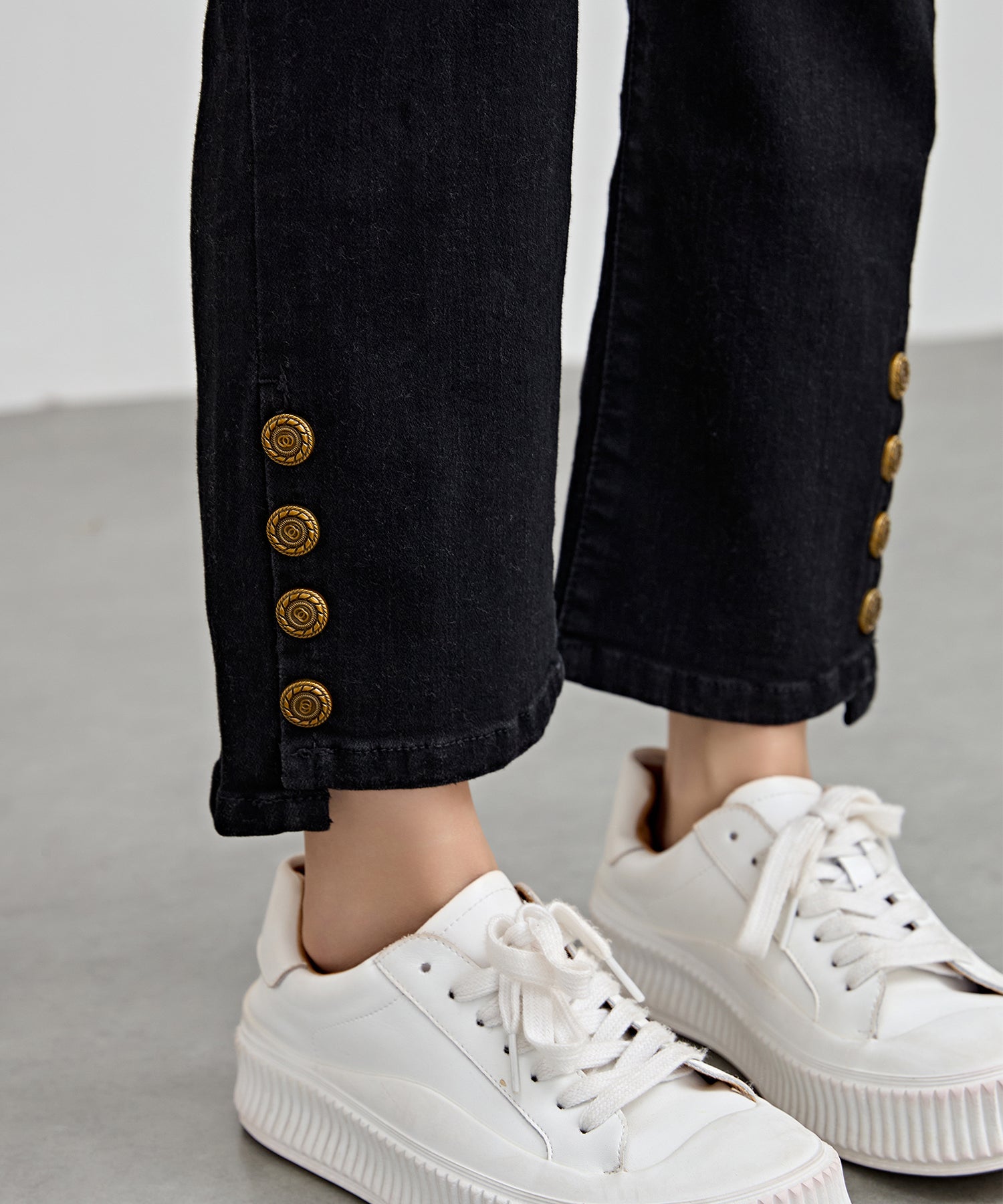 ハイウエスト サイドボタン 9分丈 デニム パンツ