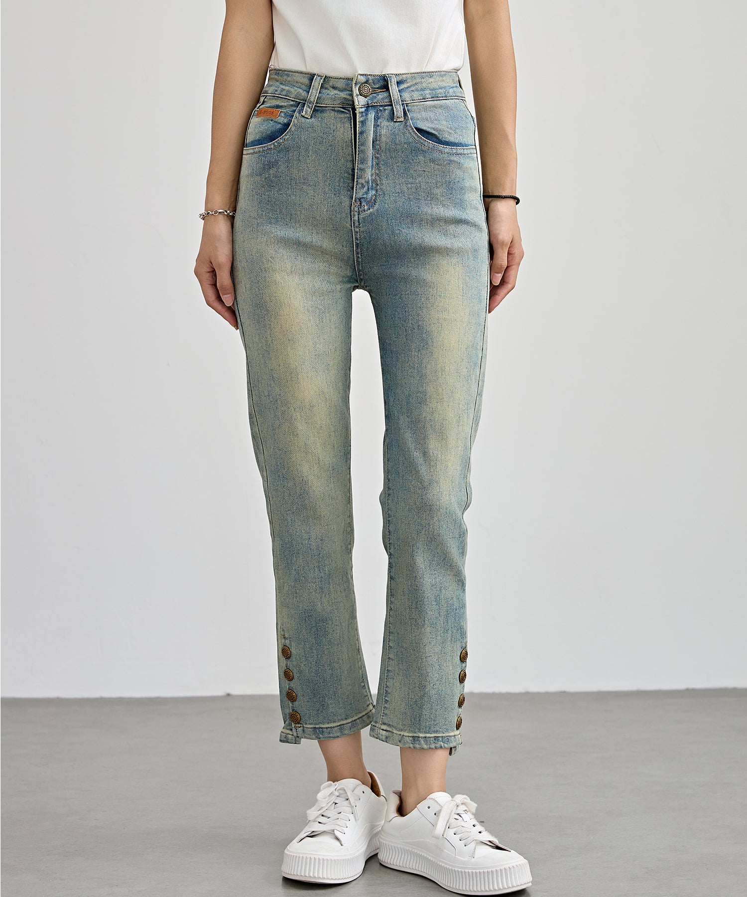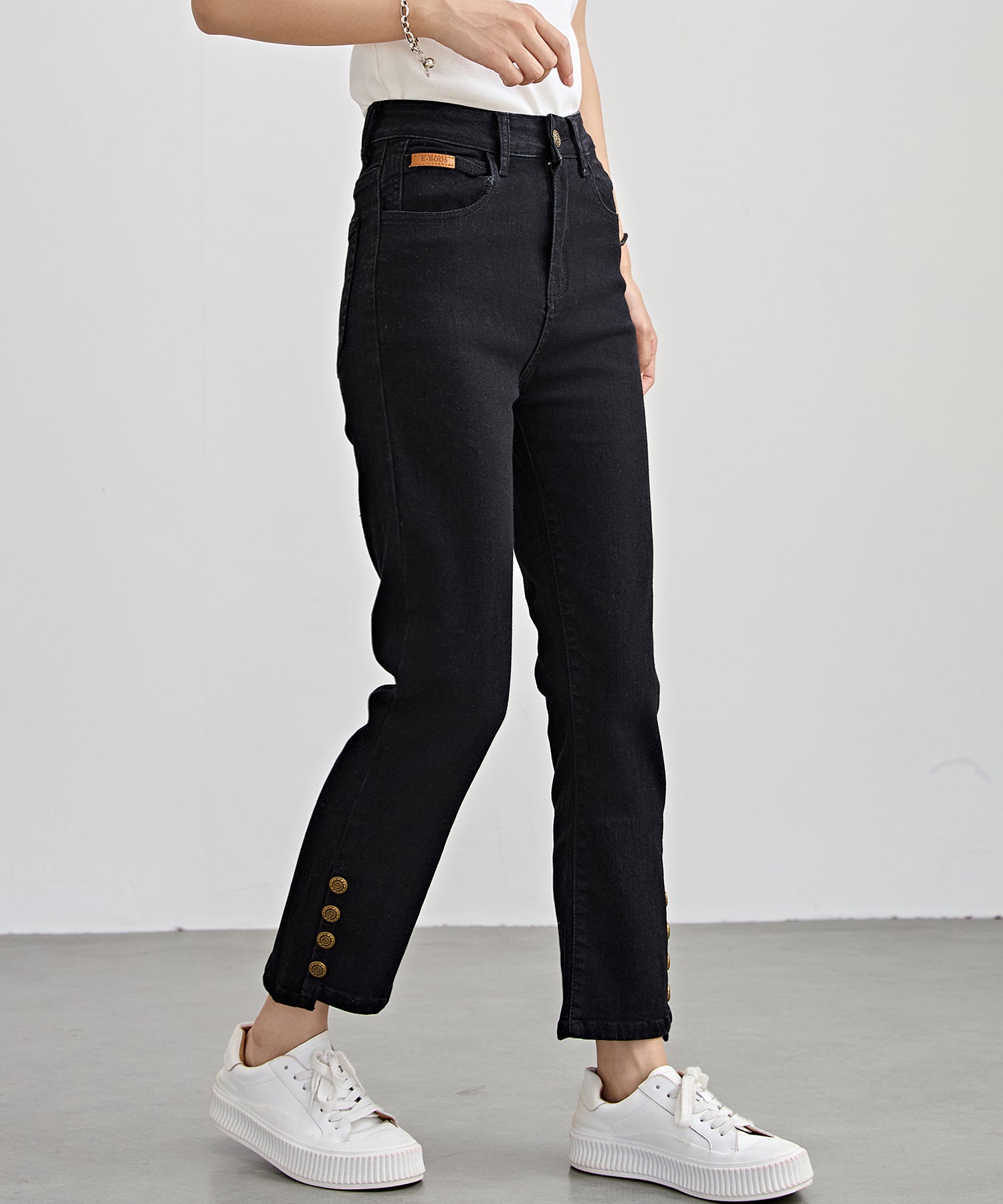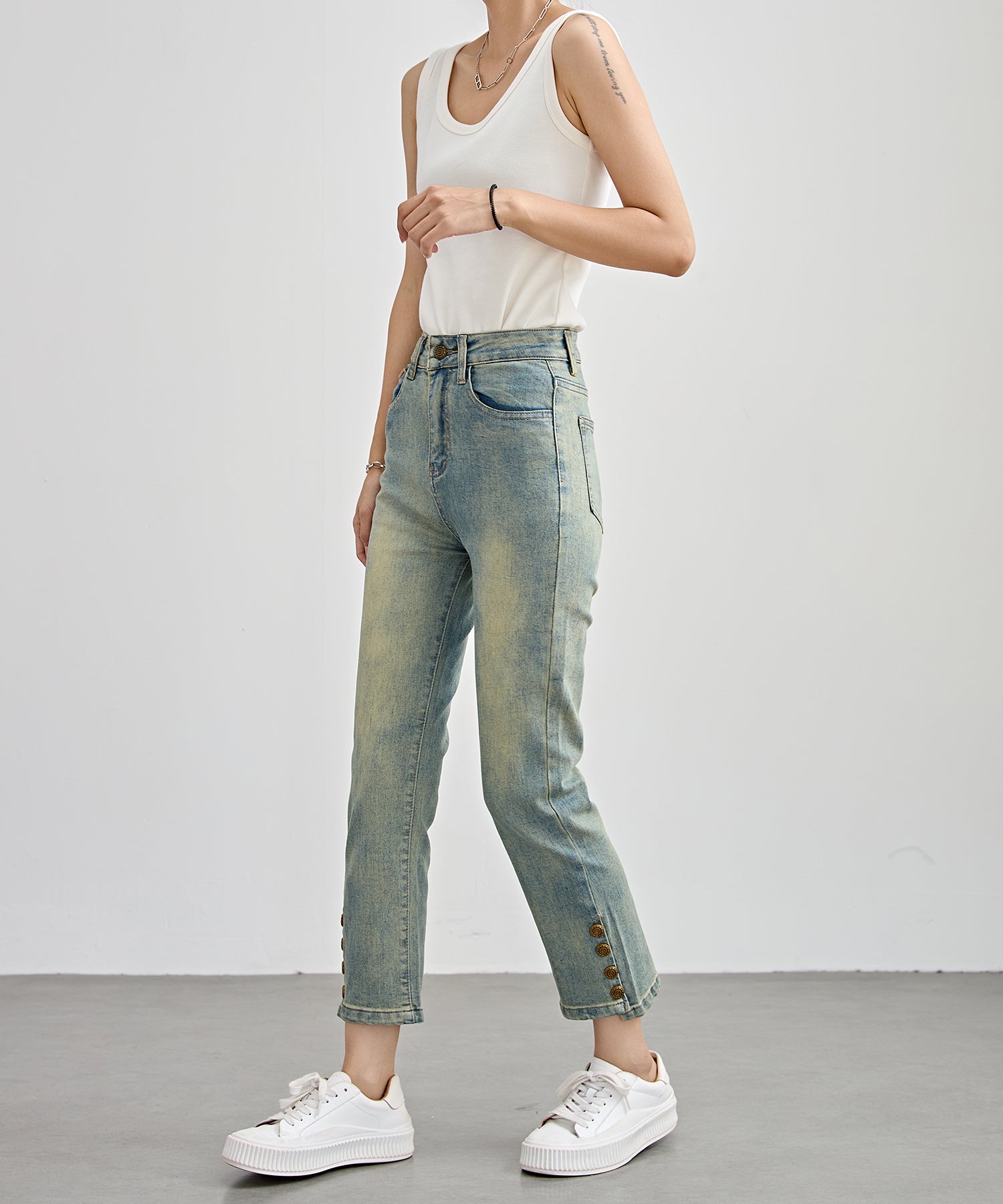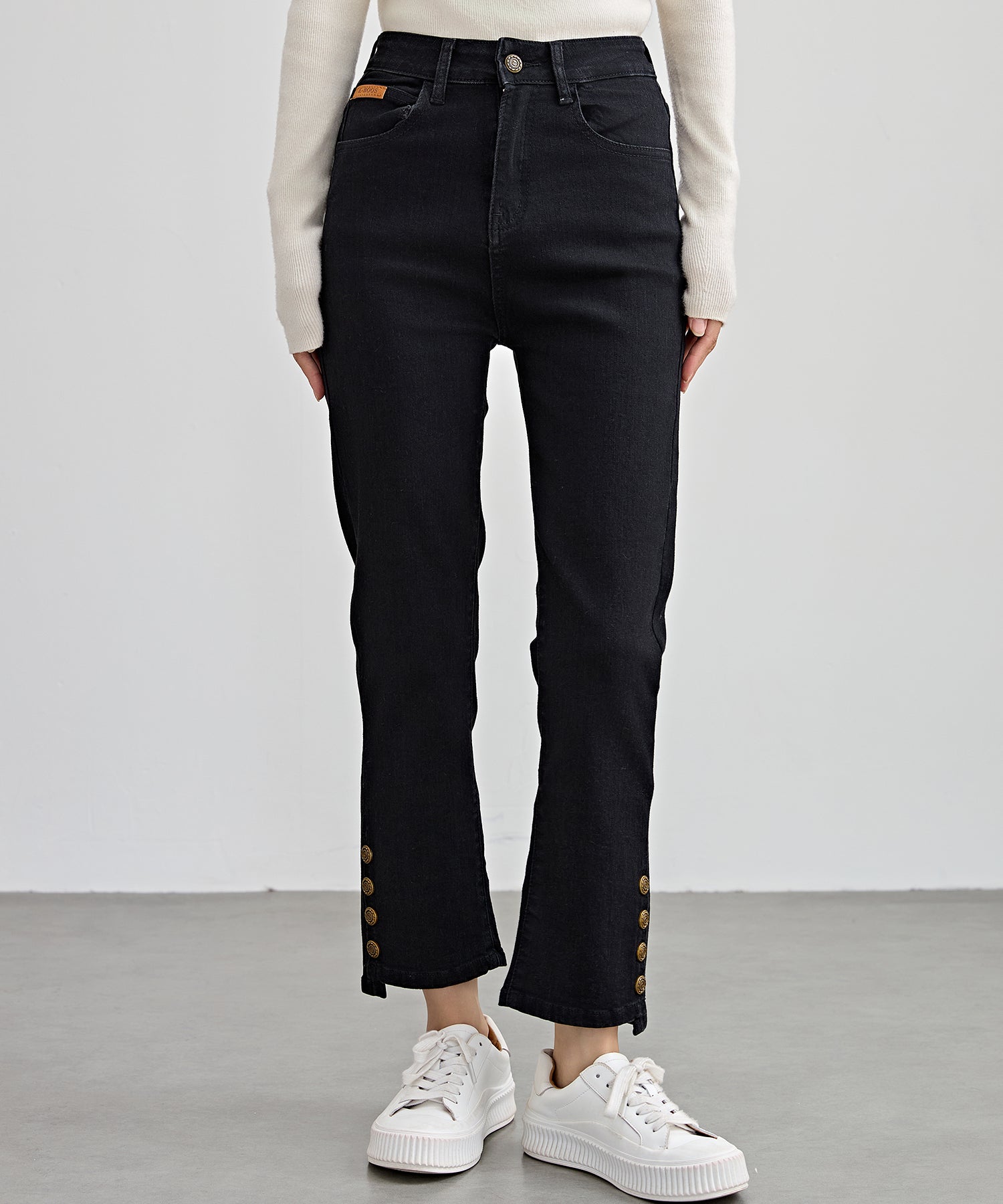 ハイウエスト サイドボタン 9分丈 デニム パンツ