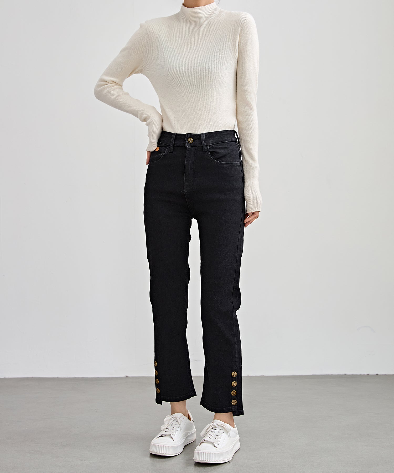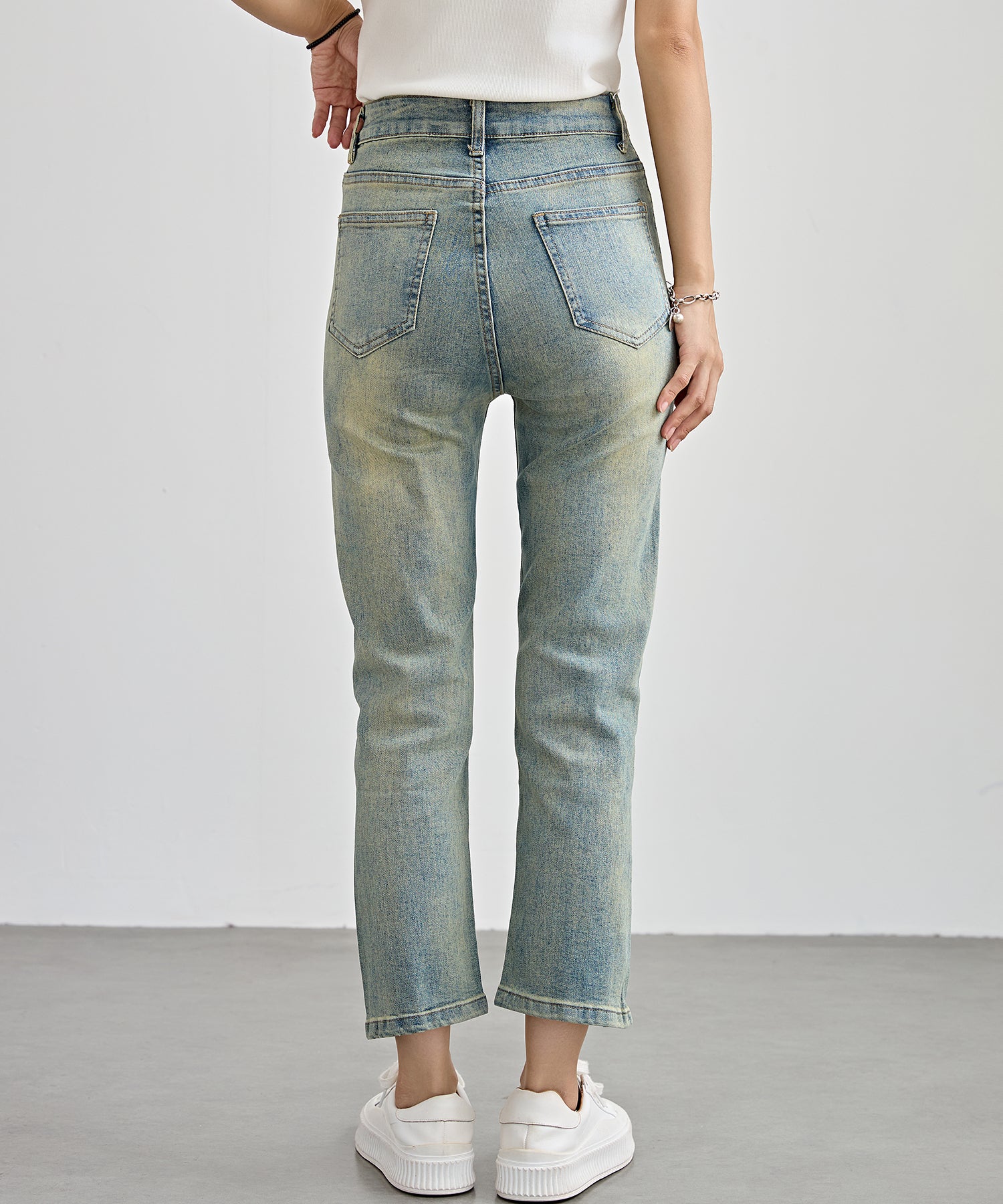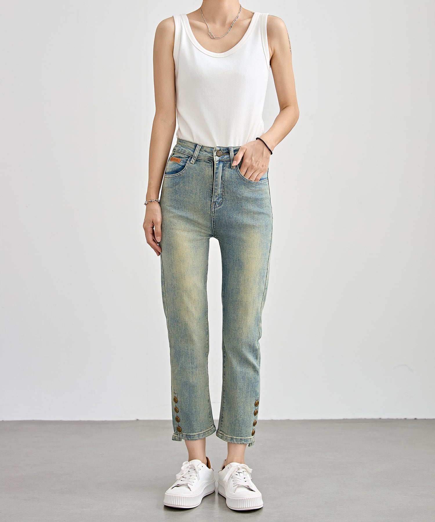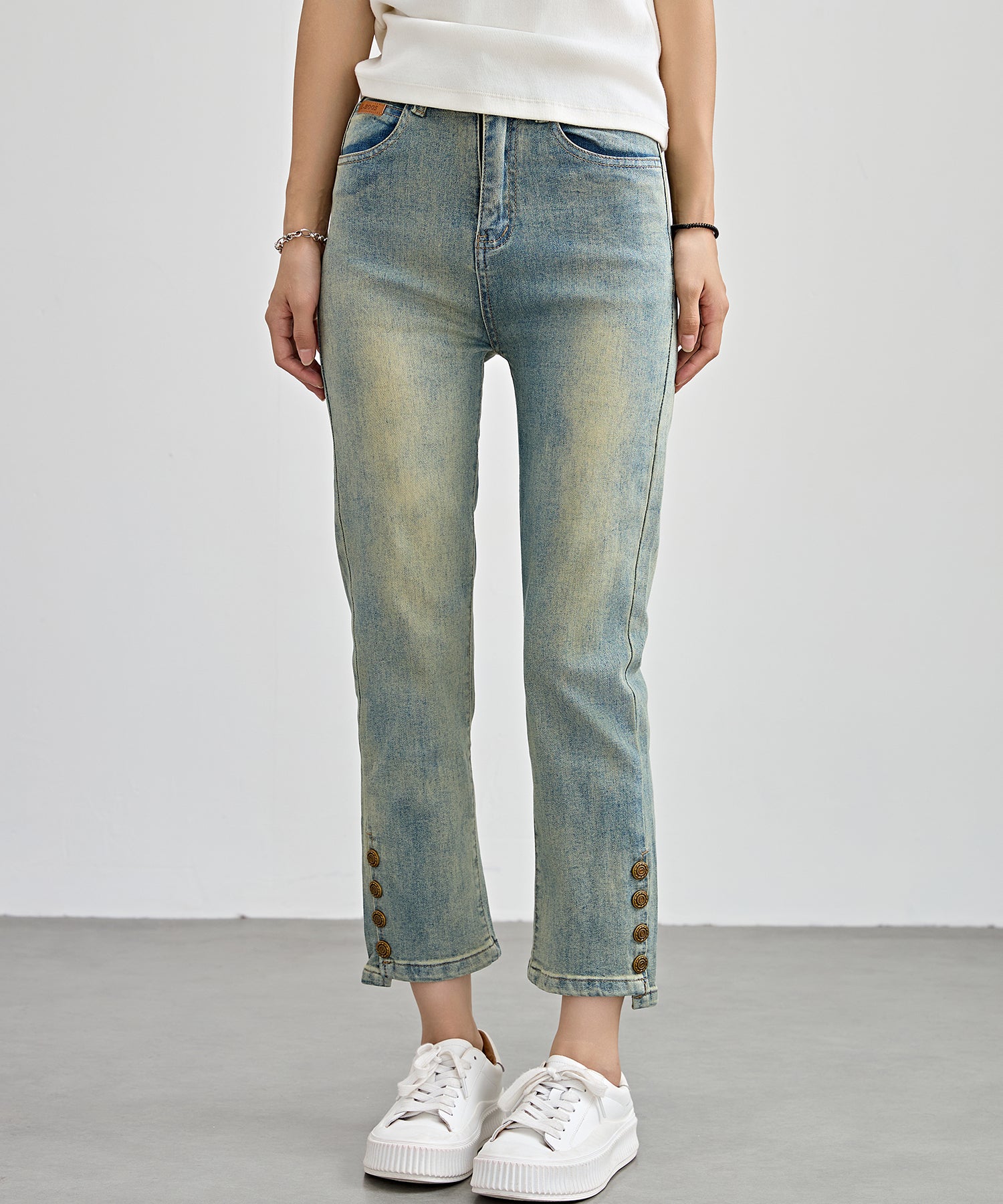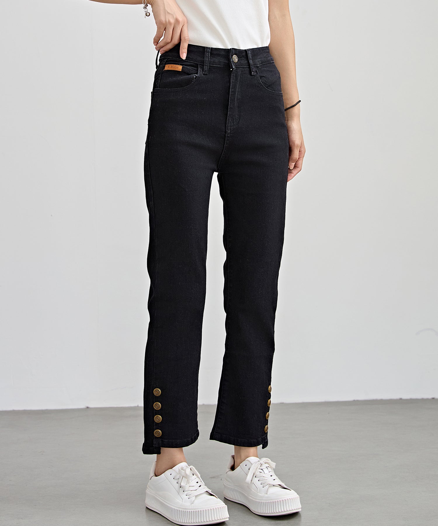 ハイウエスト サイドボタン 9分丈 デニム パンツ