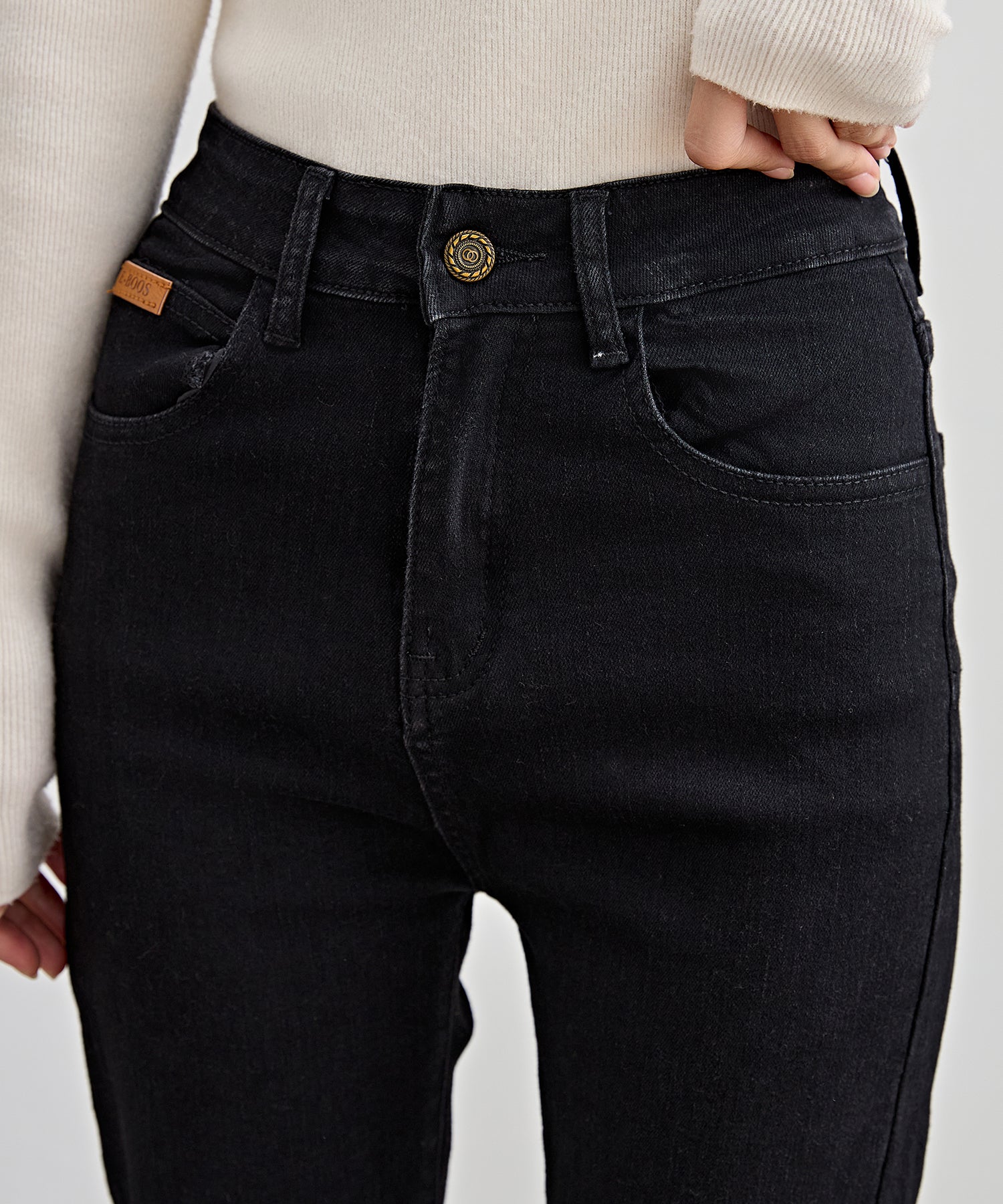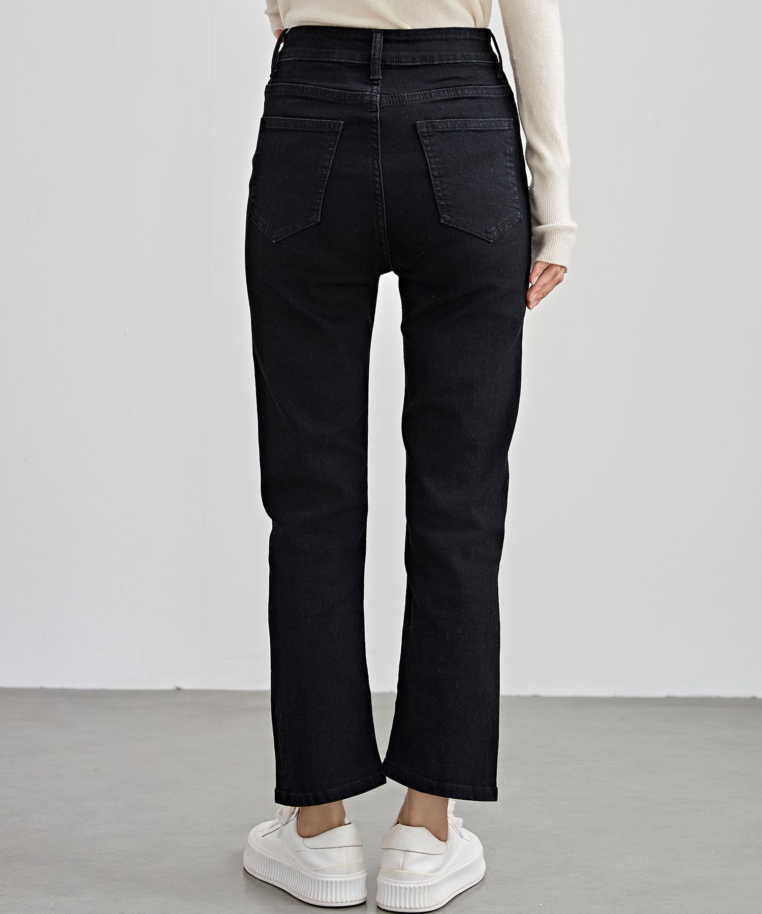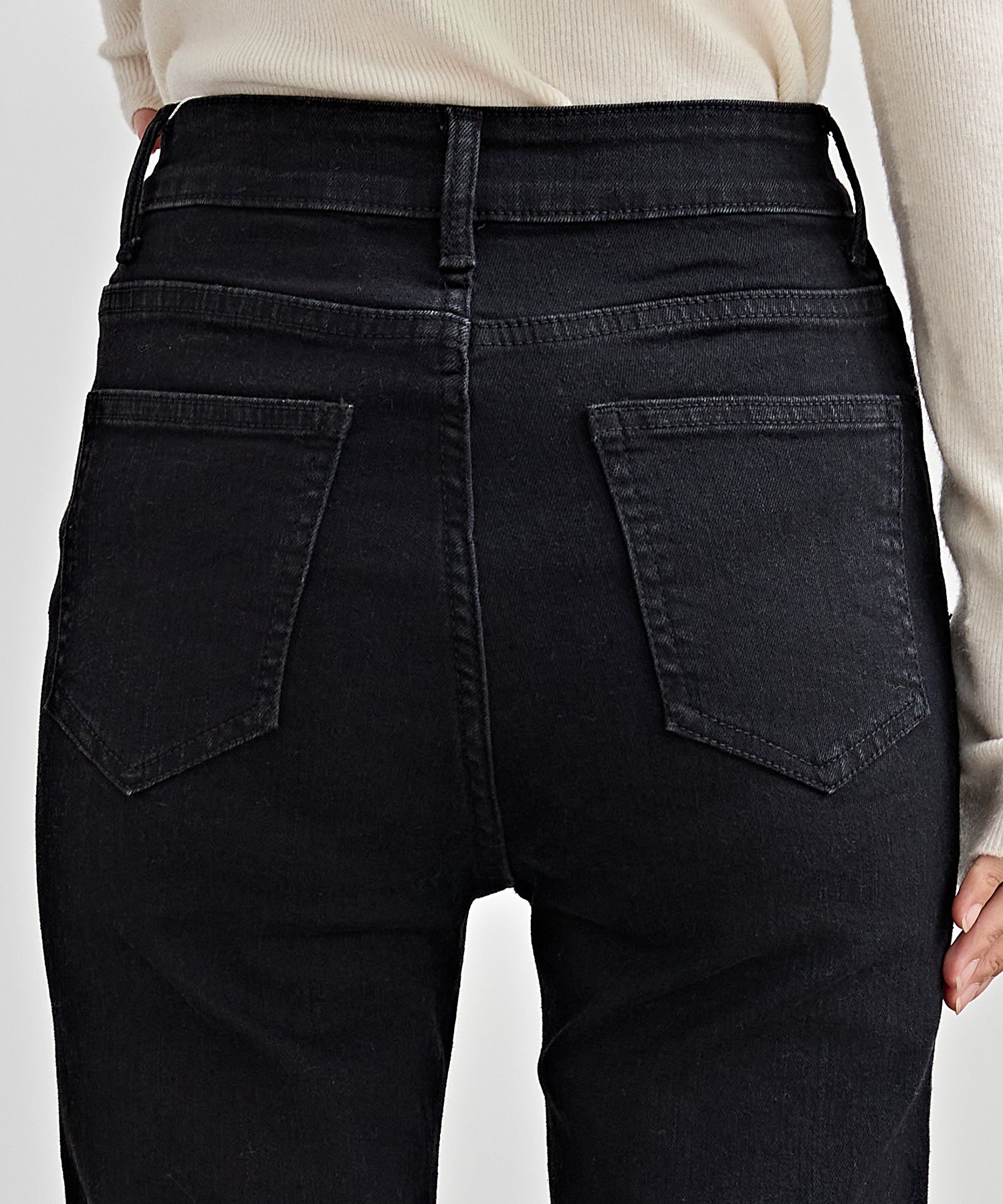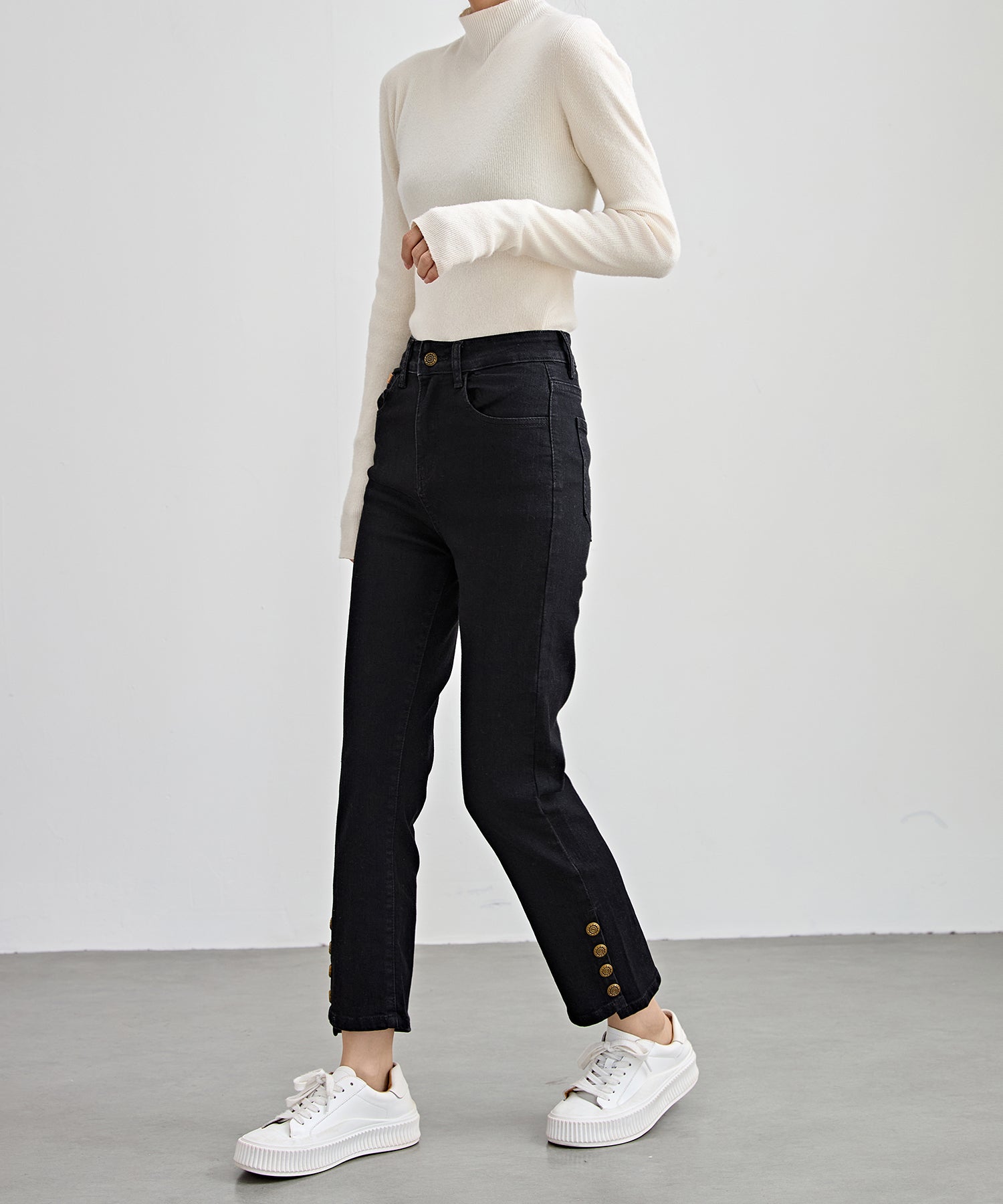 ハイウエスト サイドボタン 9分丈 デニム パンツ