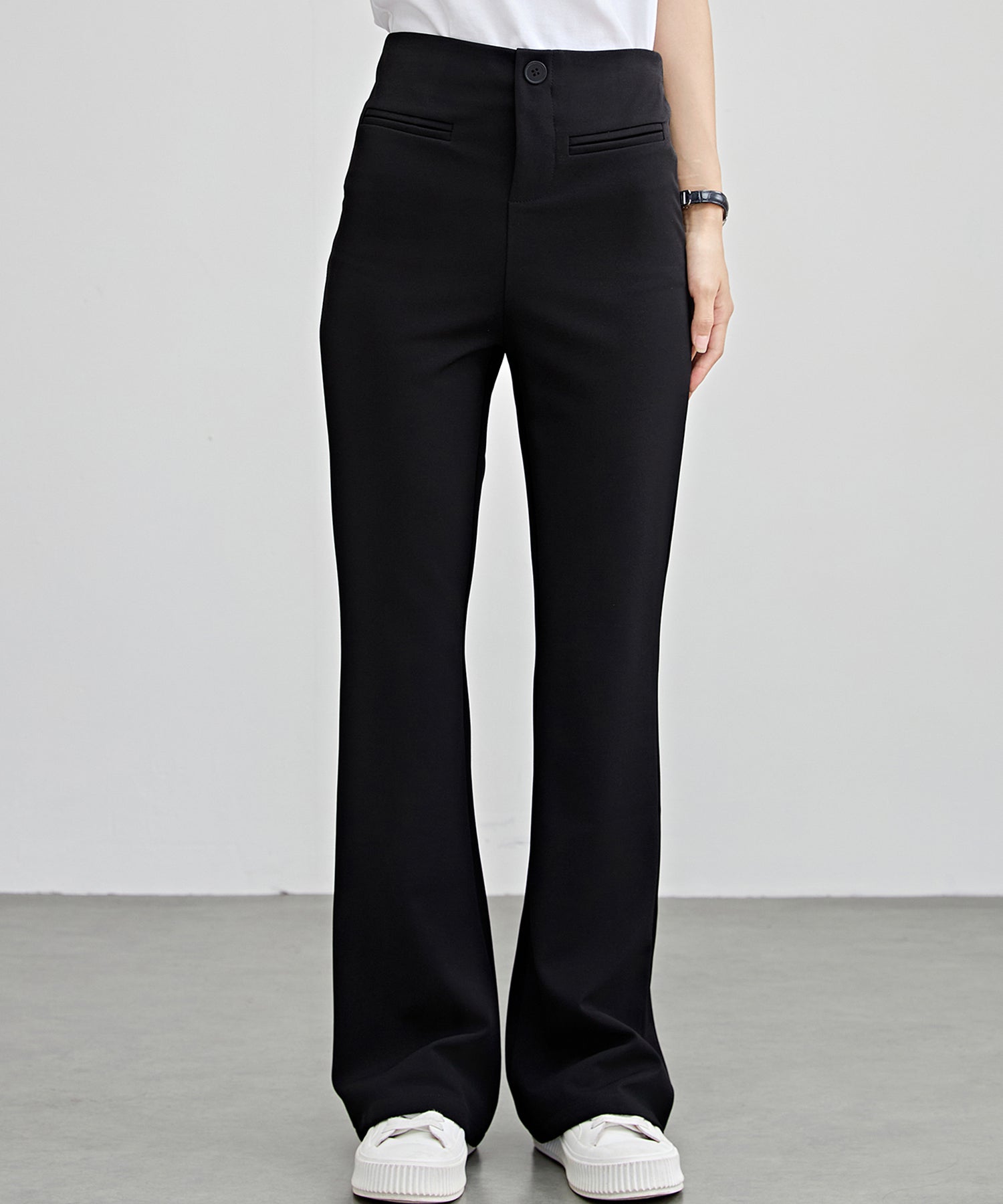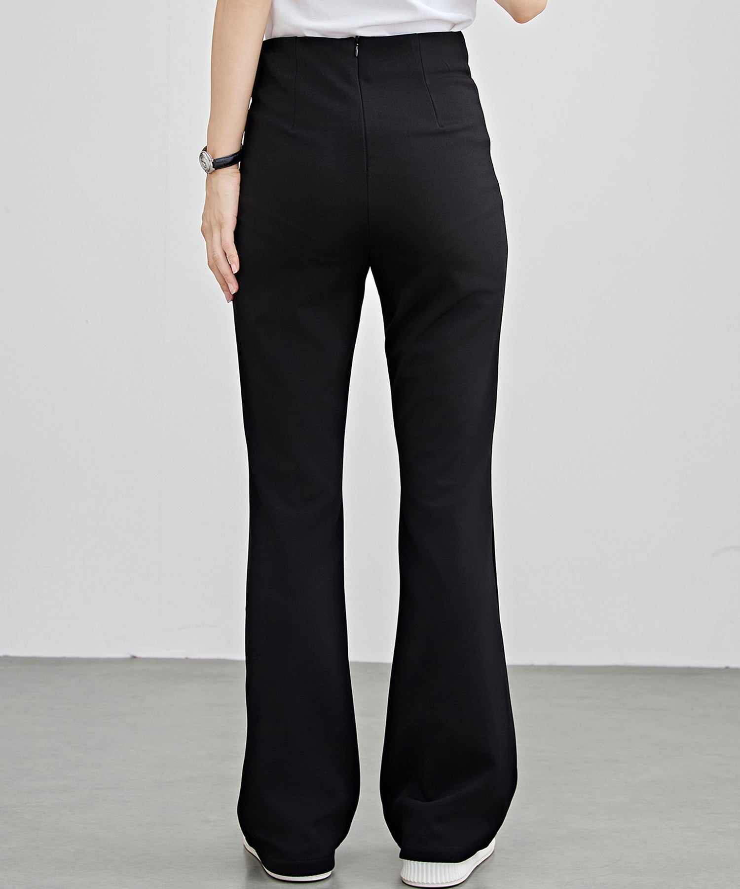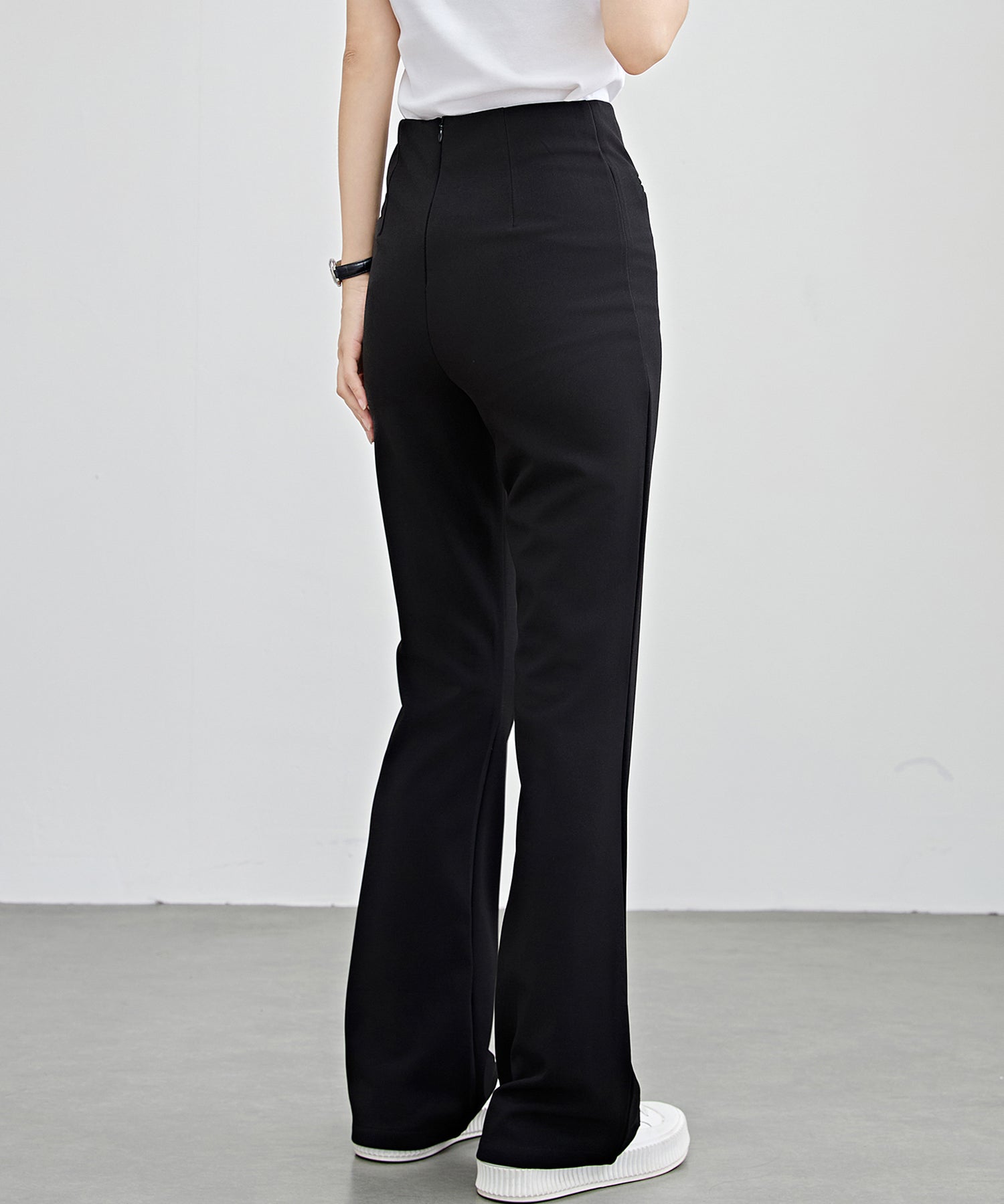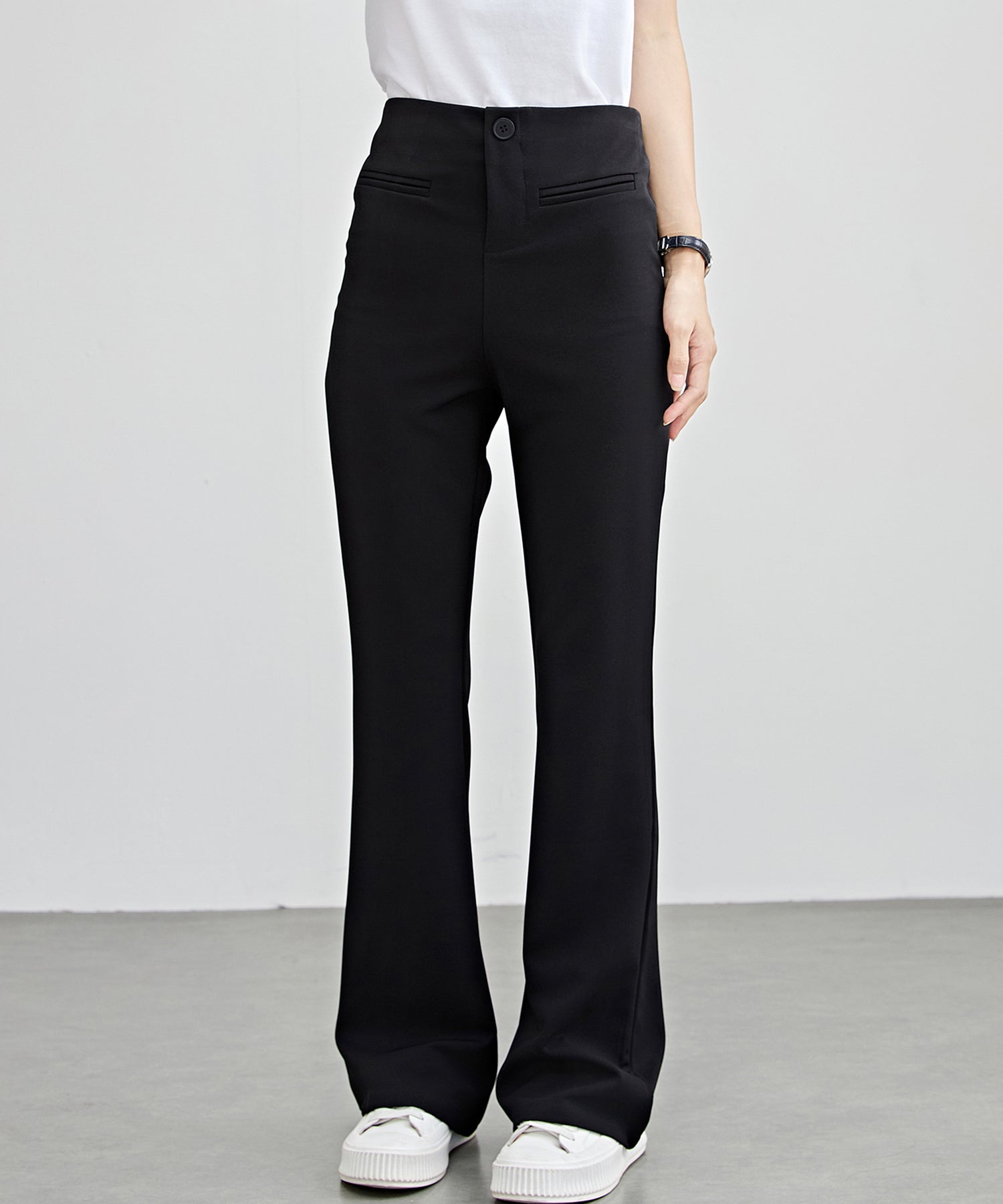 選べる2タイプ ソリッドカラー ハイウエスト シンプル フレア パンツ