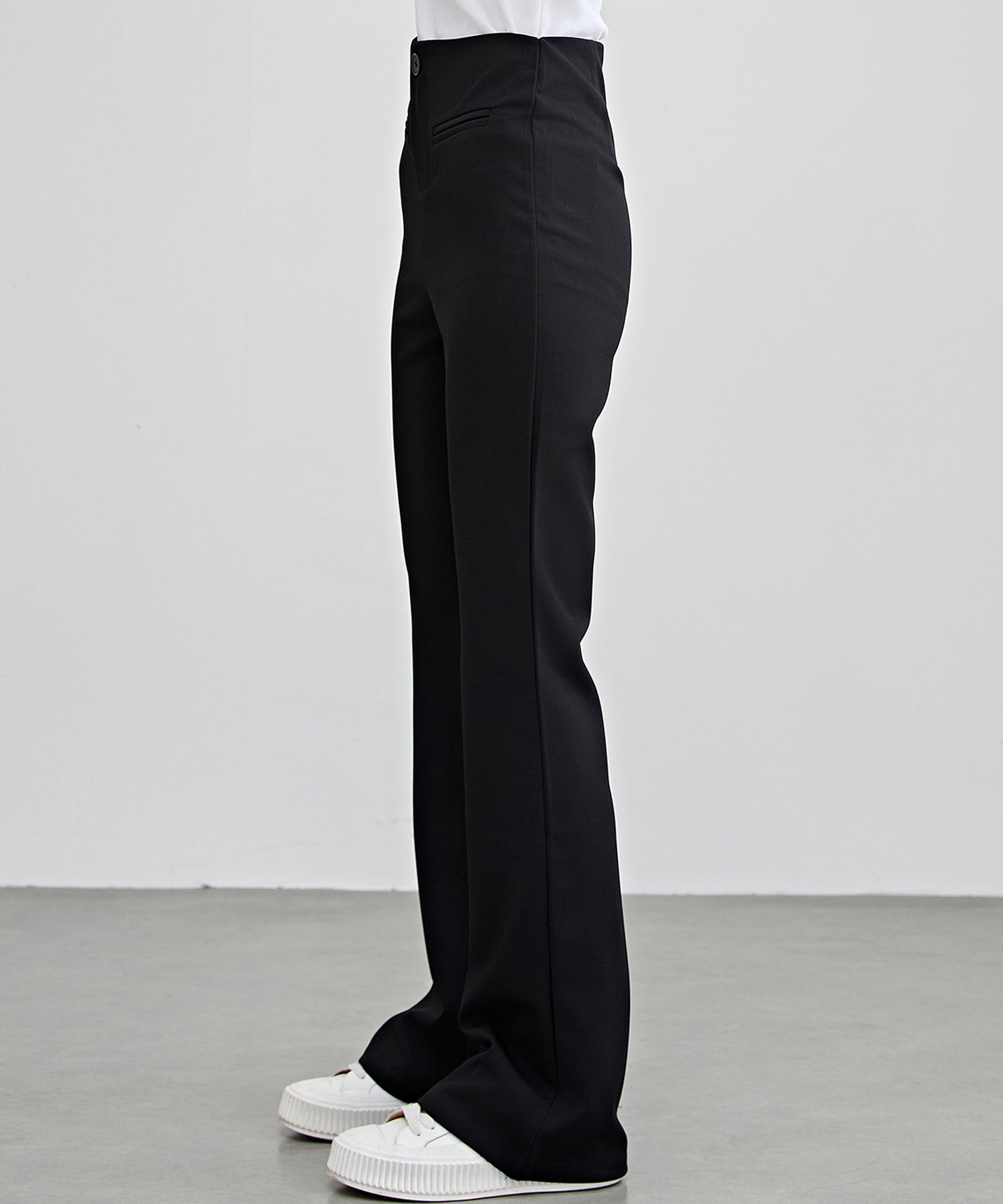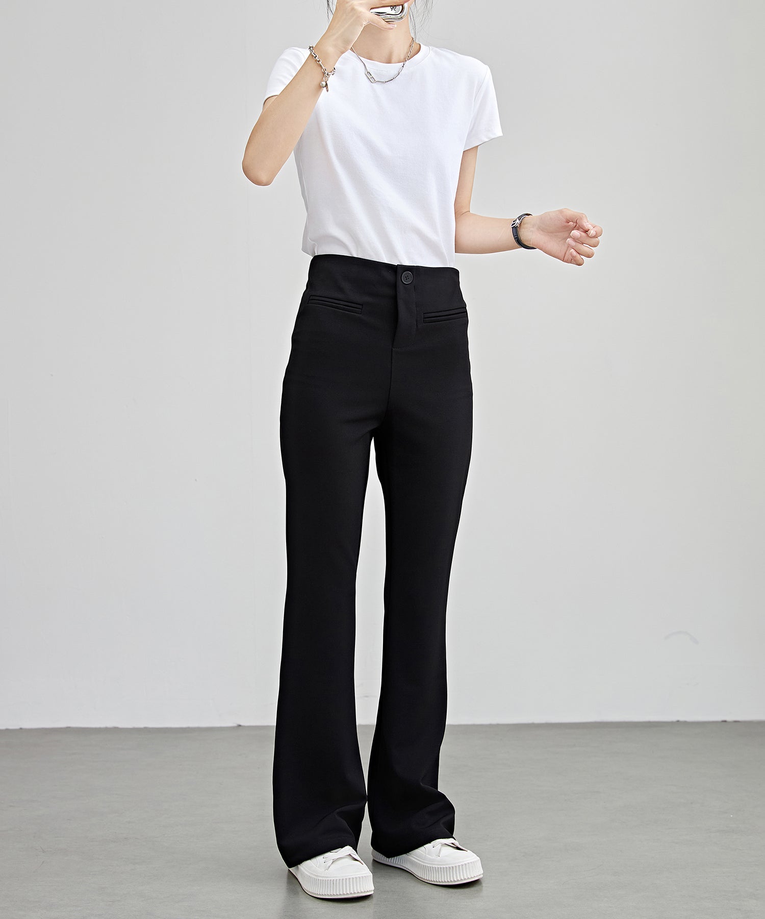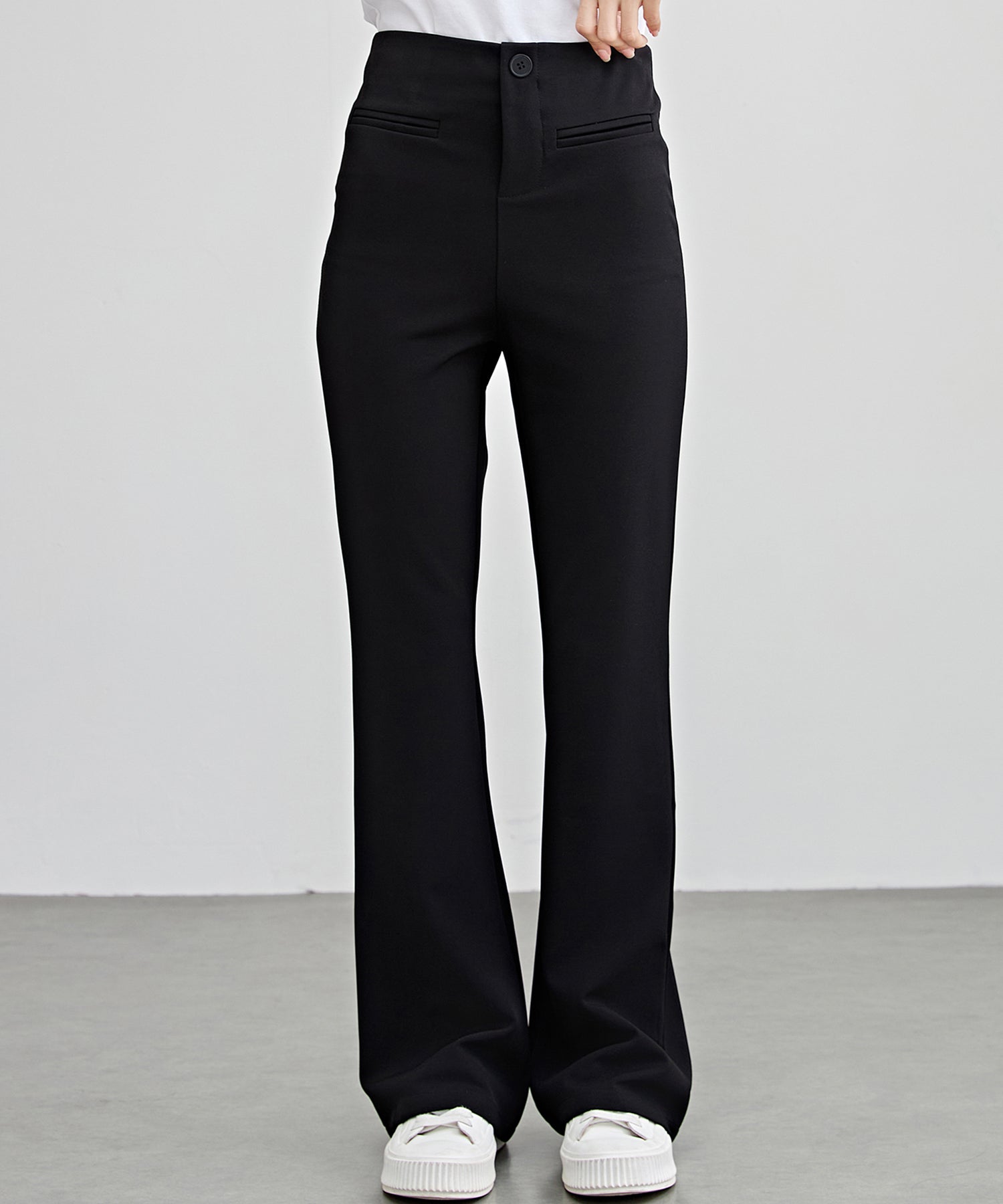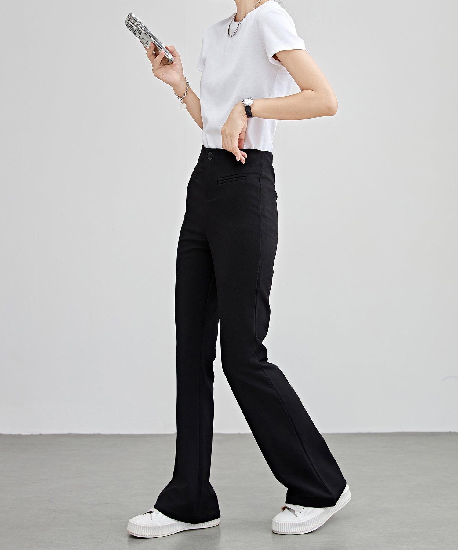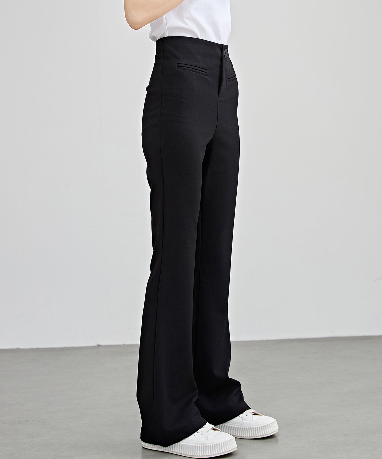 選べる2タイプ ソリッドカラー ハイウエスト シンプル フレア パンツ