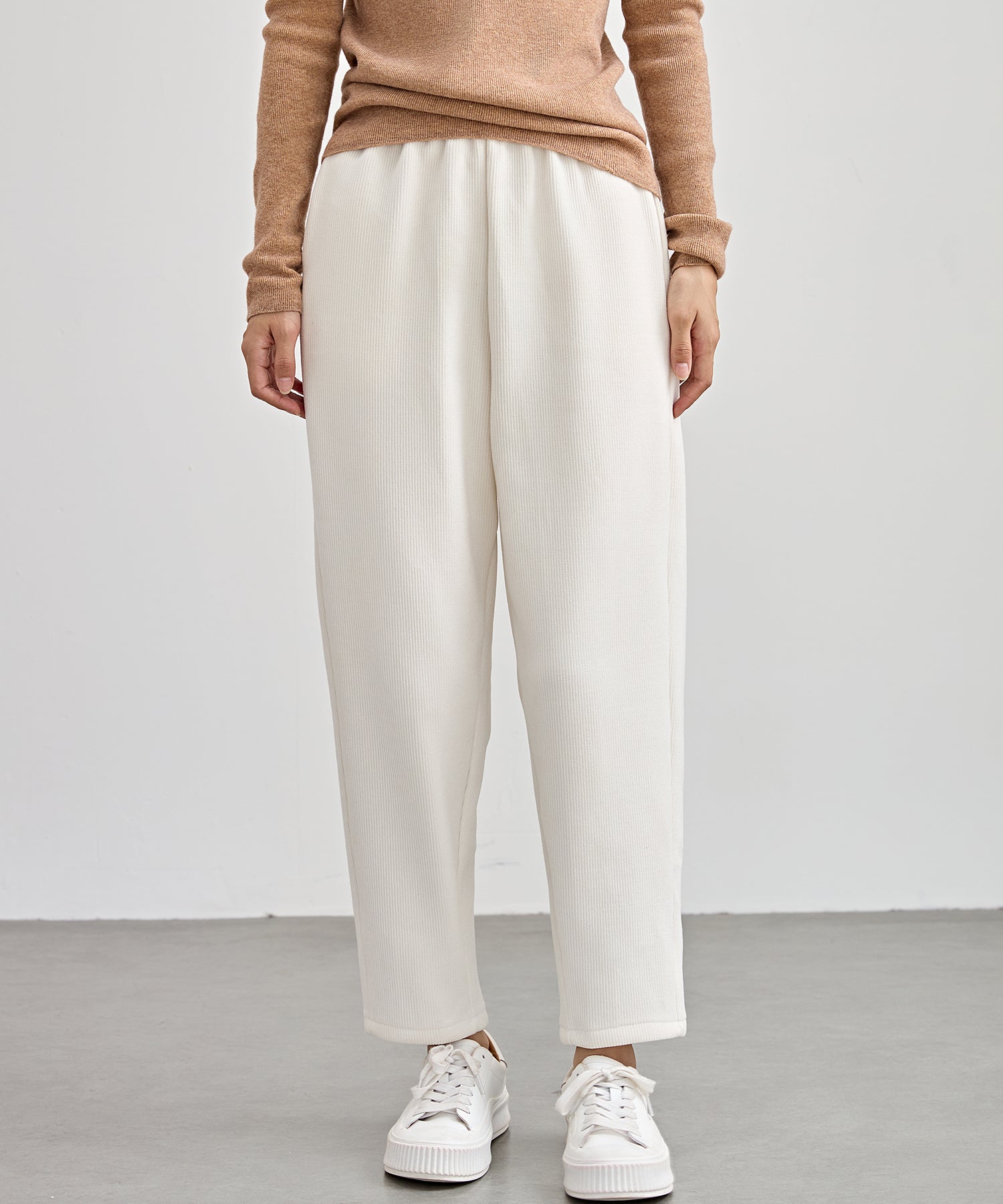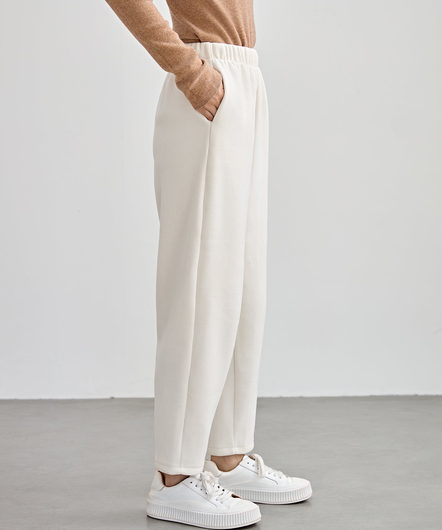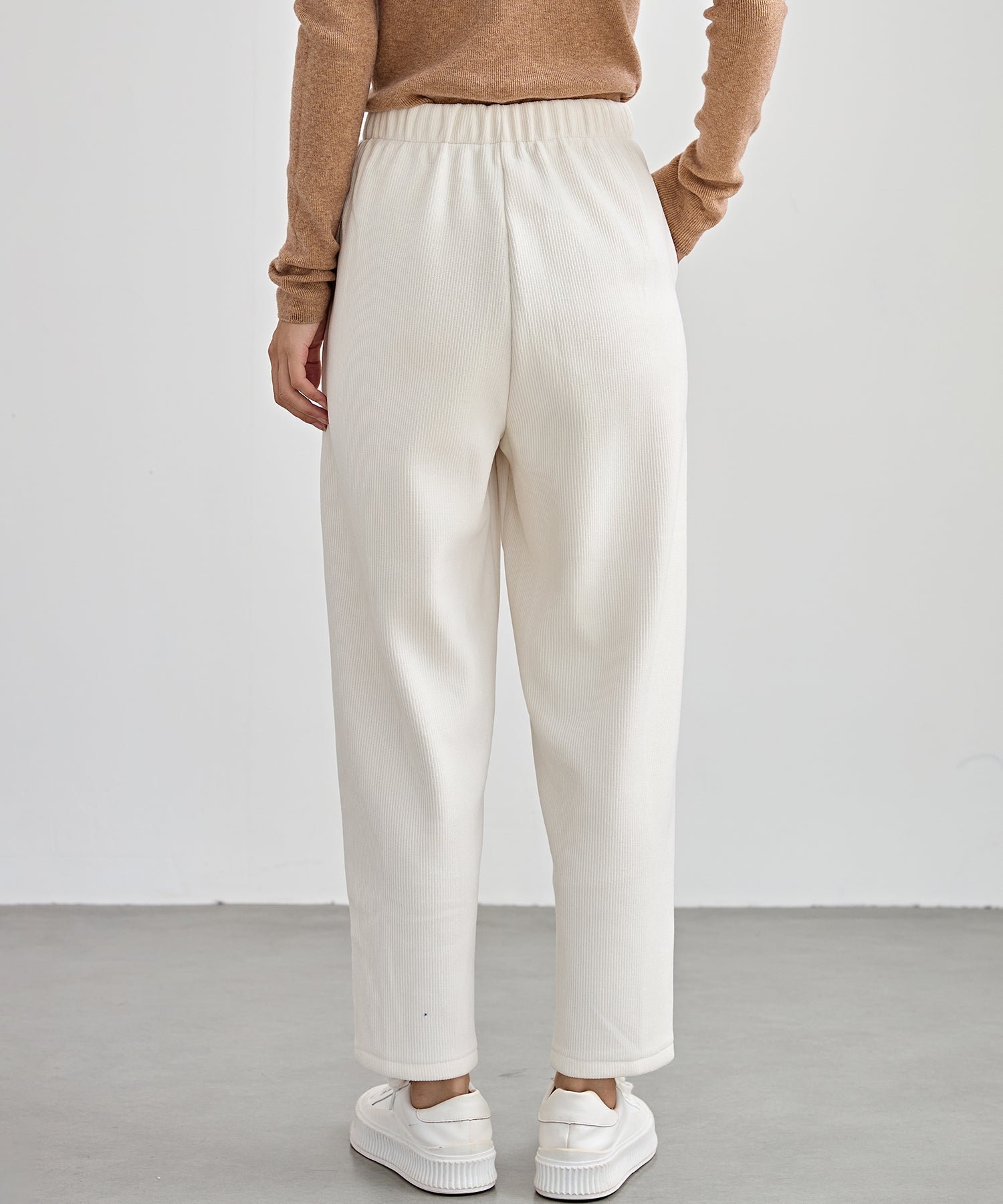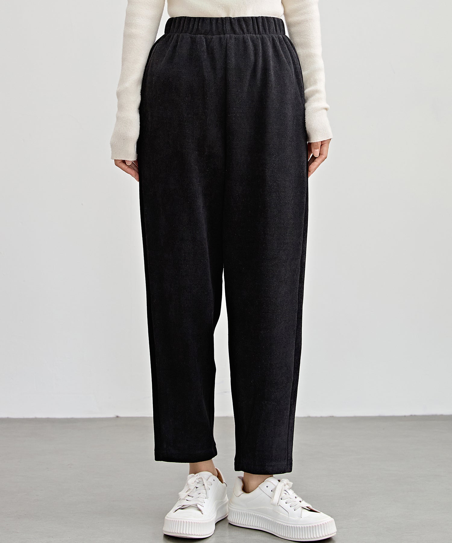 ソリッドカラー クロップド丈 テーパード イージーパンツ 裏起毛