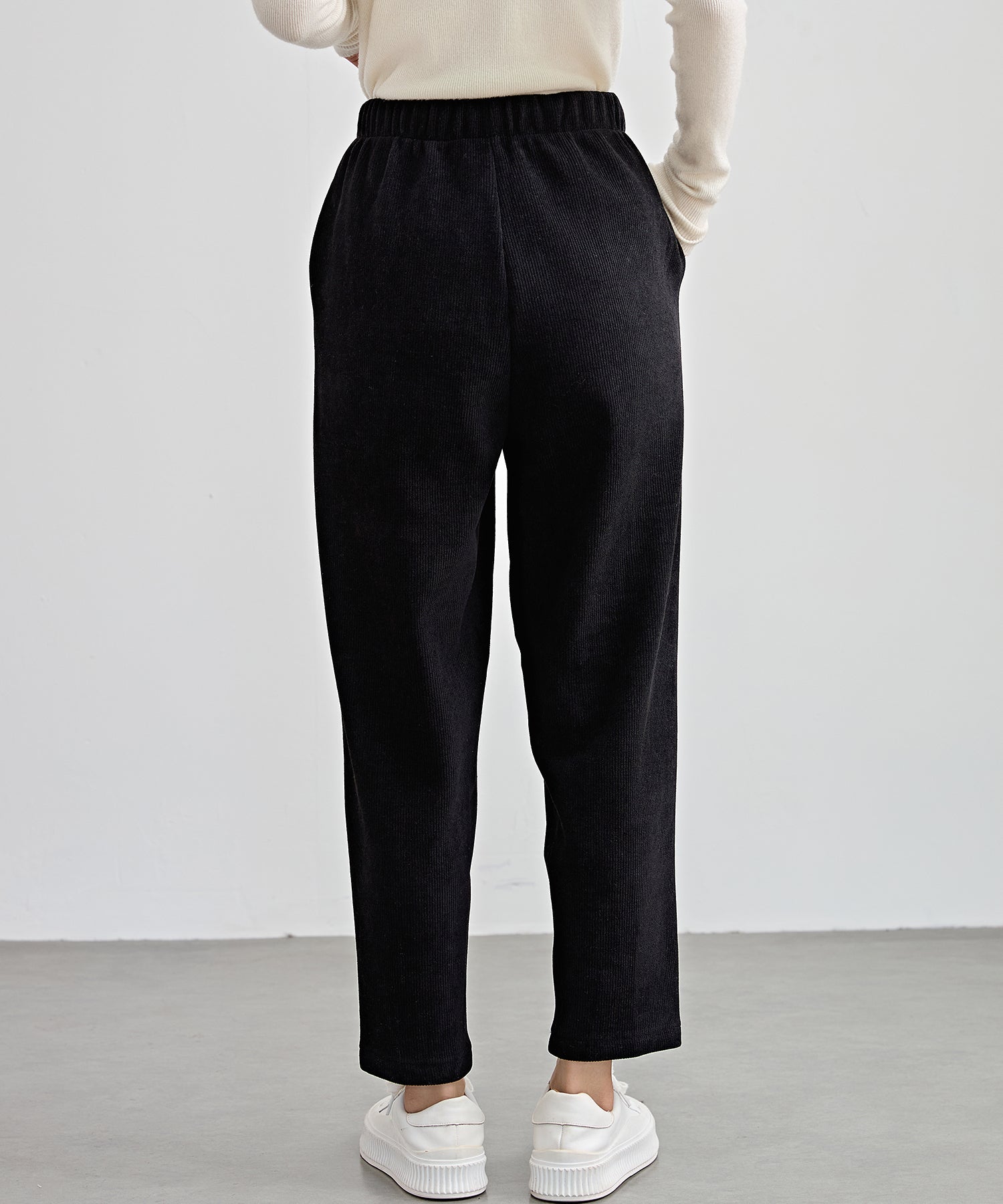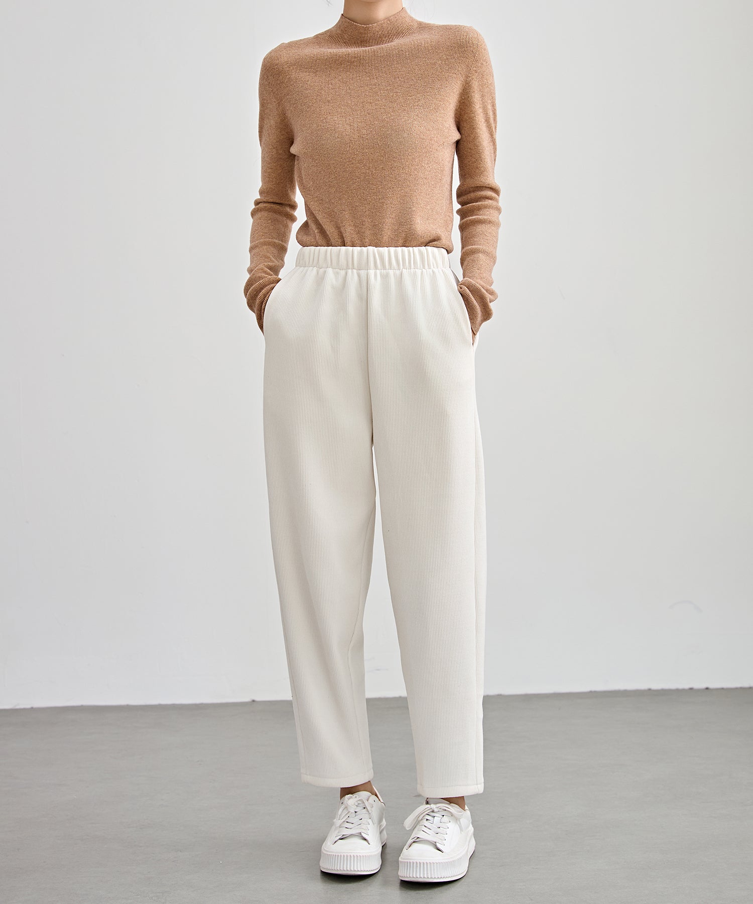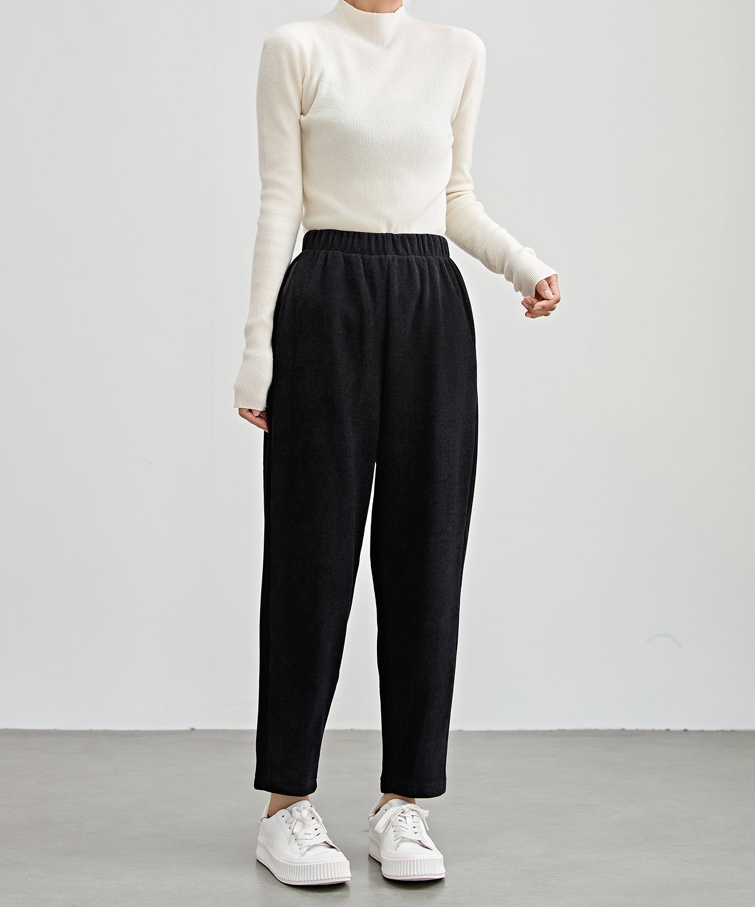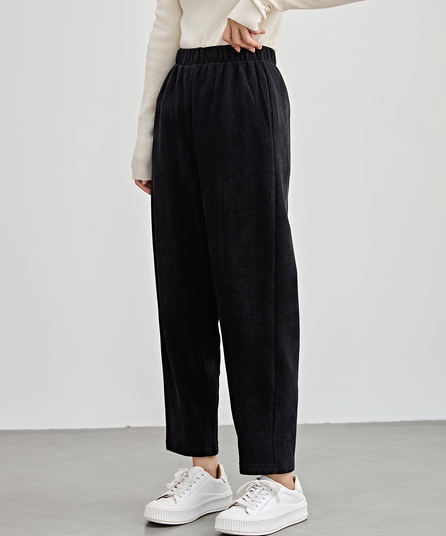 ソリッドカラー クロップド丈 テーパード イージーパンツ 裏起毛