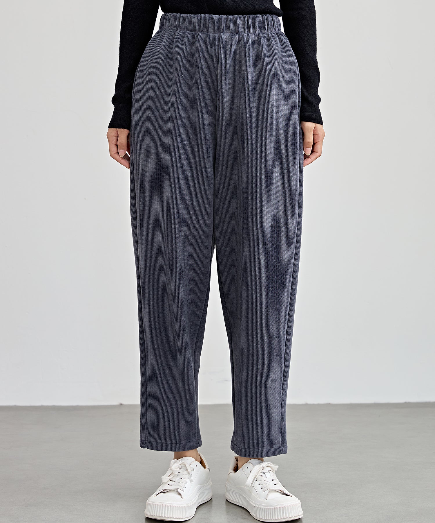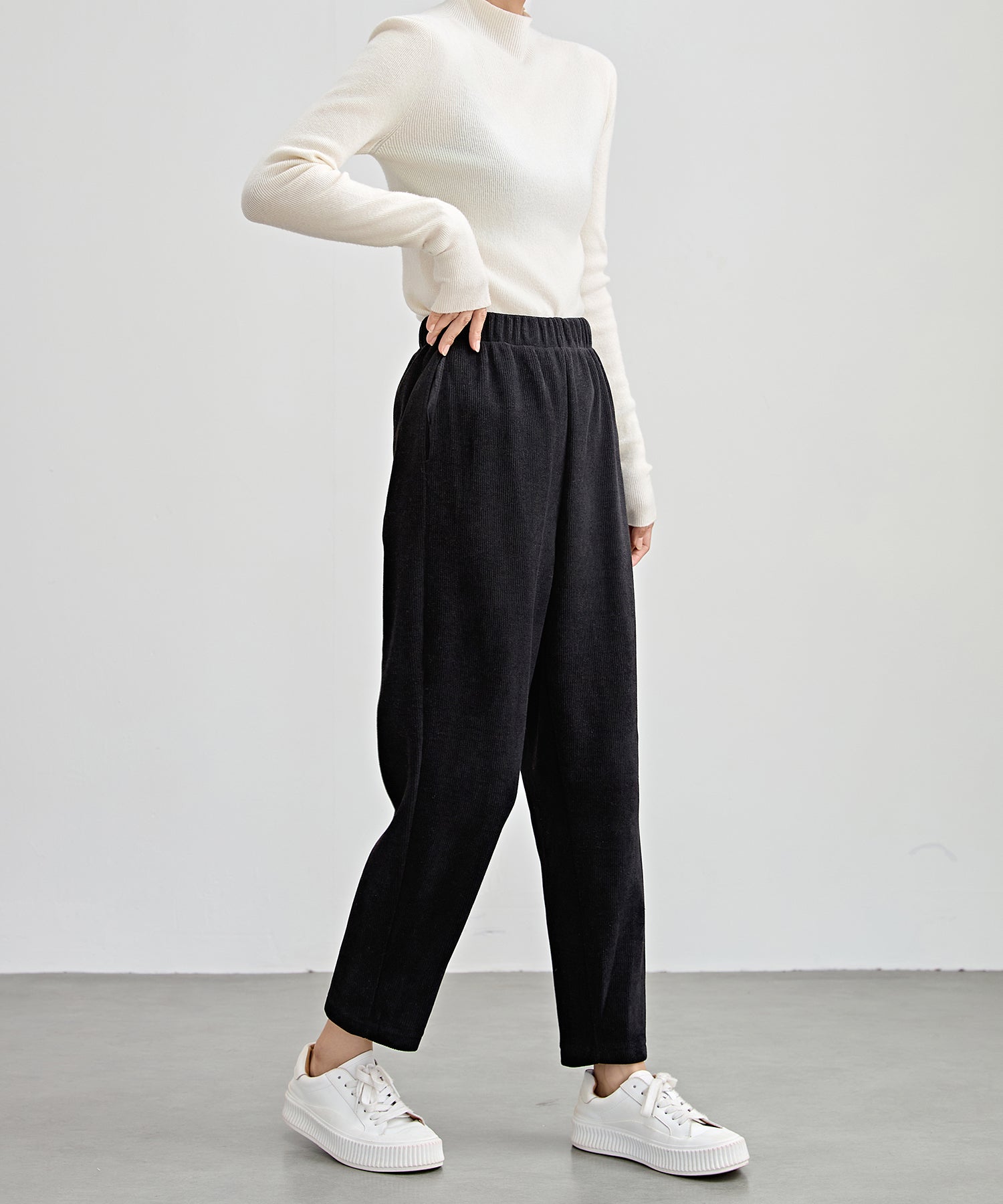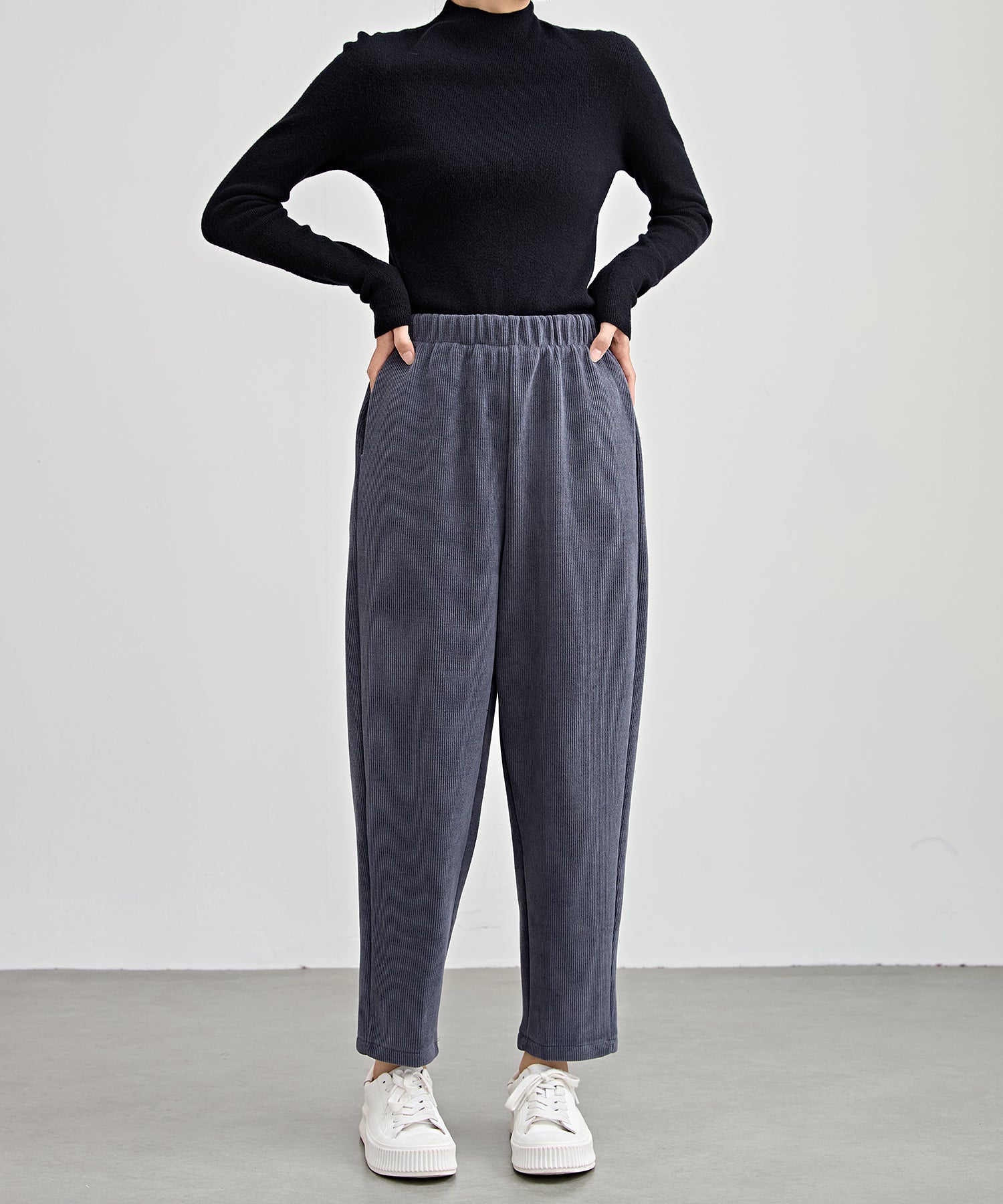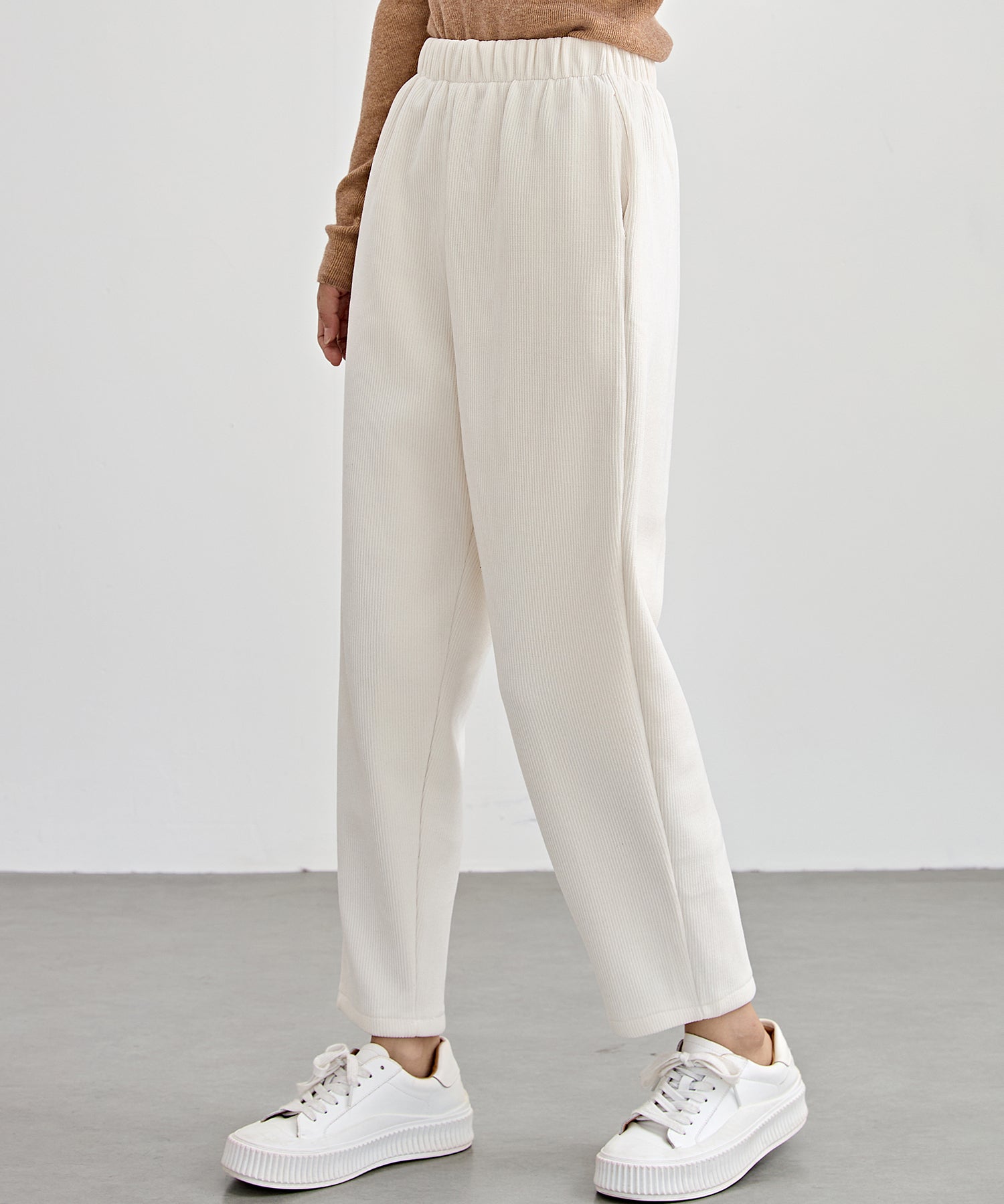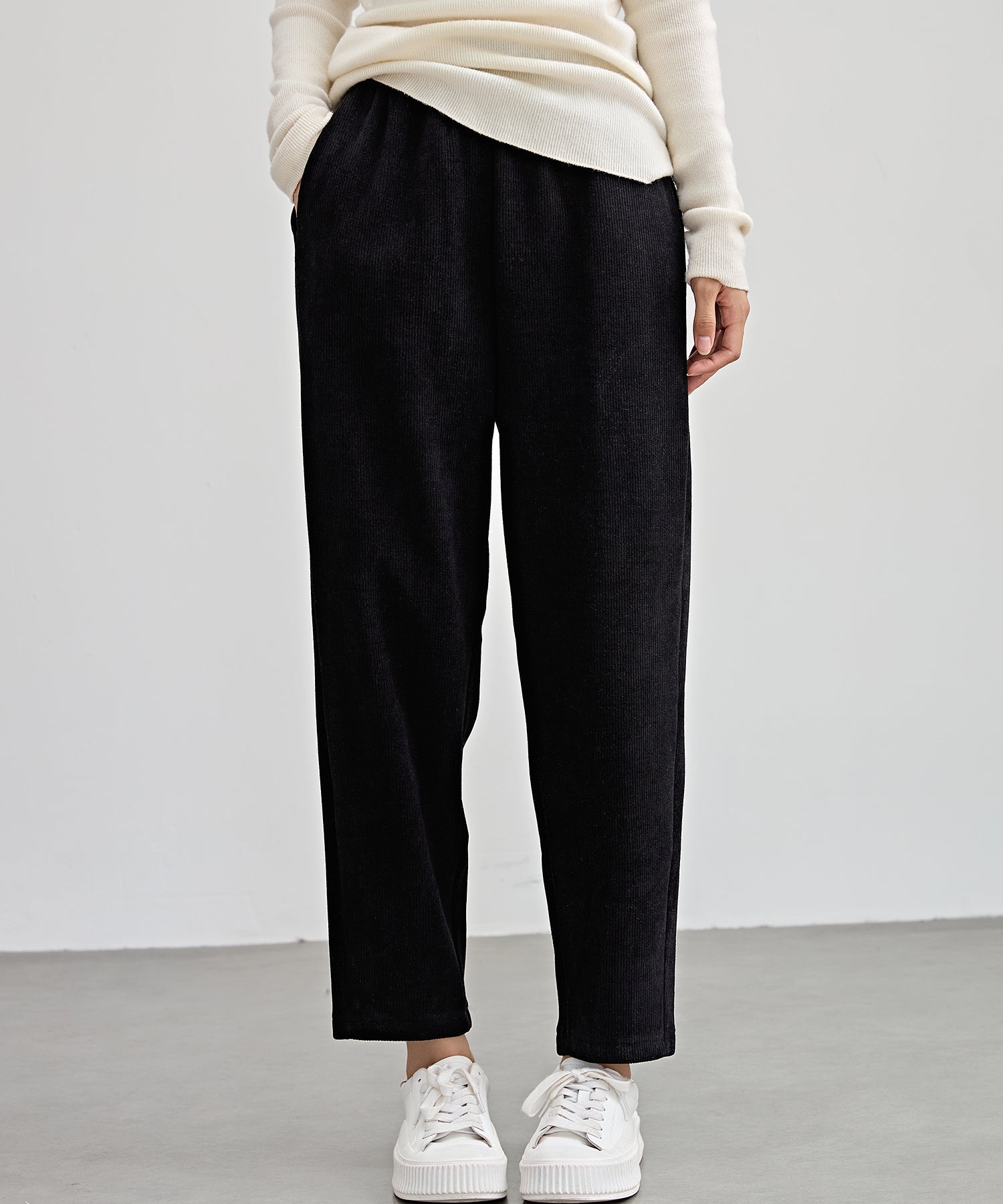 ソリッドカラー クロップド丈 テーパード イージーパンツ 裏起毛