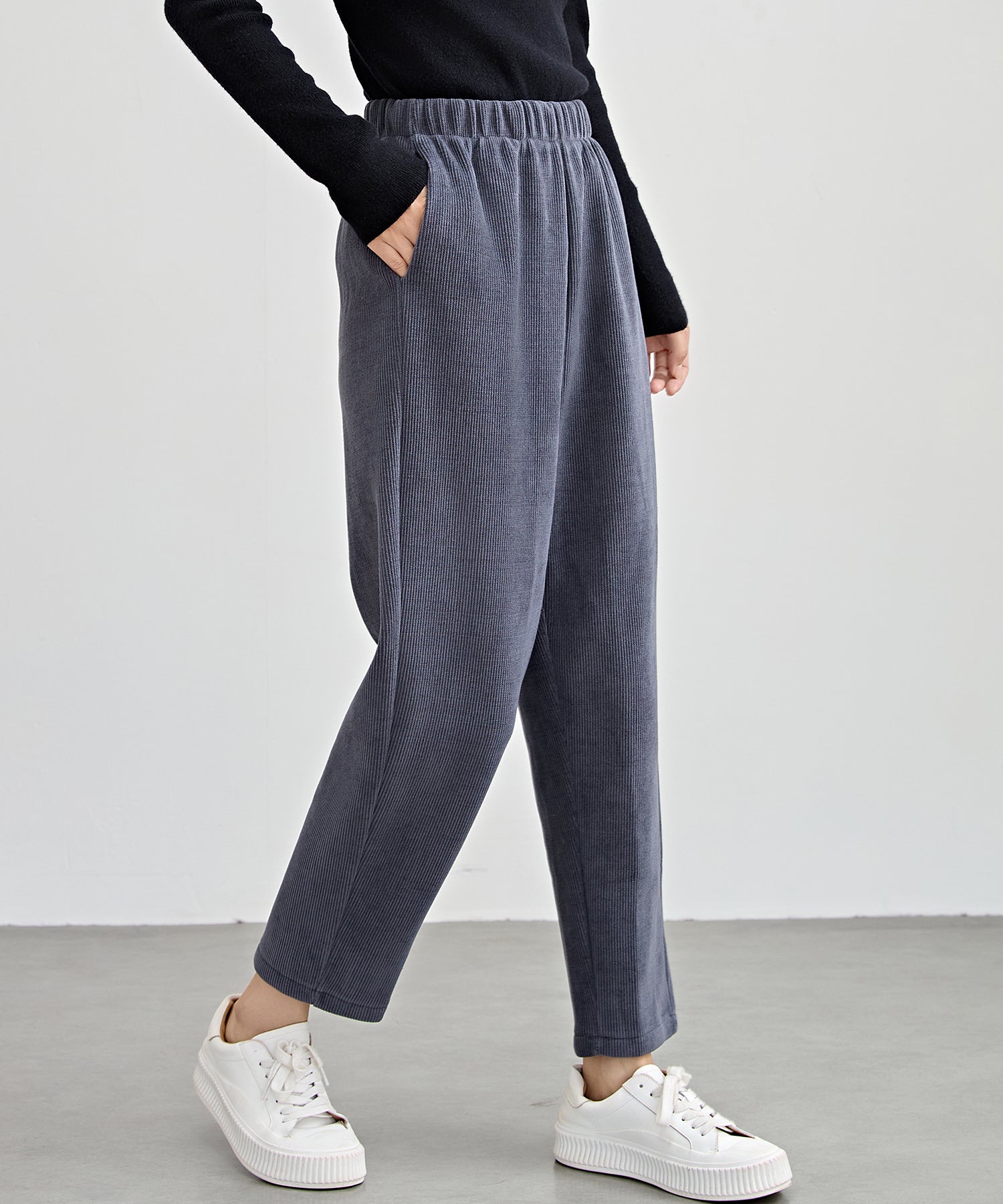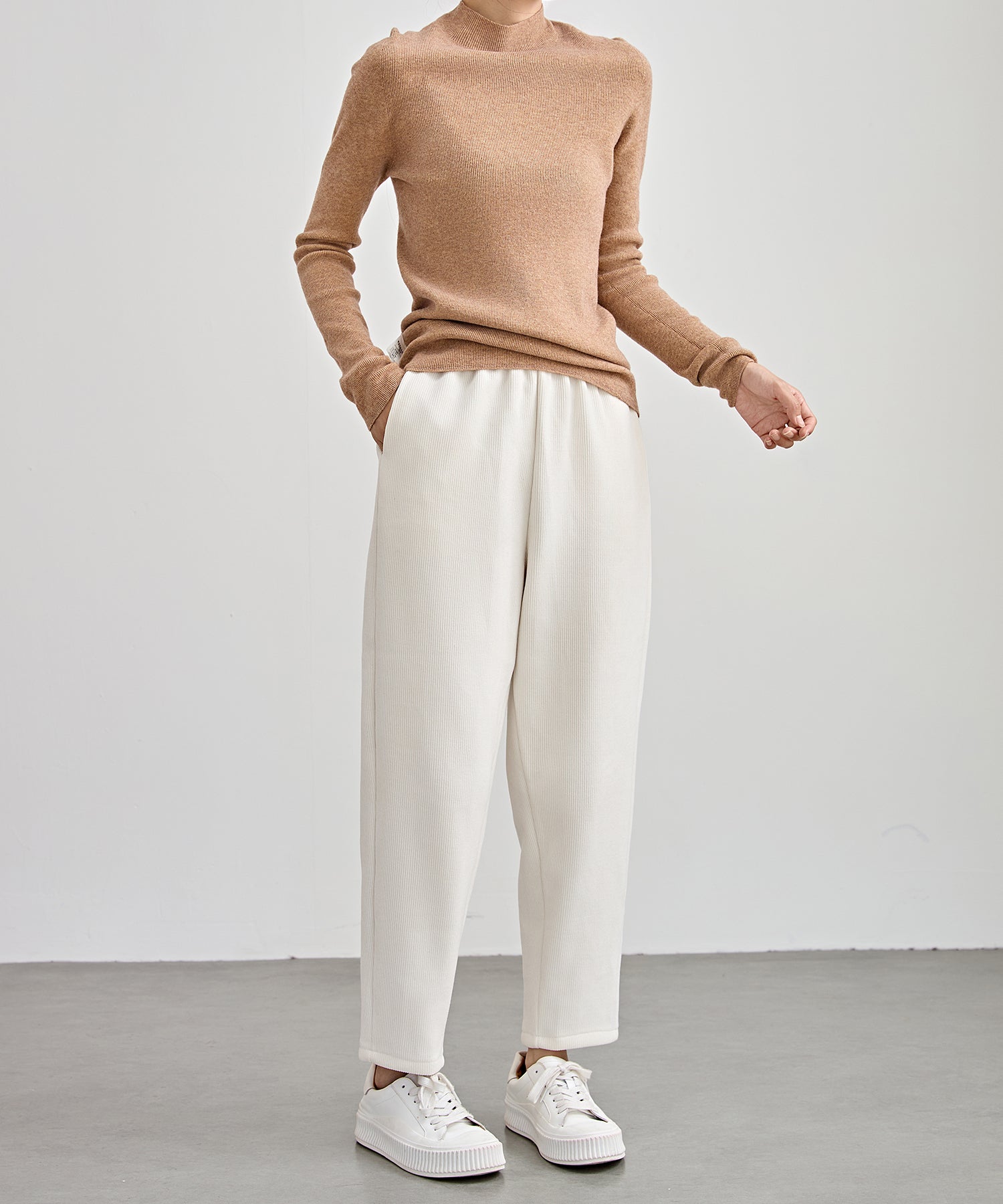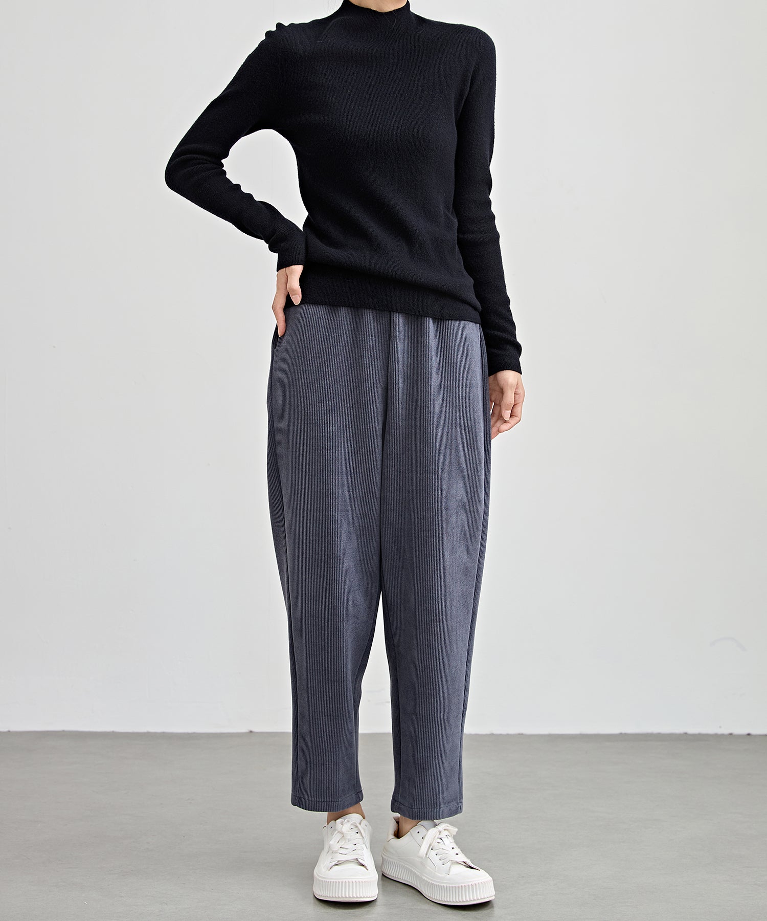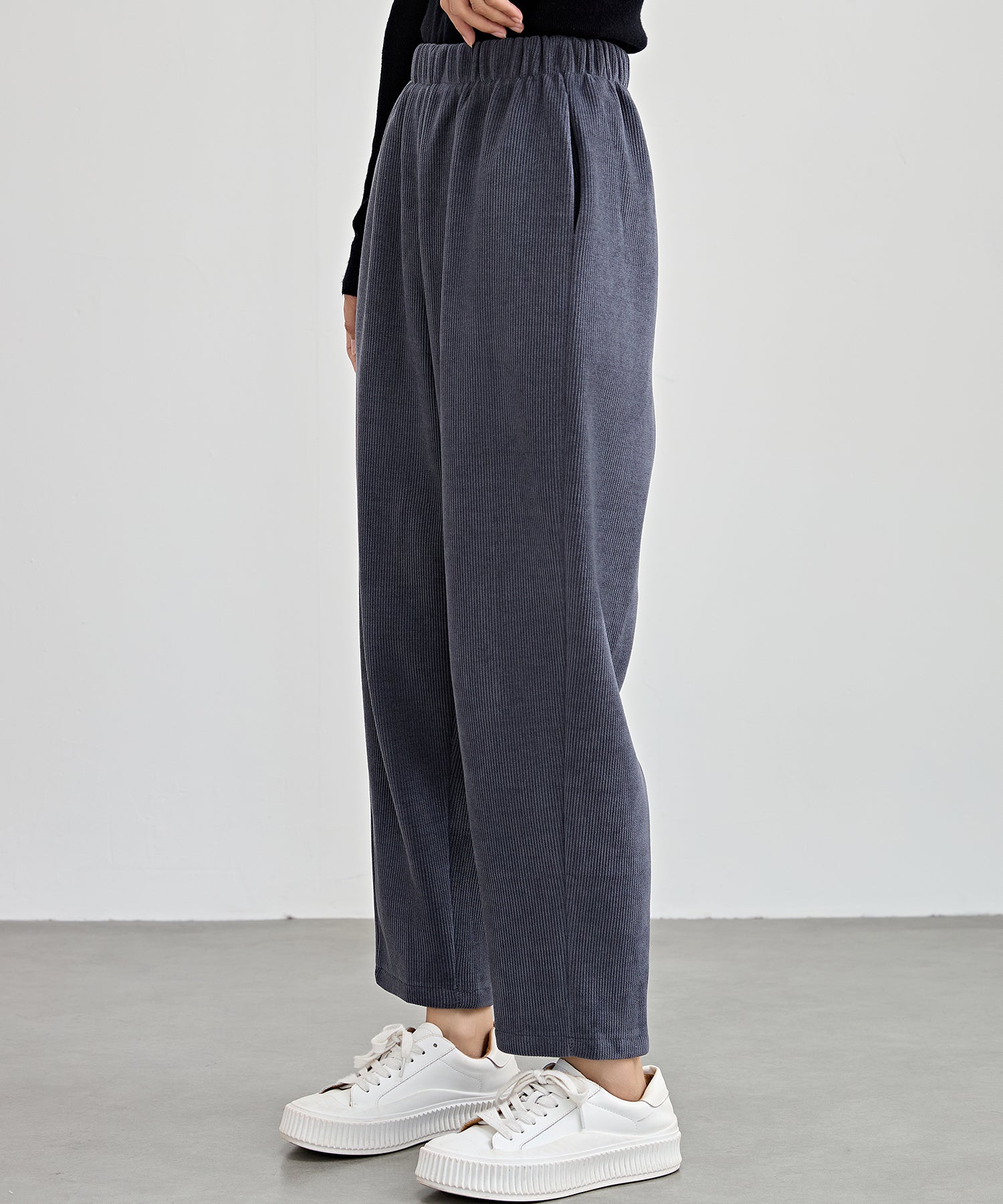 ソリッドカラー クロップド丈 テーパード イージーパンツ 裏起毛