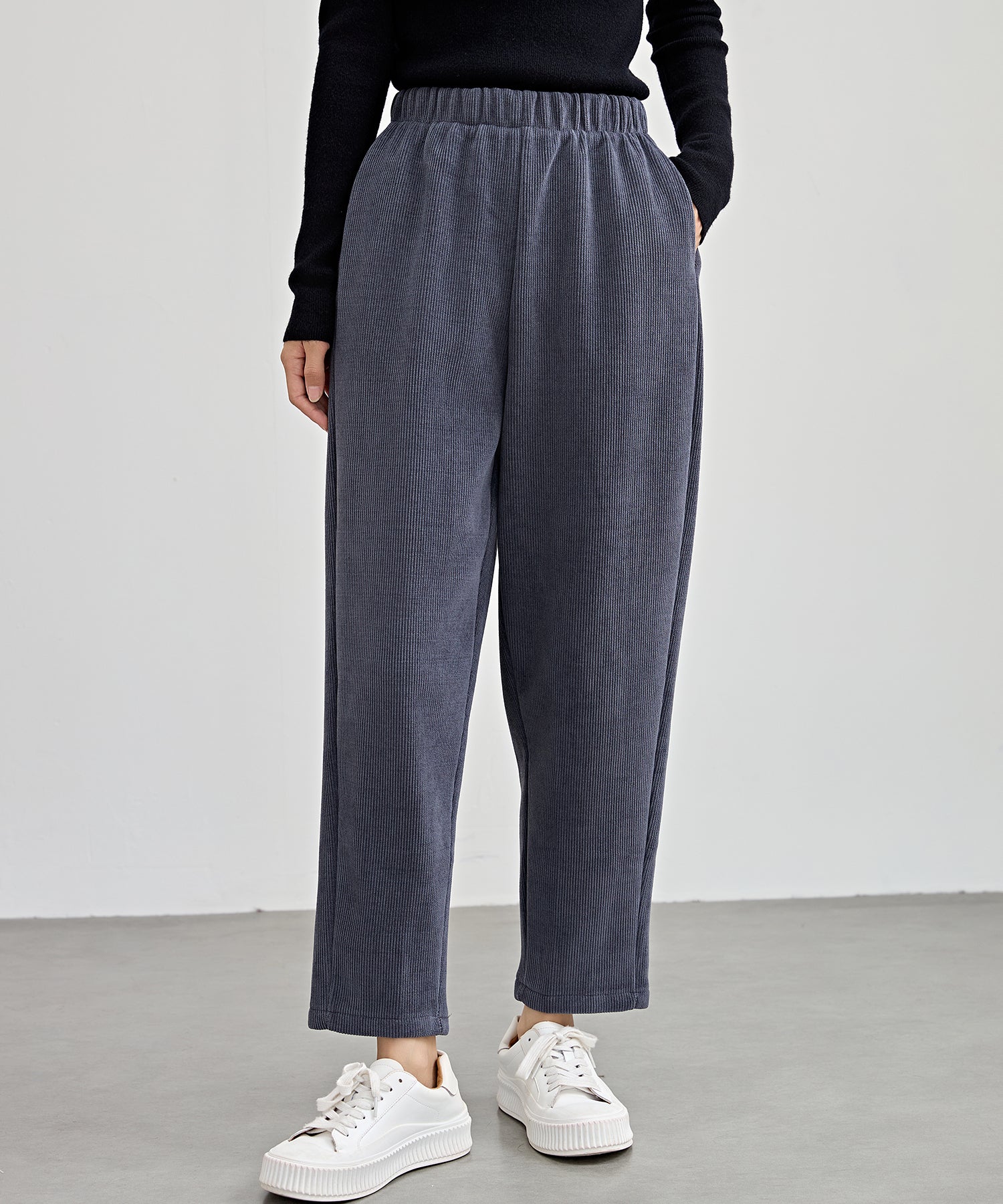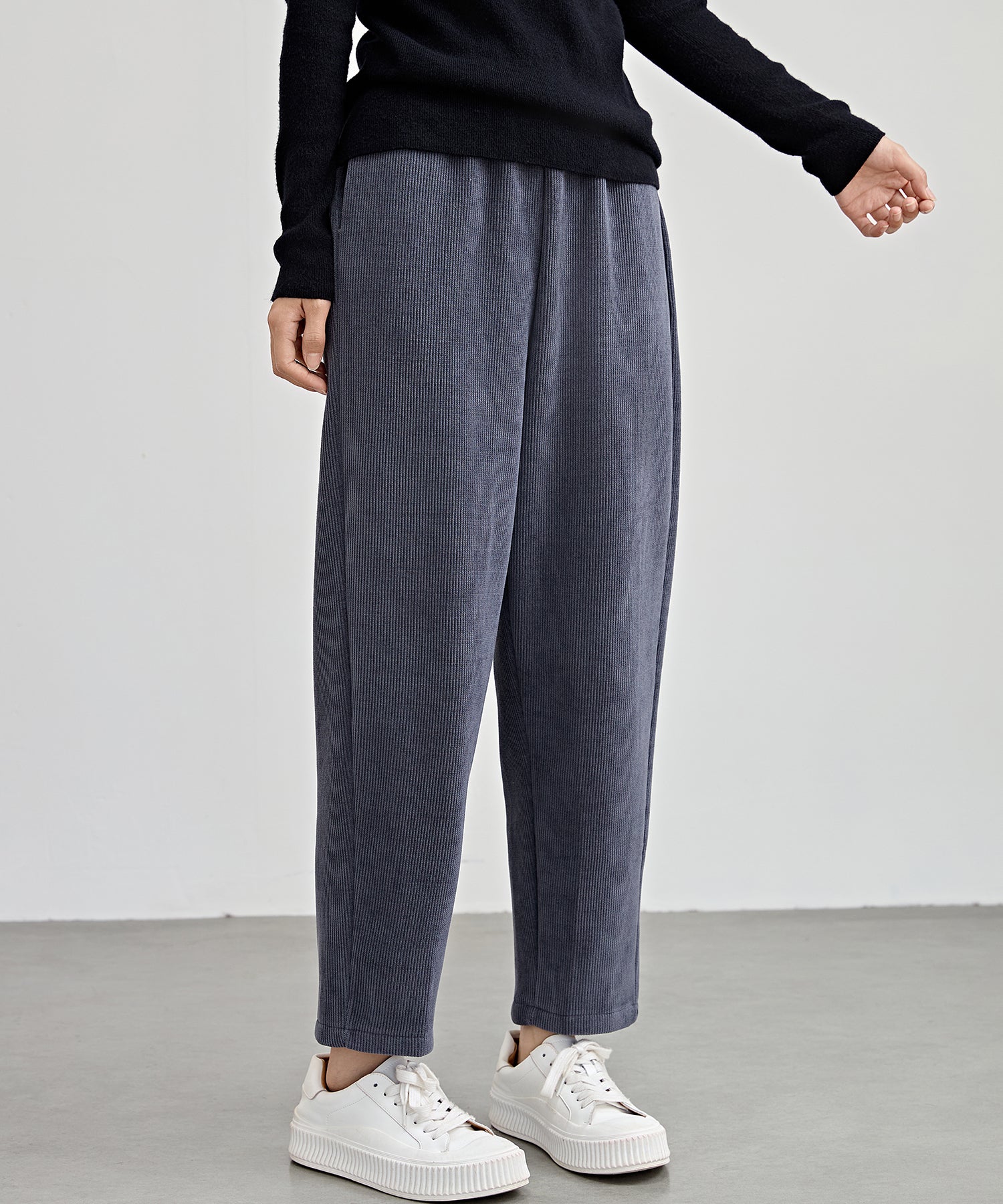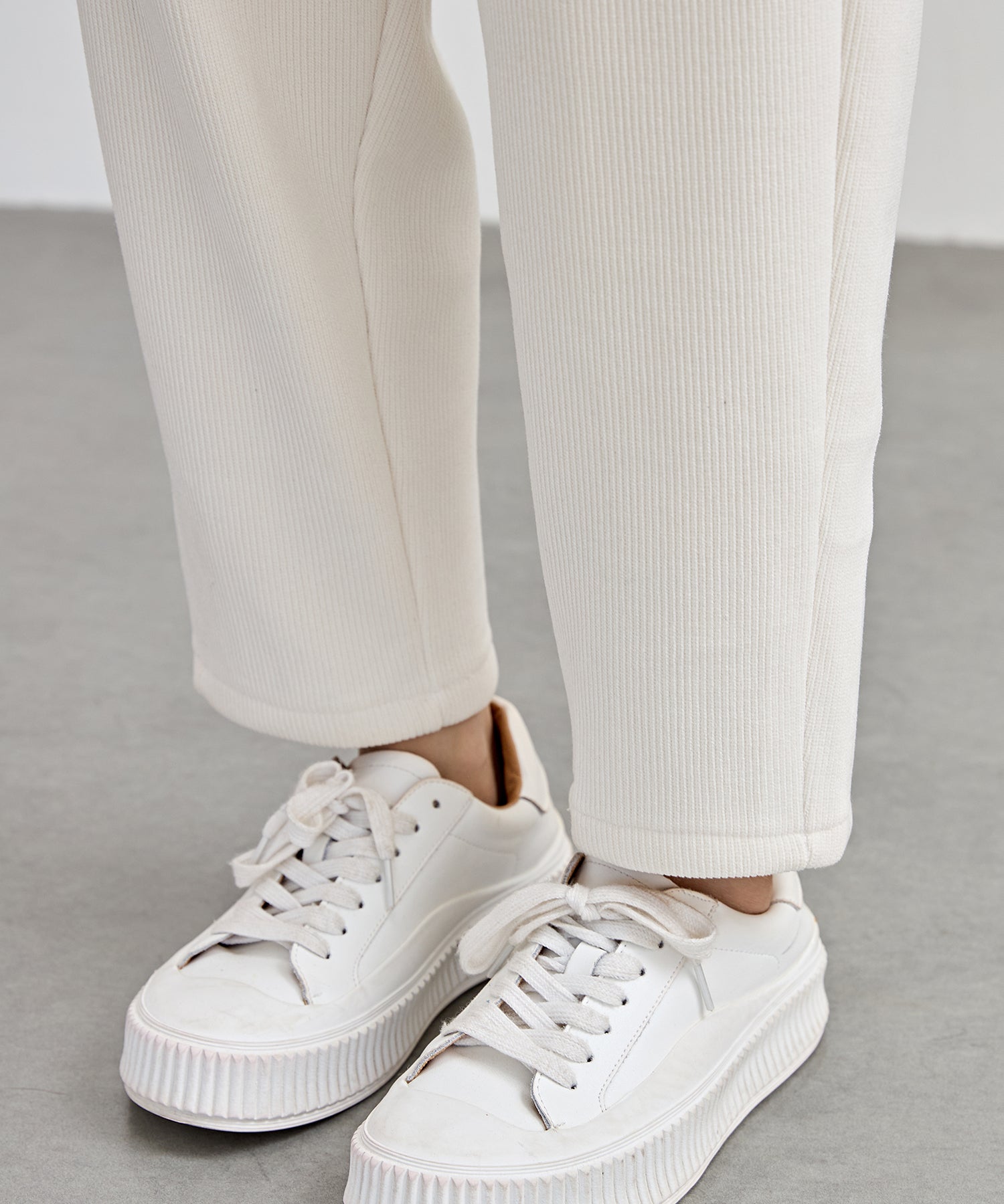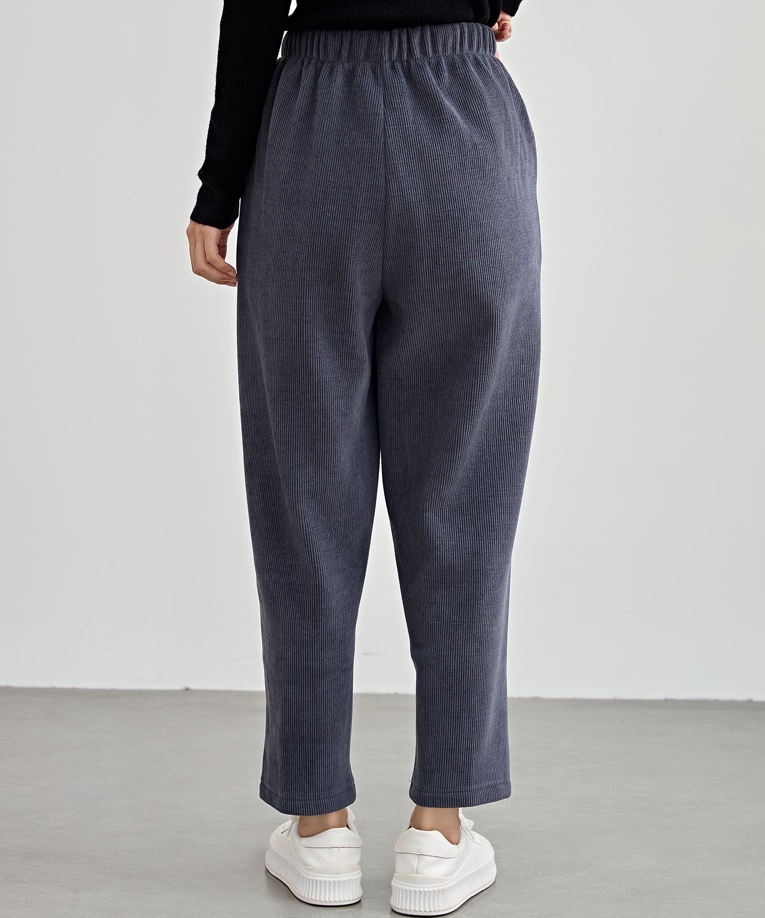ソリッドカラー クロップド丈 テーパード イージーパンツ 裏起毛
