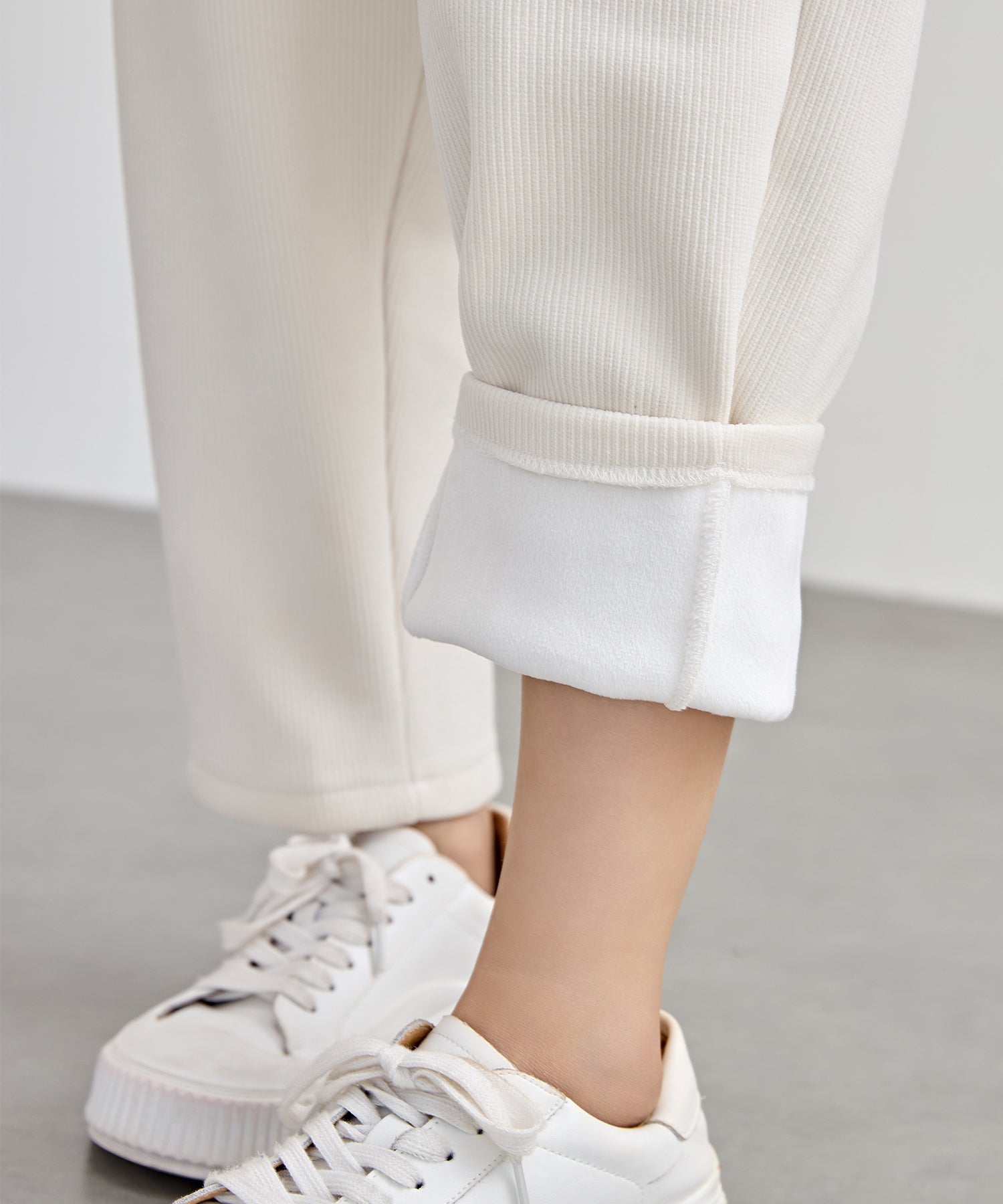 秋冬シーズンに重宝する、あたたかな裏起毛パンツ。