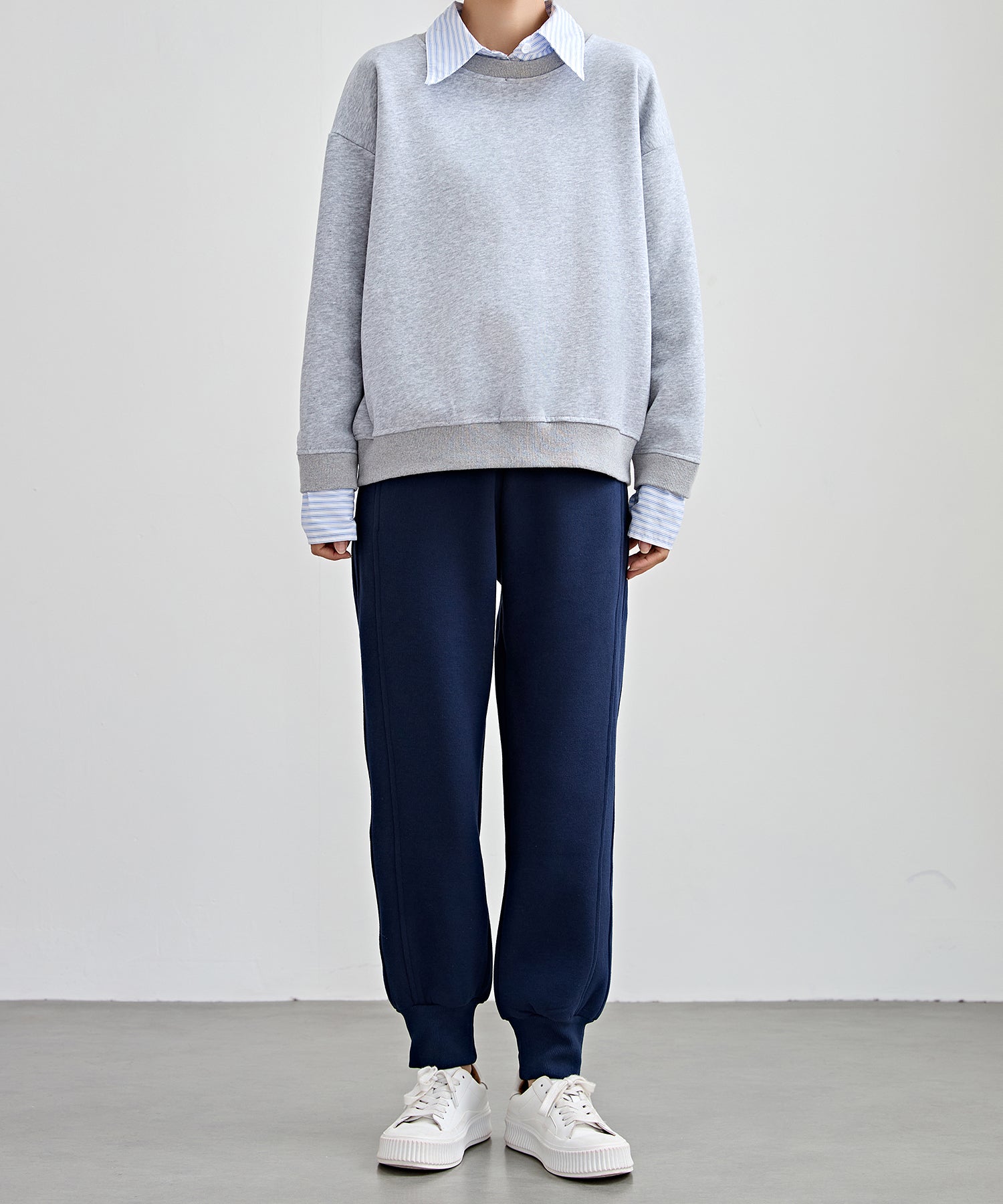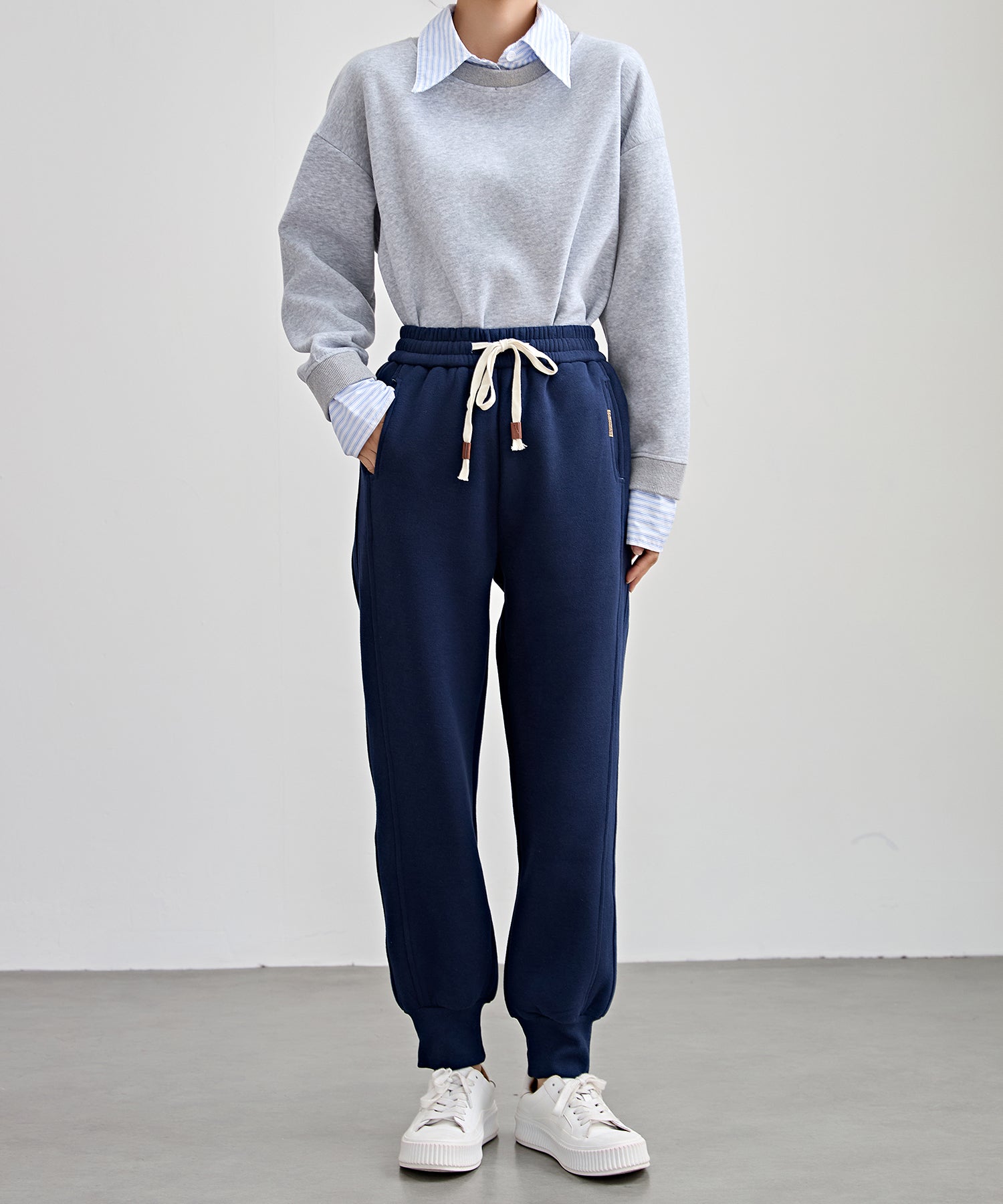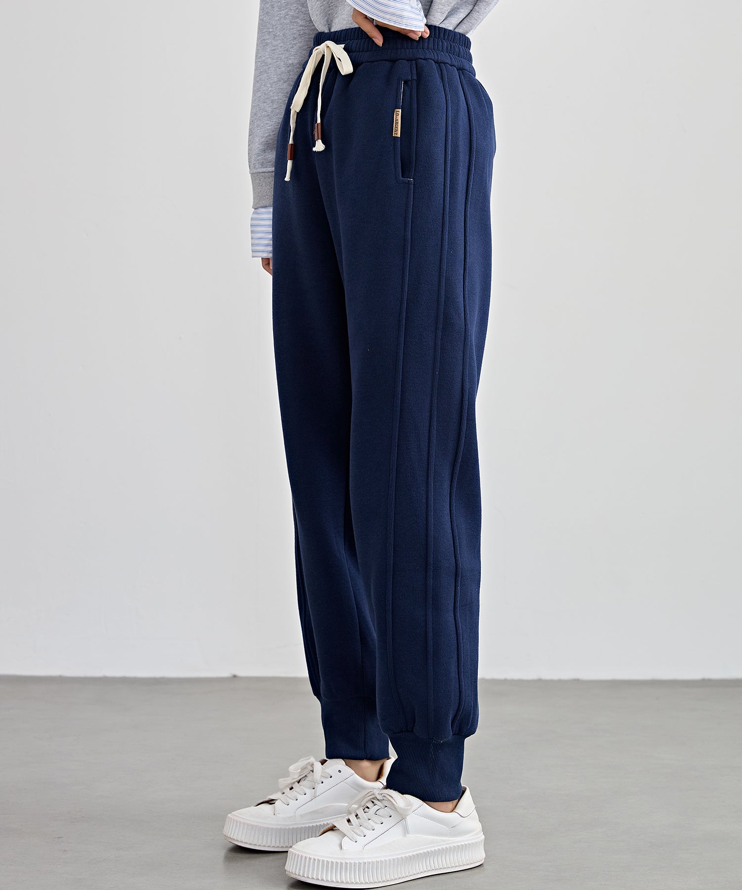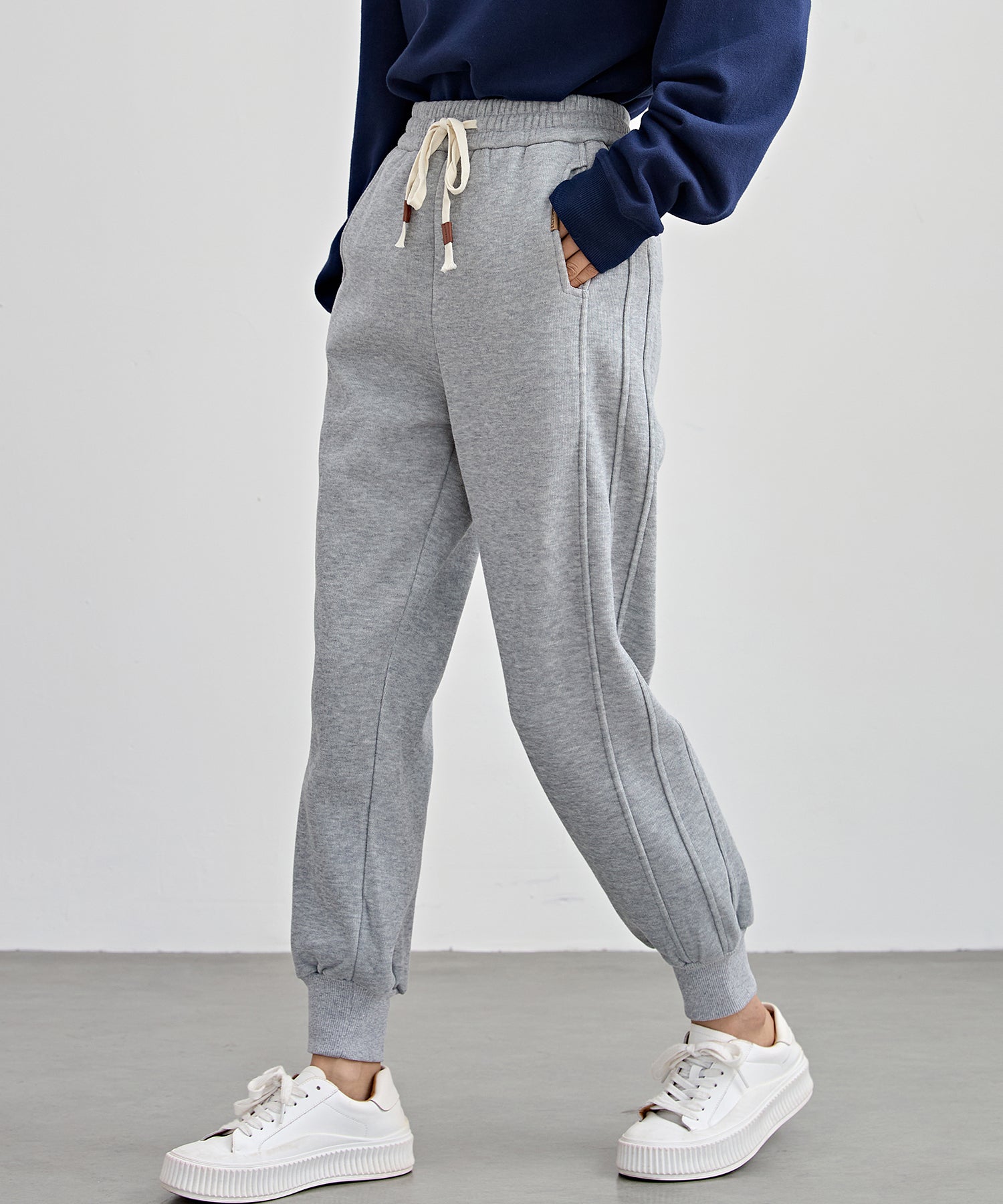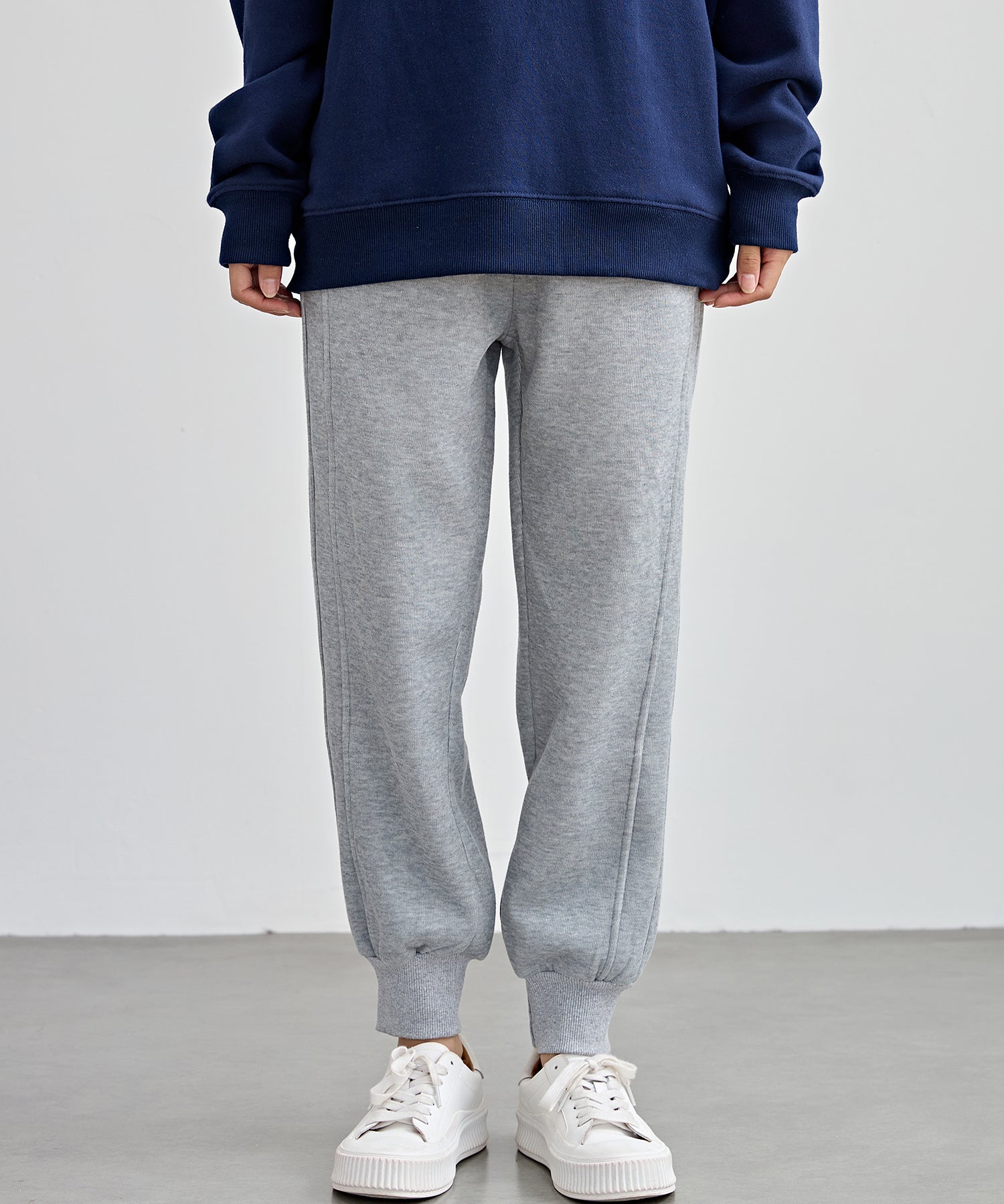 テーパードシルエットに裾リブで、スポーティなルックスにこだわったデザイン。