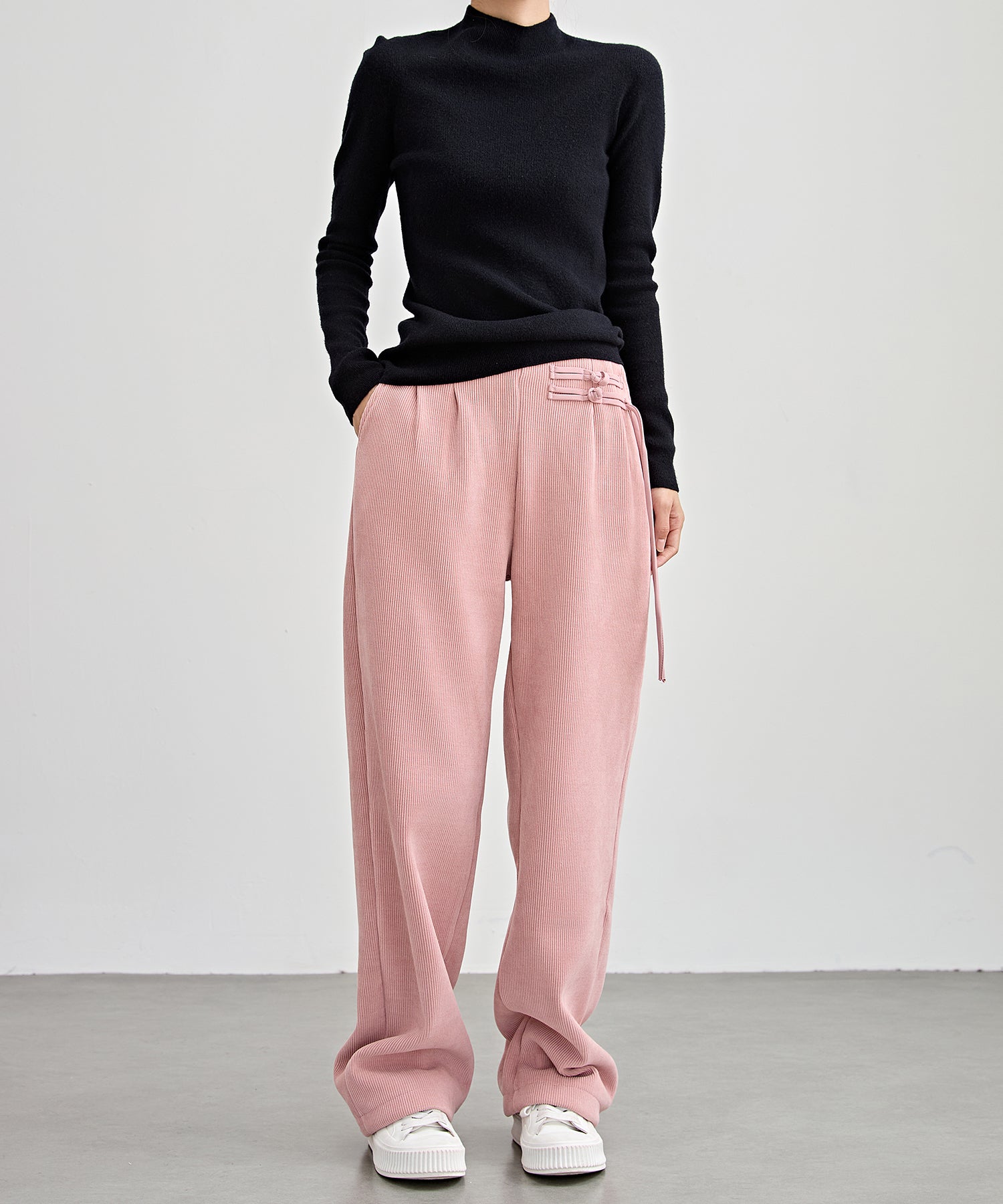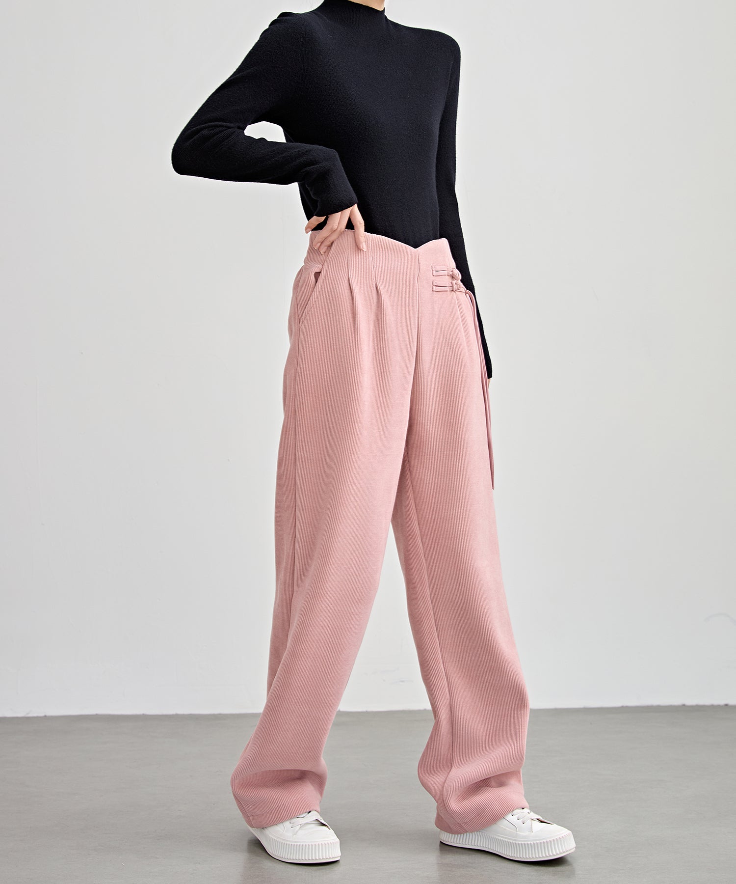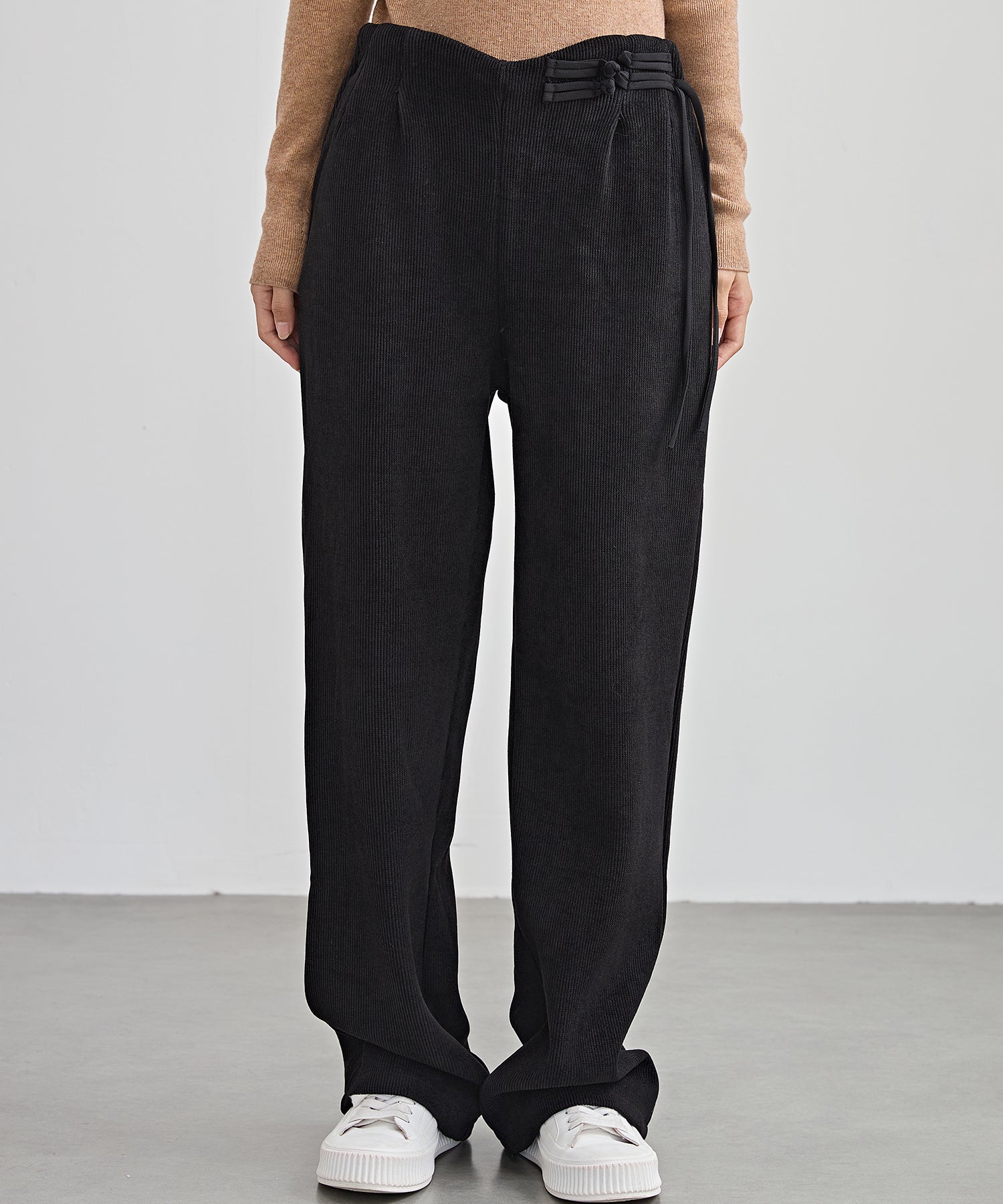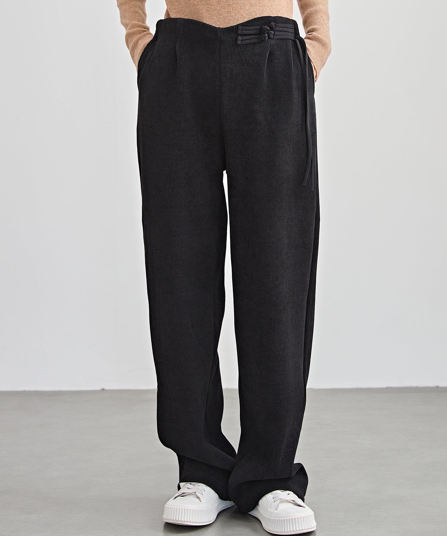 チャイナボタン コーデュロイ 裏起毛 ストレート タック パンツ