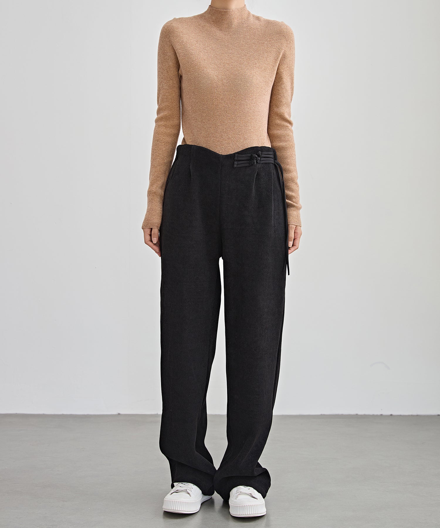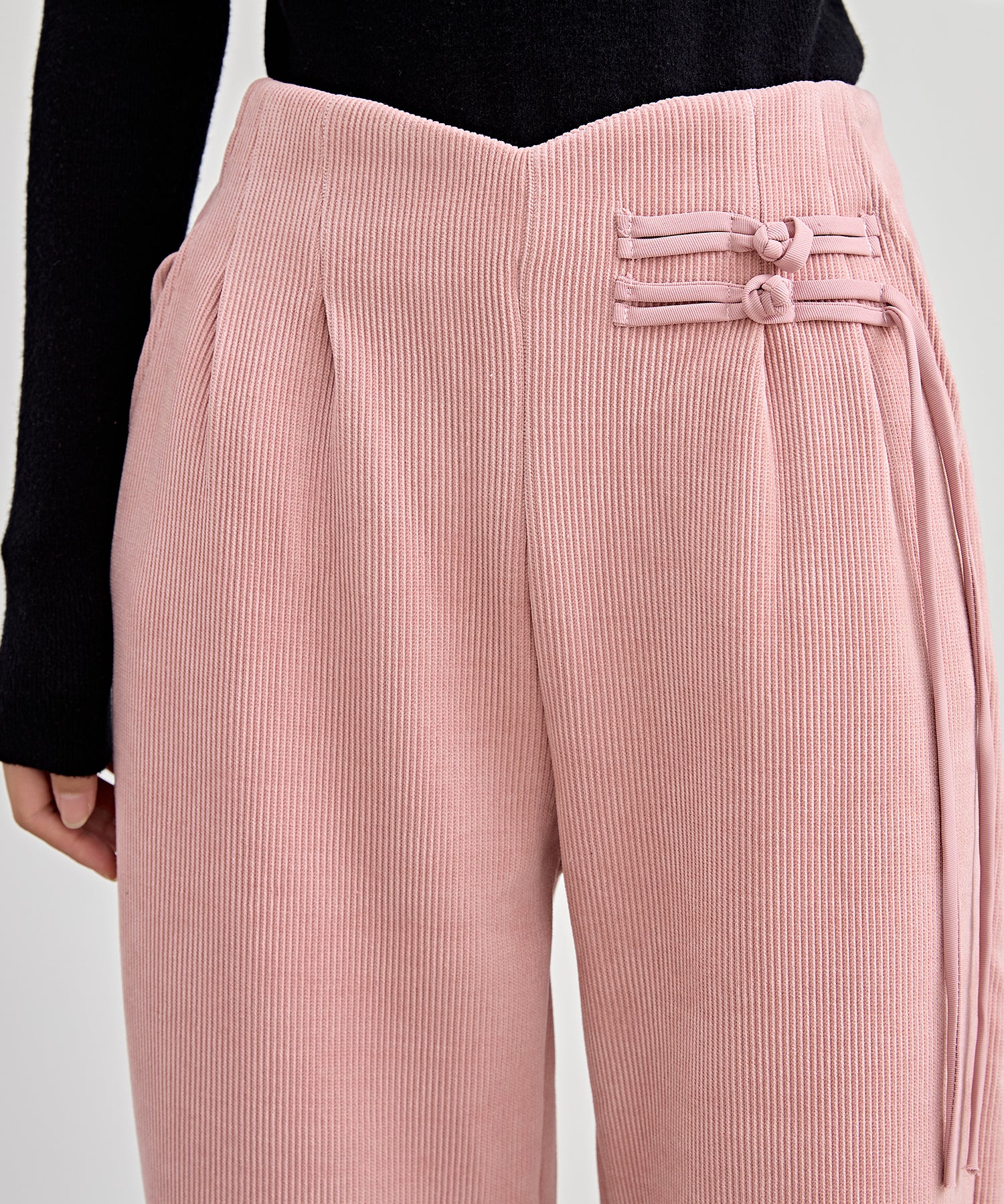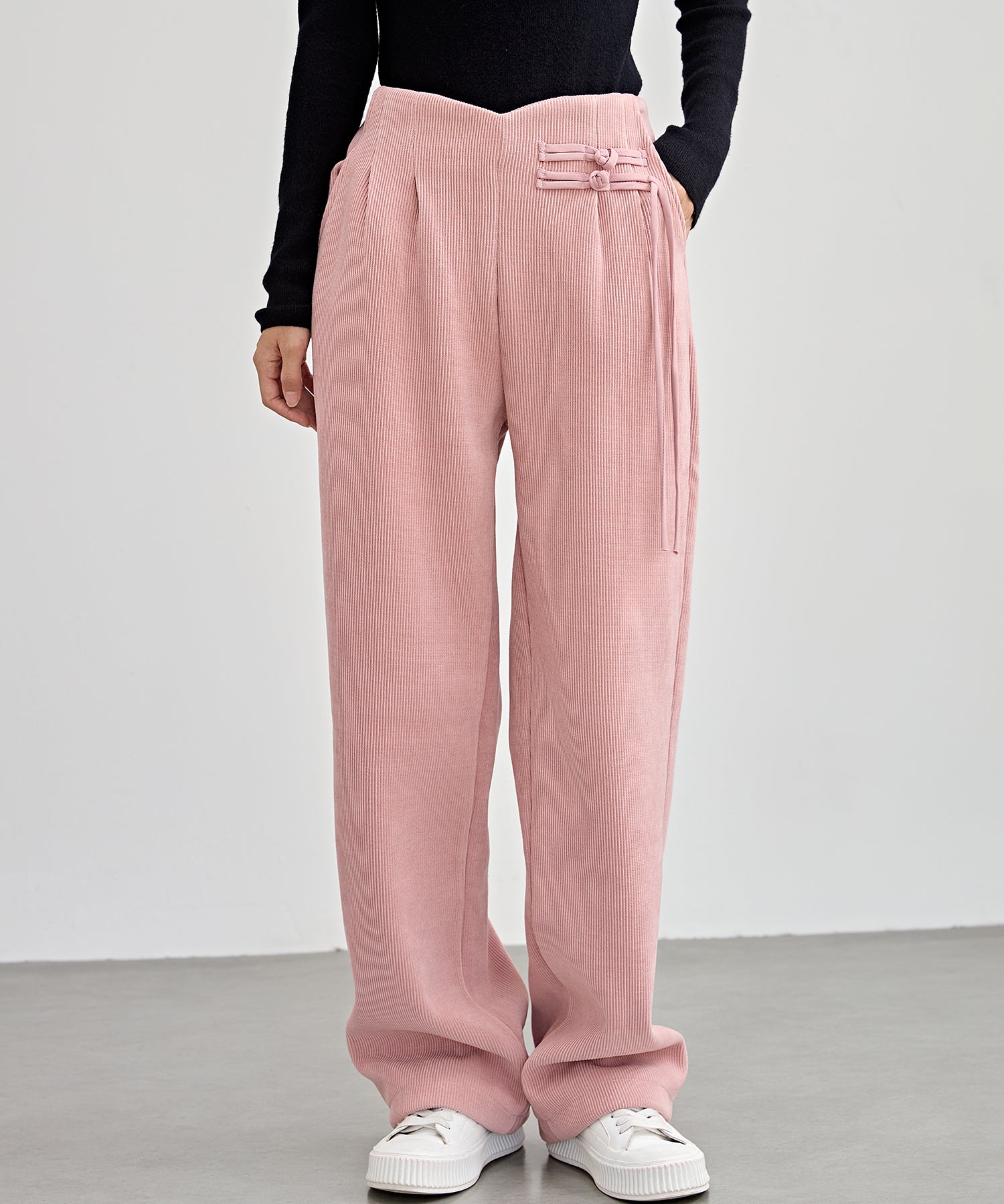チャイナボタン コーデュロイ 裏起毛 ストレート タック パンツ