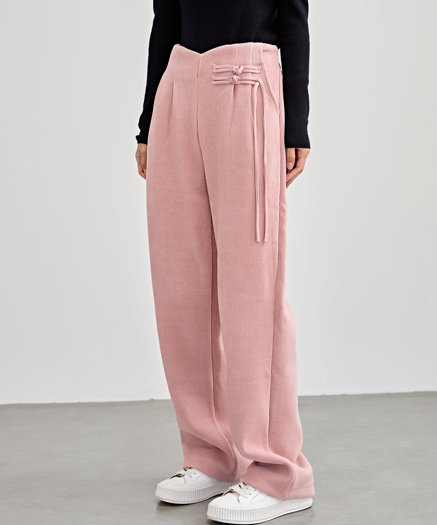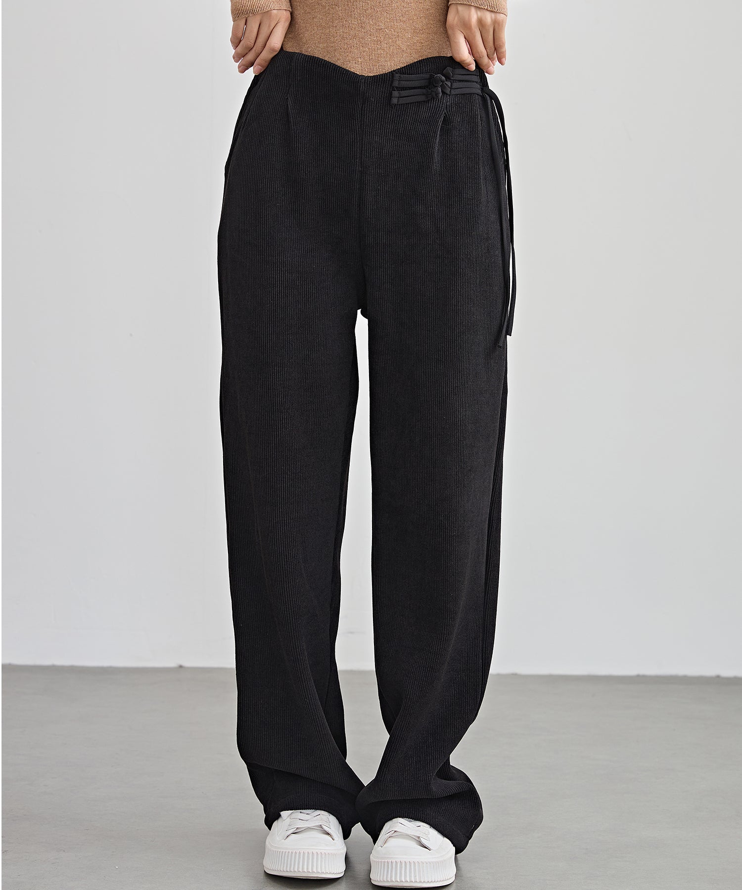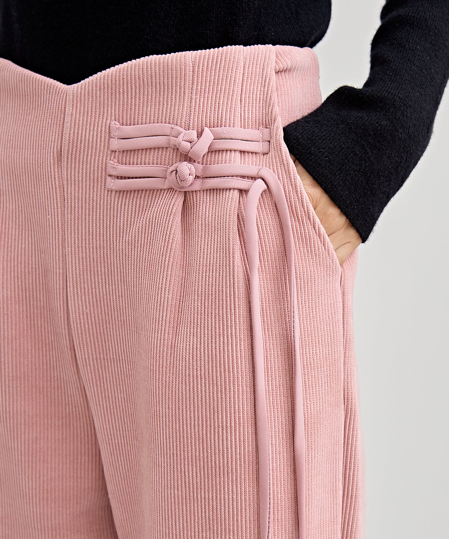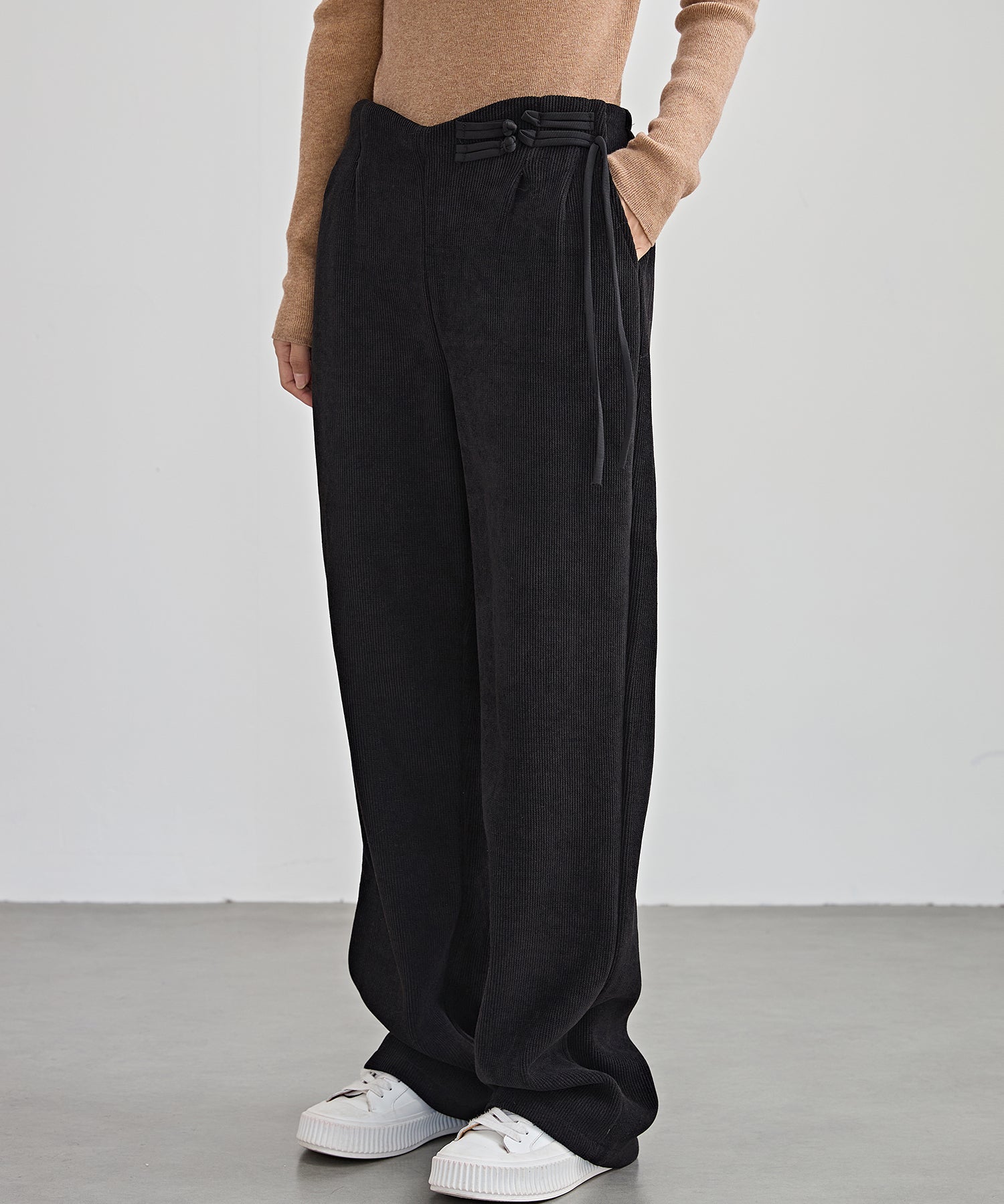 チャイナボタン コーデュロイ 裏起毛 ストレート タック パンツ