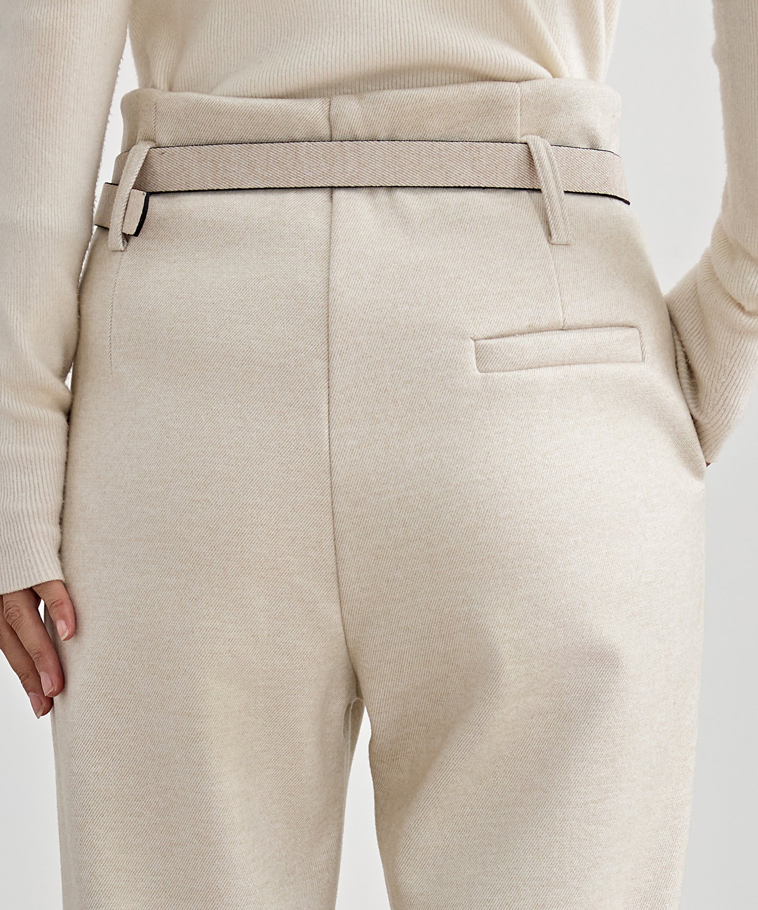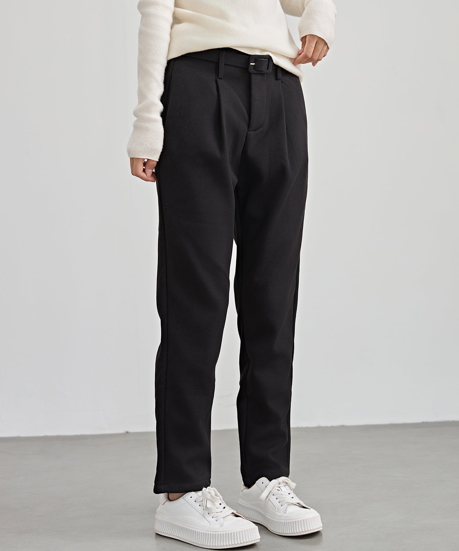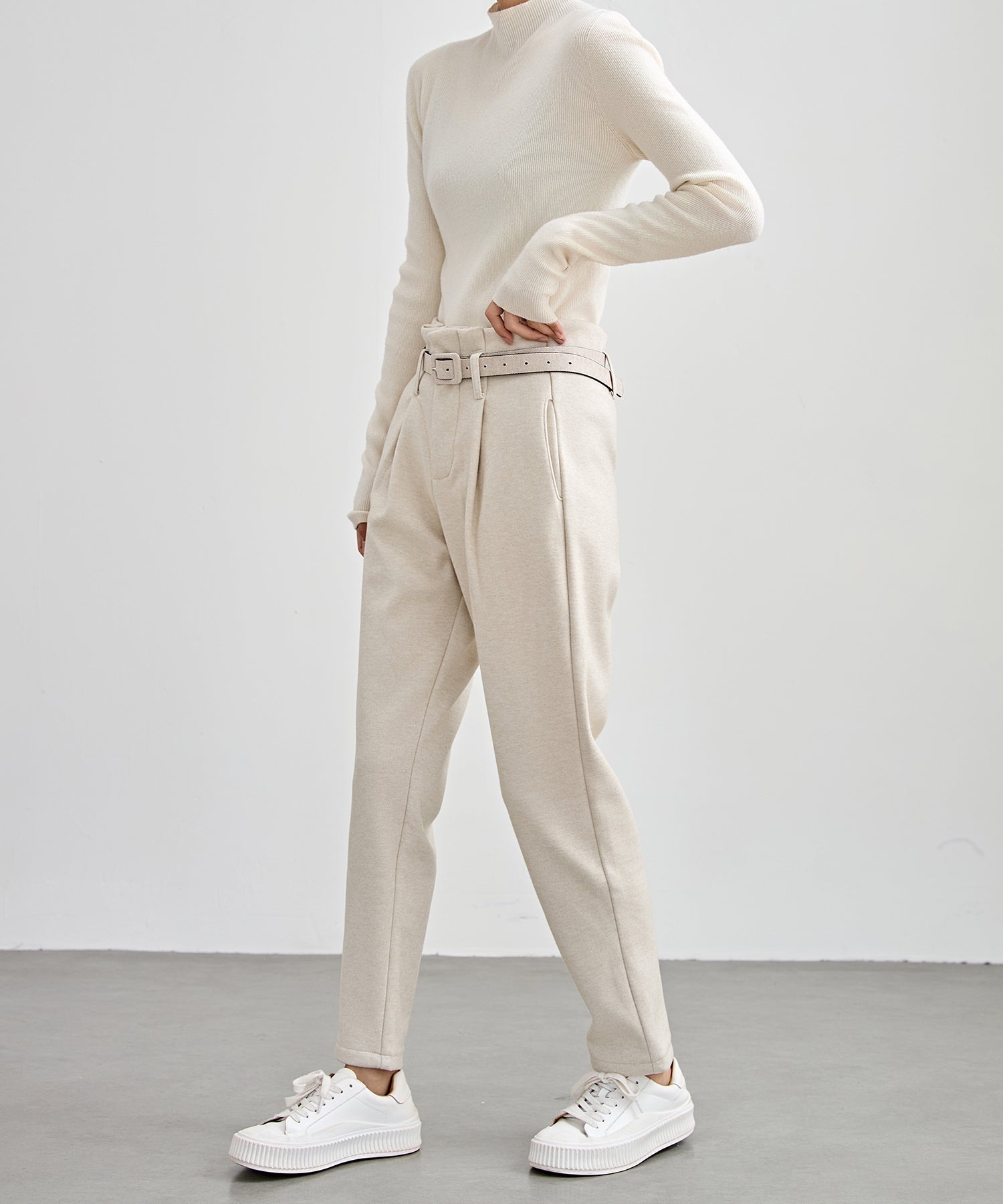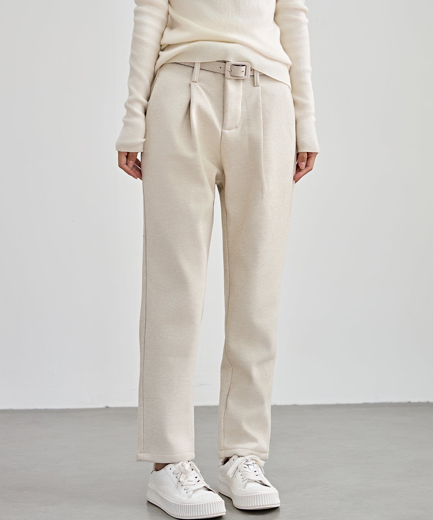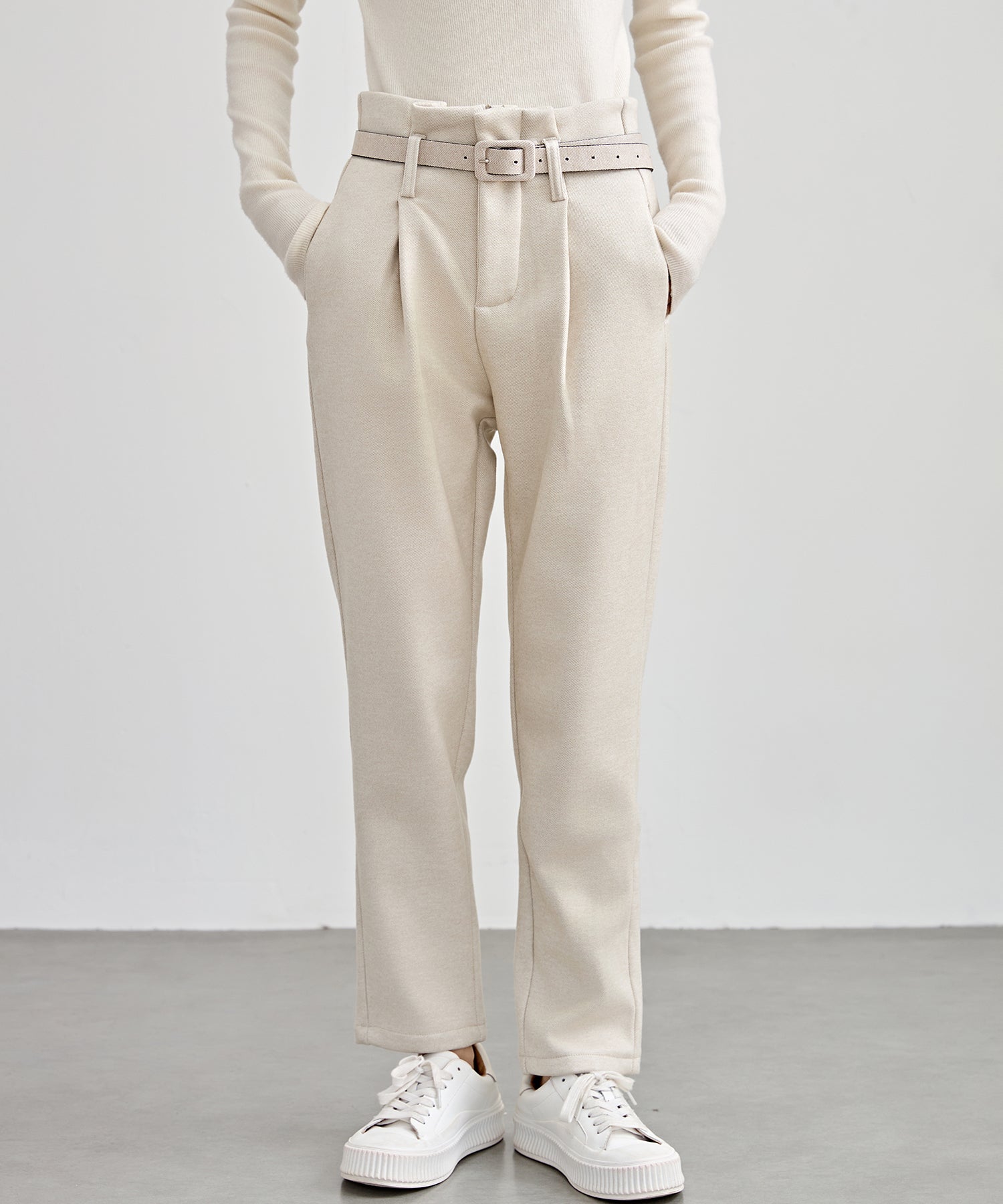 ハイウエスト ベルト付き 裏起毛 テーパード パンツ