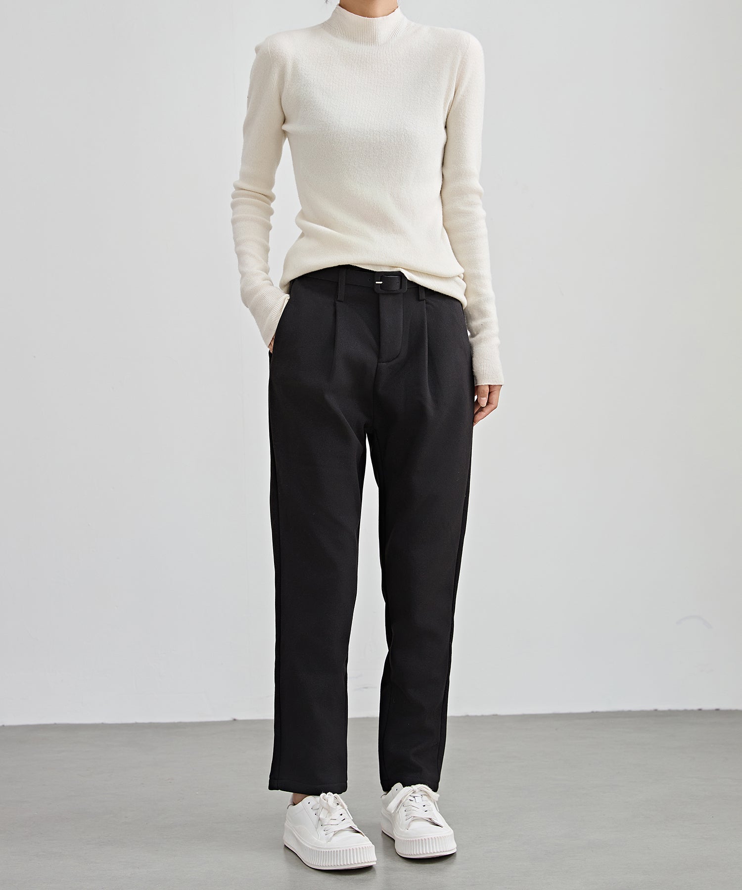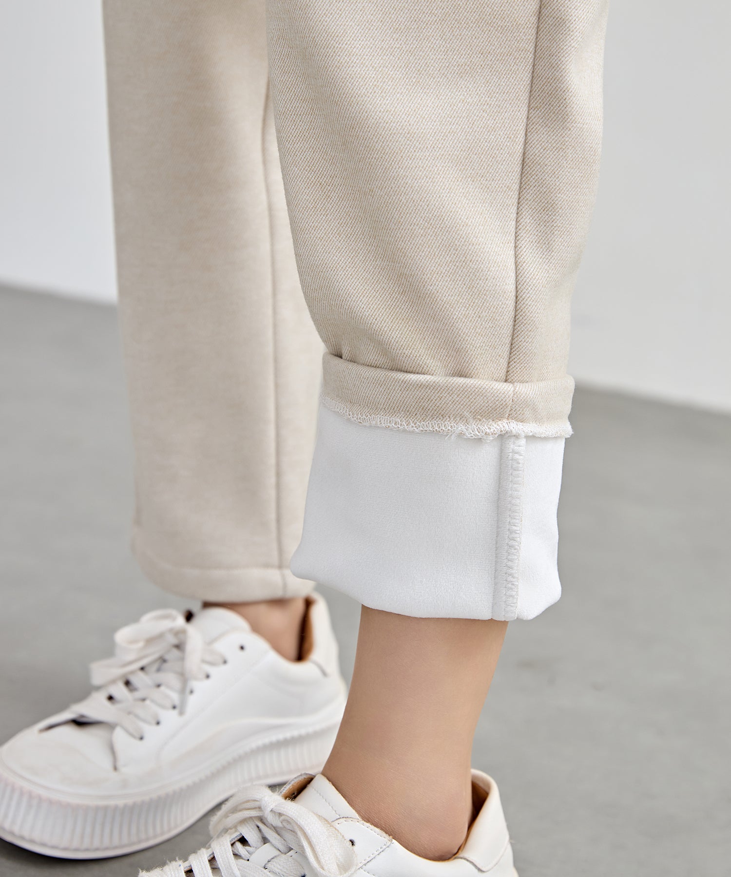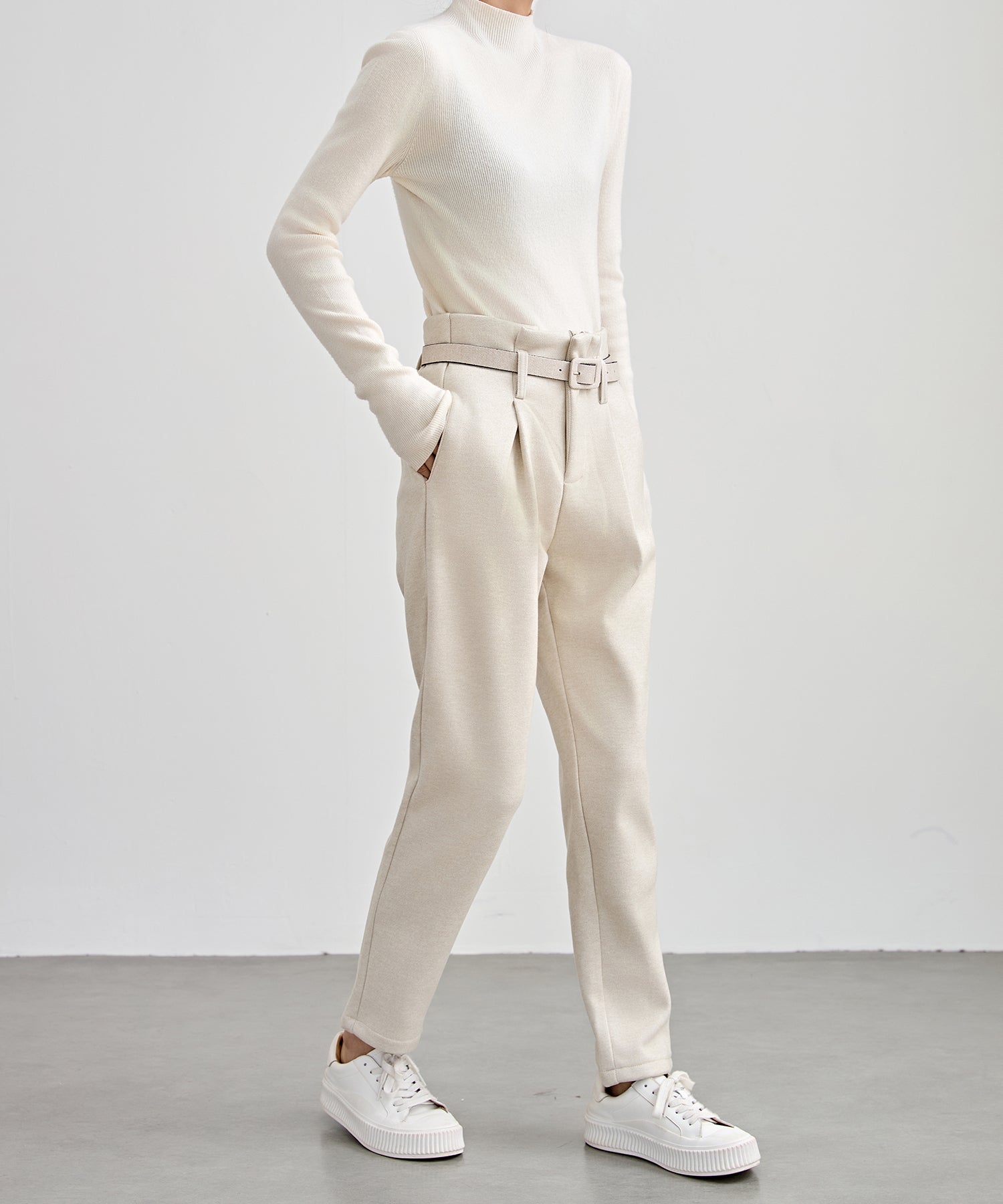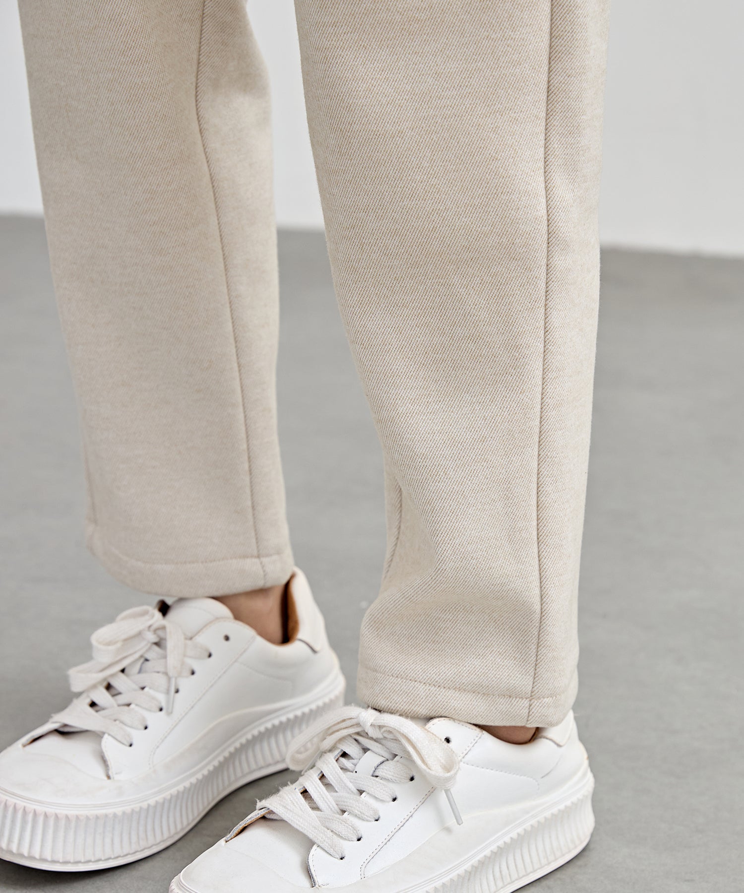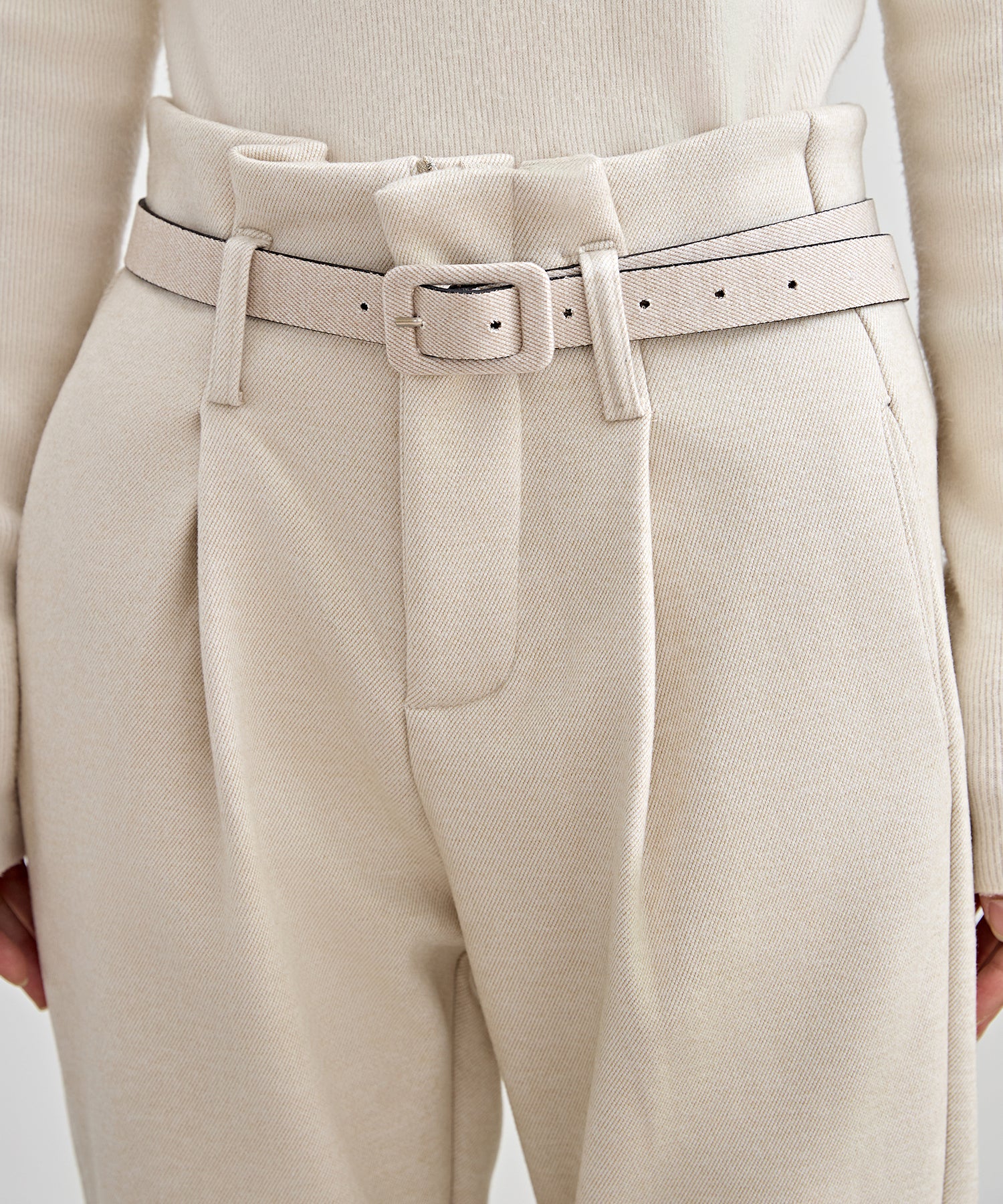 ハイウエスト ベルト付き 裏起毛 テーパード パンツ