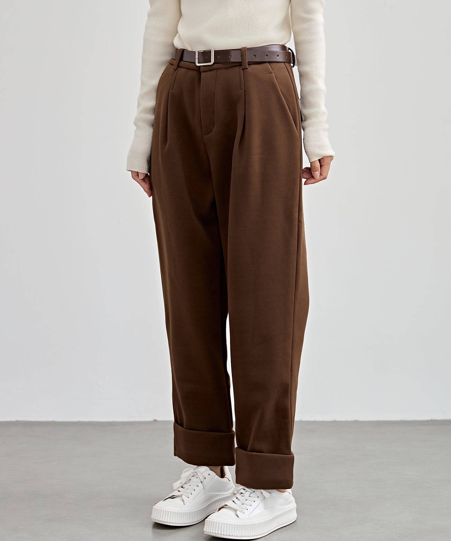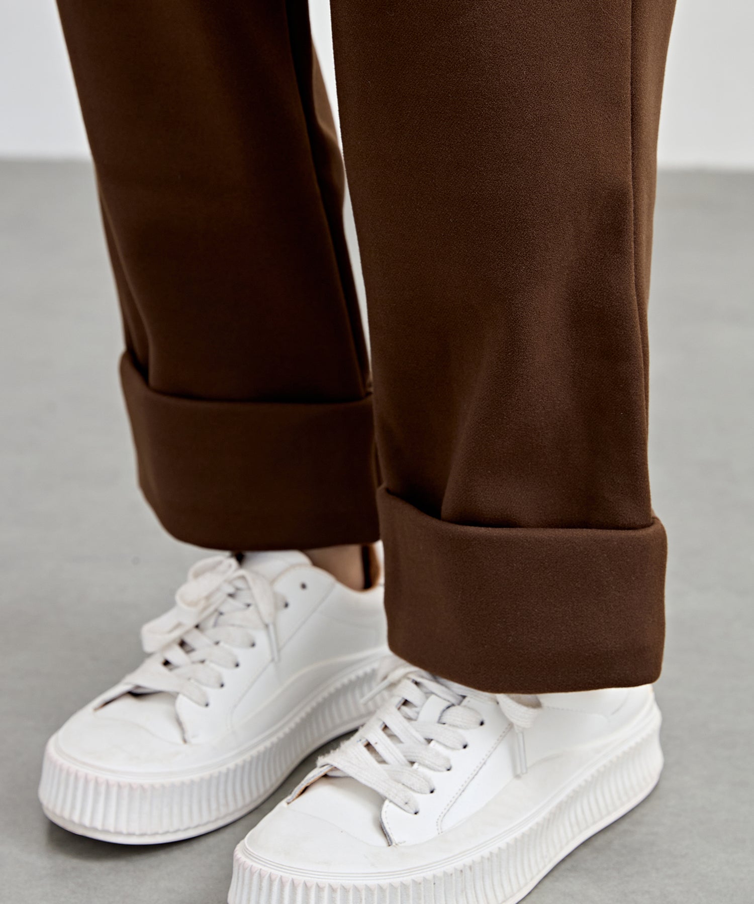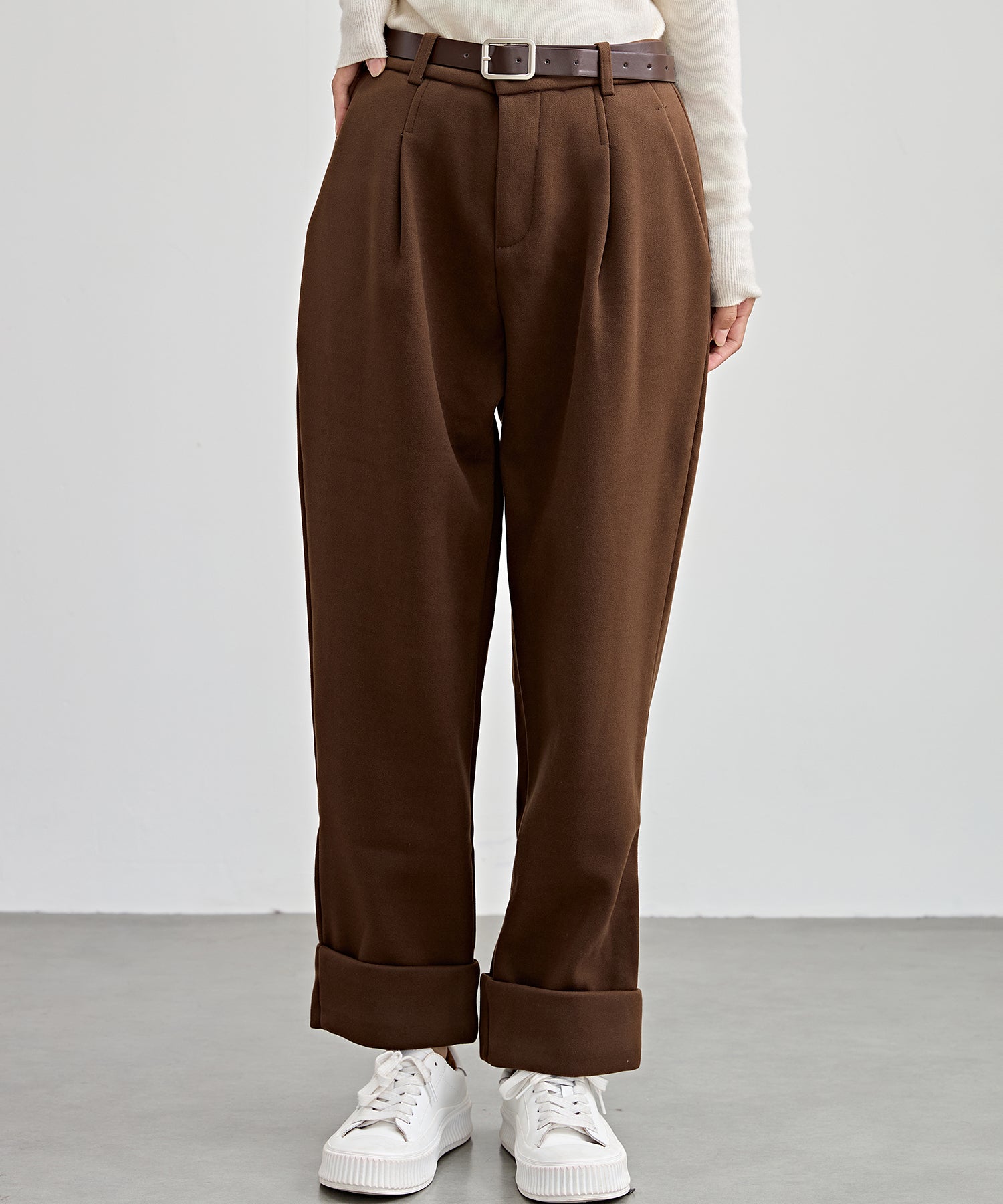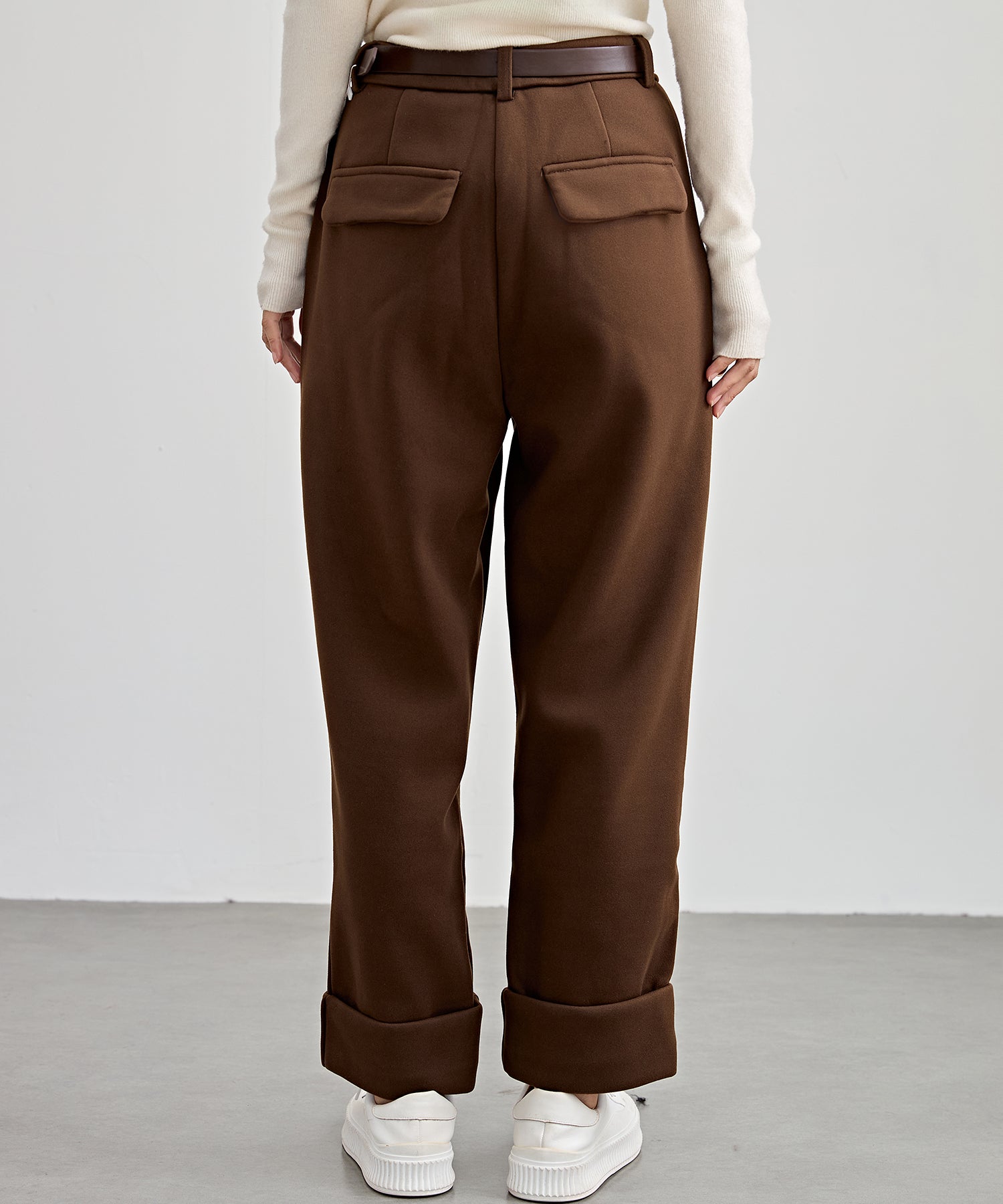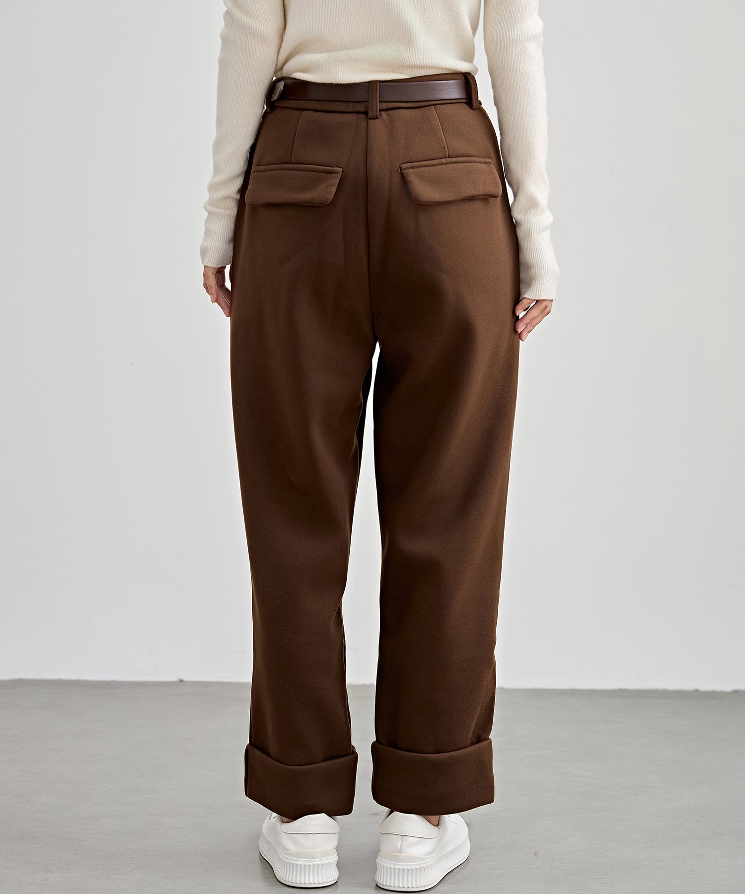 裏起毛 ストレート ロールアップ タック パンツ