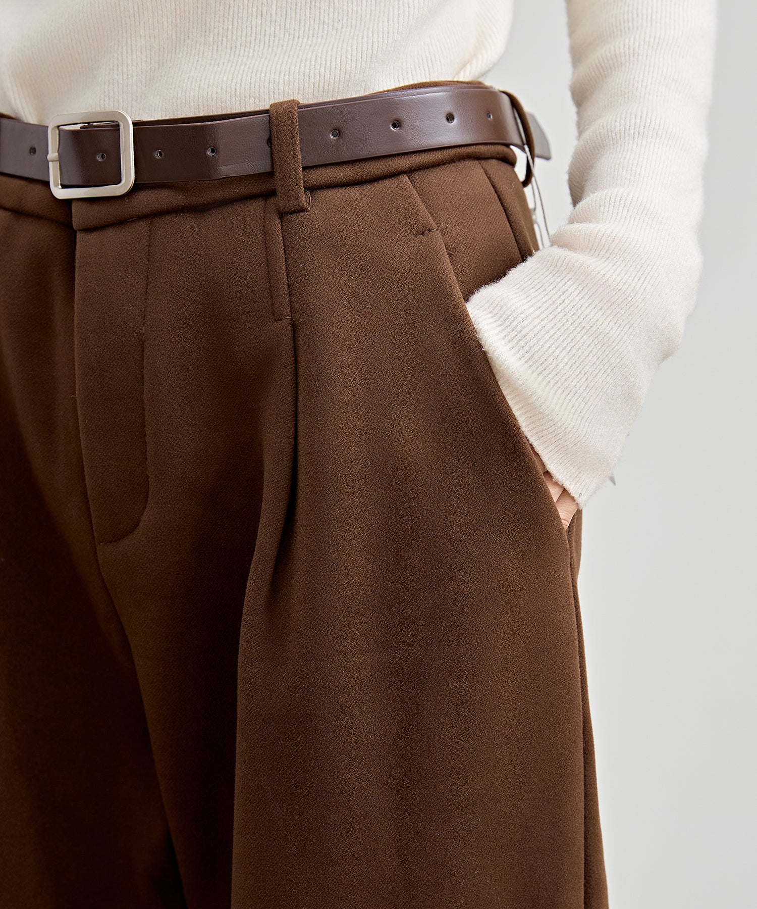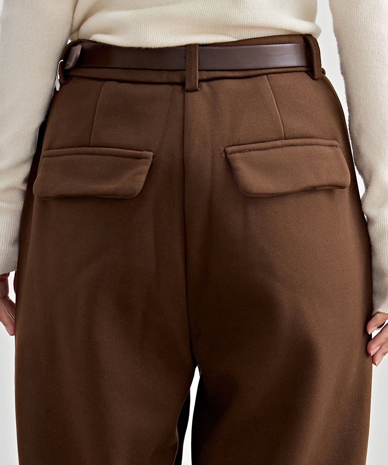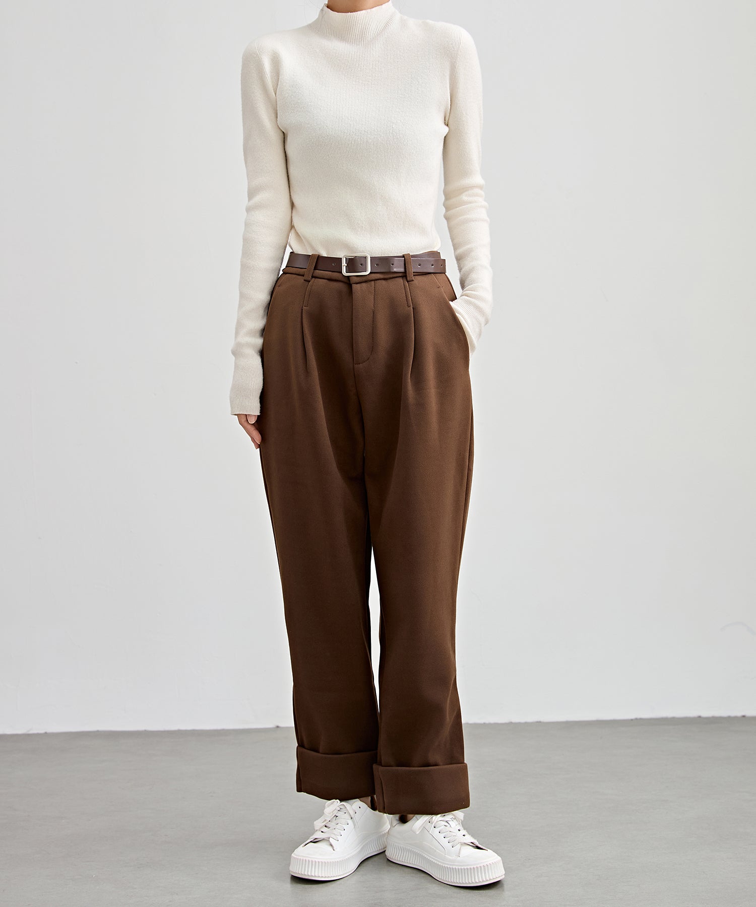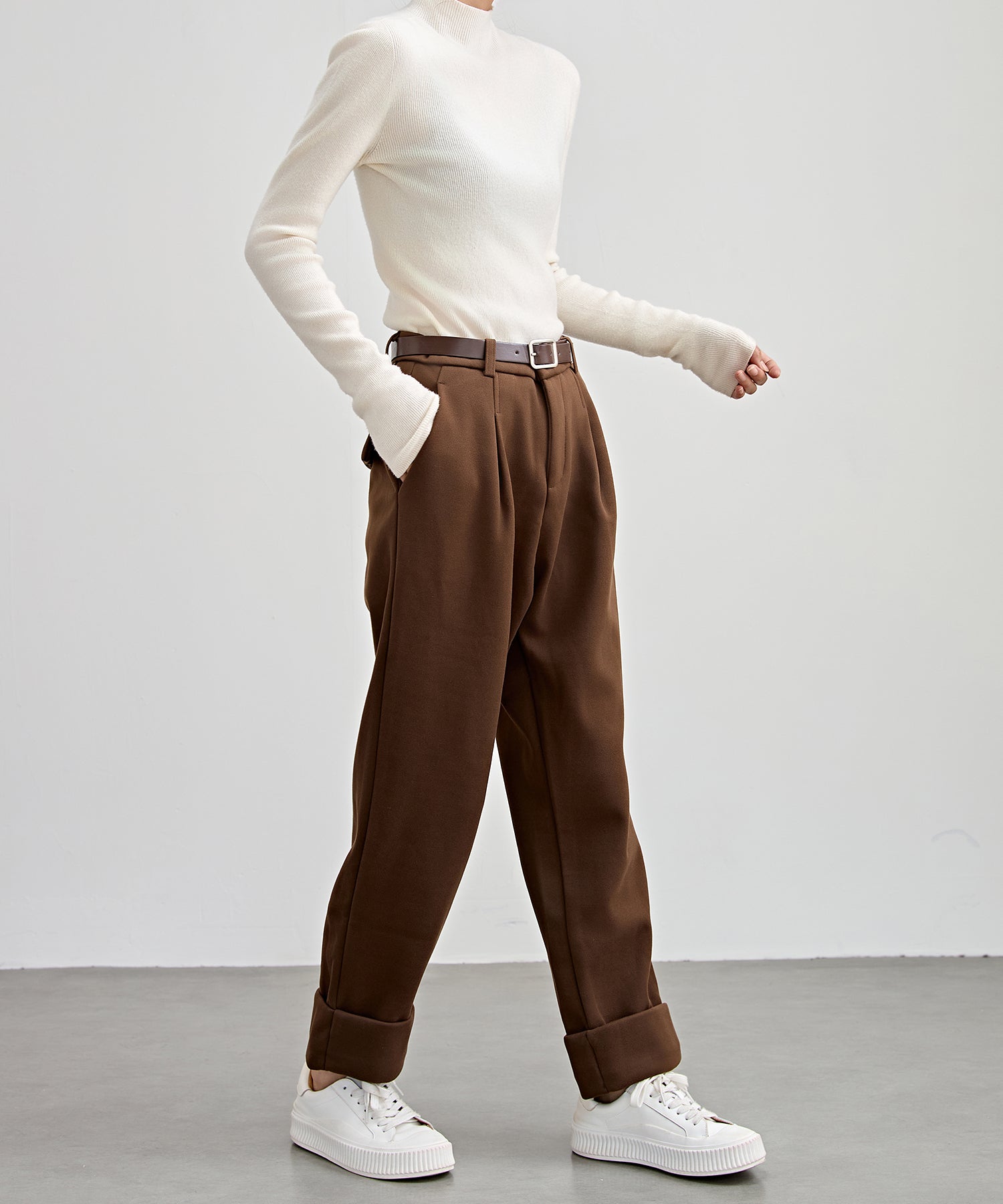 裏起毛 ストレート ロールアップ タック パンツ
