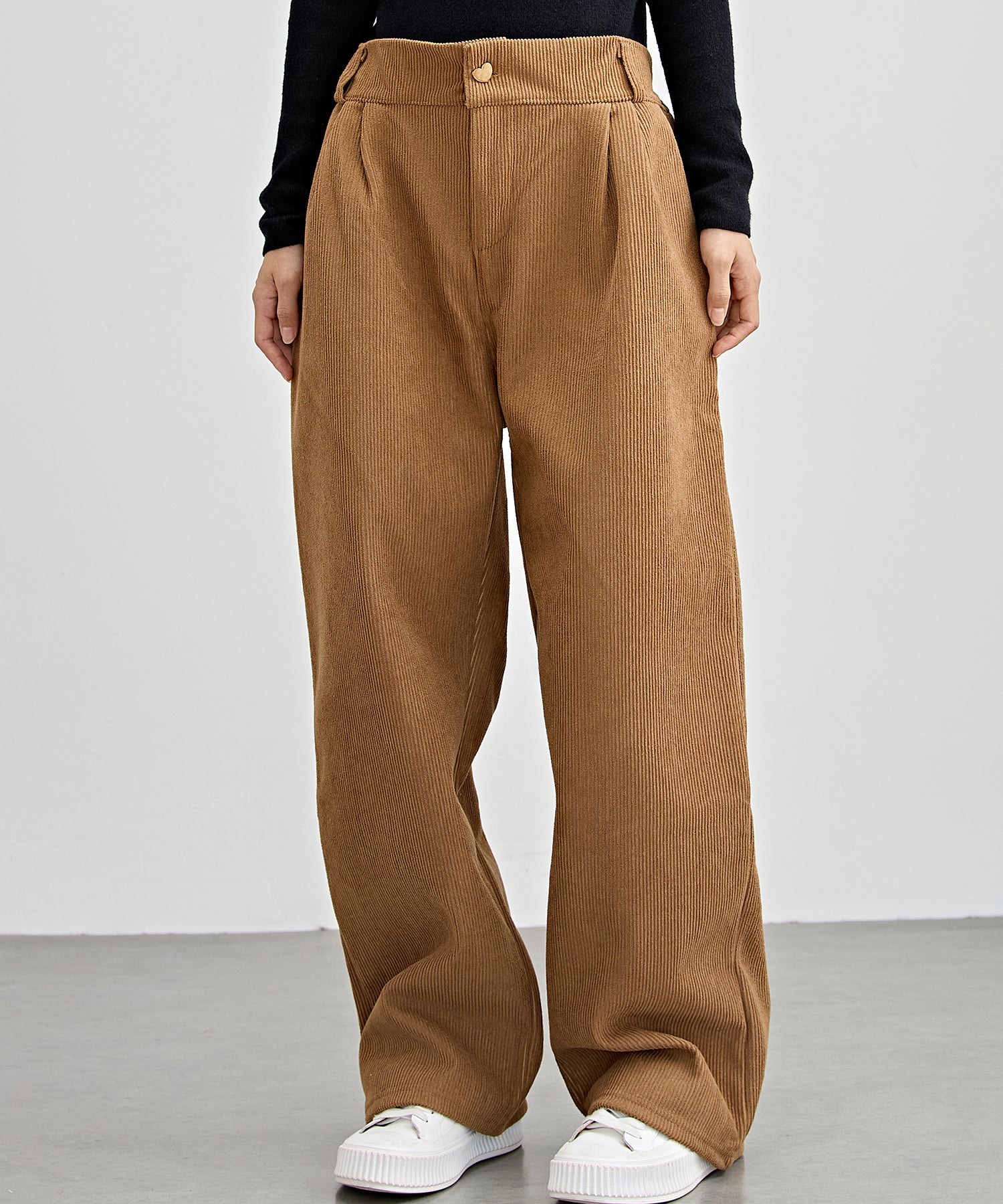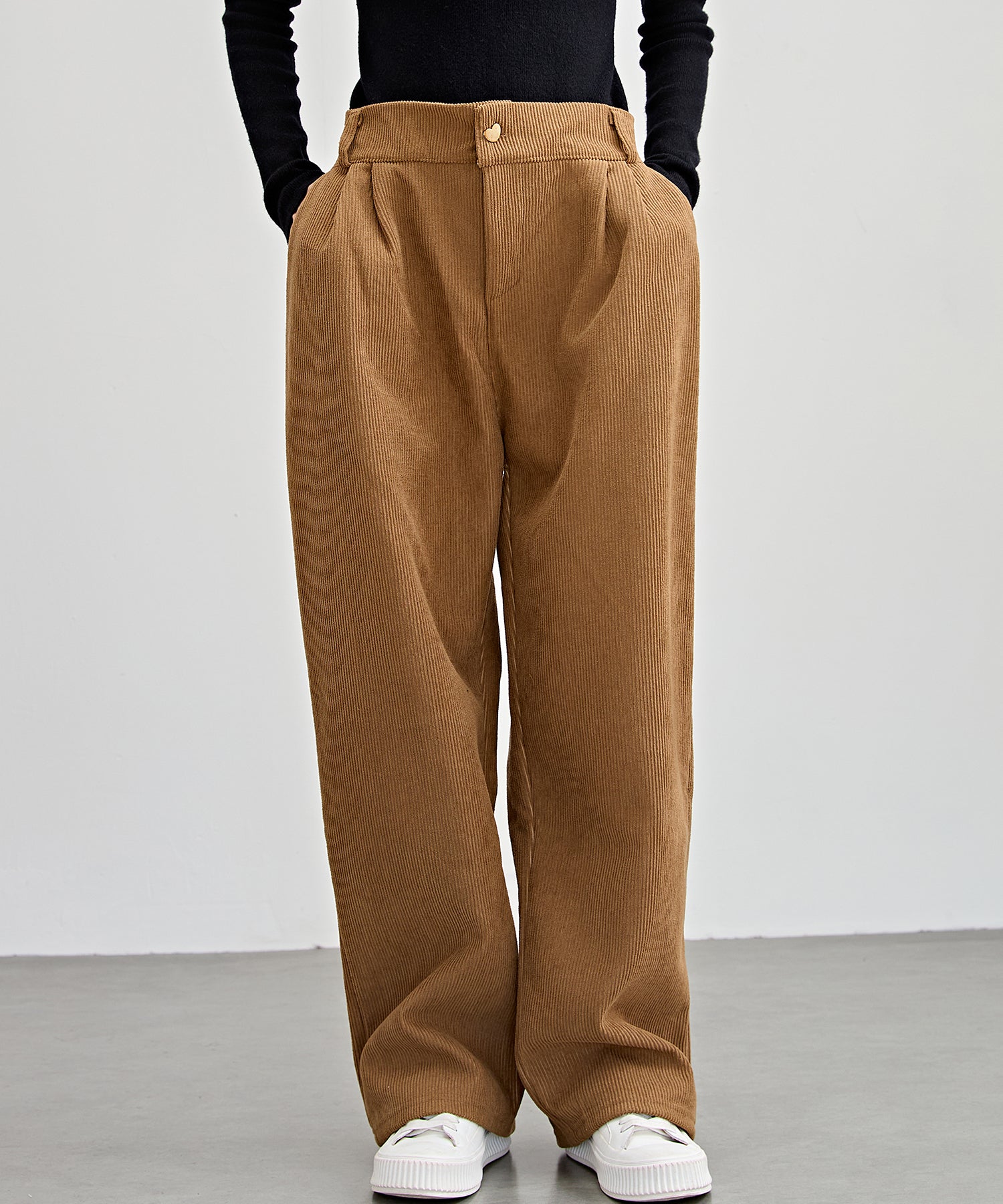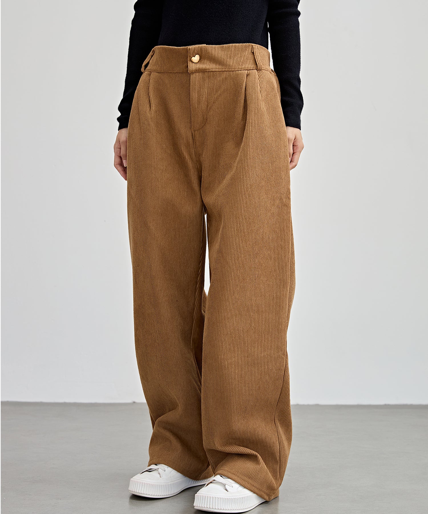 ハートボタン コーデュロイ ストレート パンツ