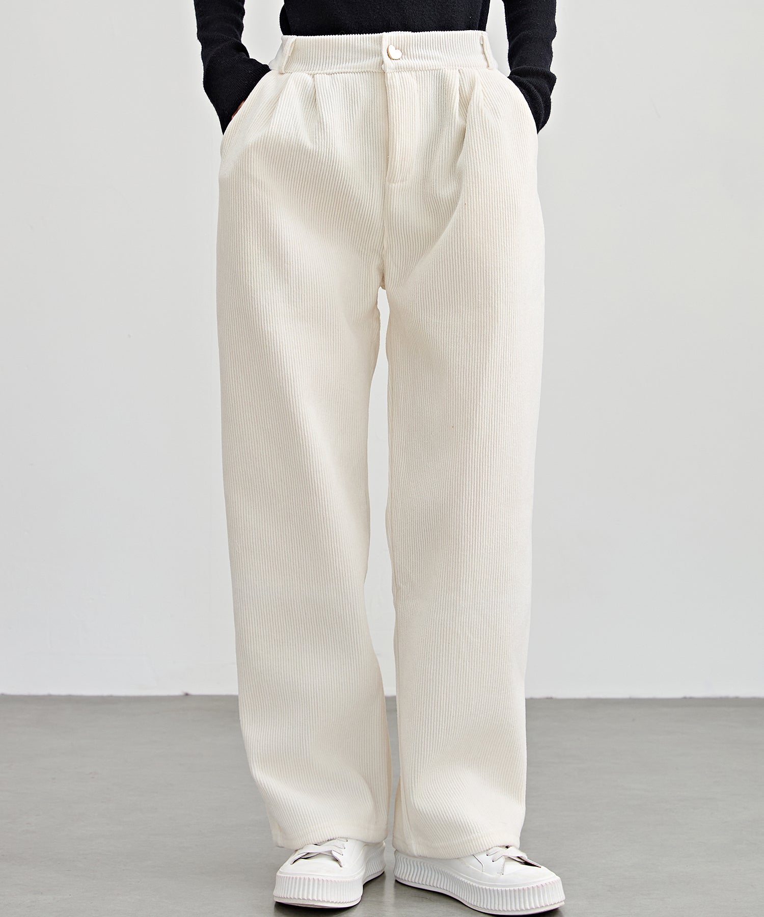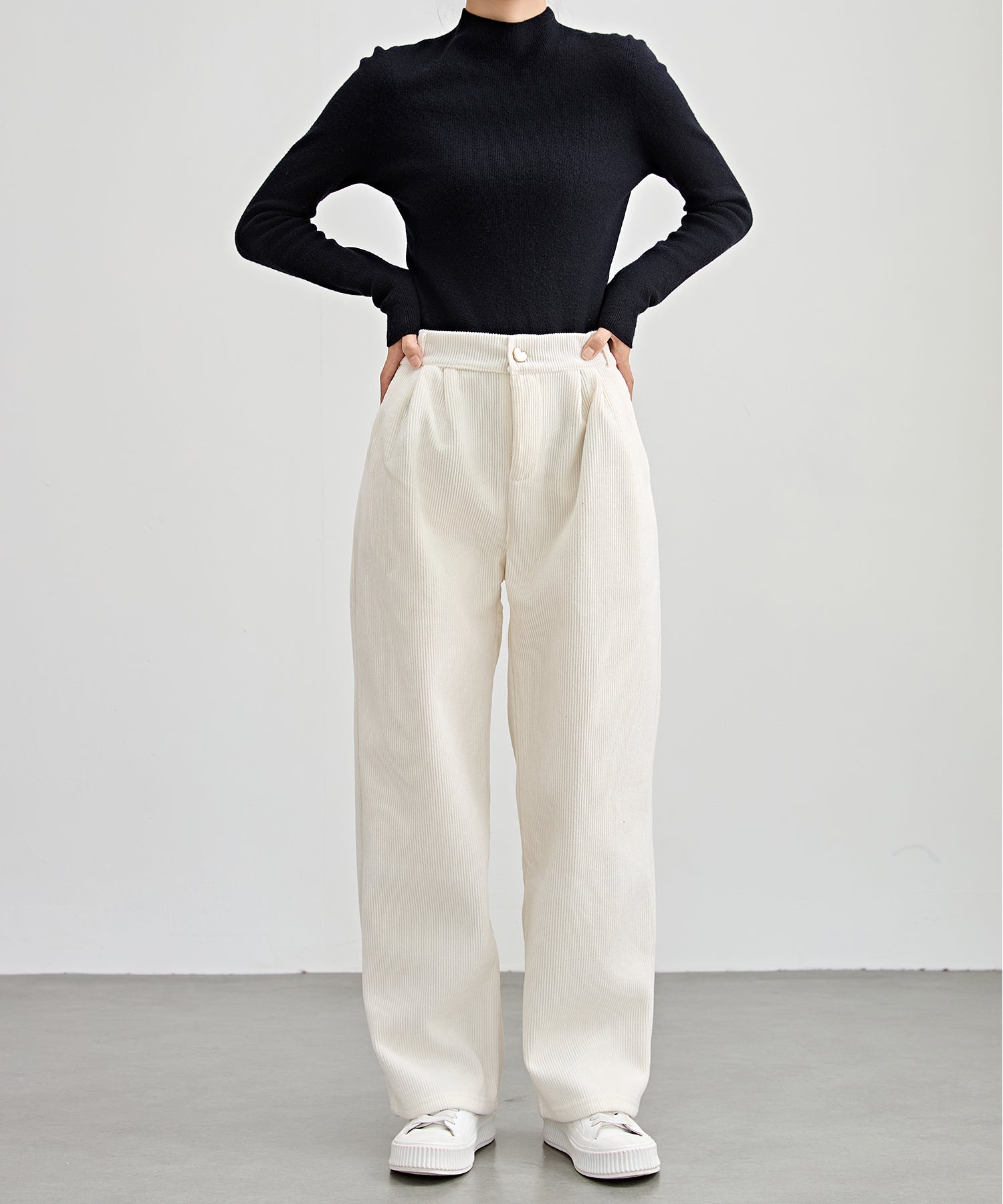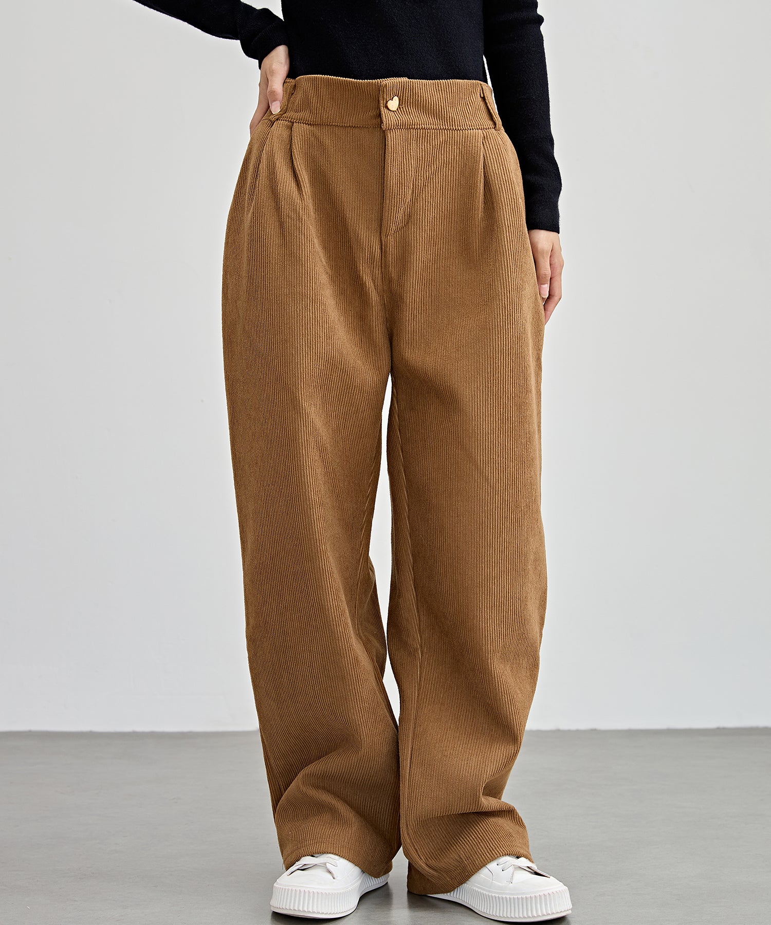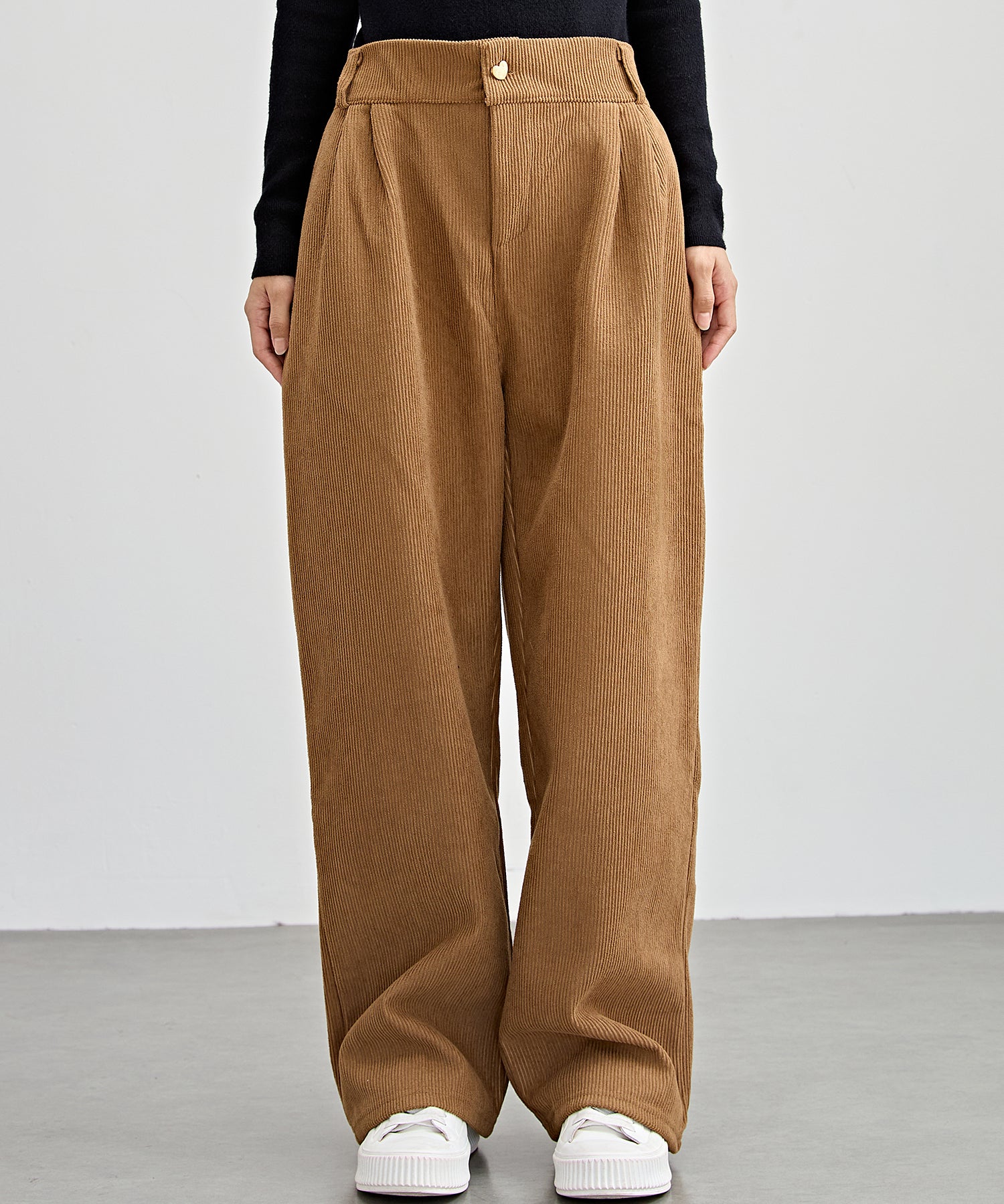 ハートボタン コーデュロイ ストレート パンツ