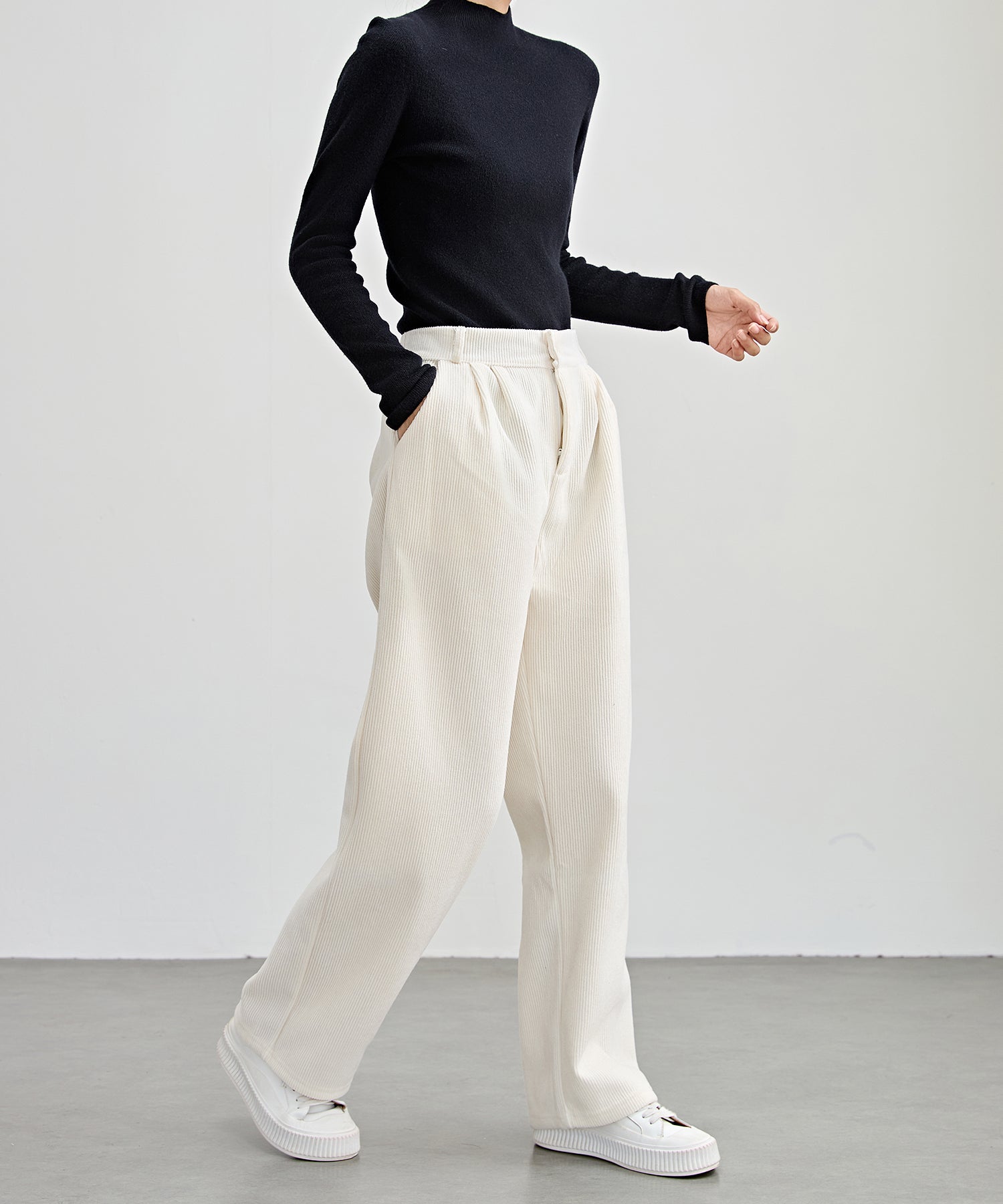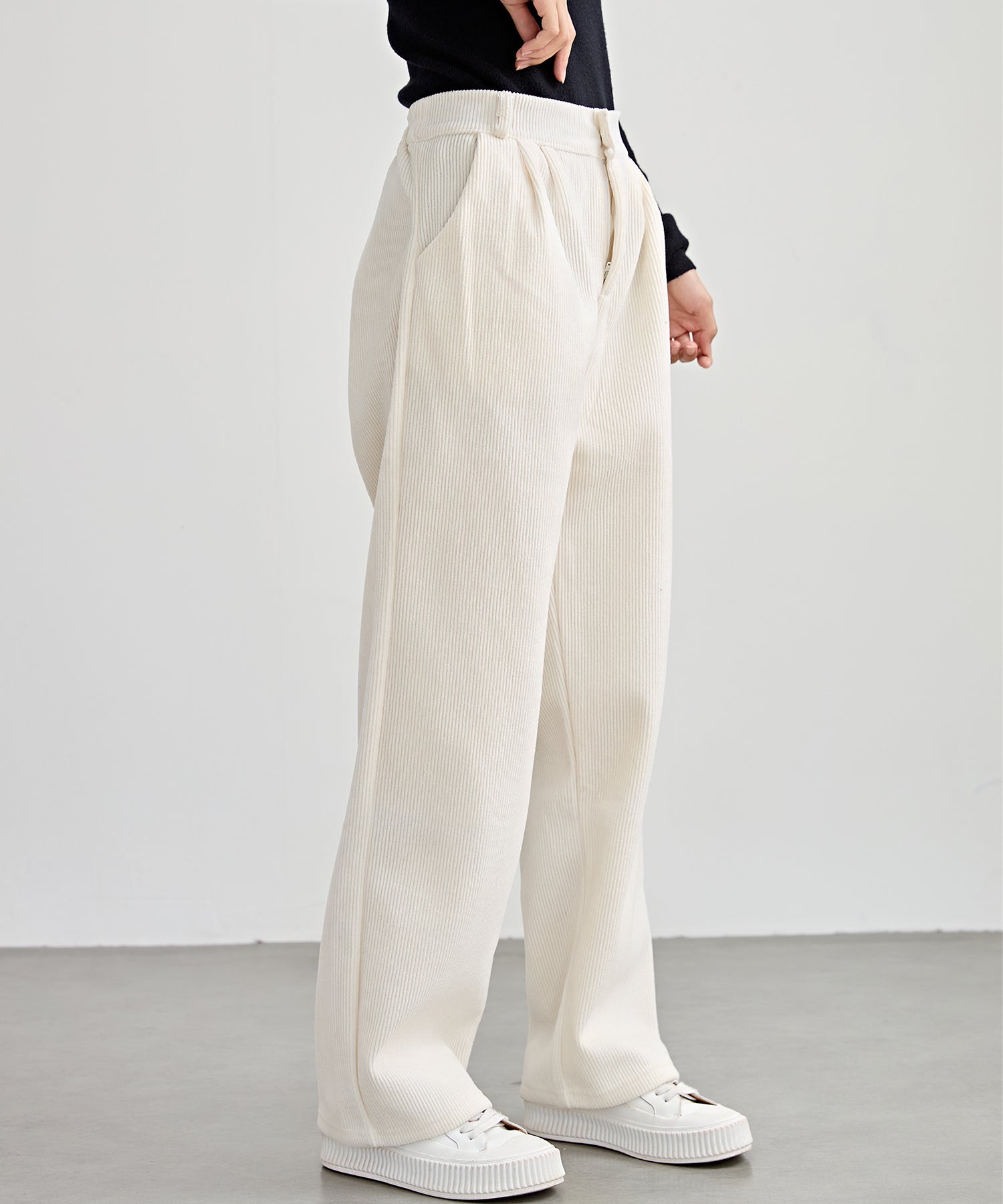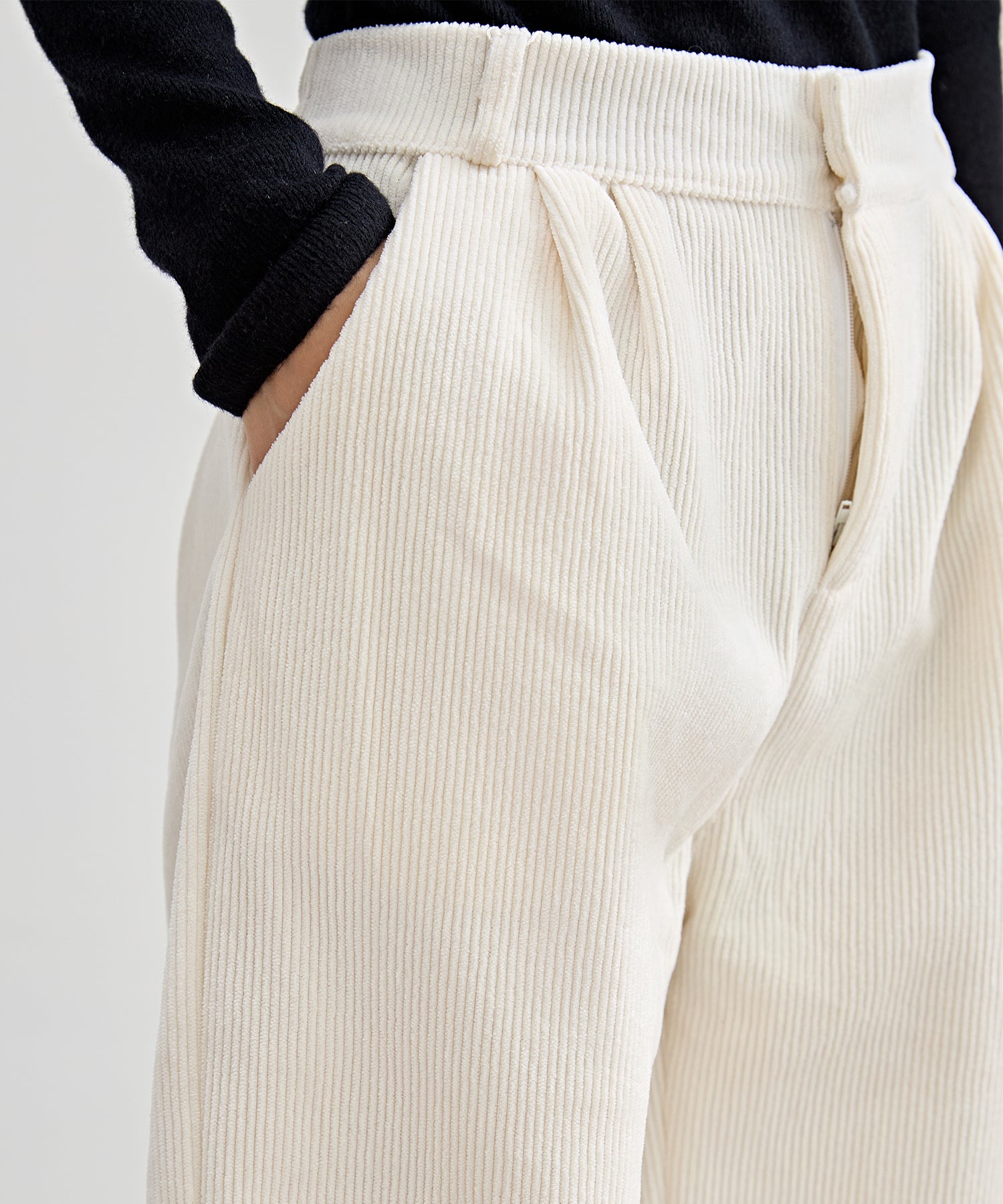 ウォーミーなコーデュロイ生地のパンツ。