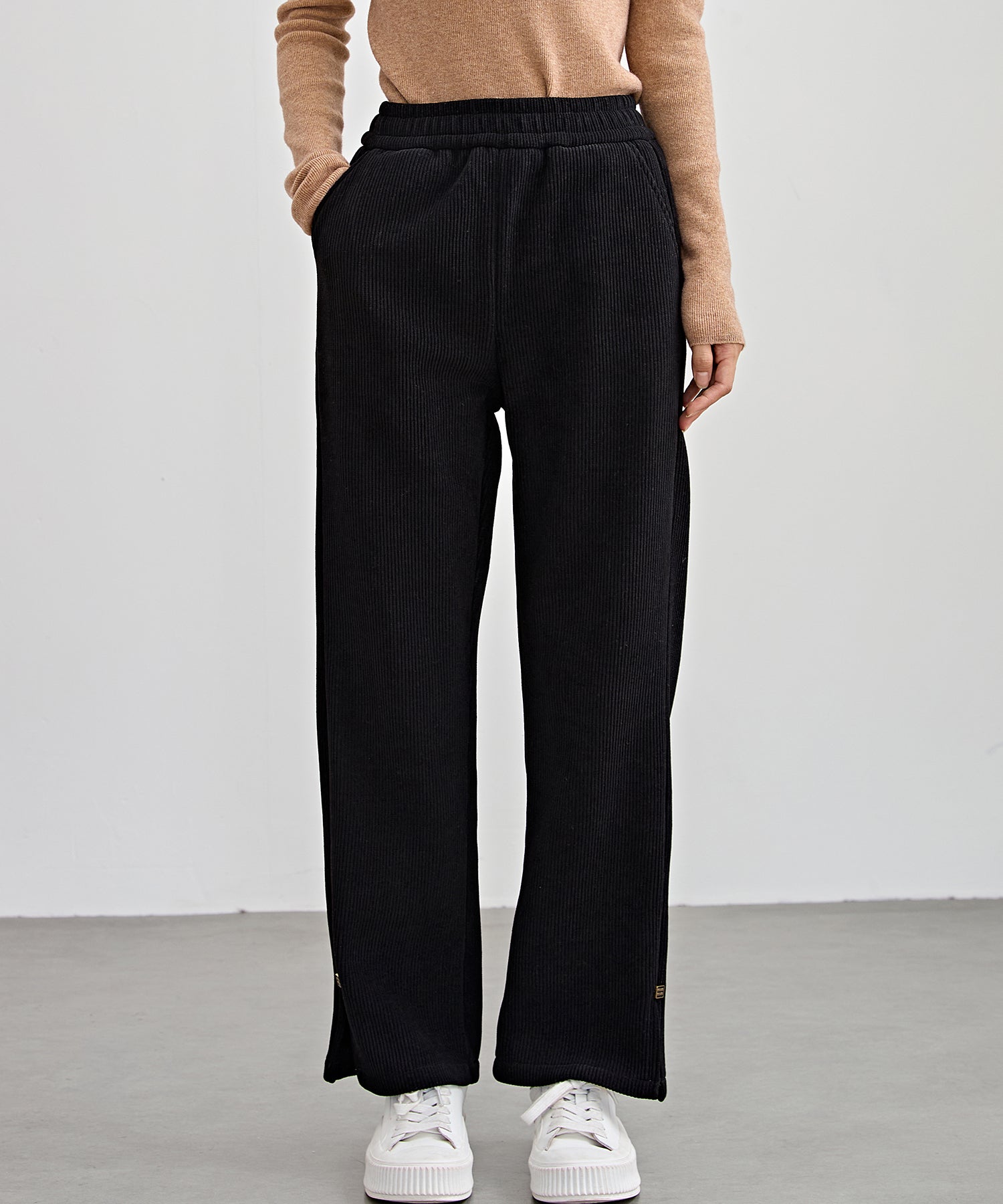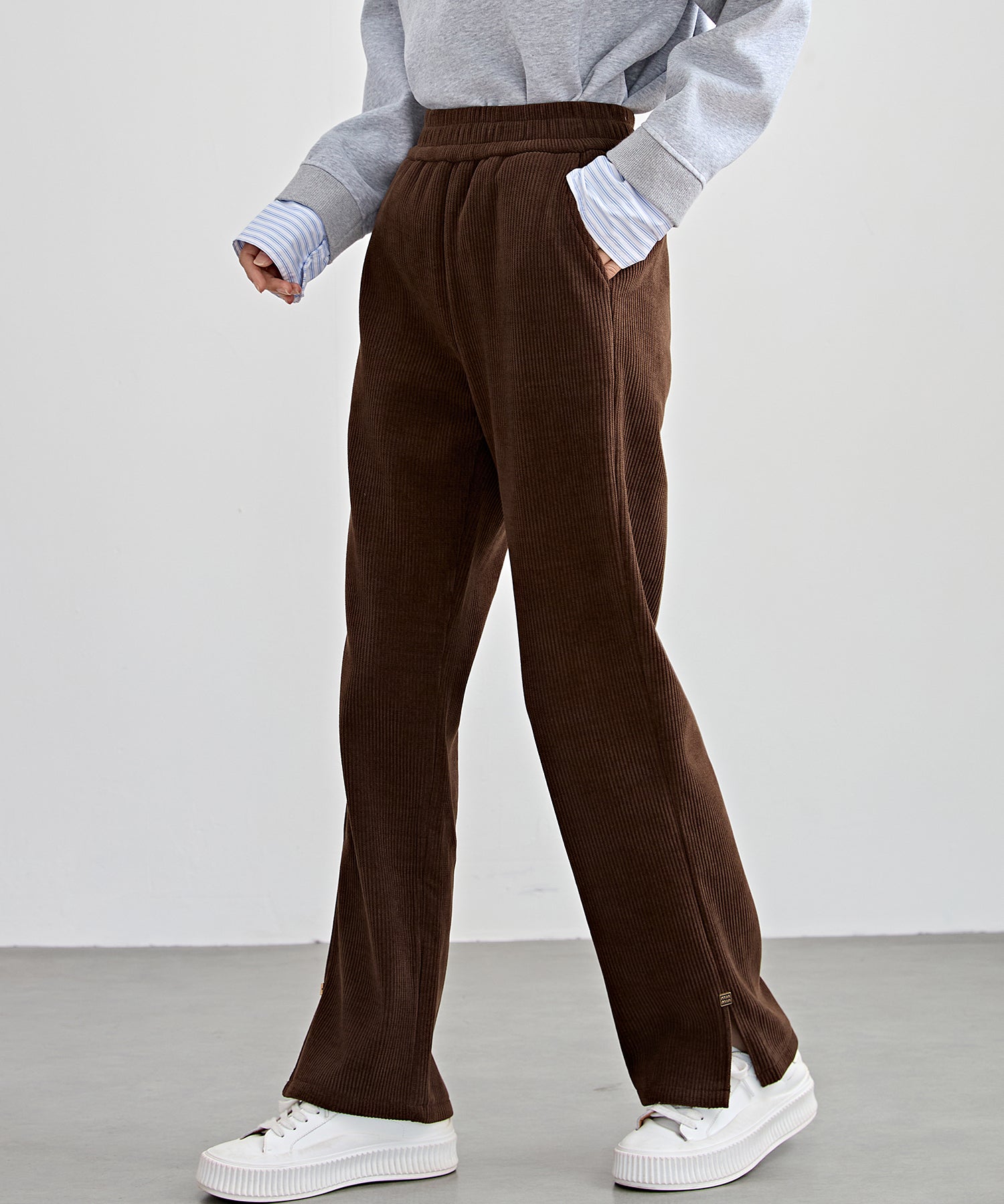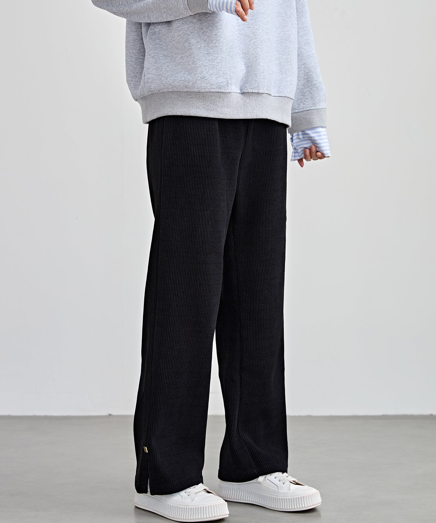 サイド スリット ストレート コーデュロイ パンツ 裏起毛