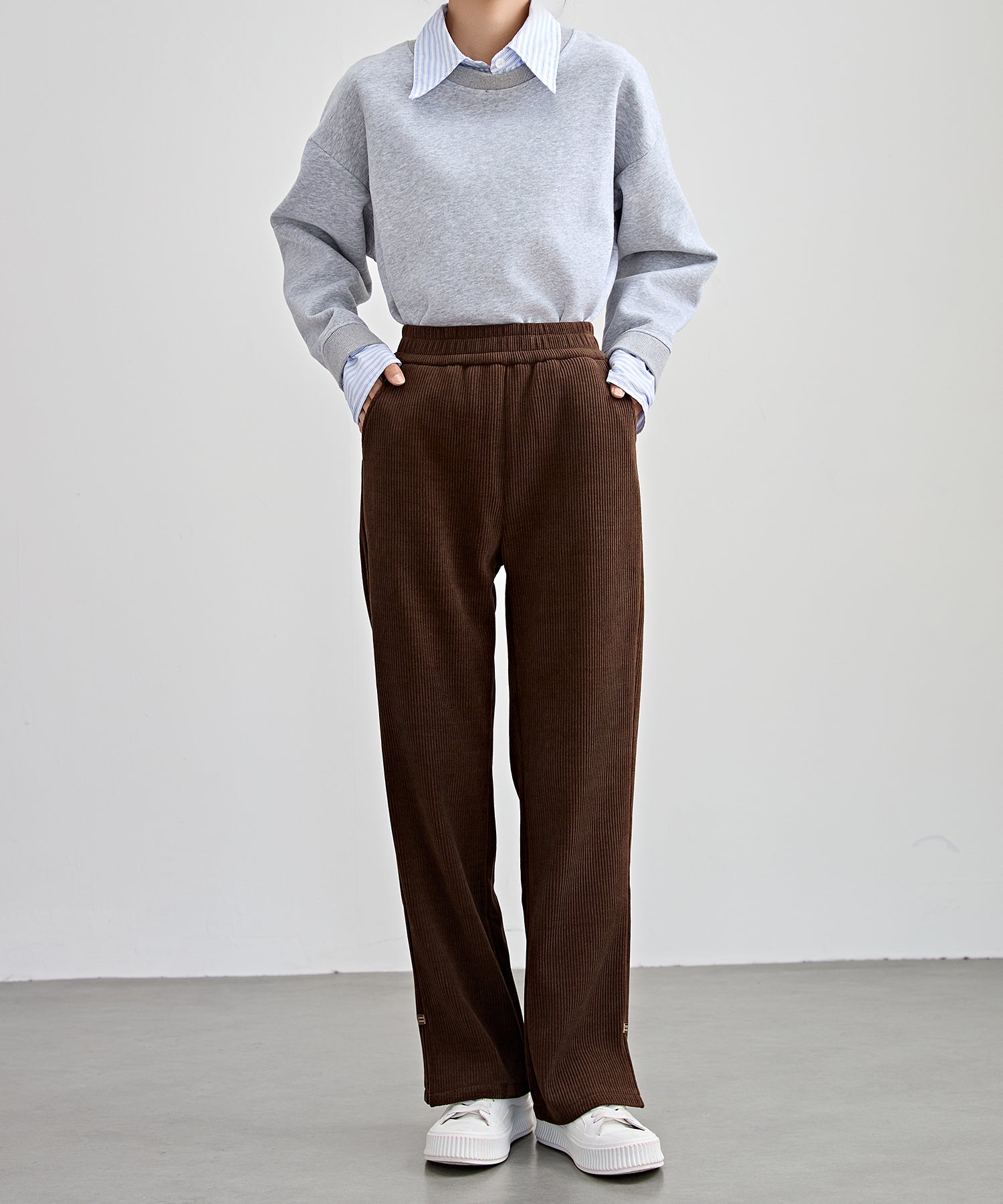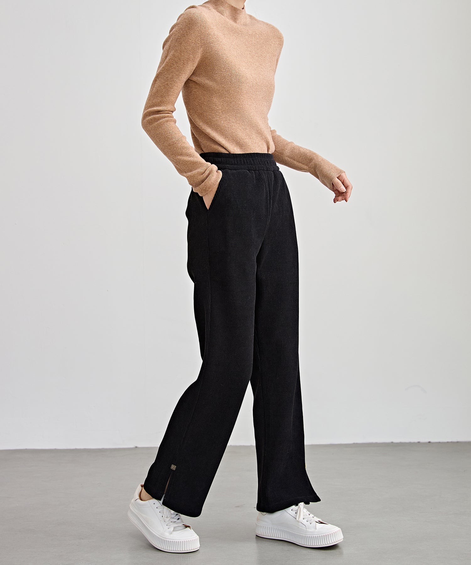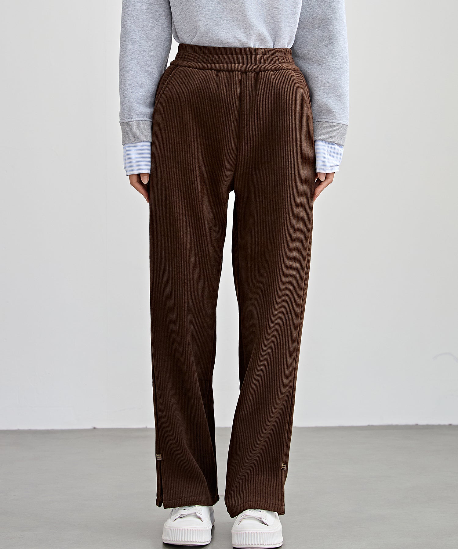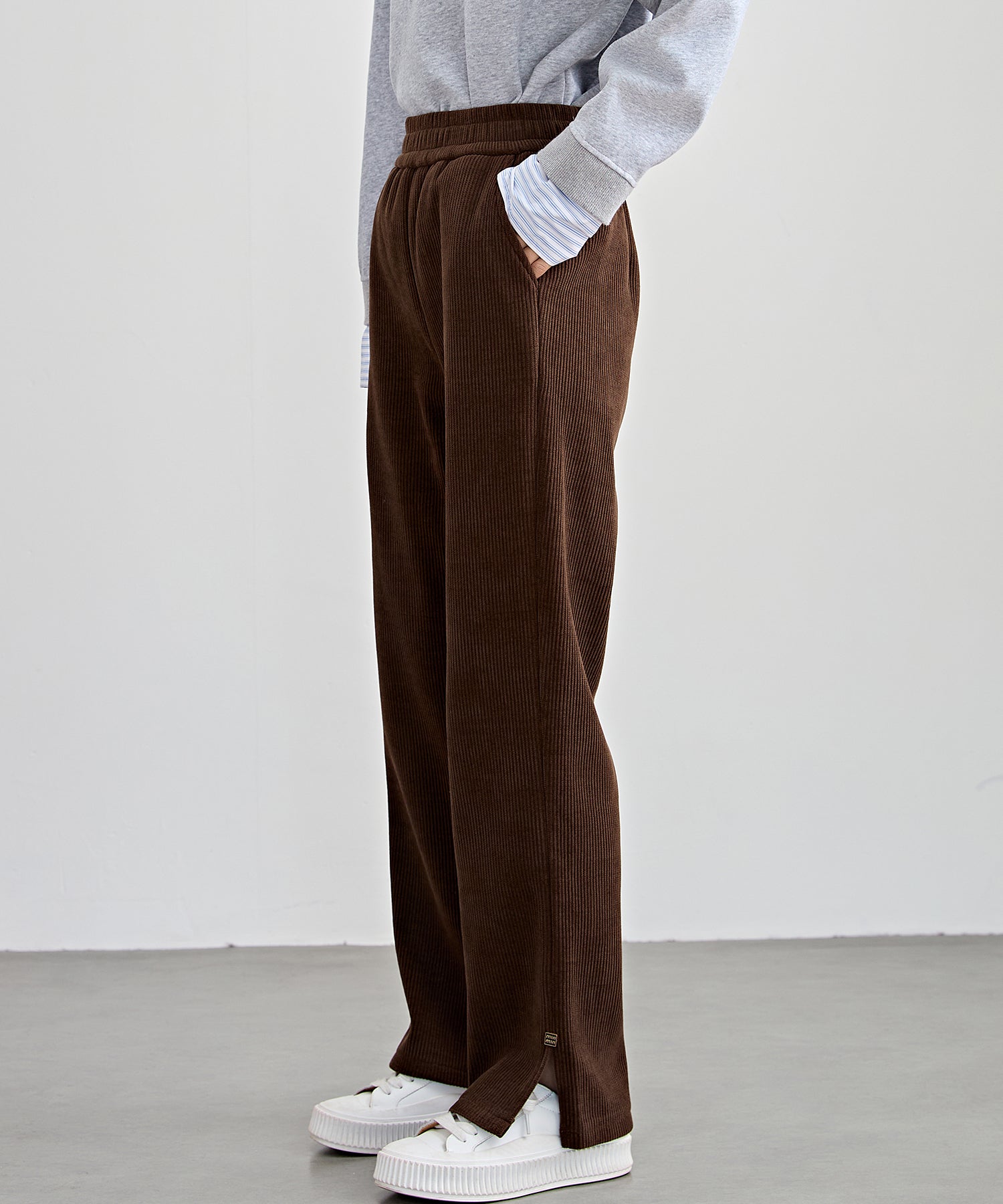 サイド スリット ストレート コーデュロイ パンツ 裏起毛