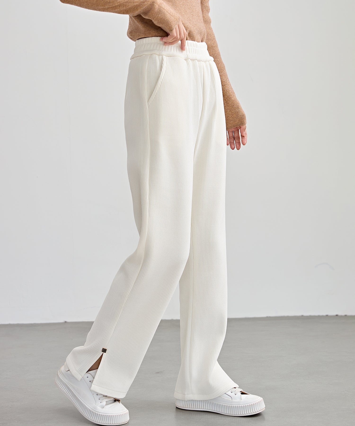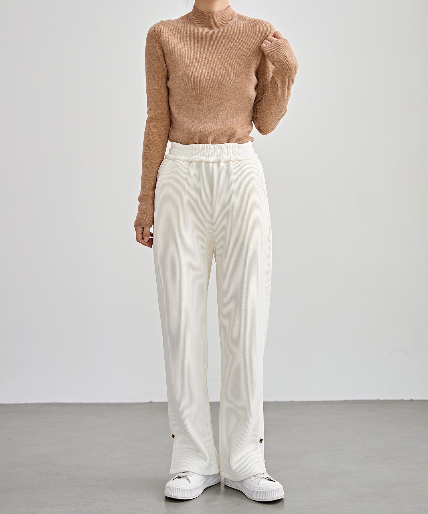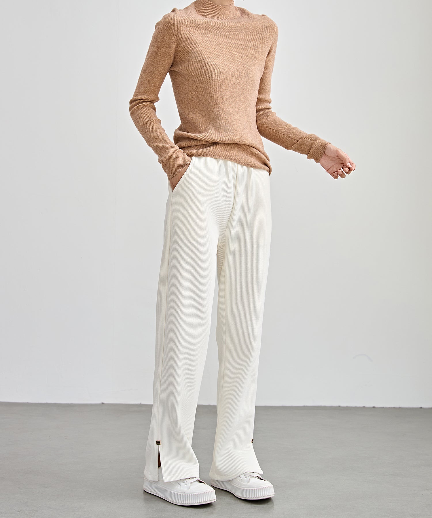 裾部分にはスリットのアクセントを入れることで、さりげない抜け感をプラス。