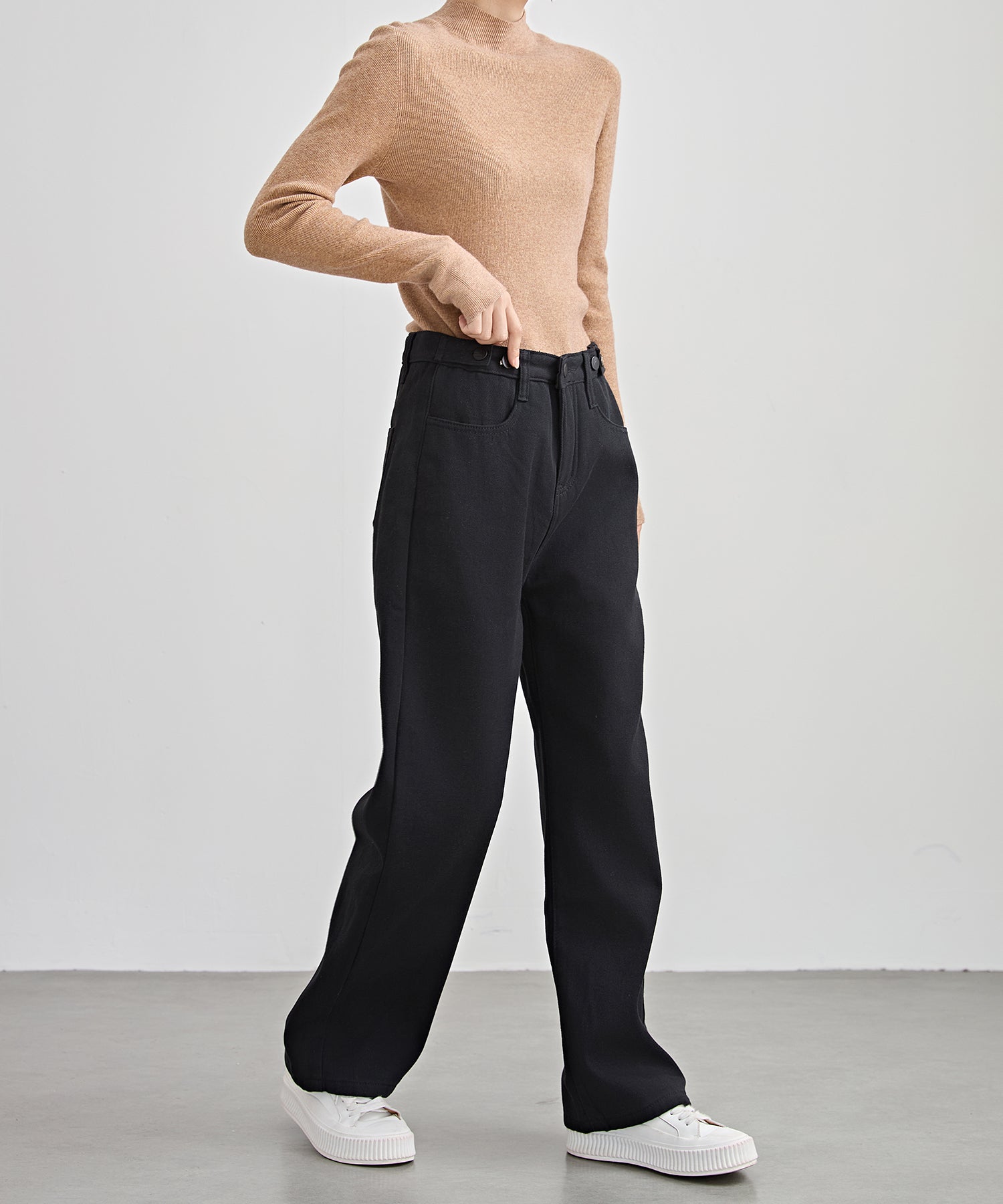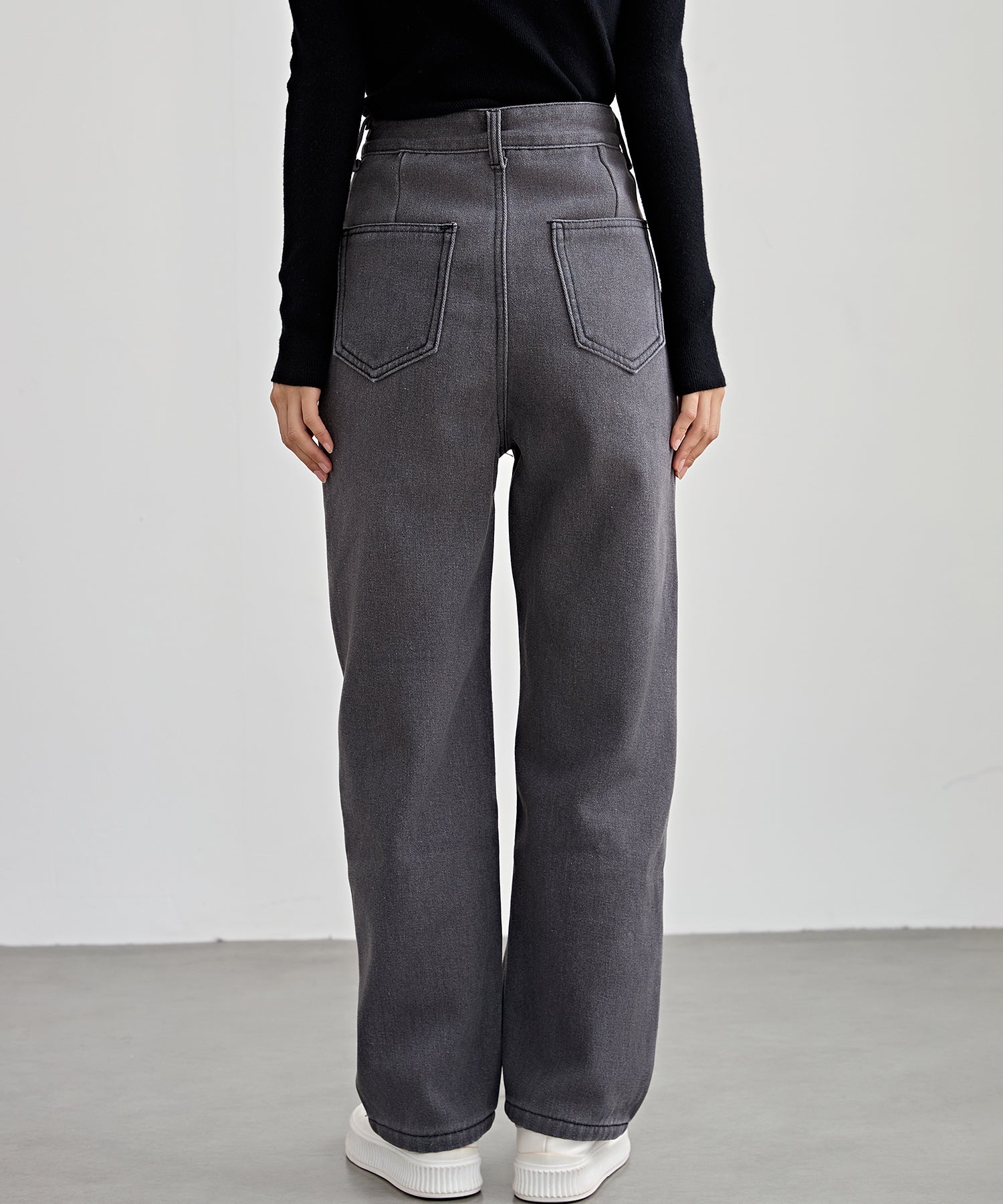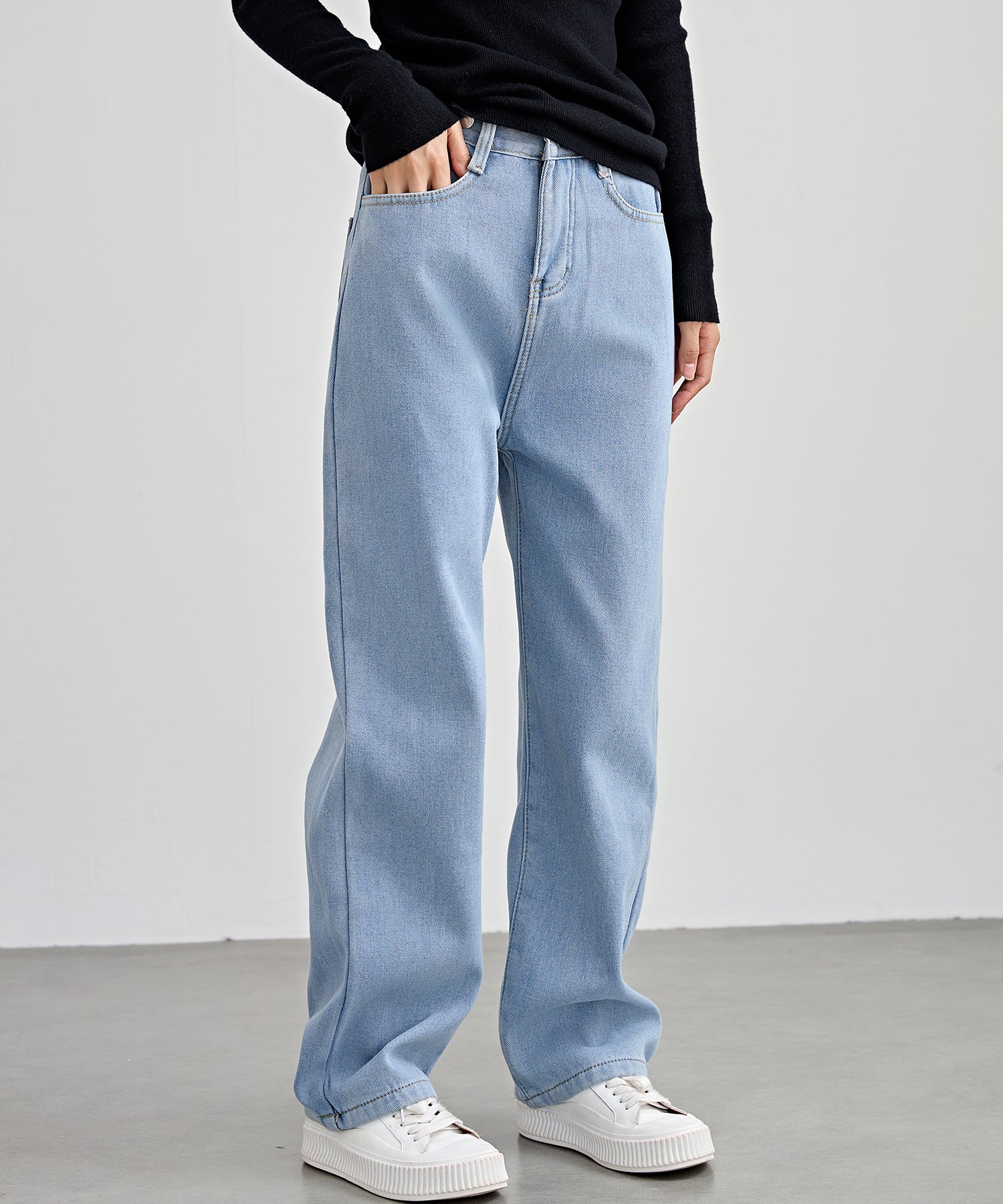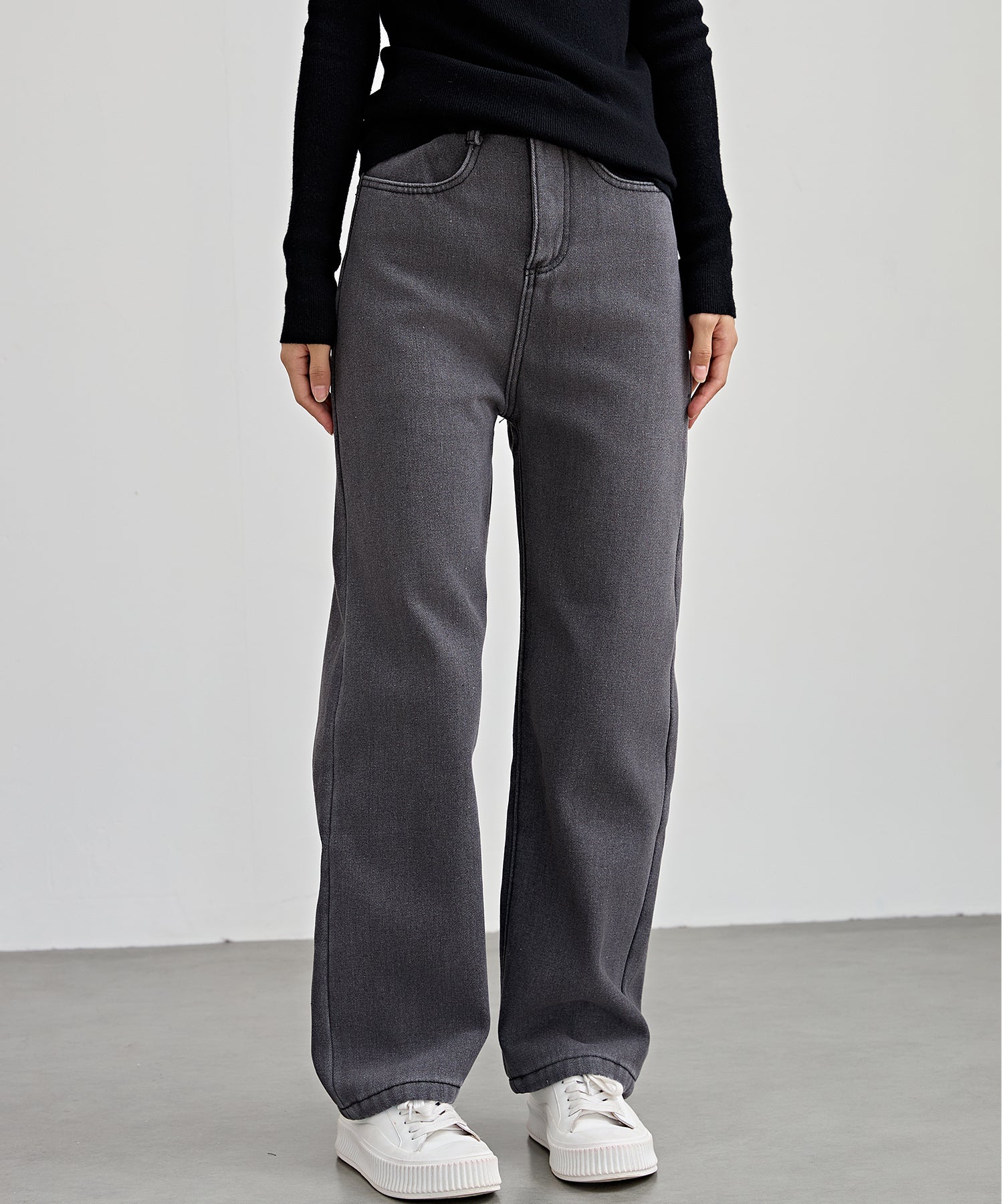 裏起毛 ハイウエスト ストレート デニム パンツ