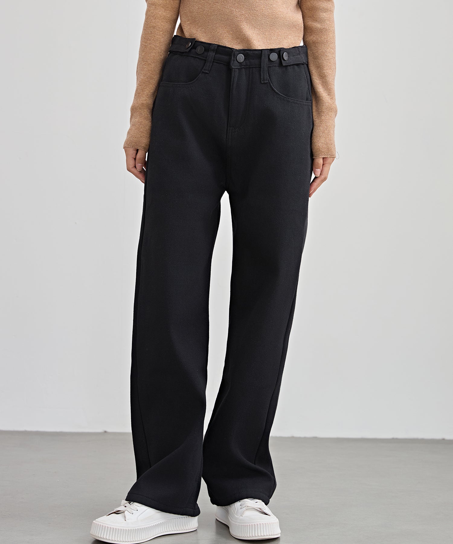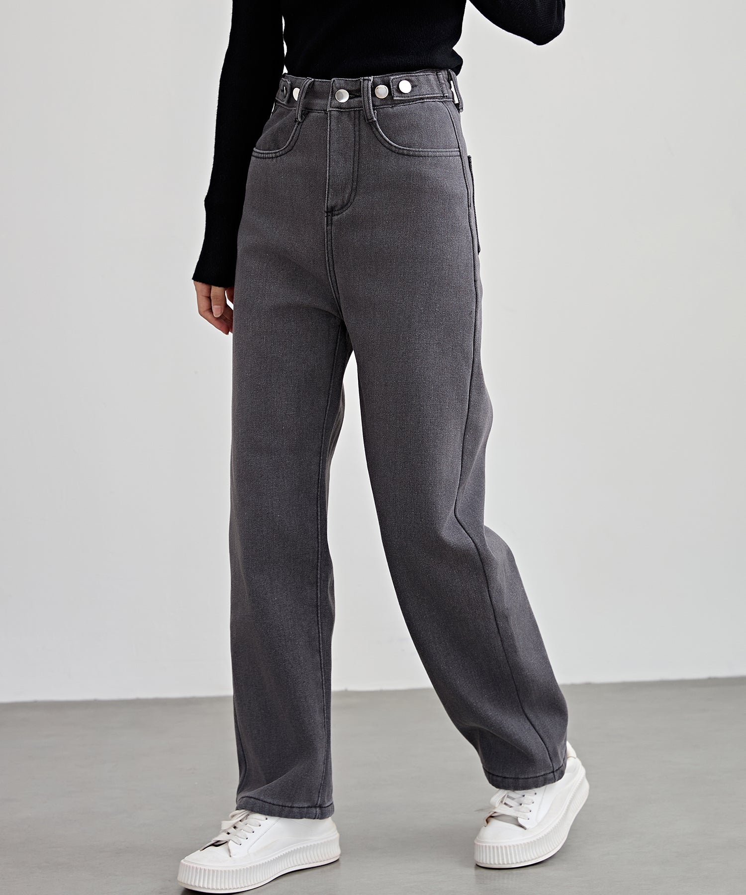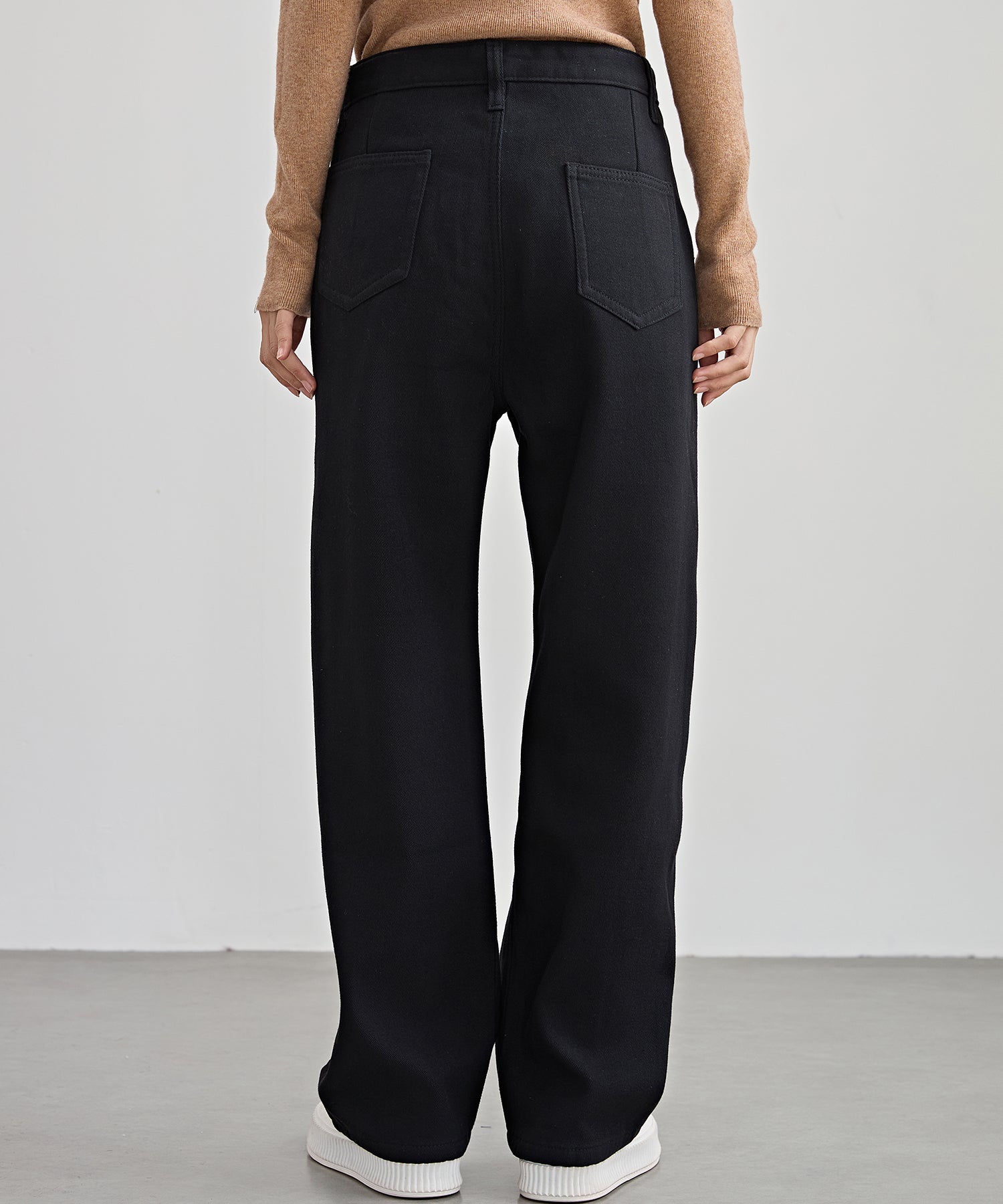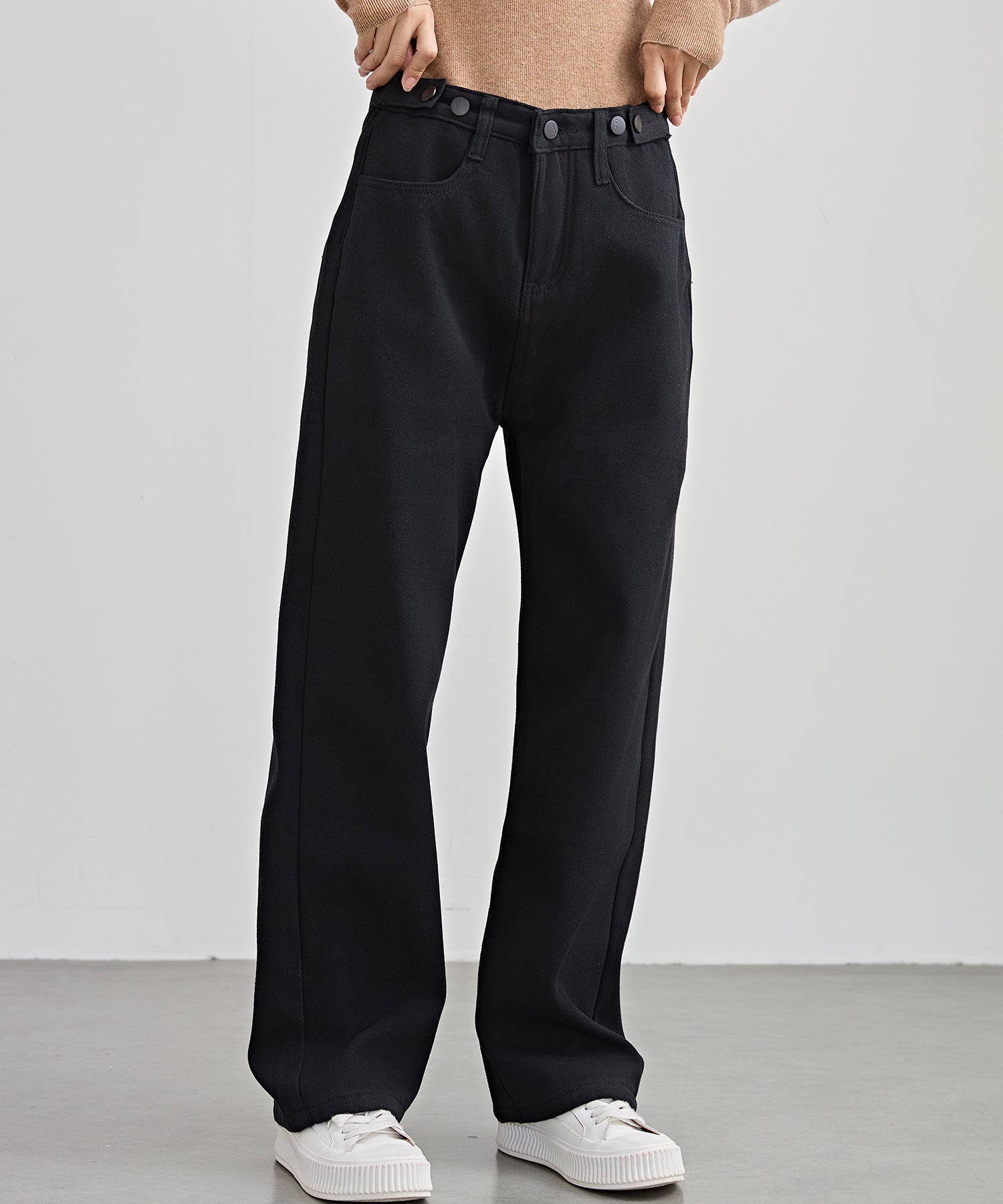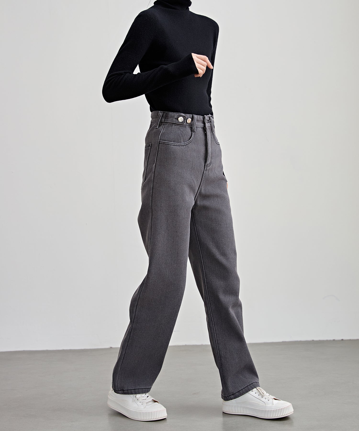 裏起毛 ハイウエスト ストレート デニム パンツ