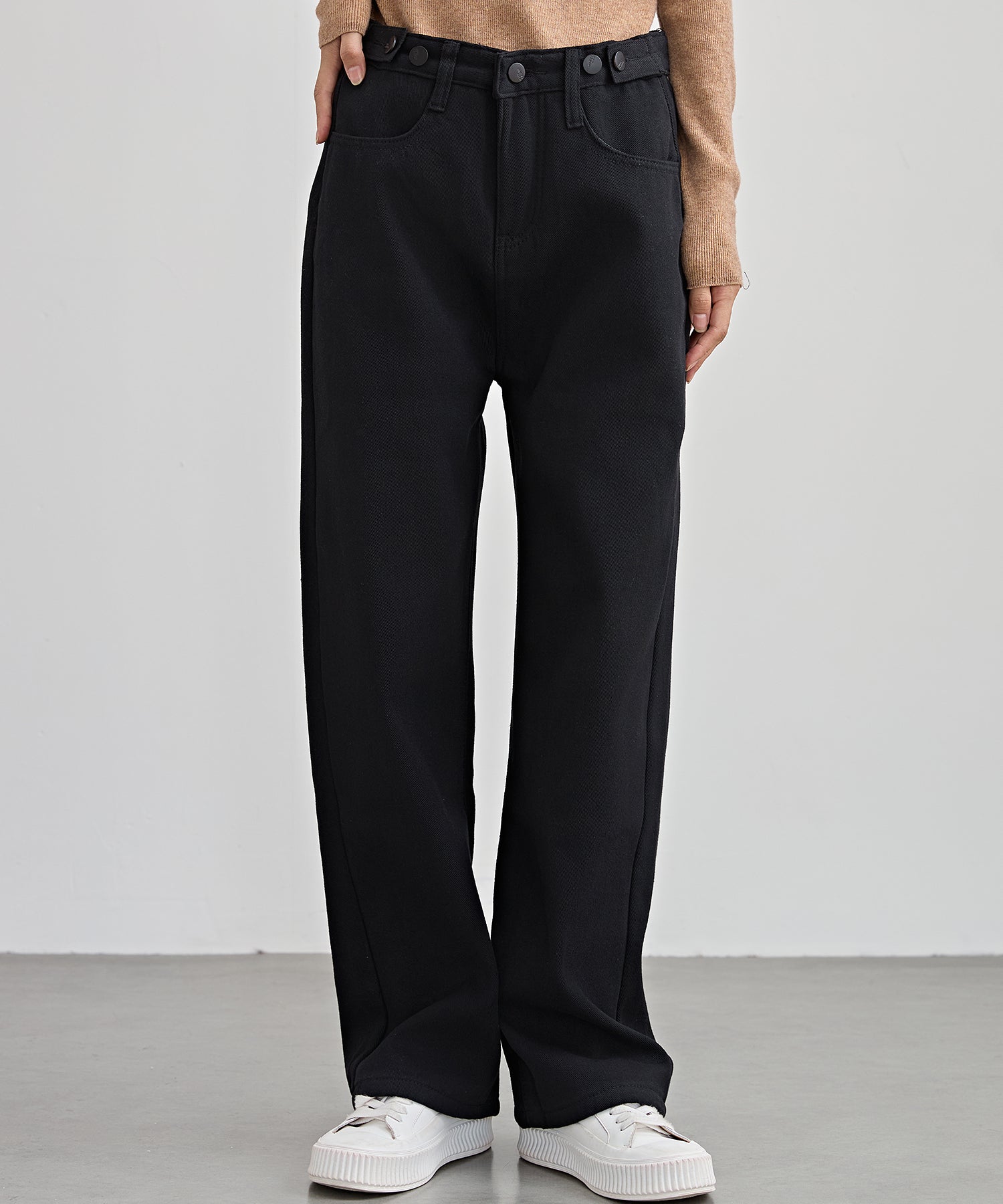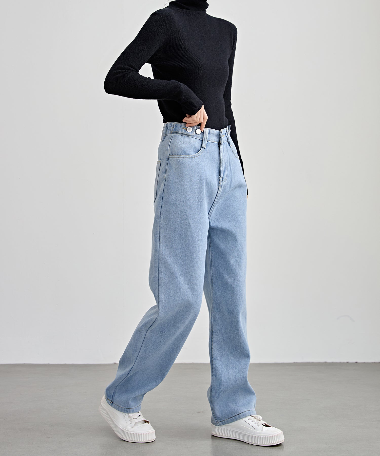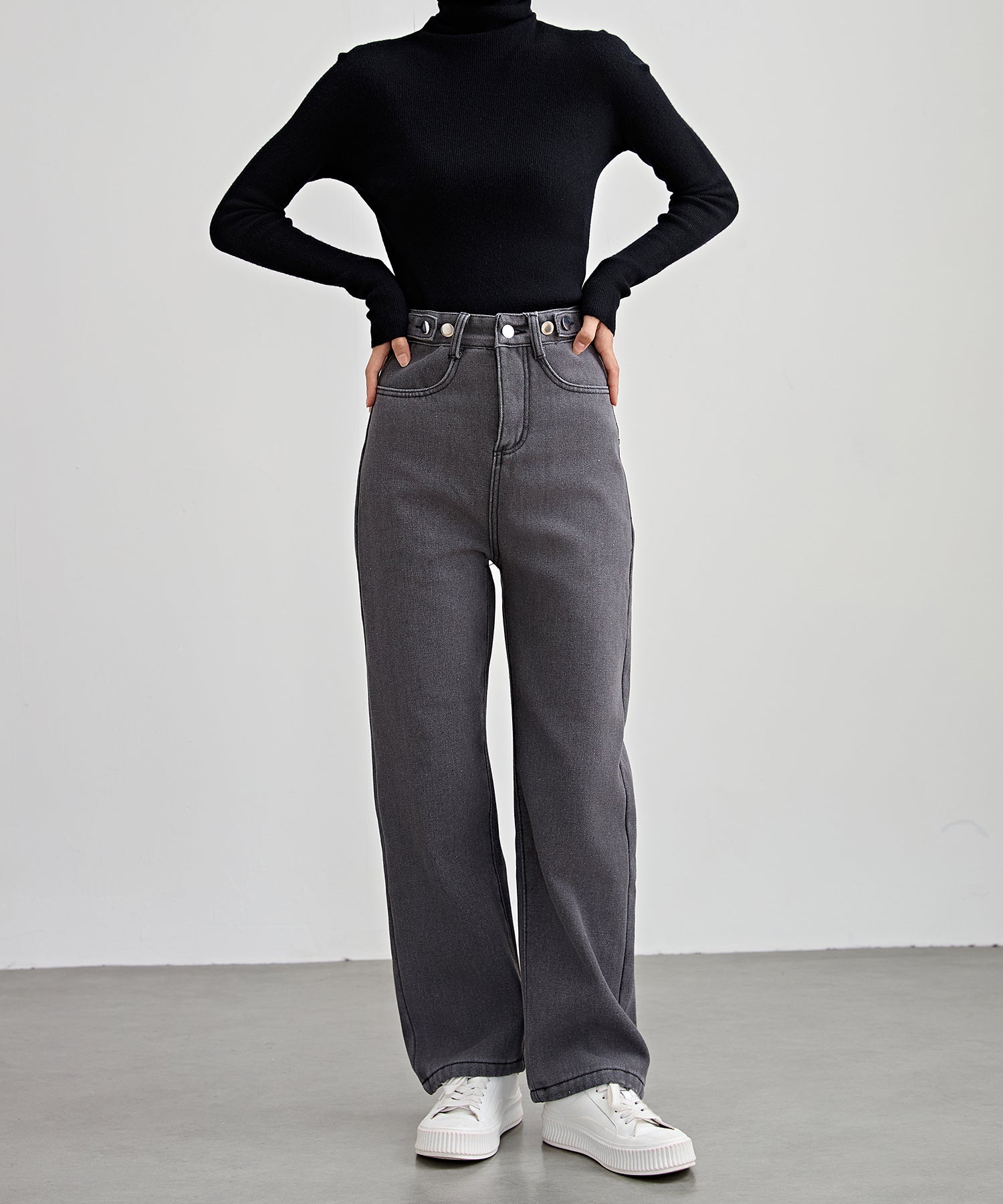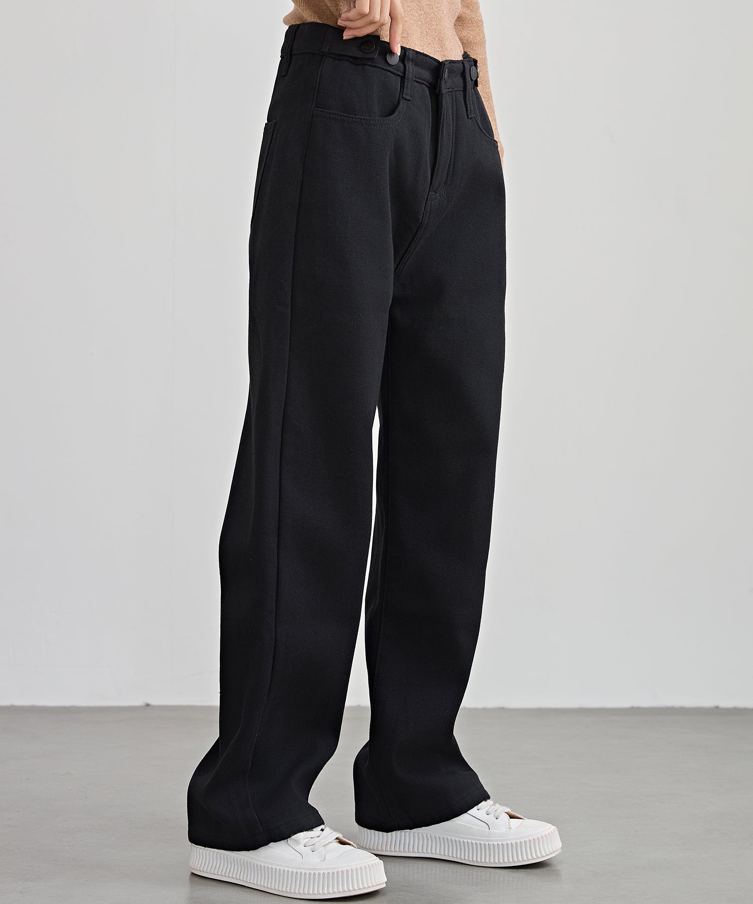 裏起毛 ハイウエスト ストレート デニム パンツ