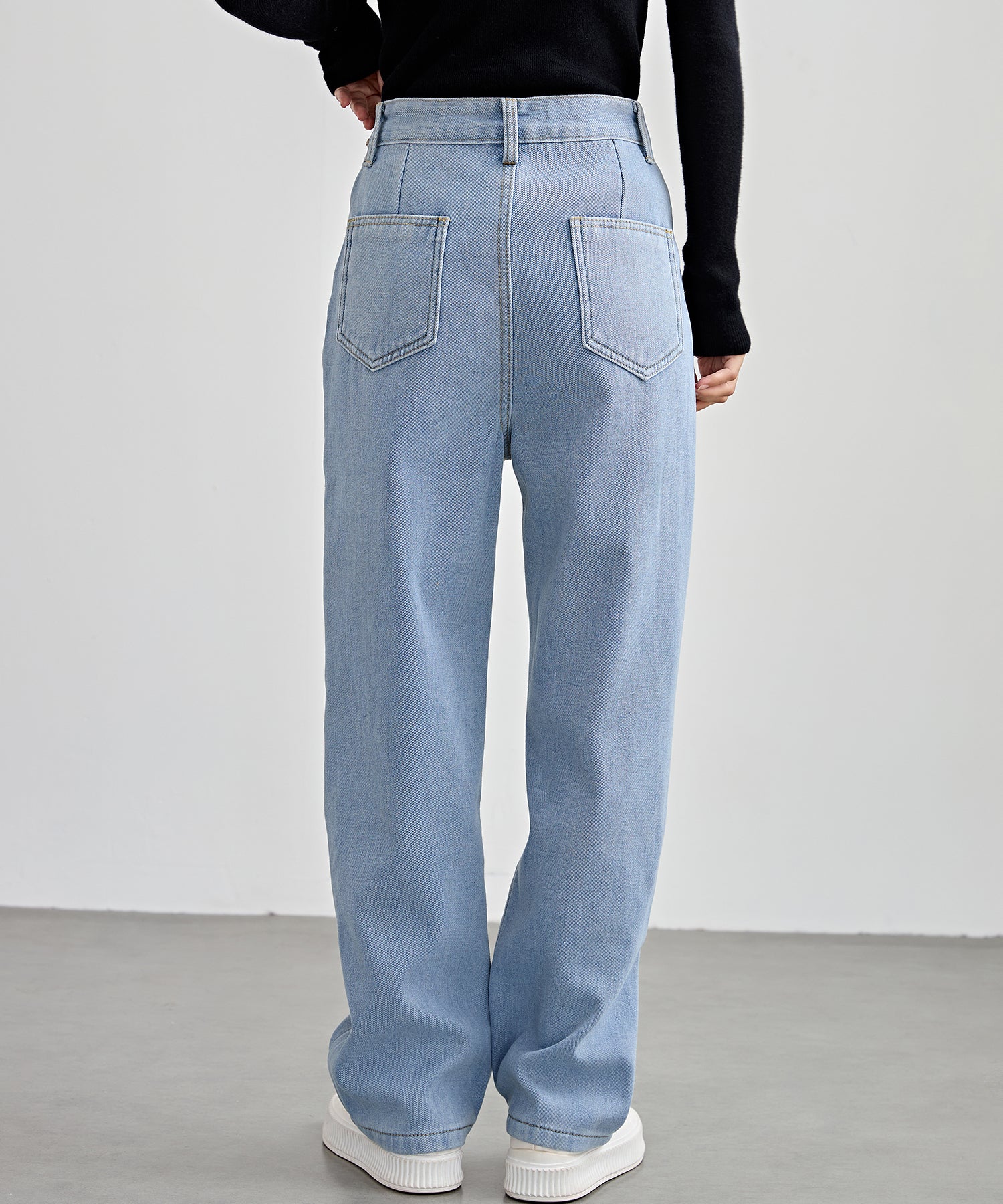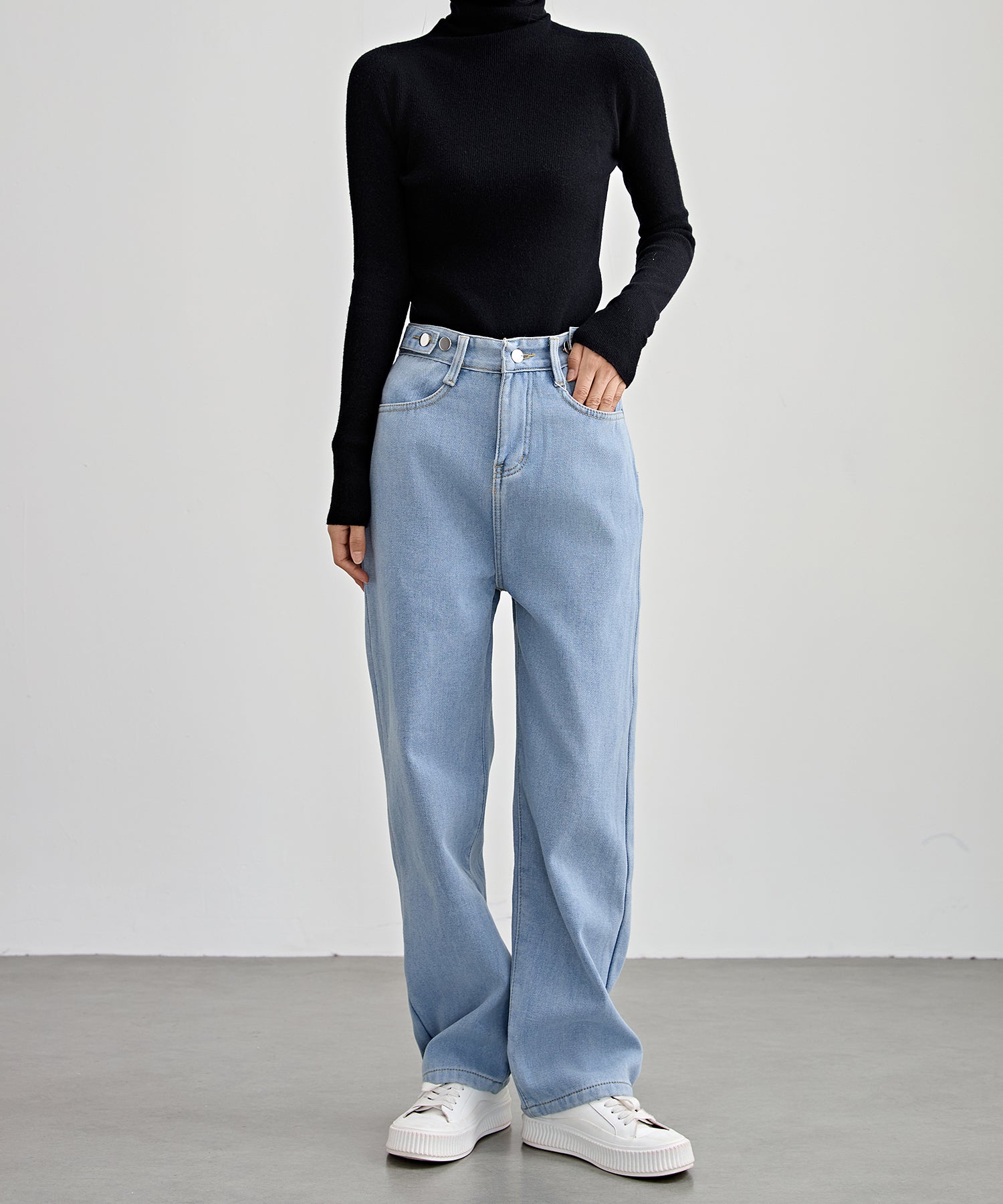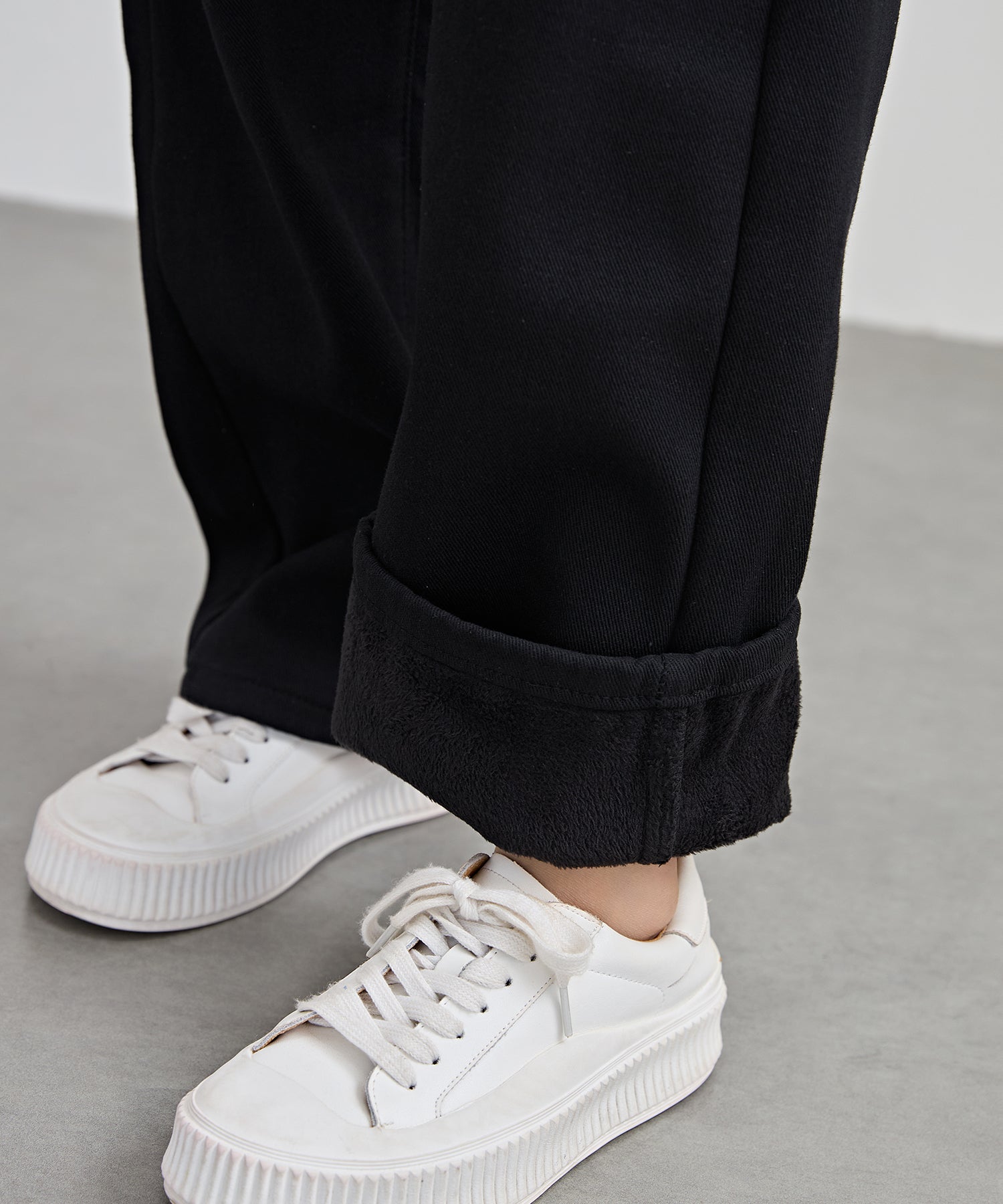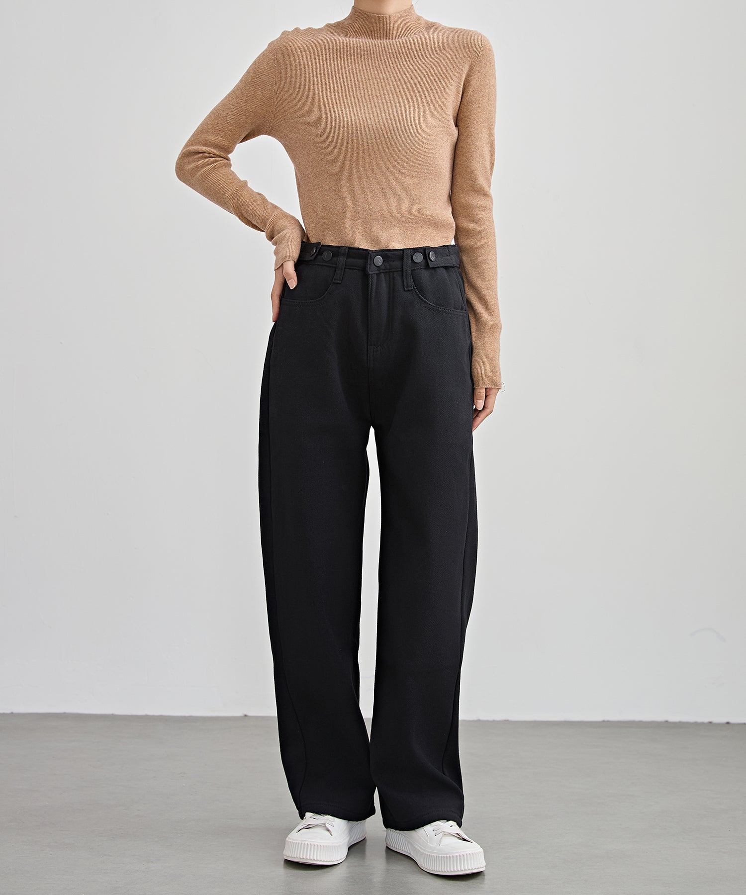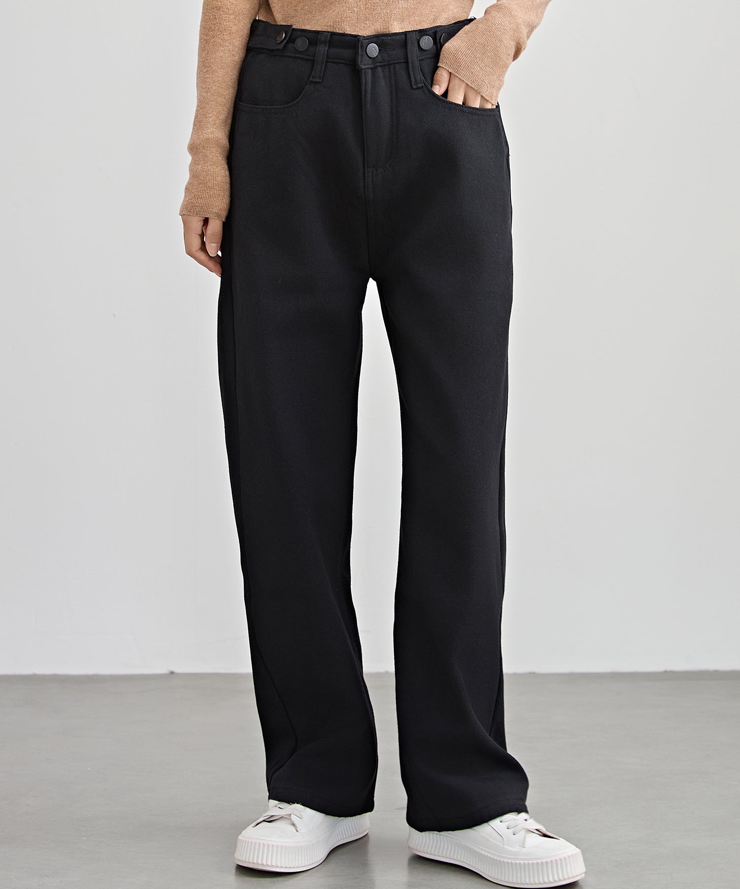 裏起毛 ハイウエスト ストレート デニム パンツ