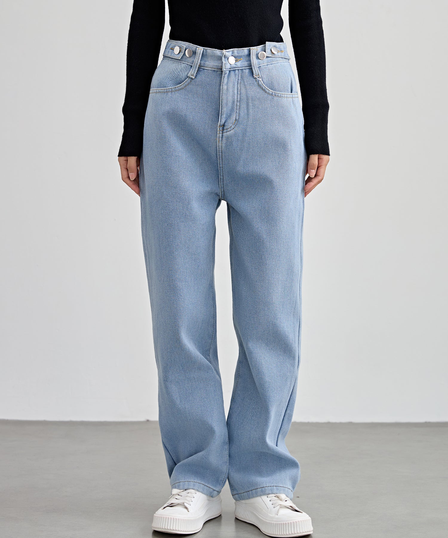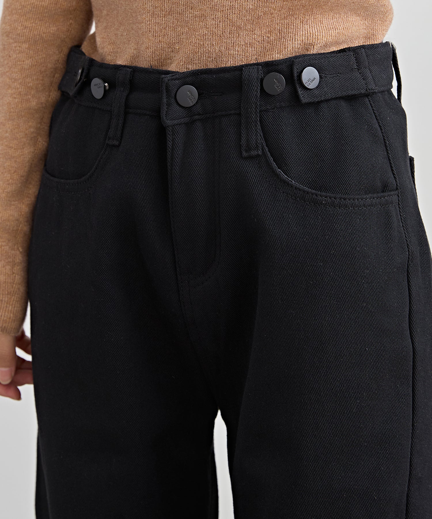 エッジィな雰囲気を演出するウエストボタン付きで、お好みのサイズ感に調節できるのもポイントです。