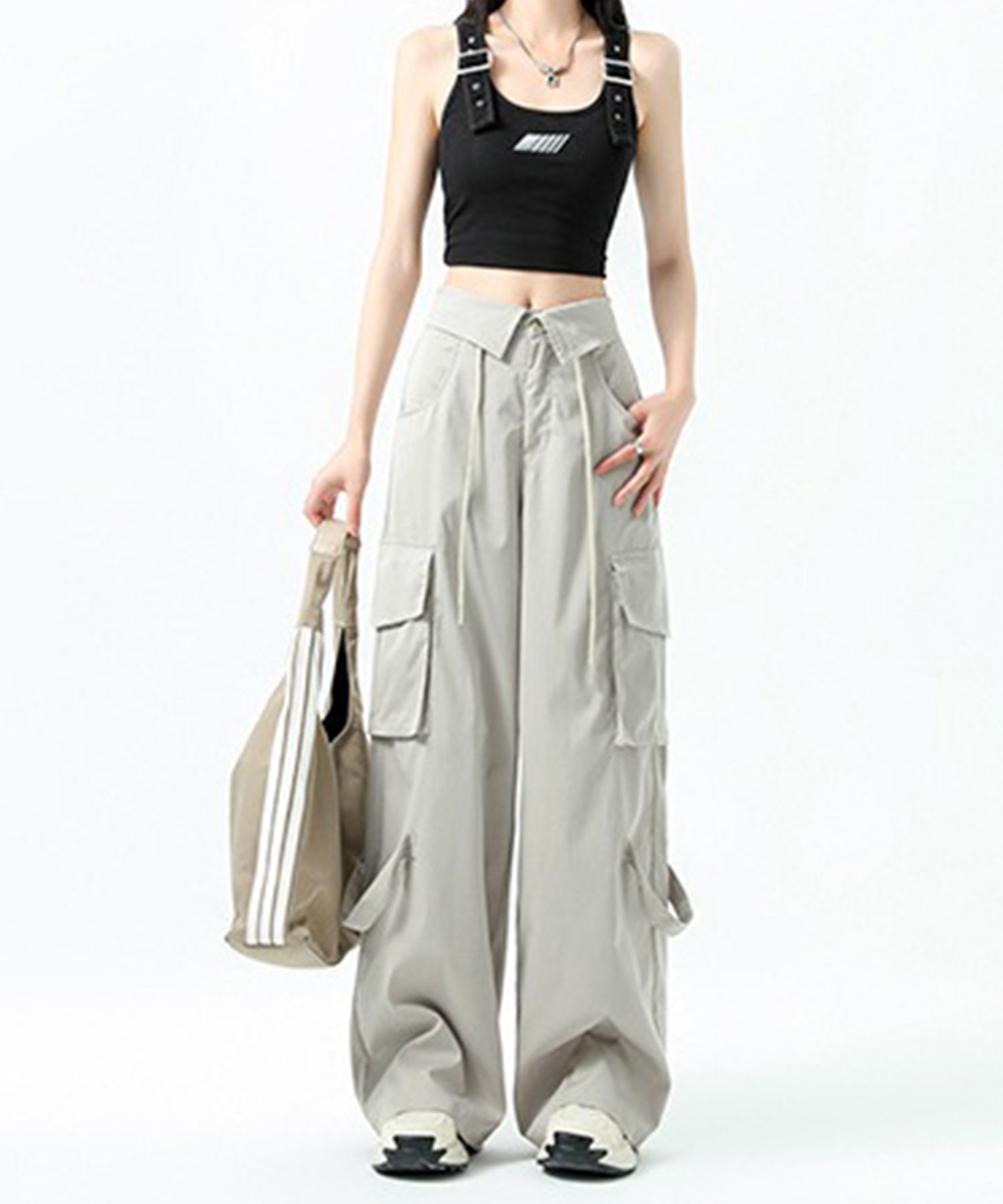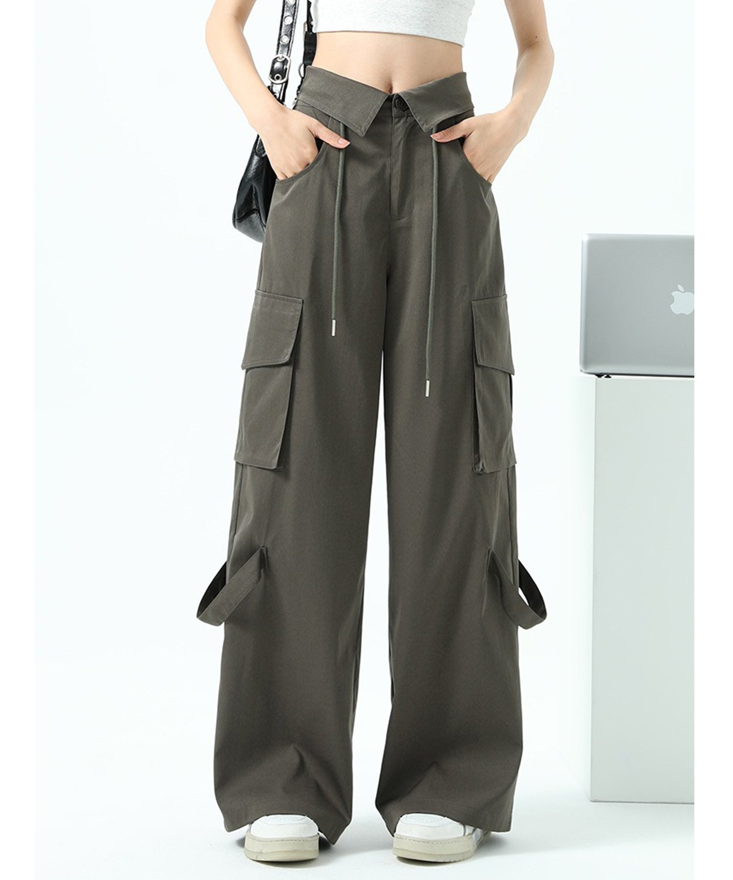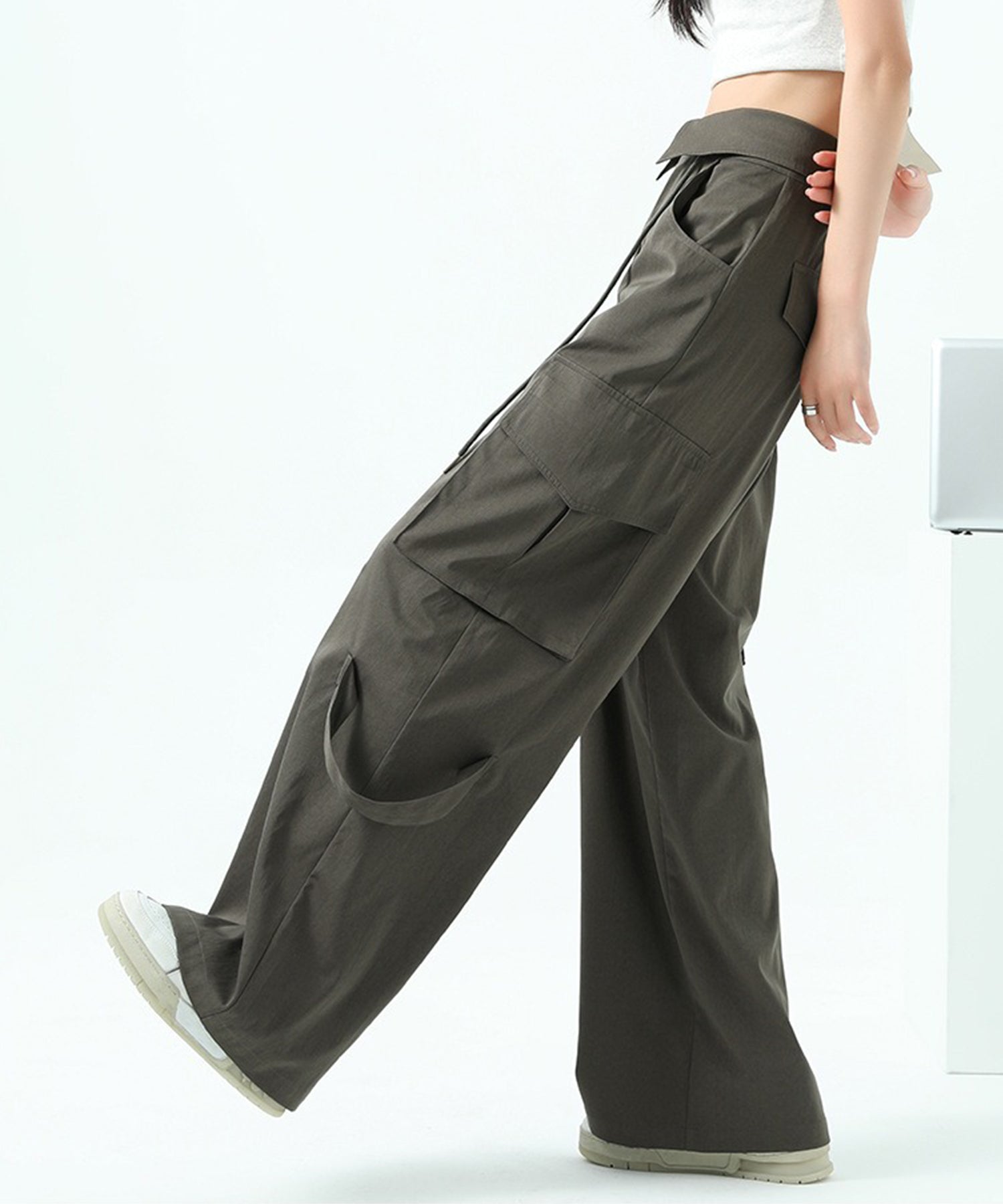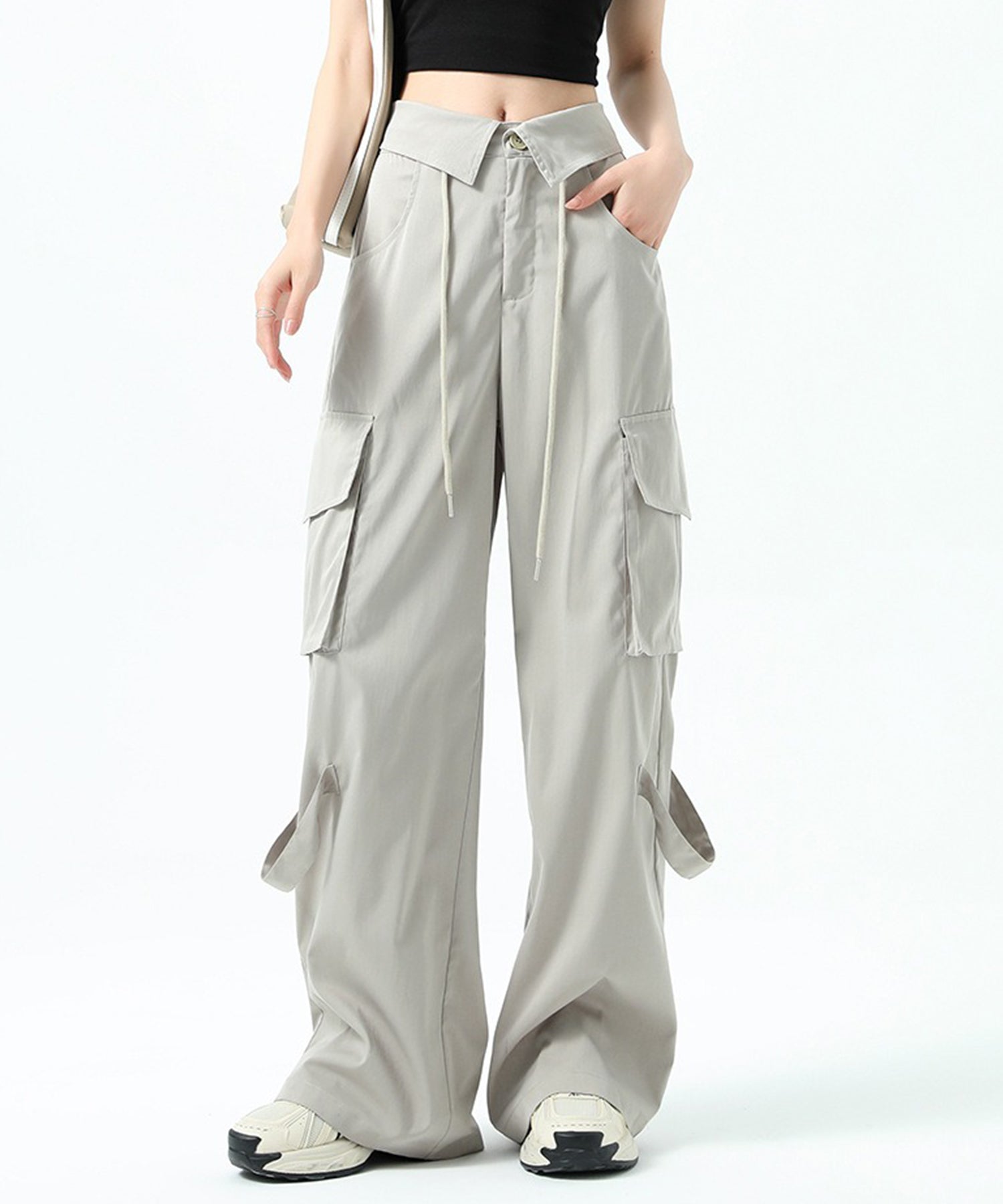 ハイウエスト 折り返し ワイド カーゴ パンツ