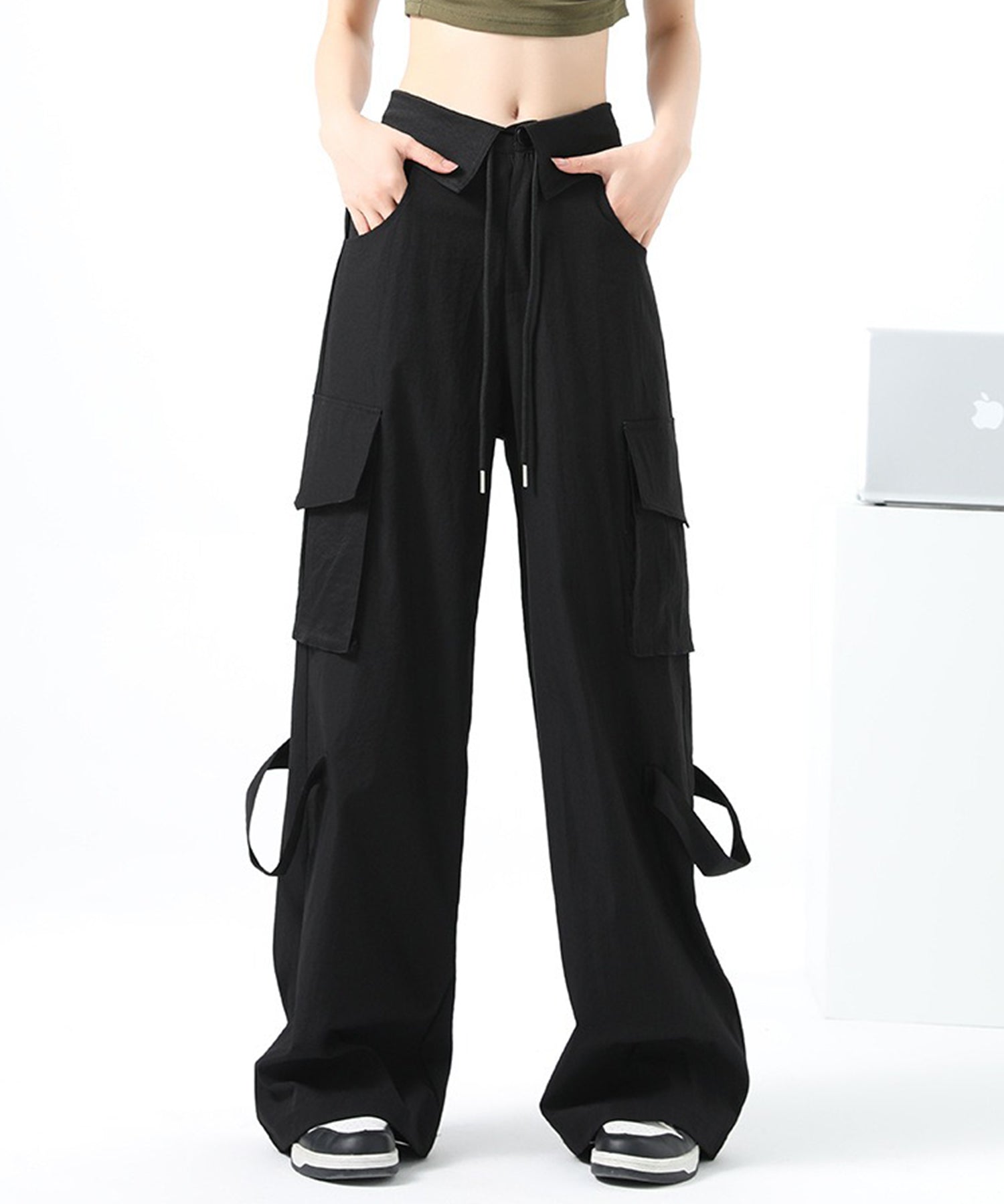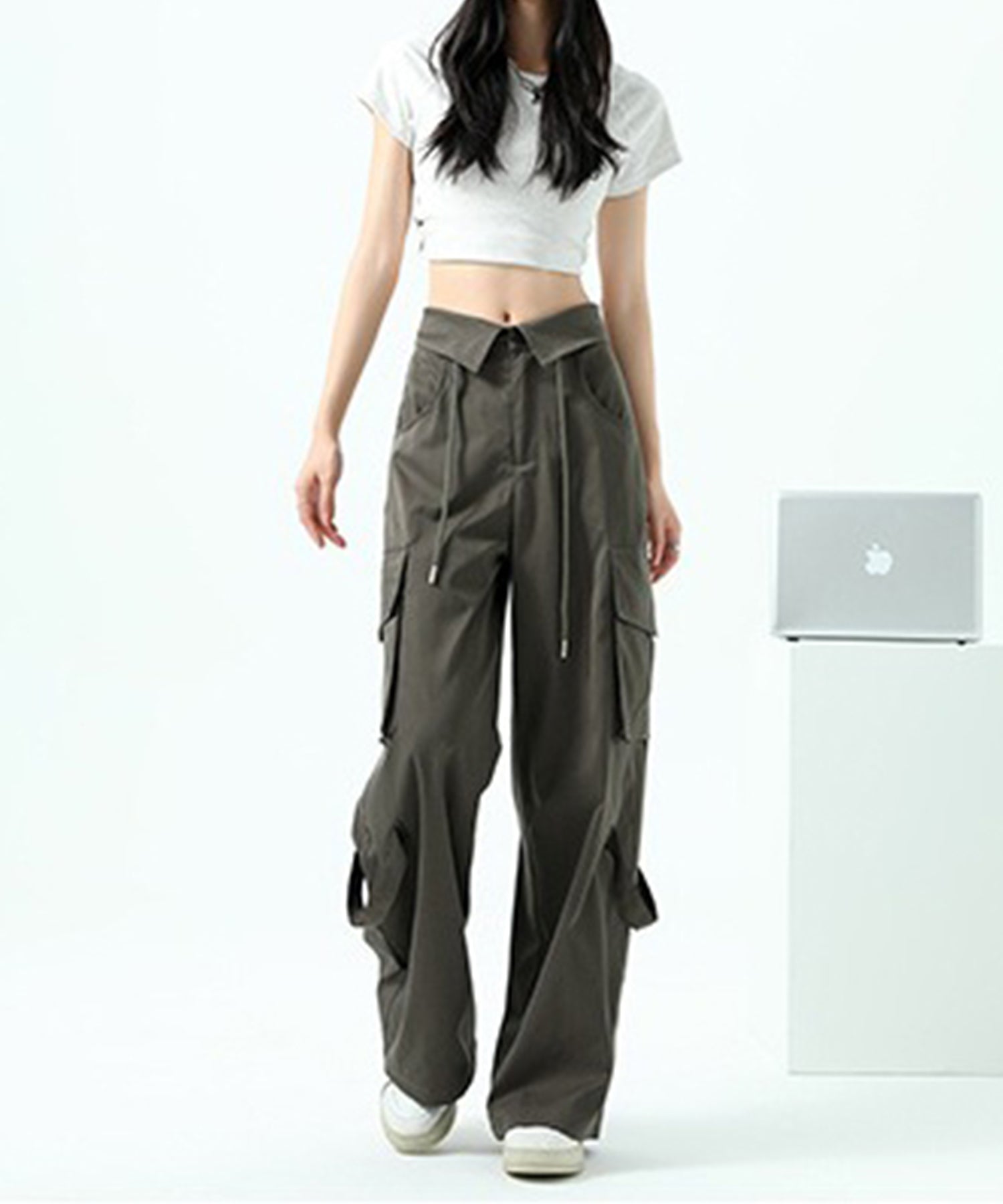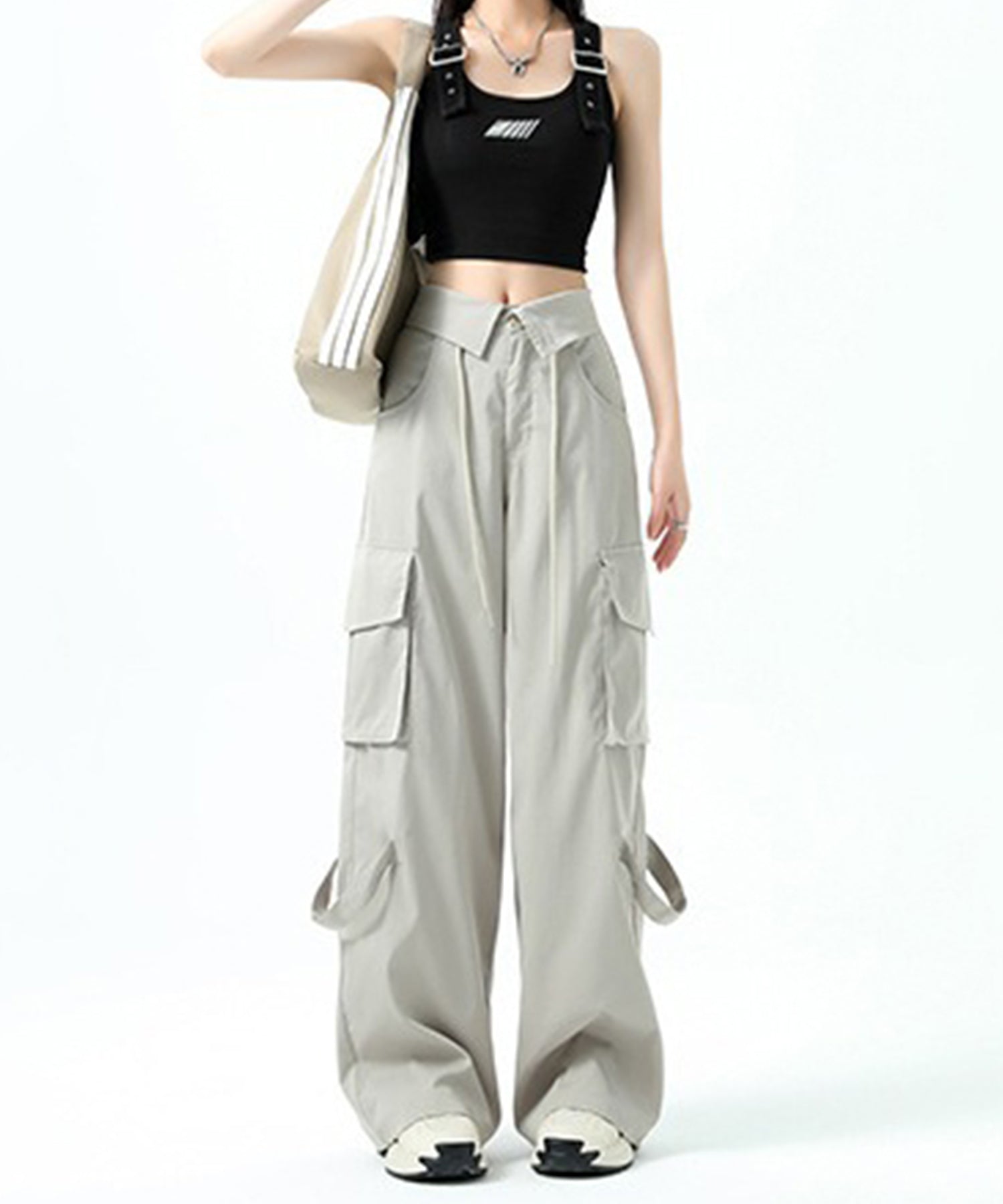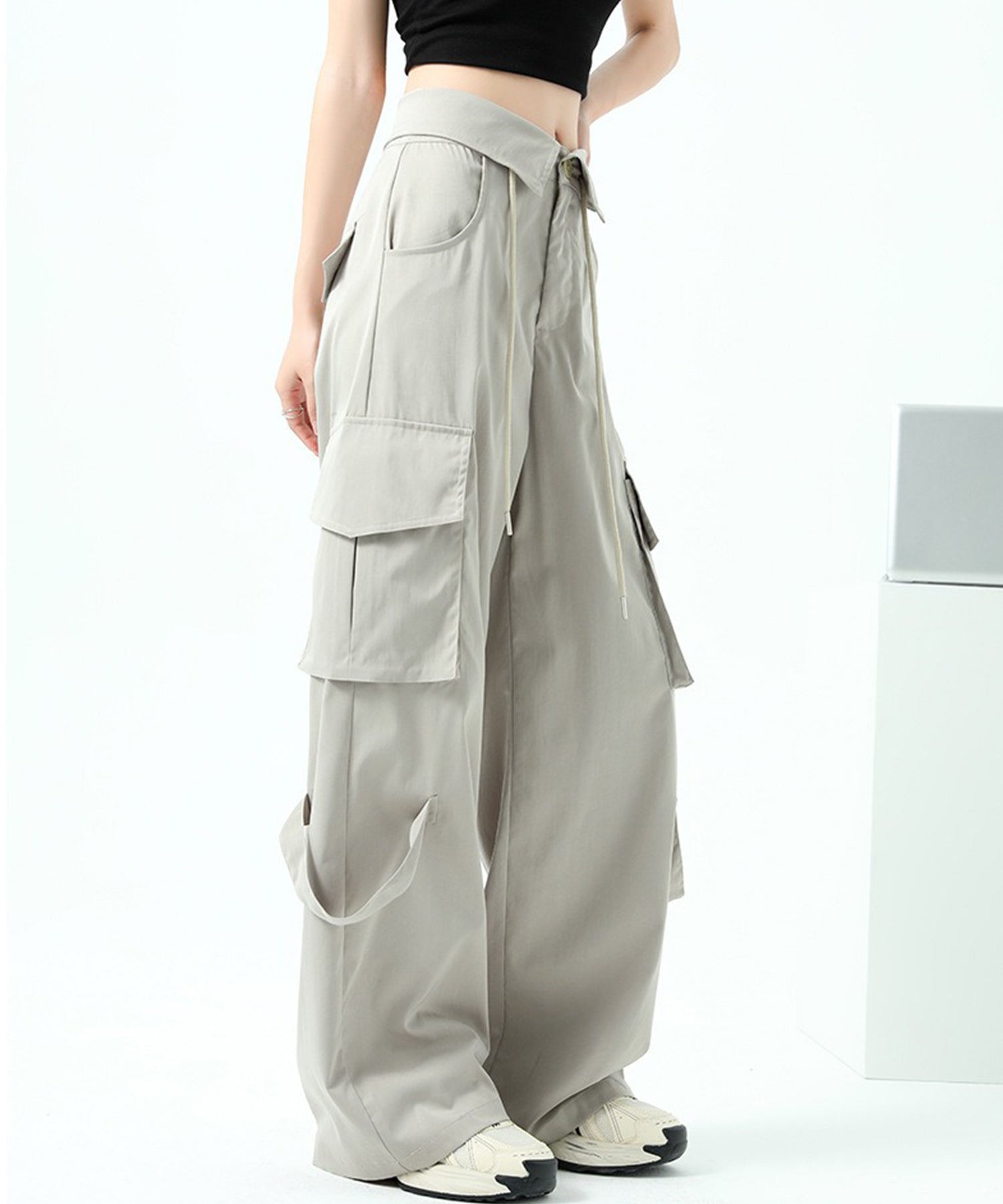 ハイウエスト 折り返し ワイド カーゴ パンツ