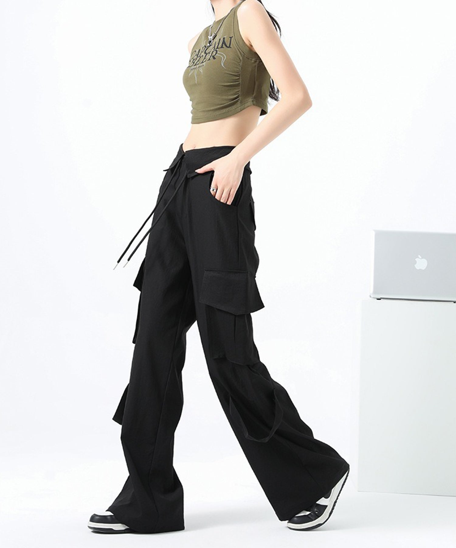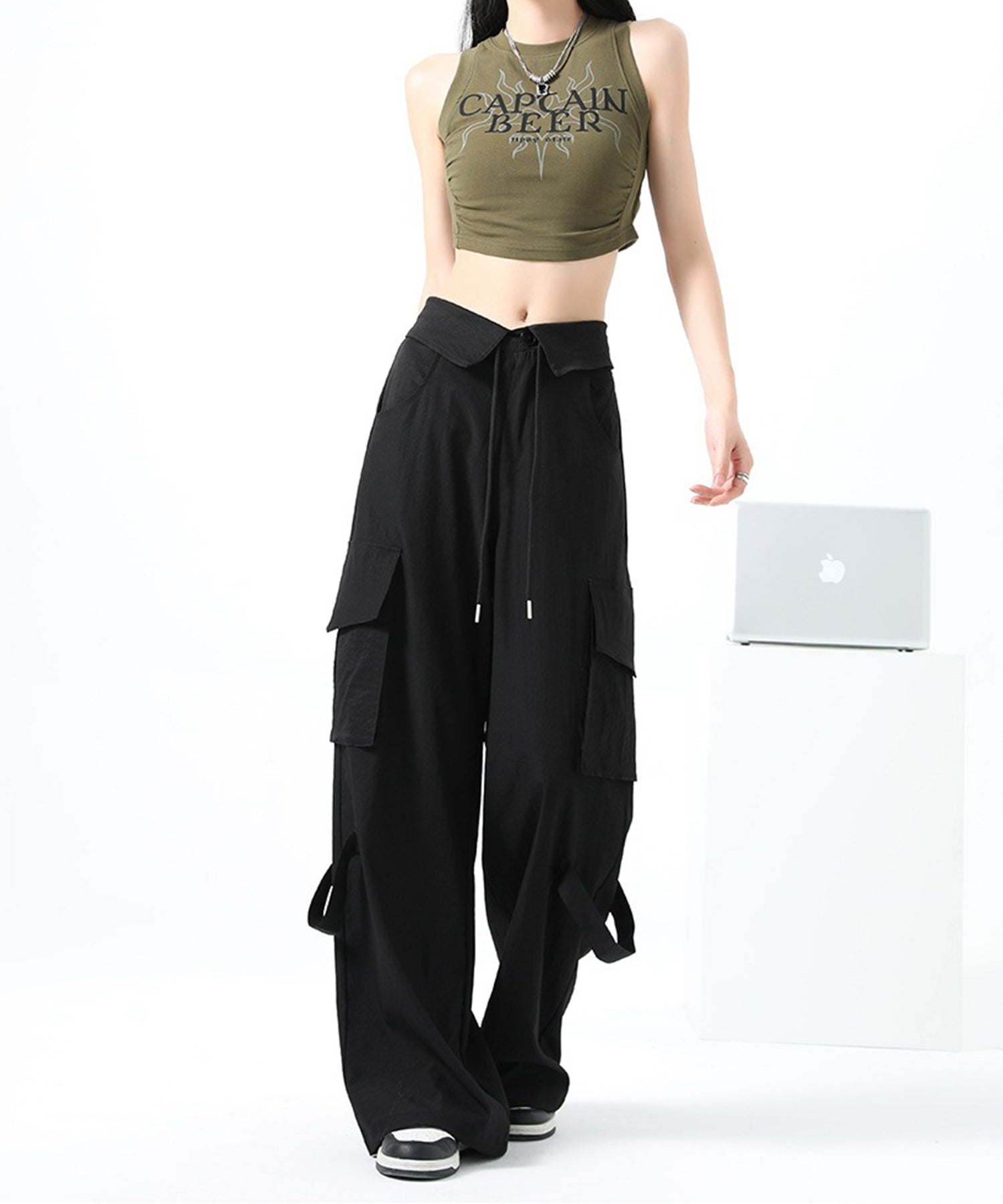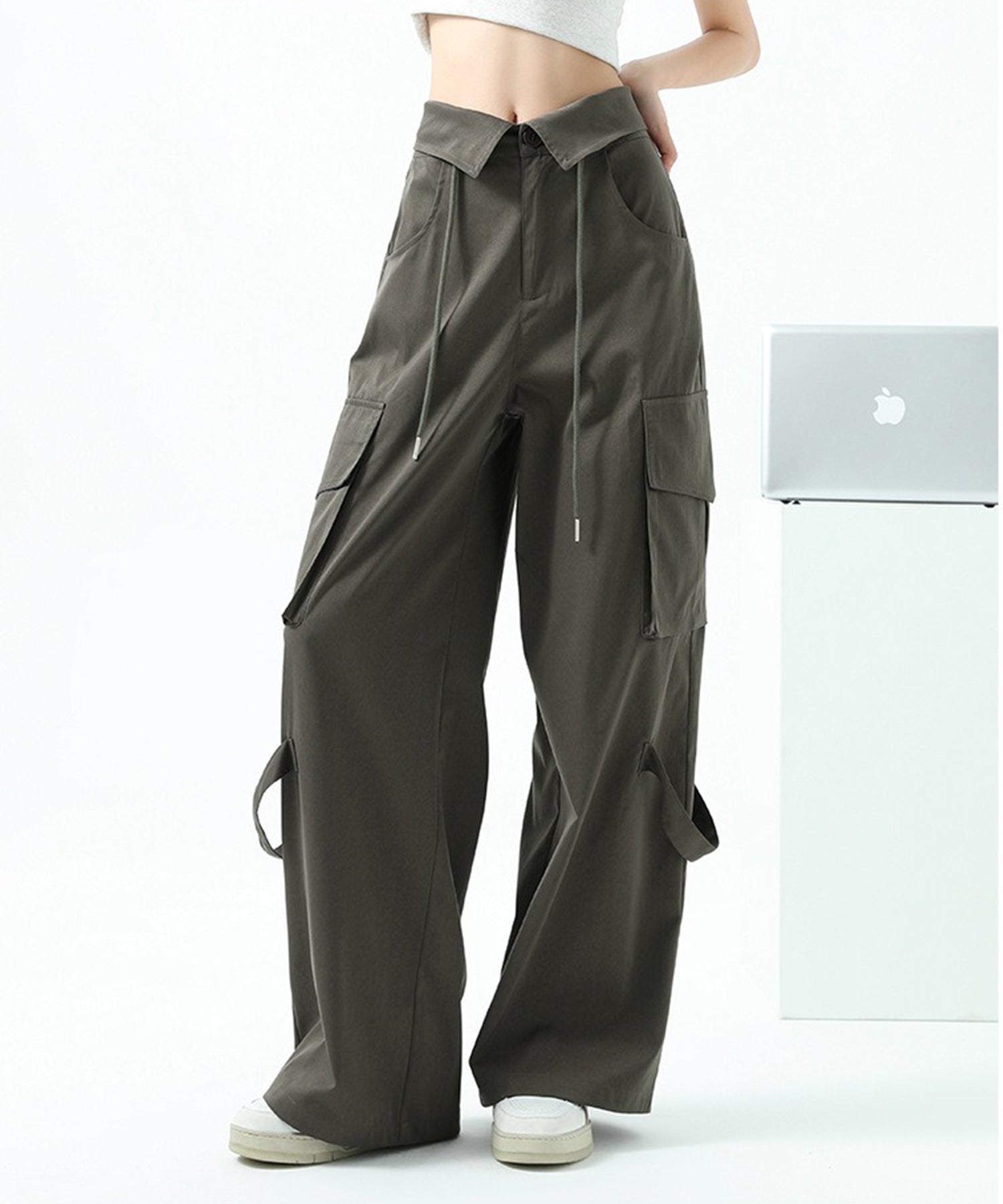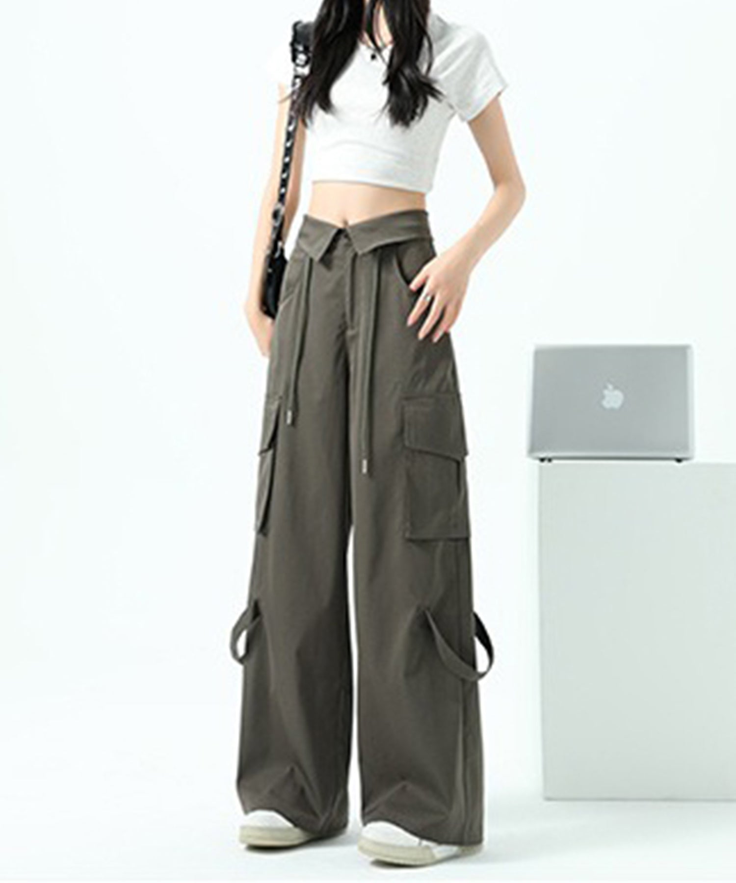 ハイウエスト 折り返し ワイド カーゴ パンツ