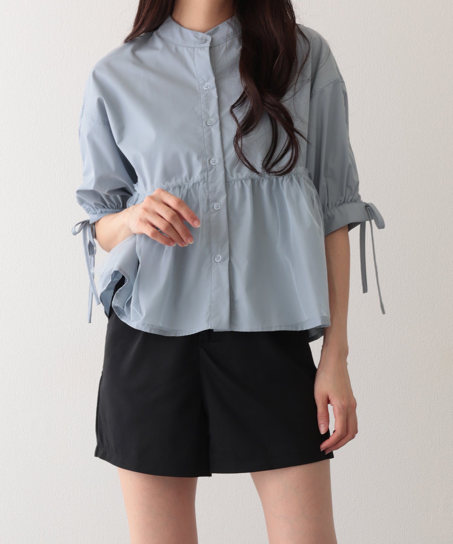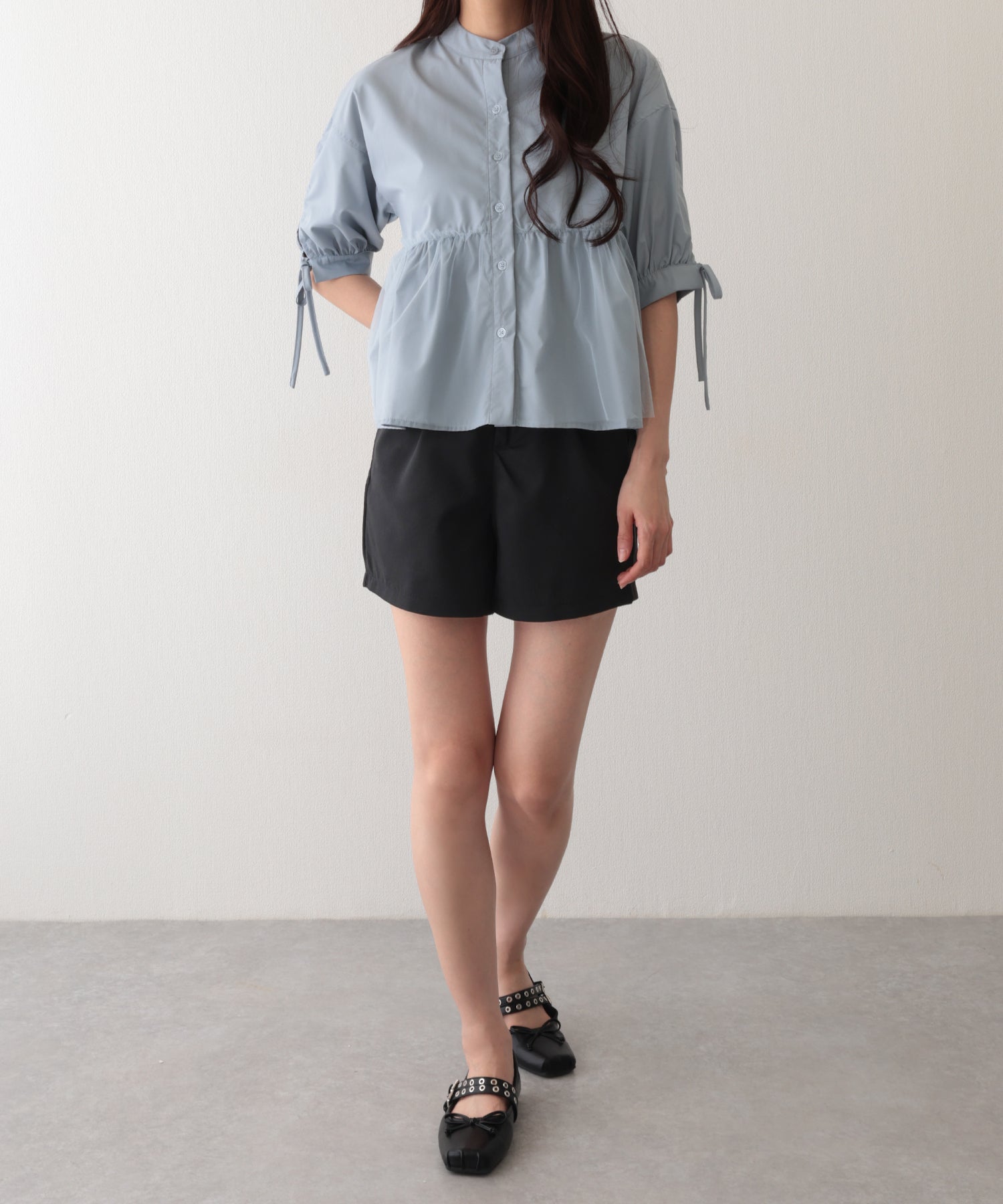 スタンドカラー ボウタイリボン ペプラム ドッキング セットアップ